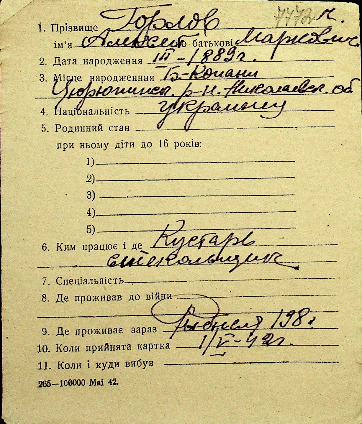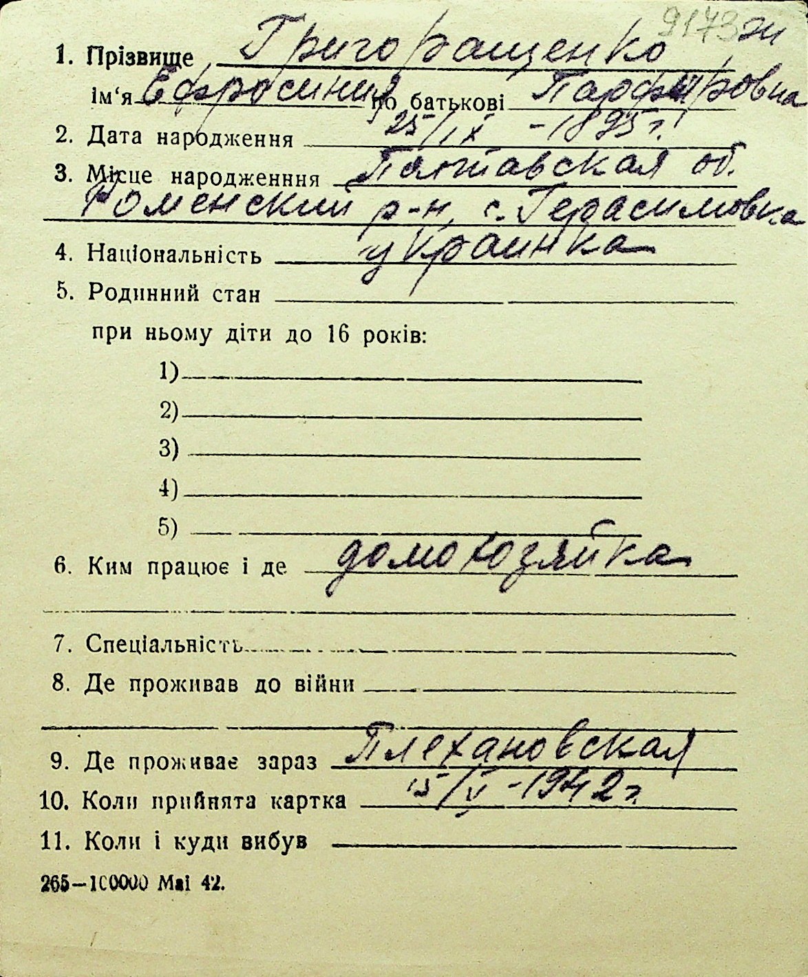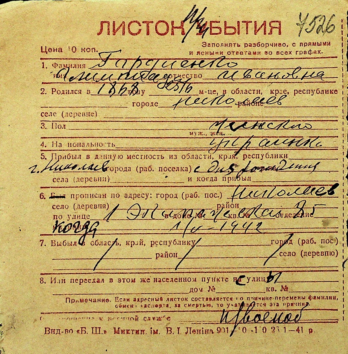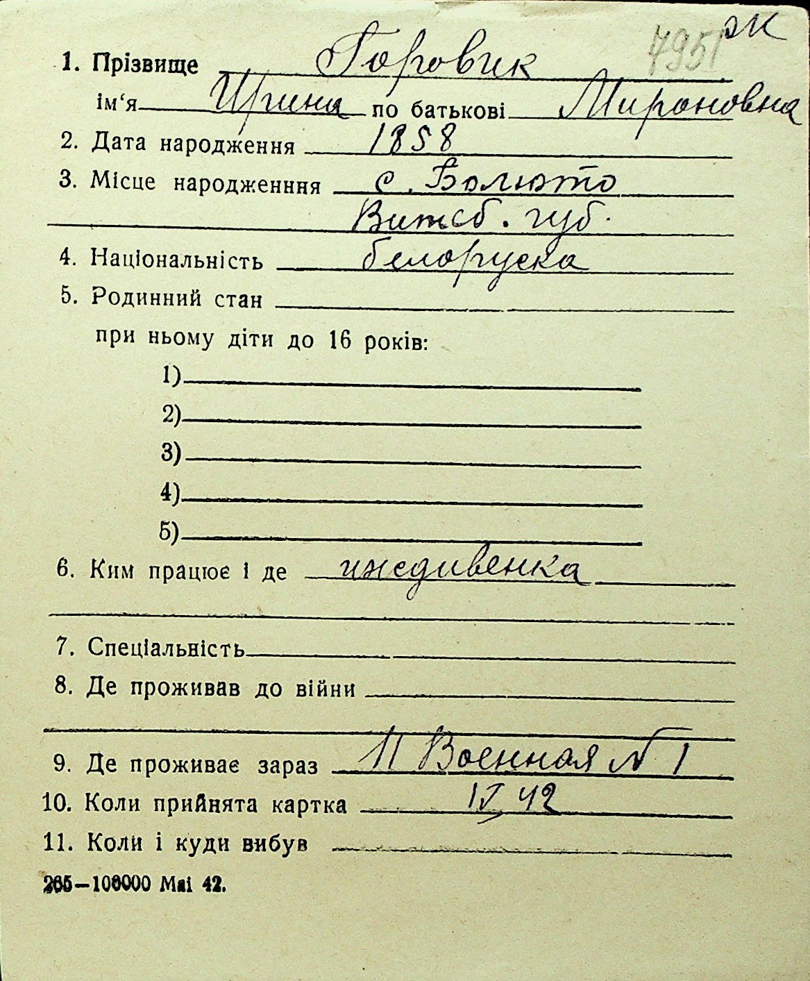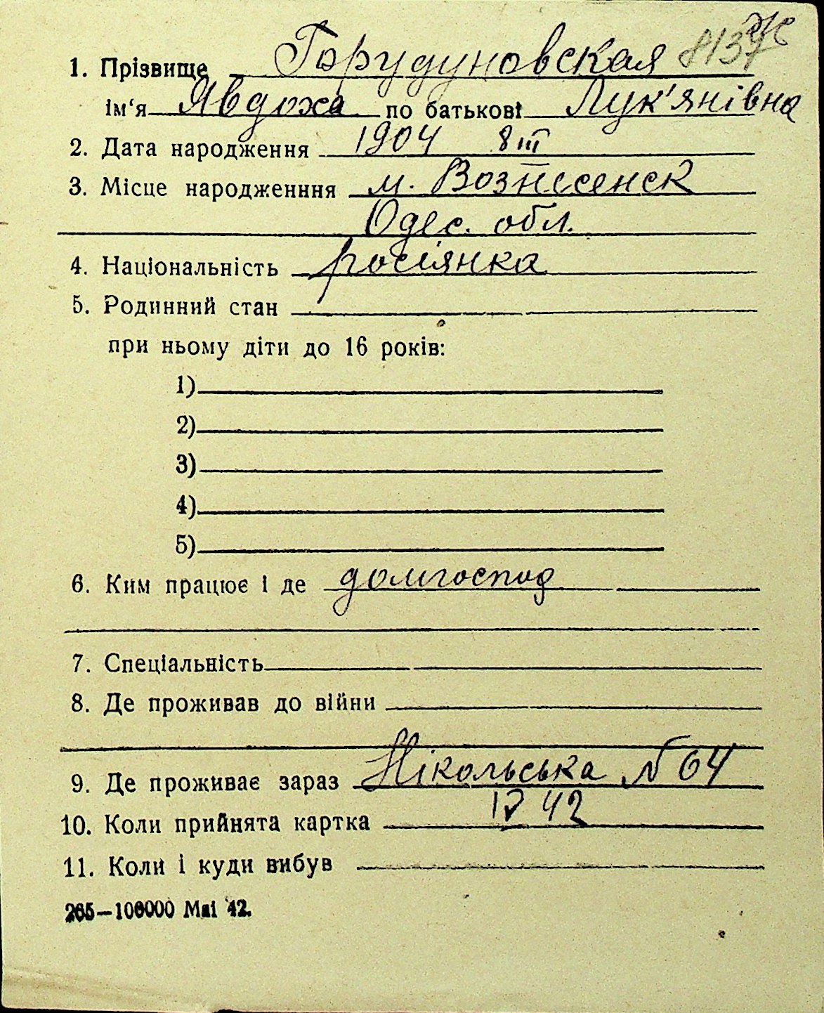 • • Перелік карток до фонду № Н-1016