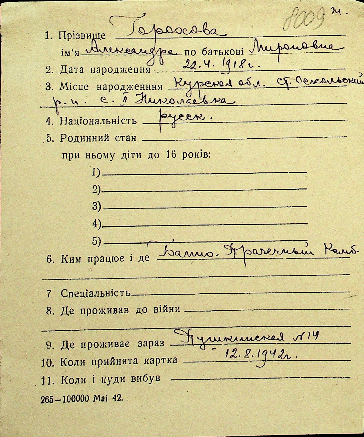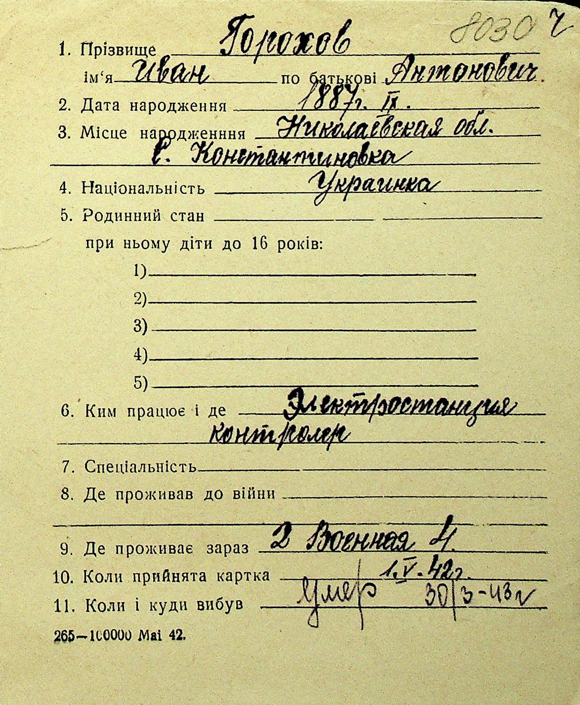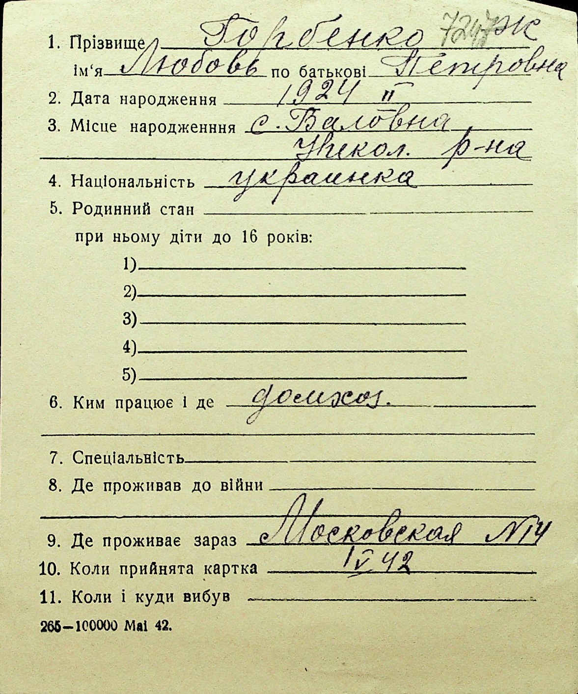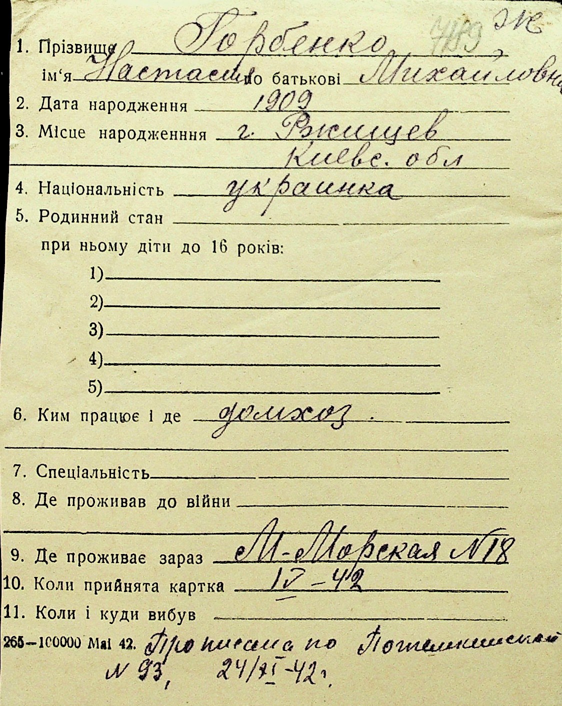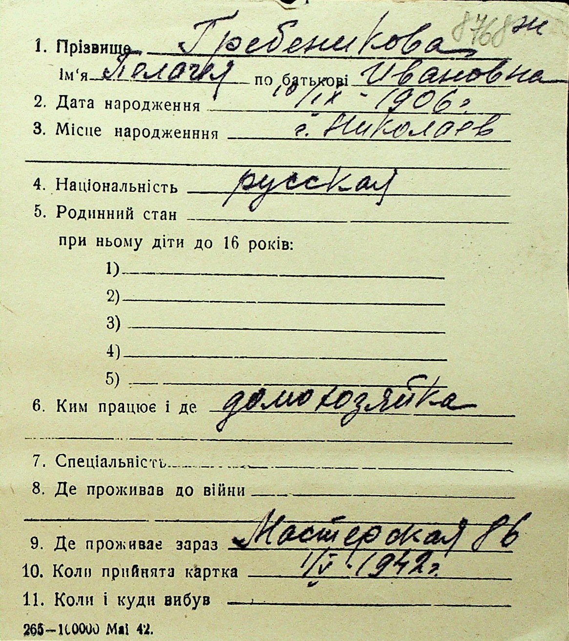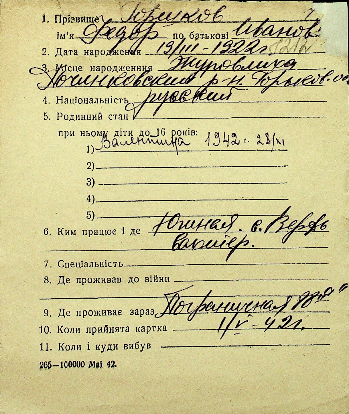 • • Перелік карток до фонду № Н-1016