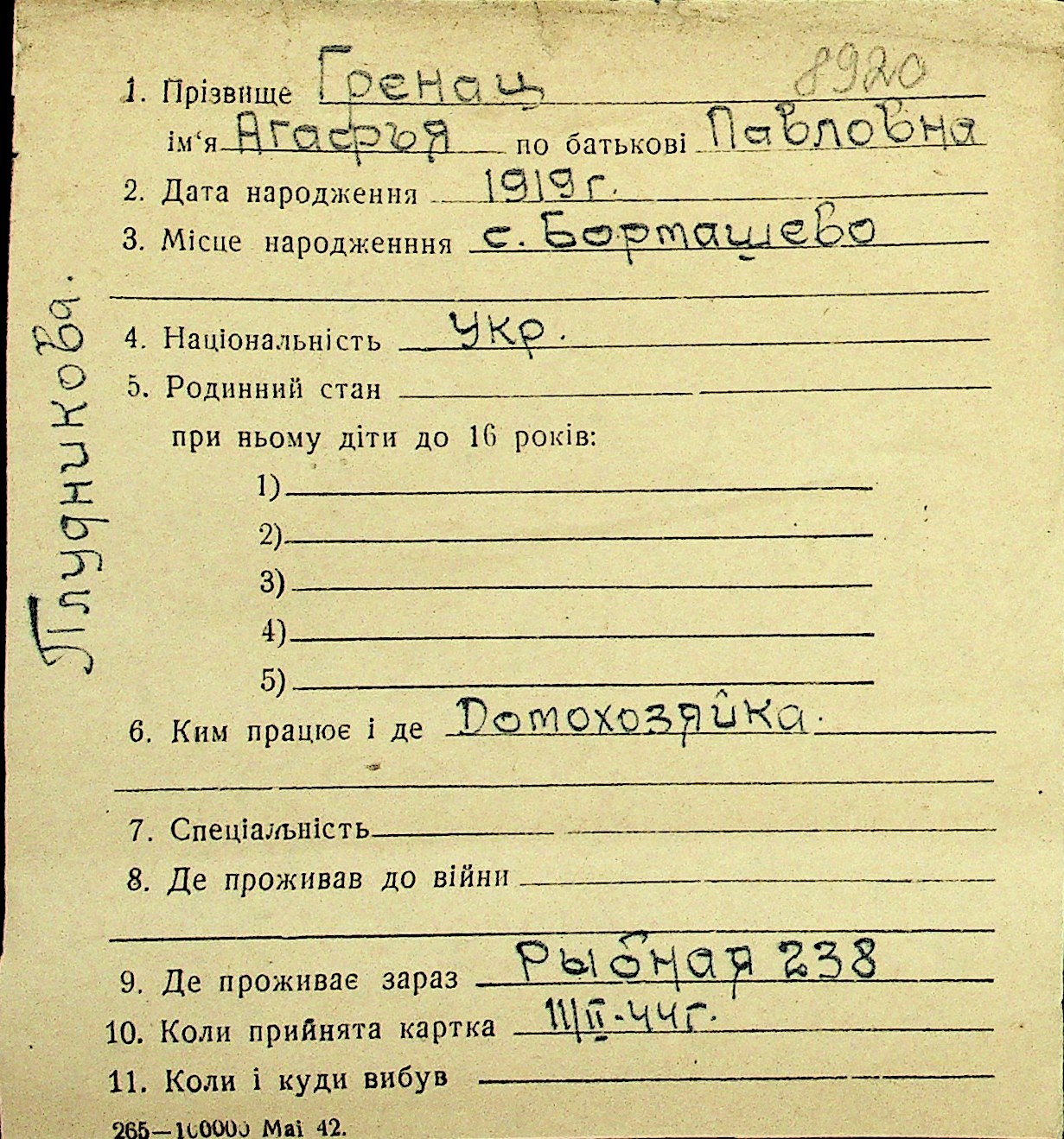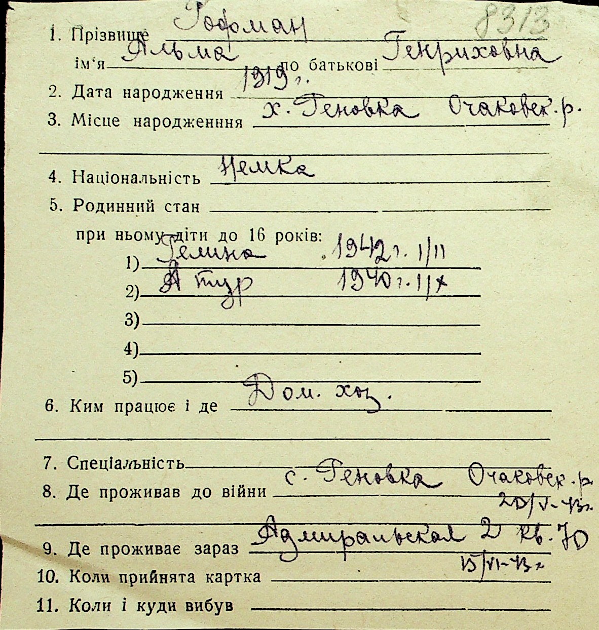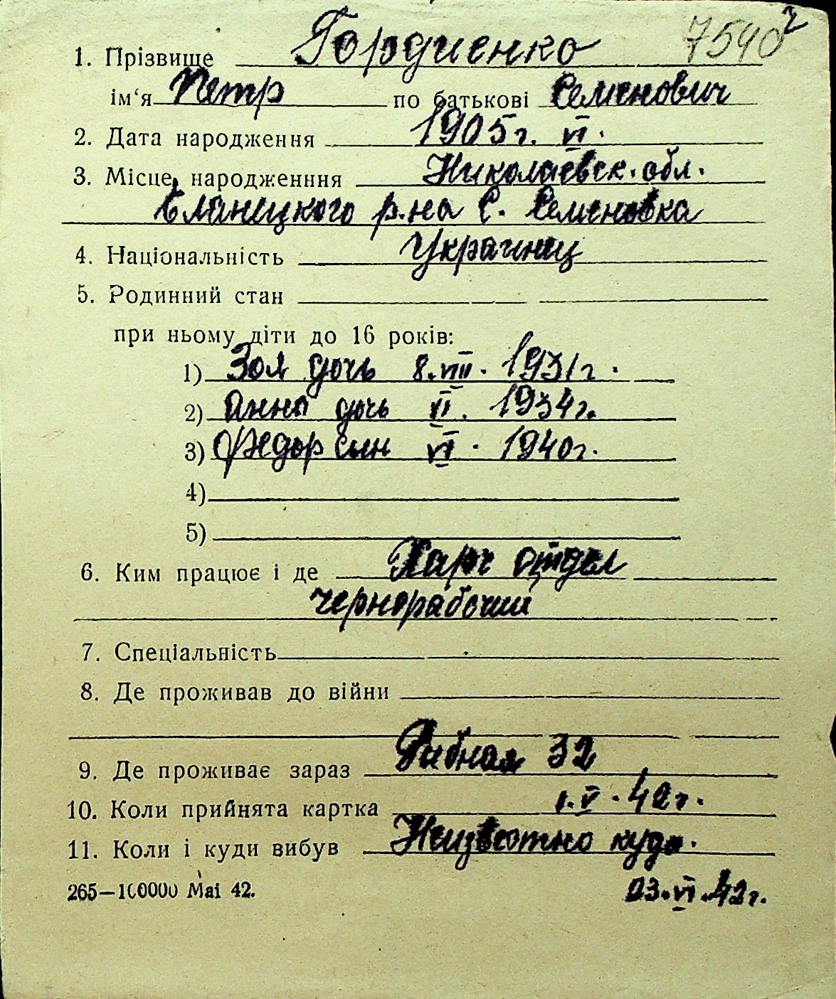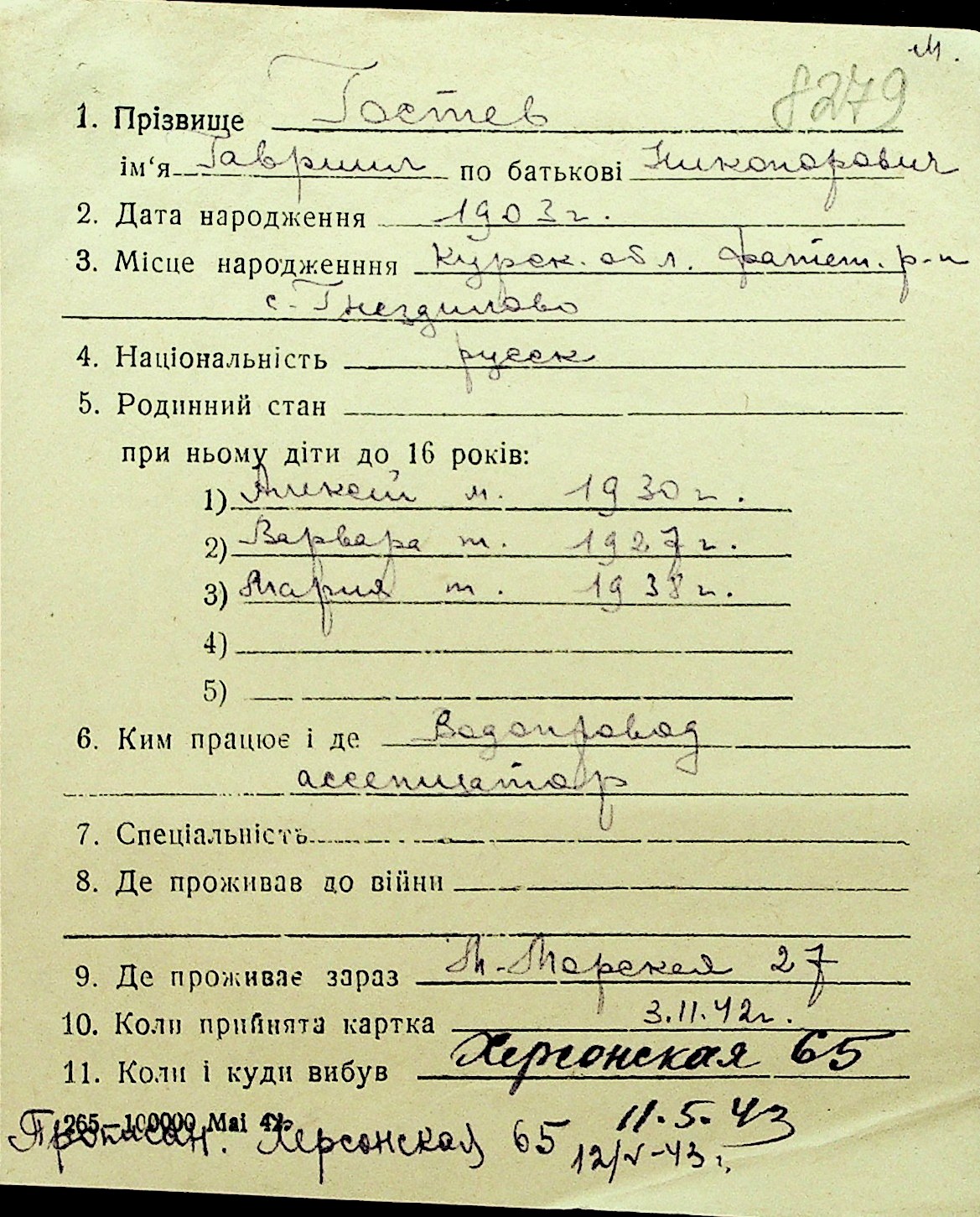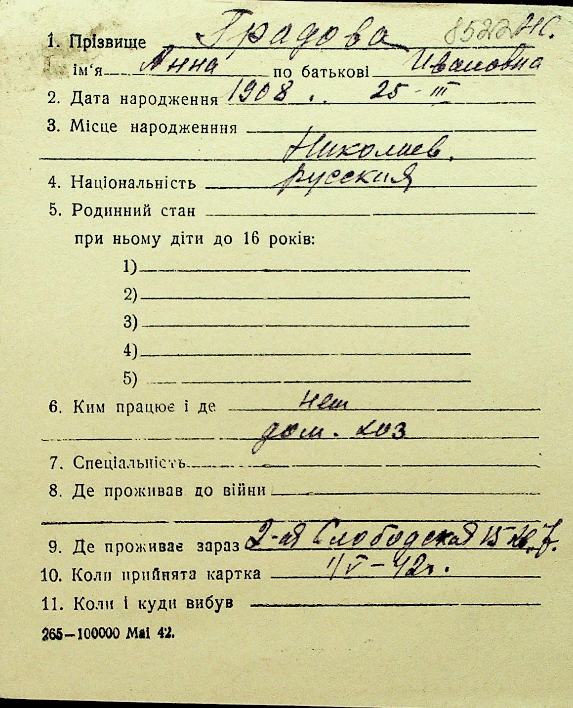 • • Перелік карток до фонду № Н-1016