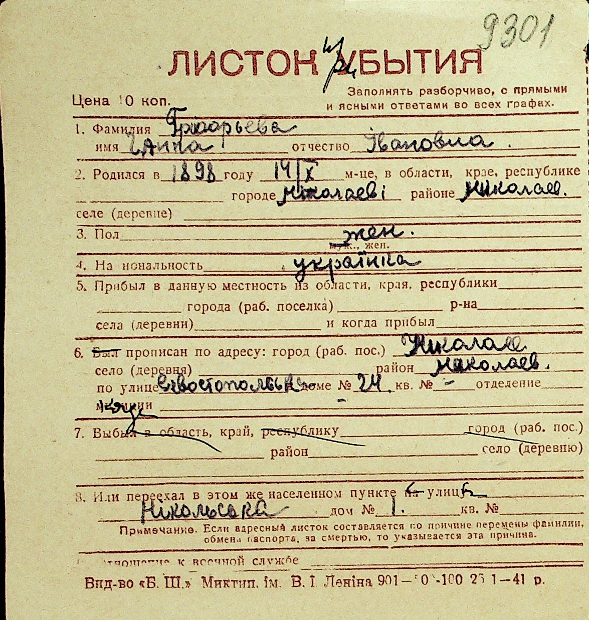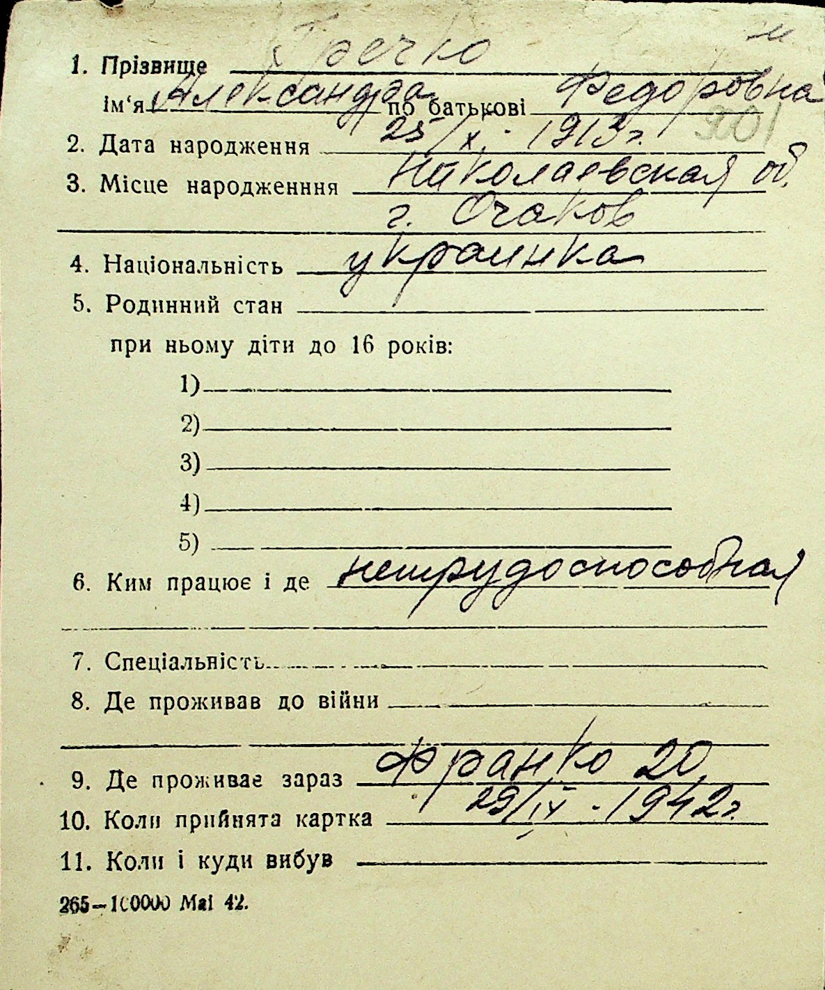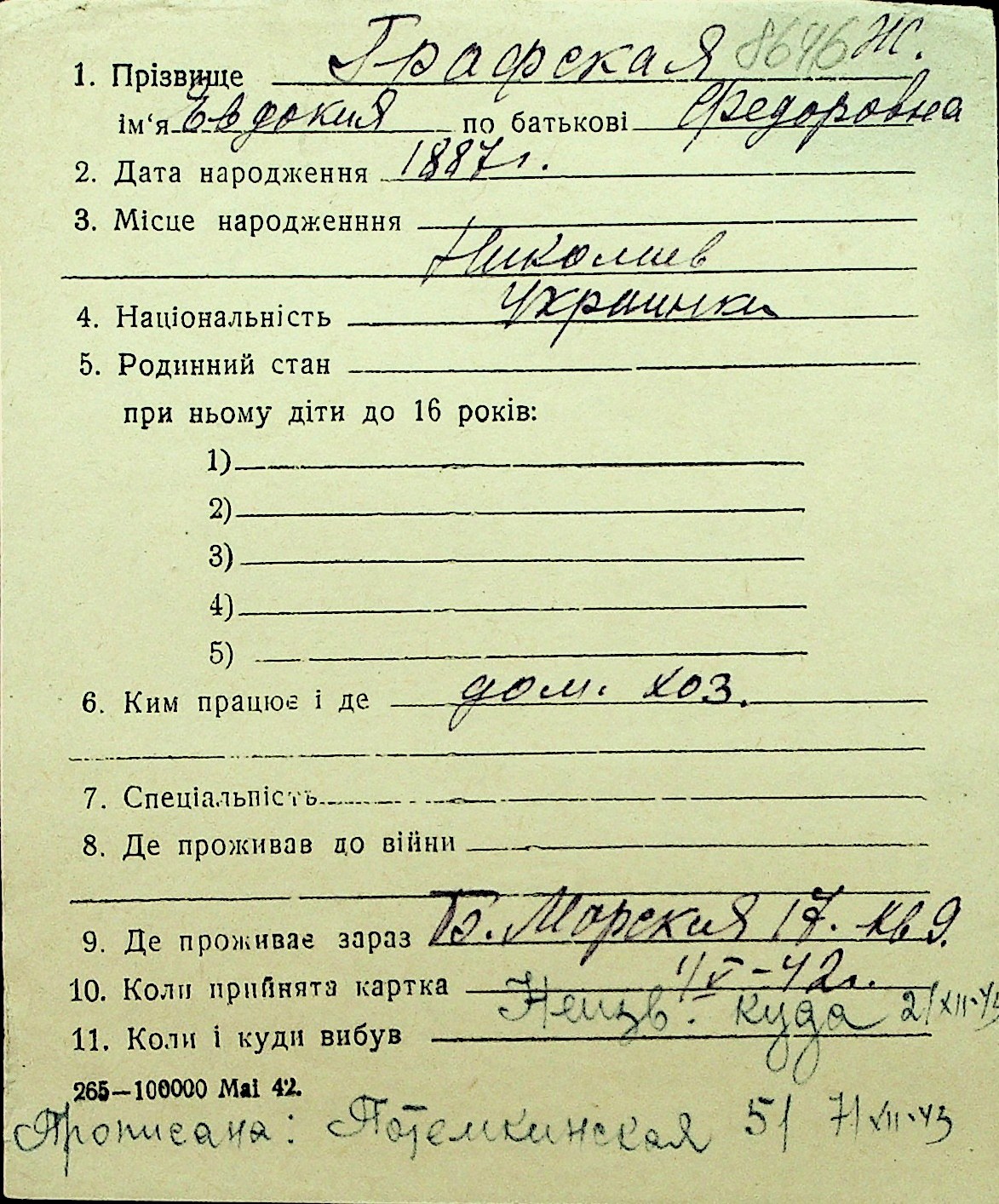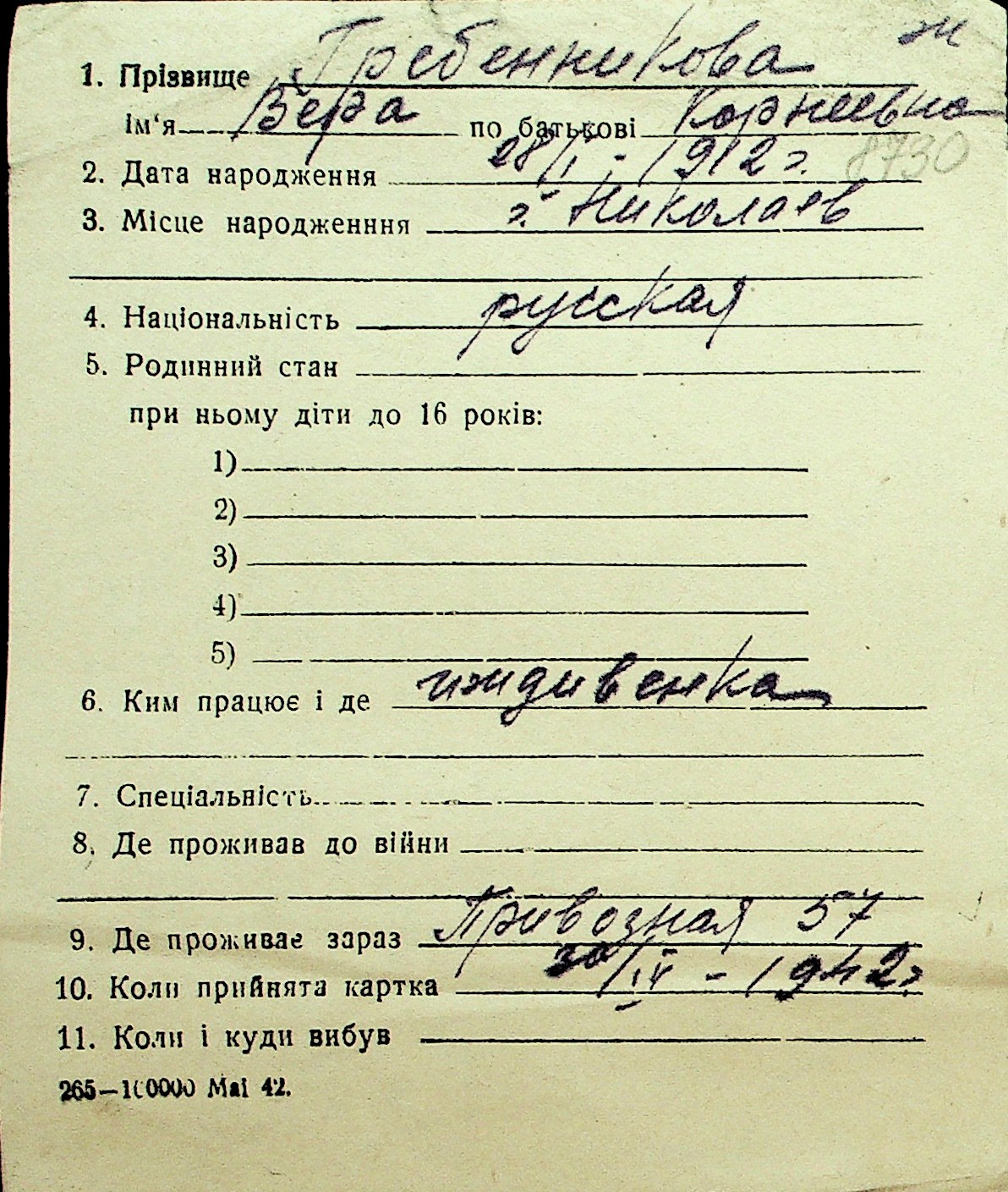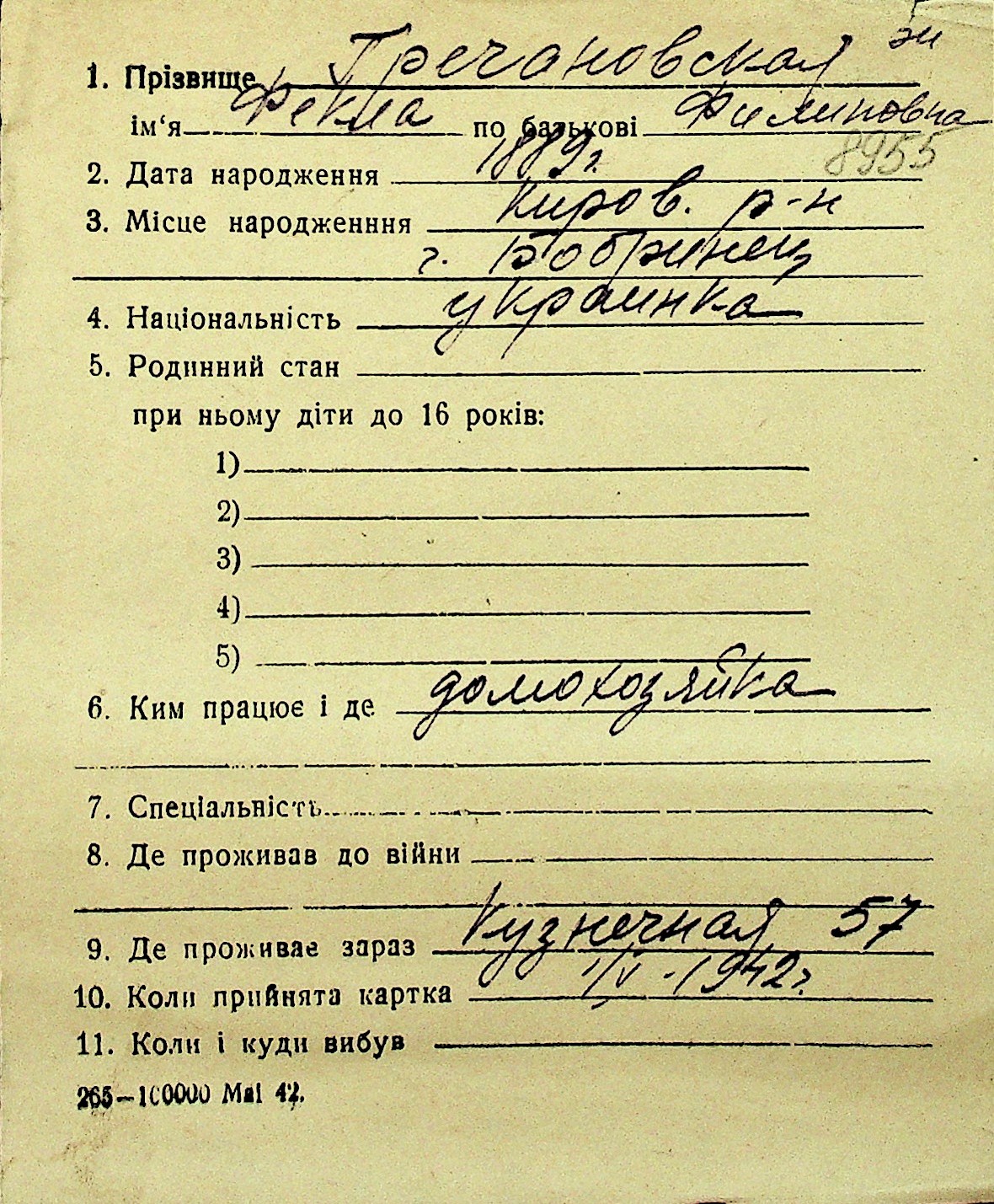 • • Перелік карток до фонду № Н-1016