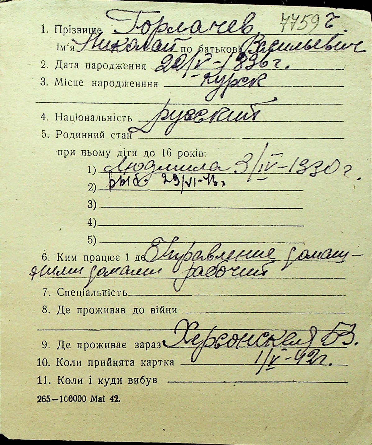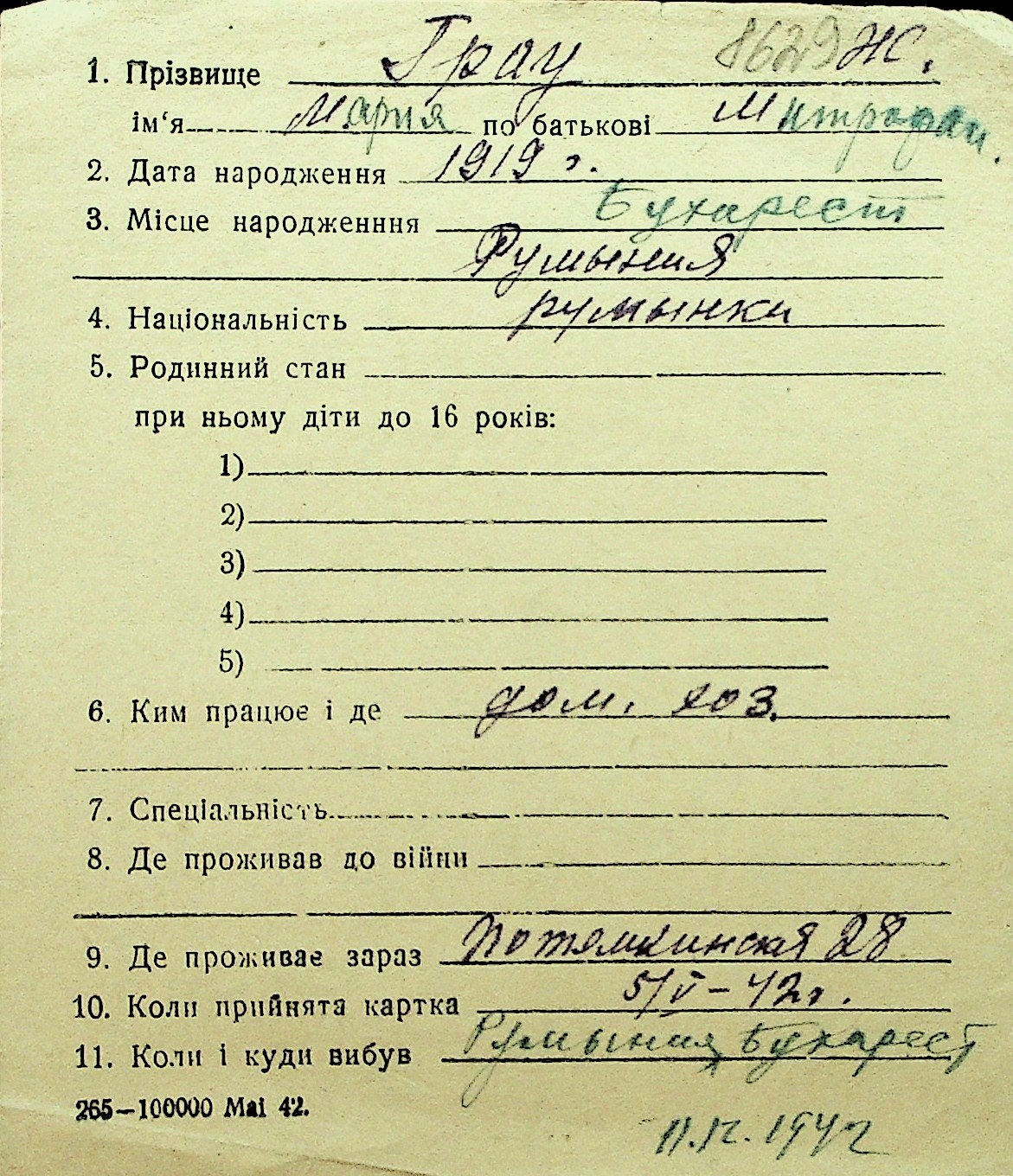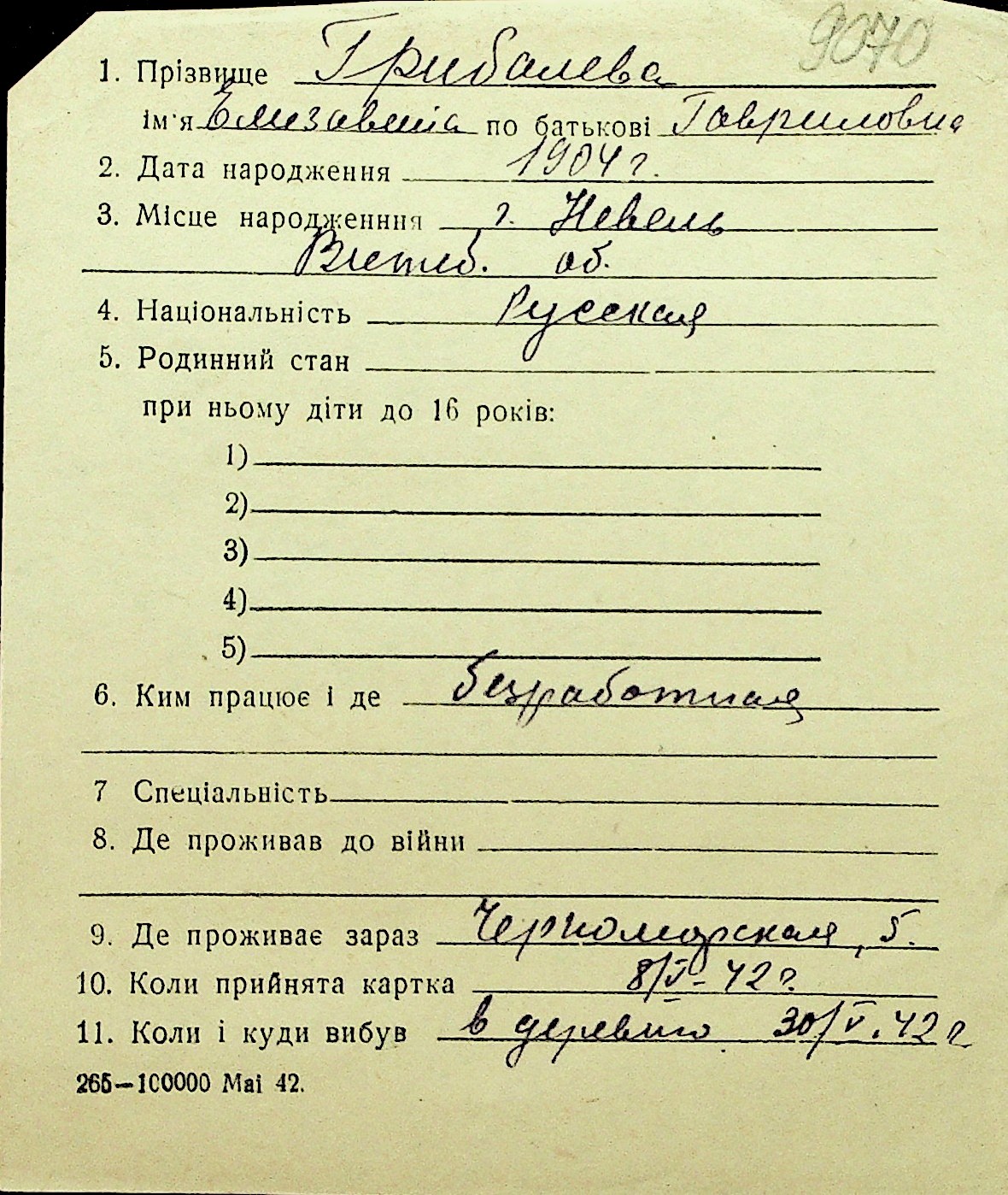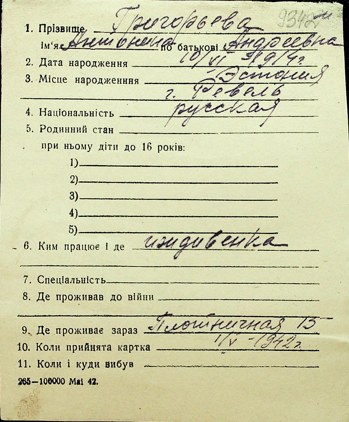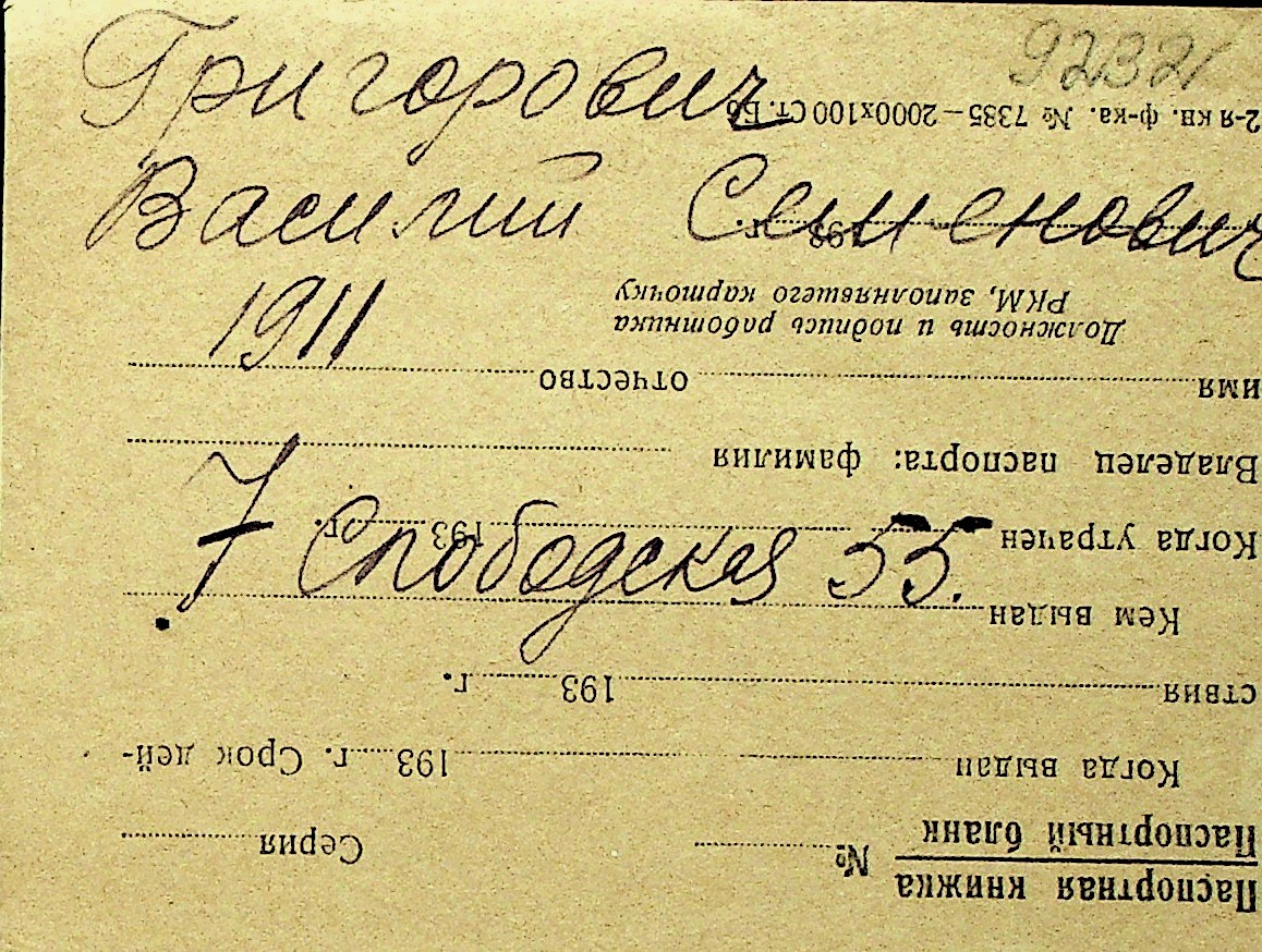 • • Перелік карток до фонду № Н-1016