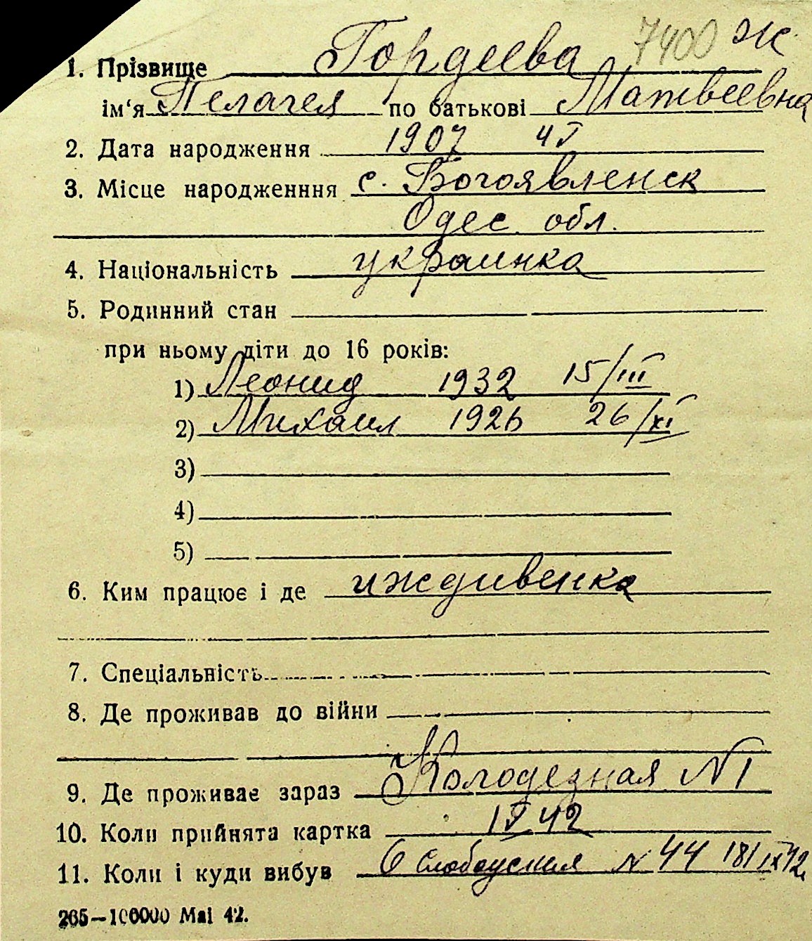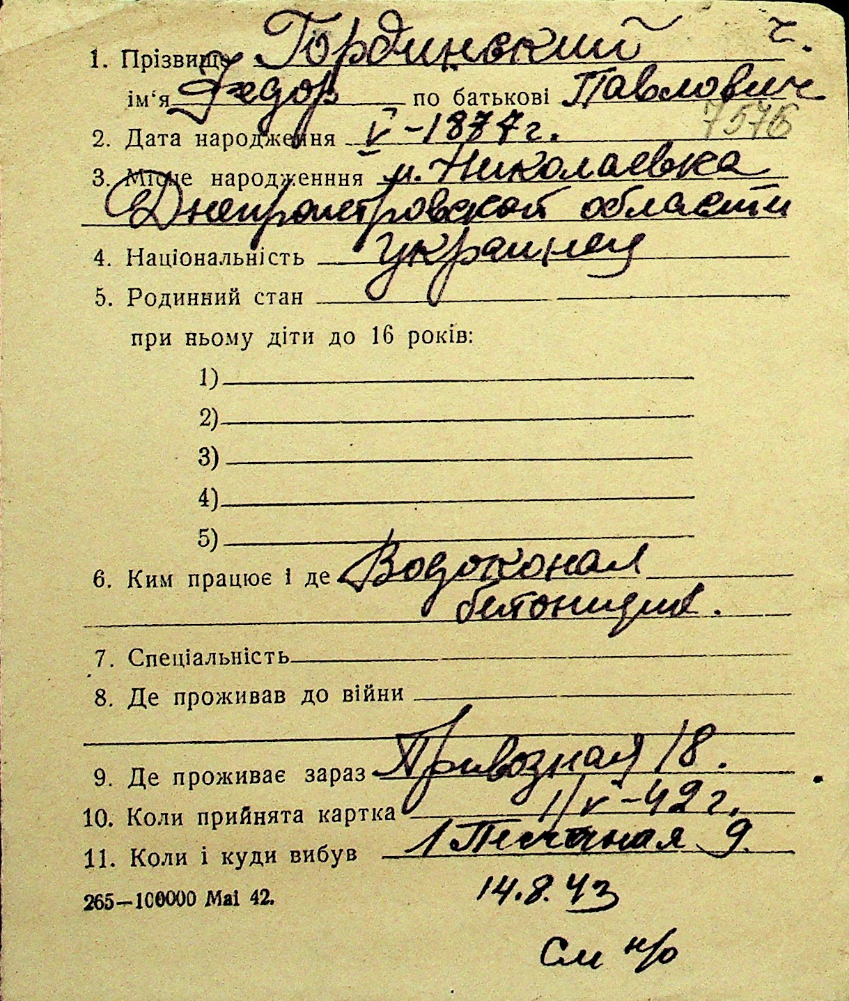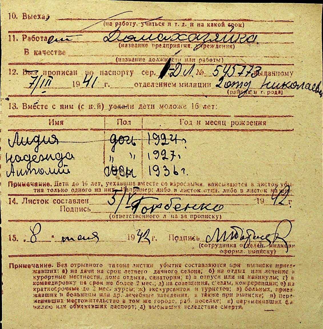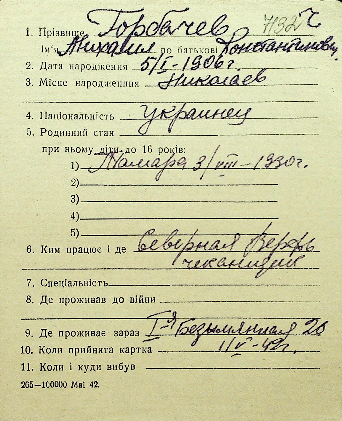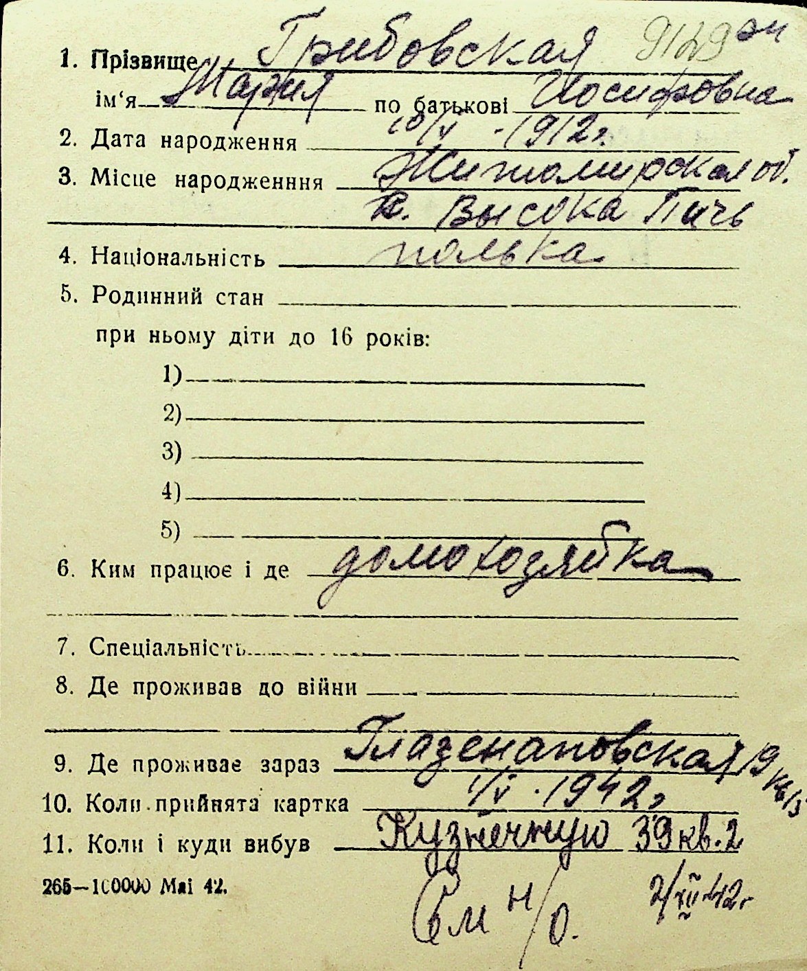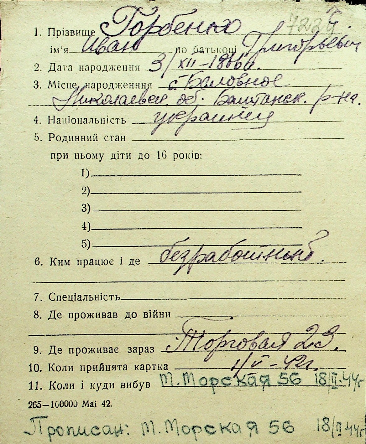 • • Перелік карток до фонду № Н-1016