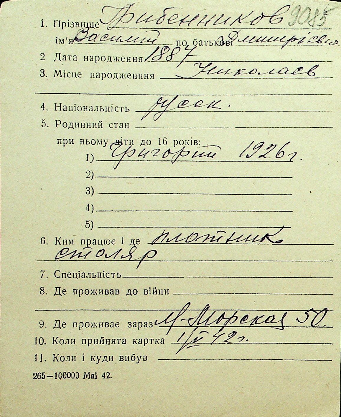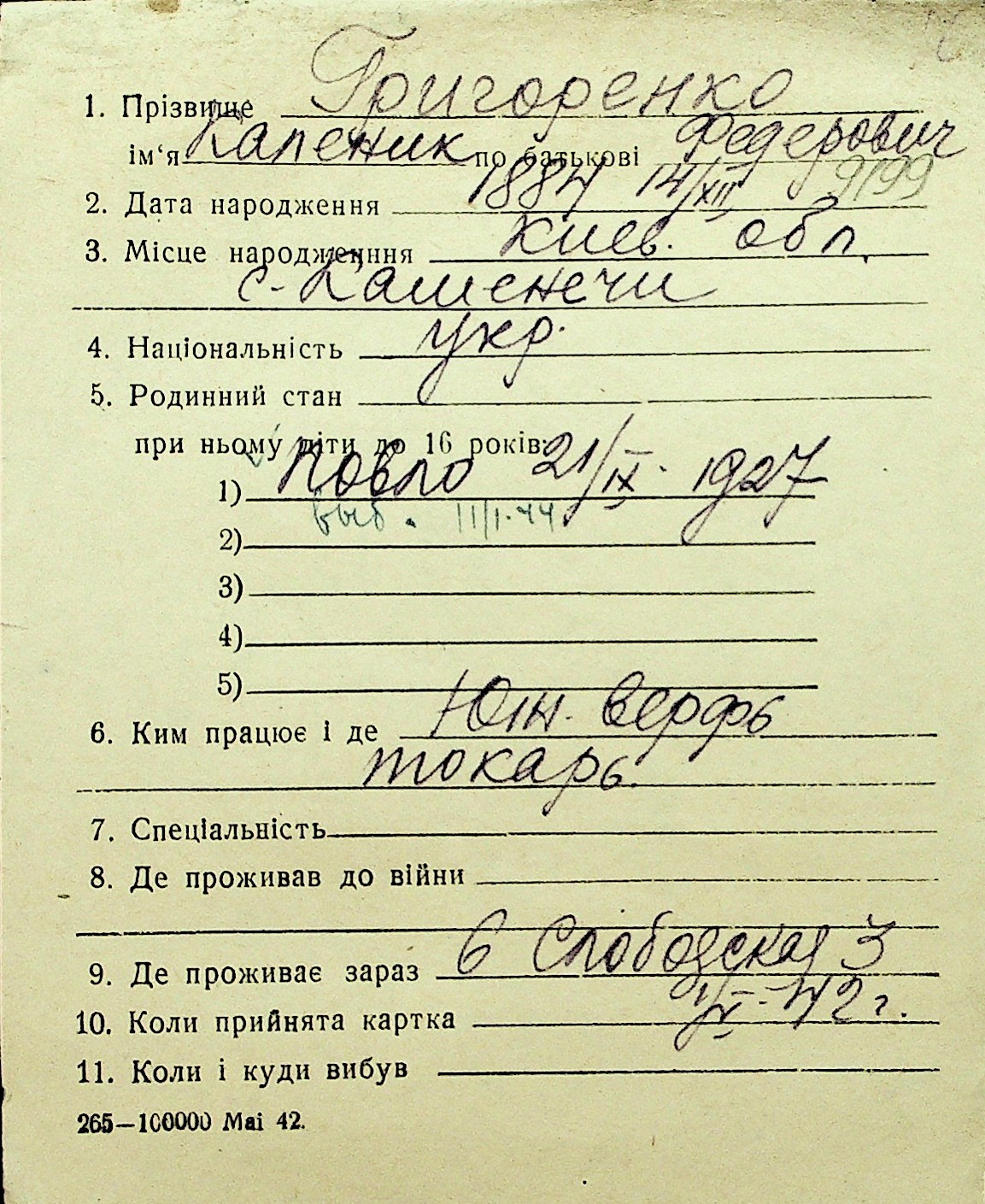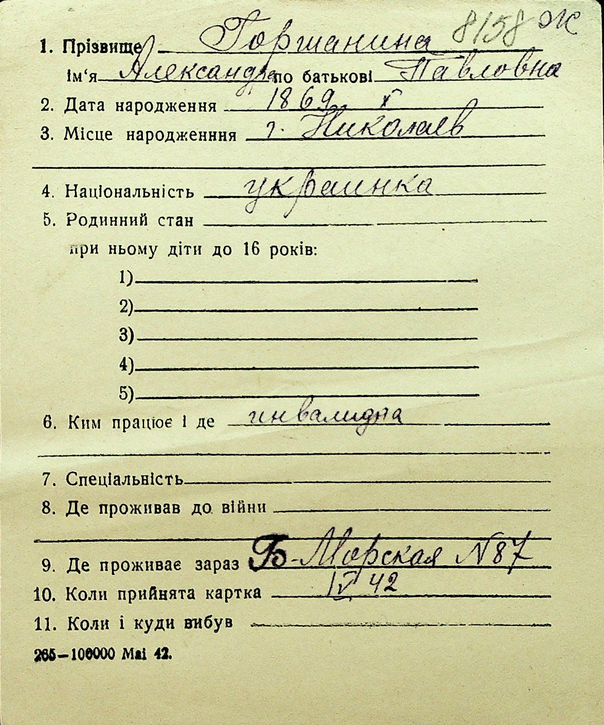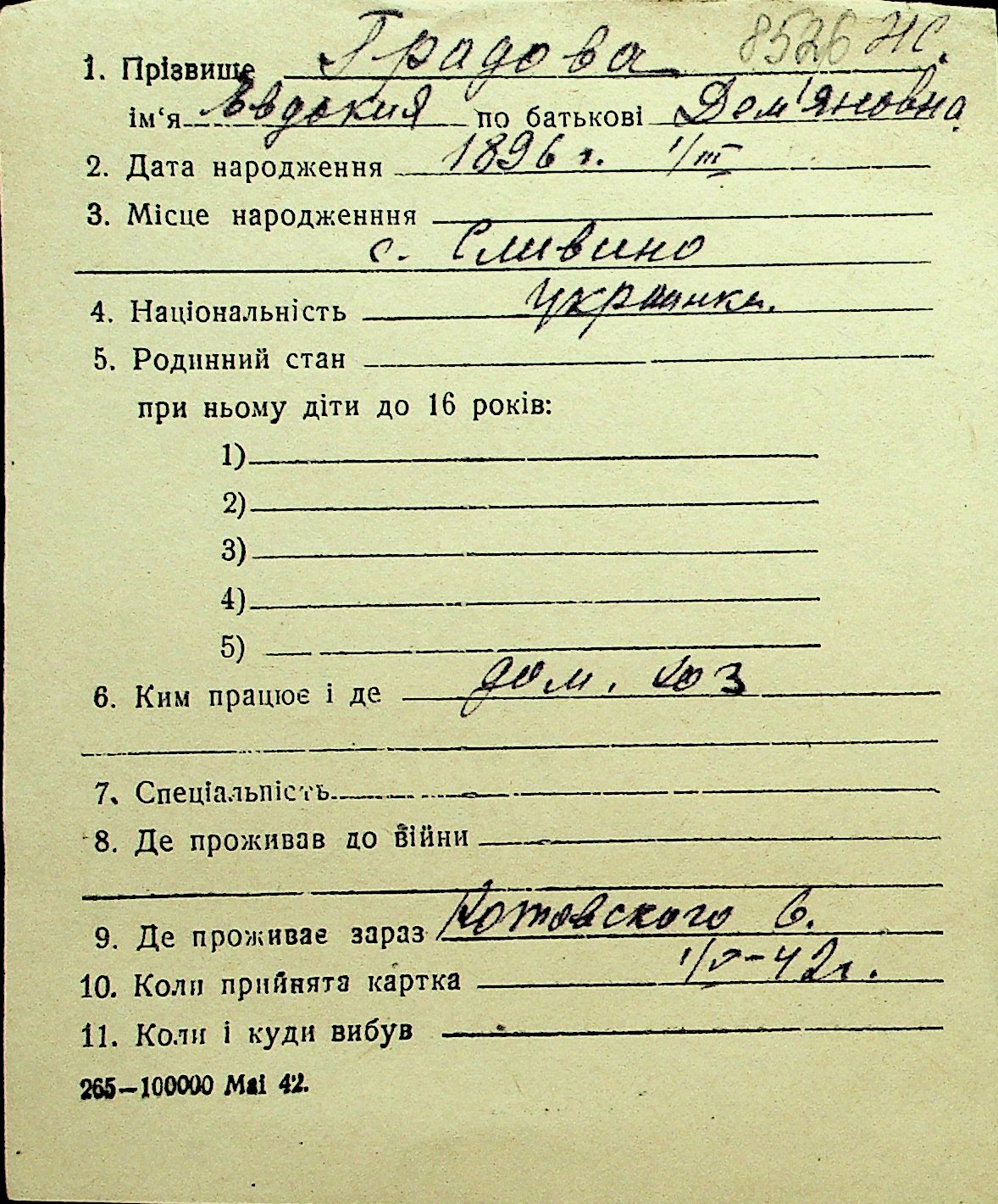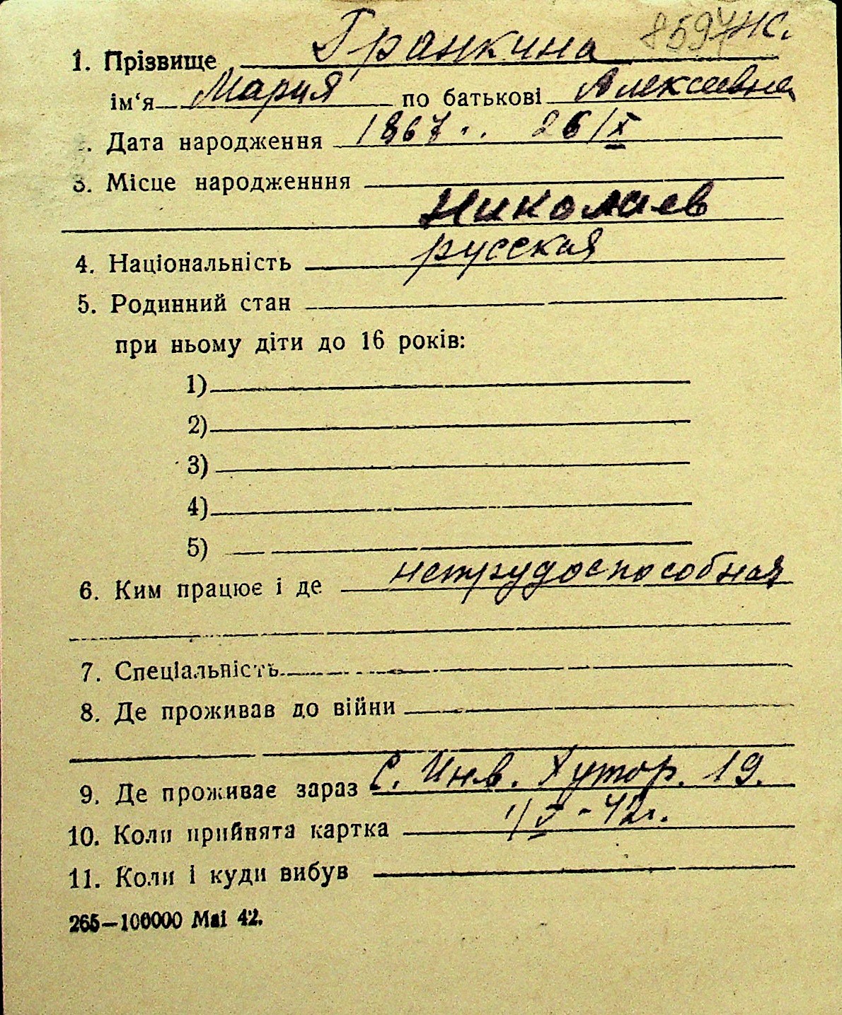 • • Перелік карток до фонду № Н-1016
