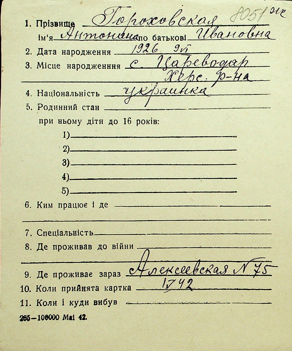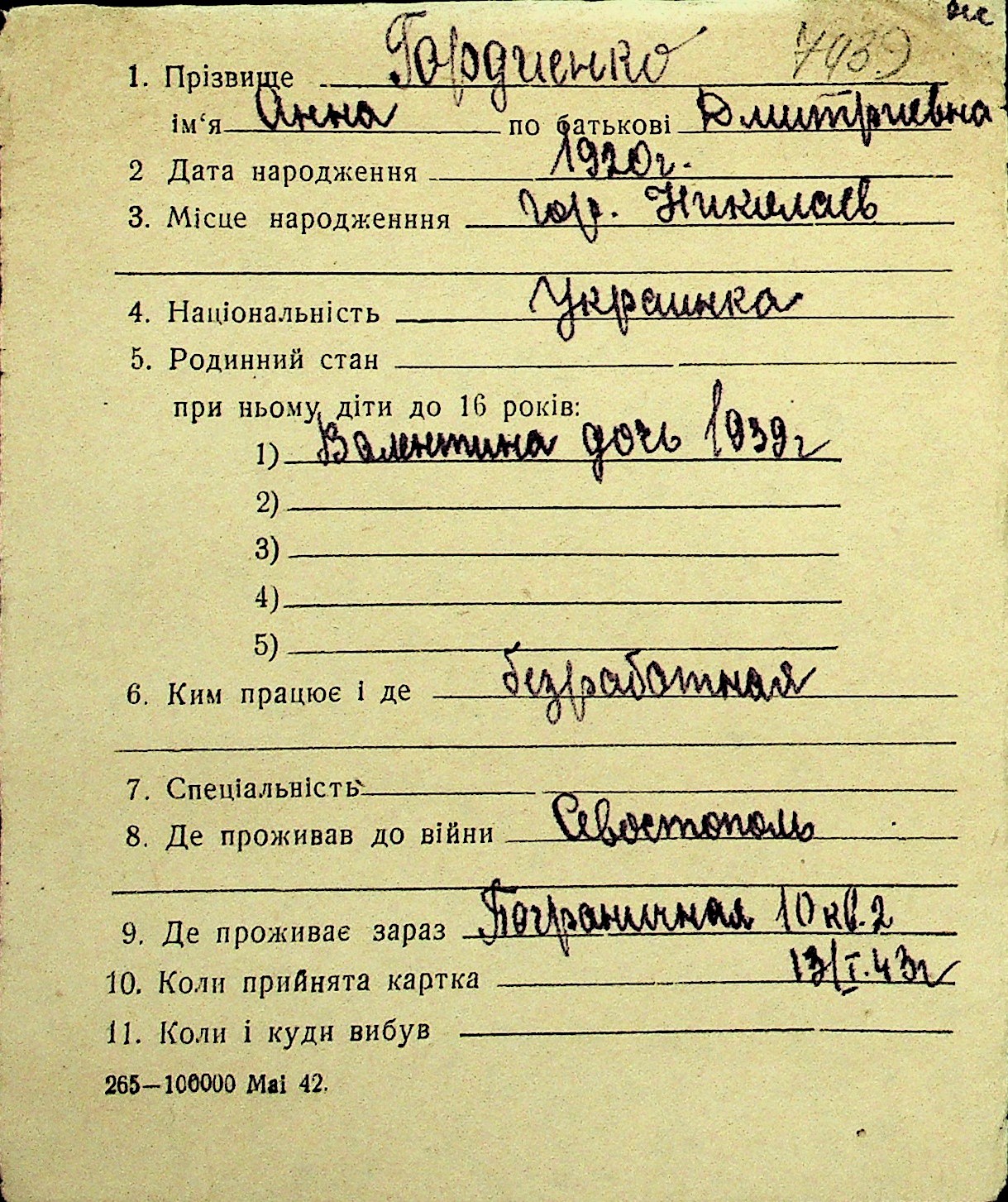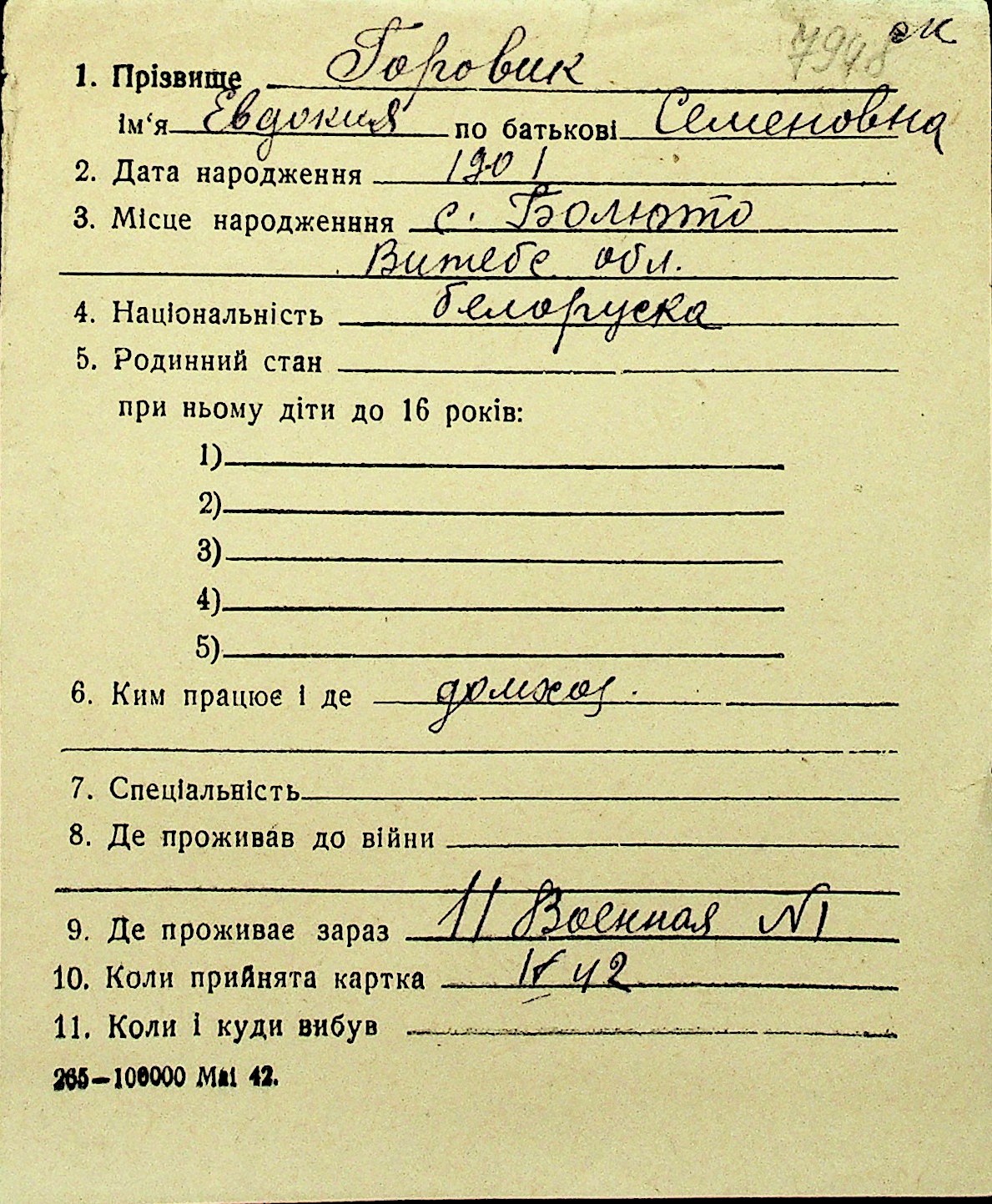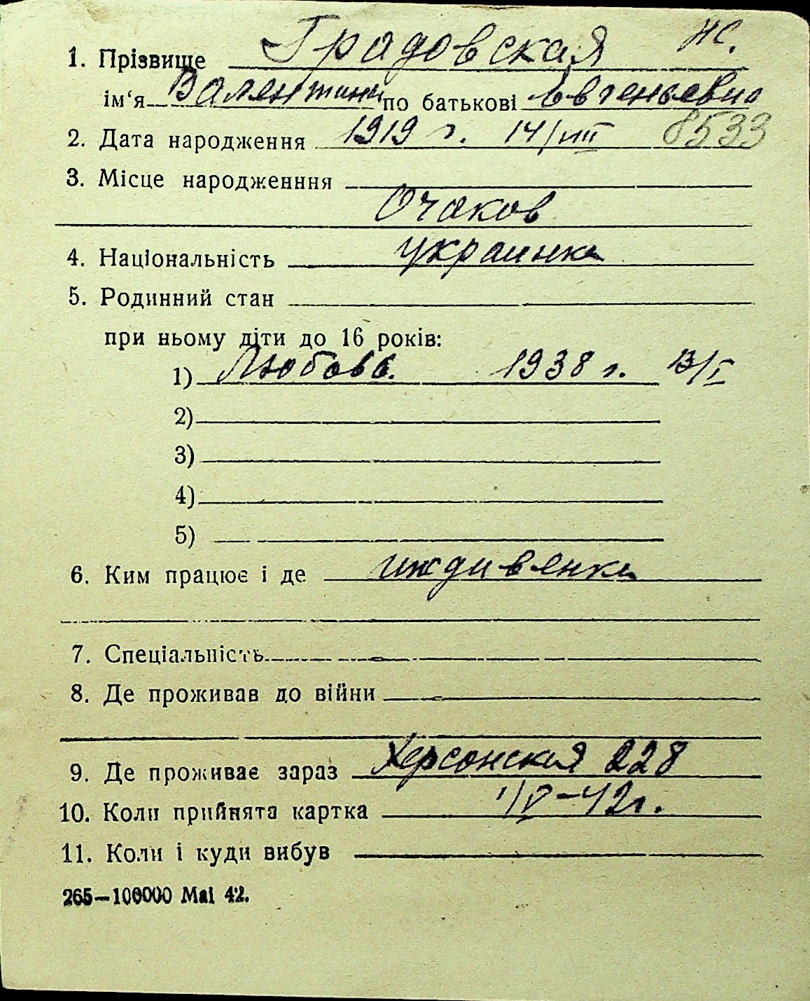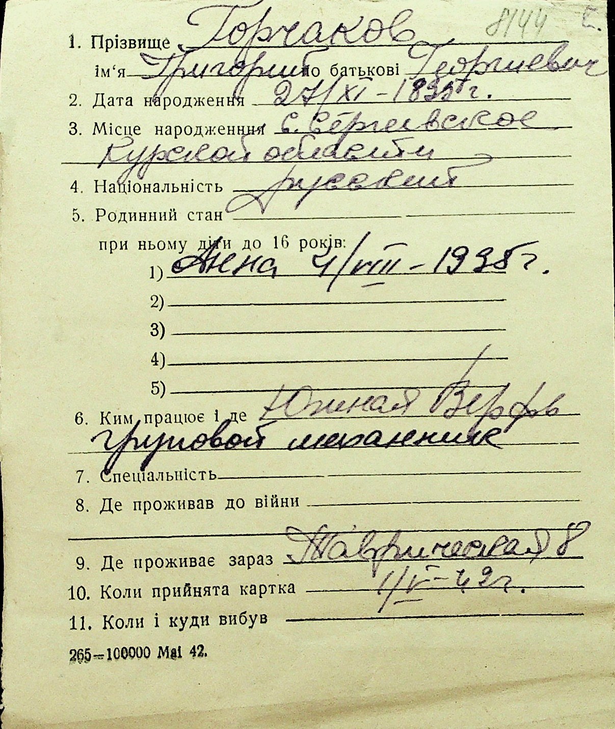 • • Перелік карток до фонду № Н-1016