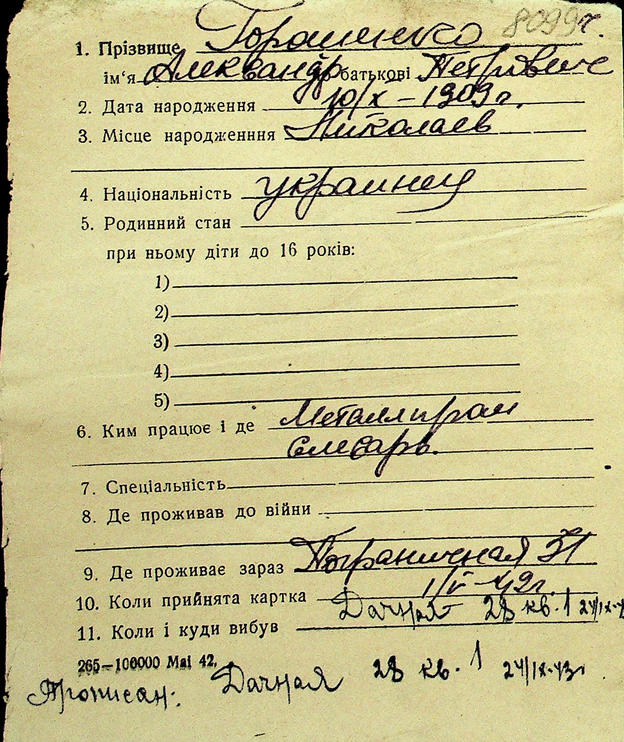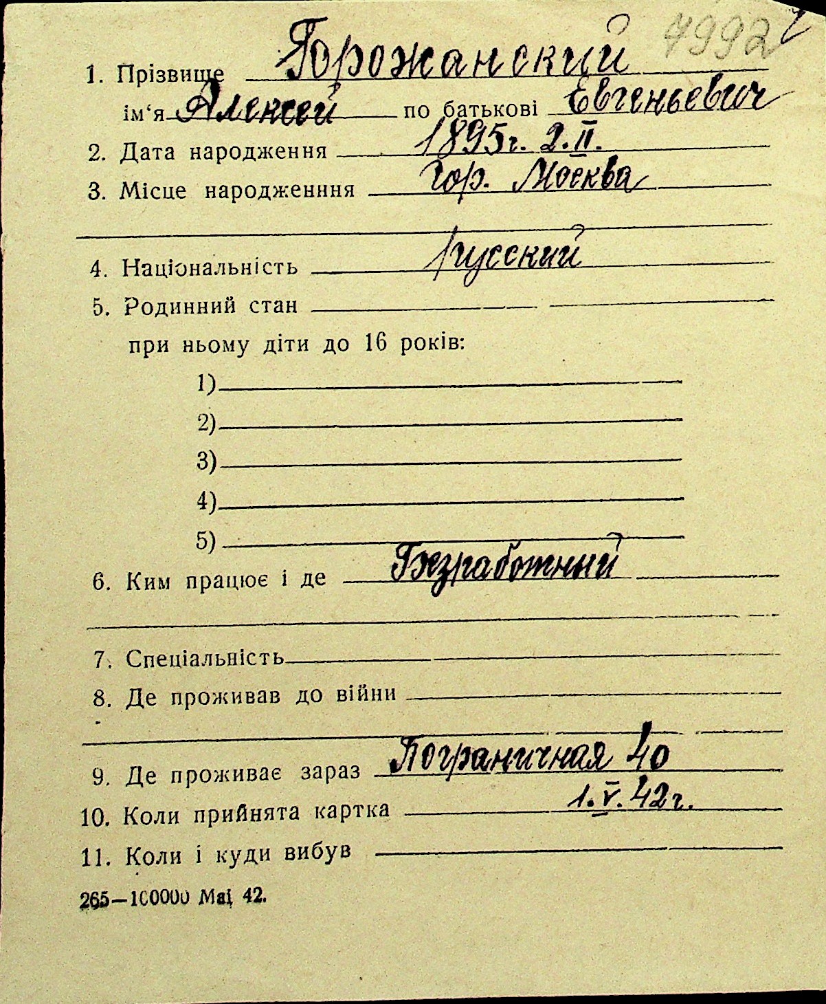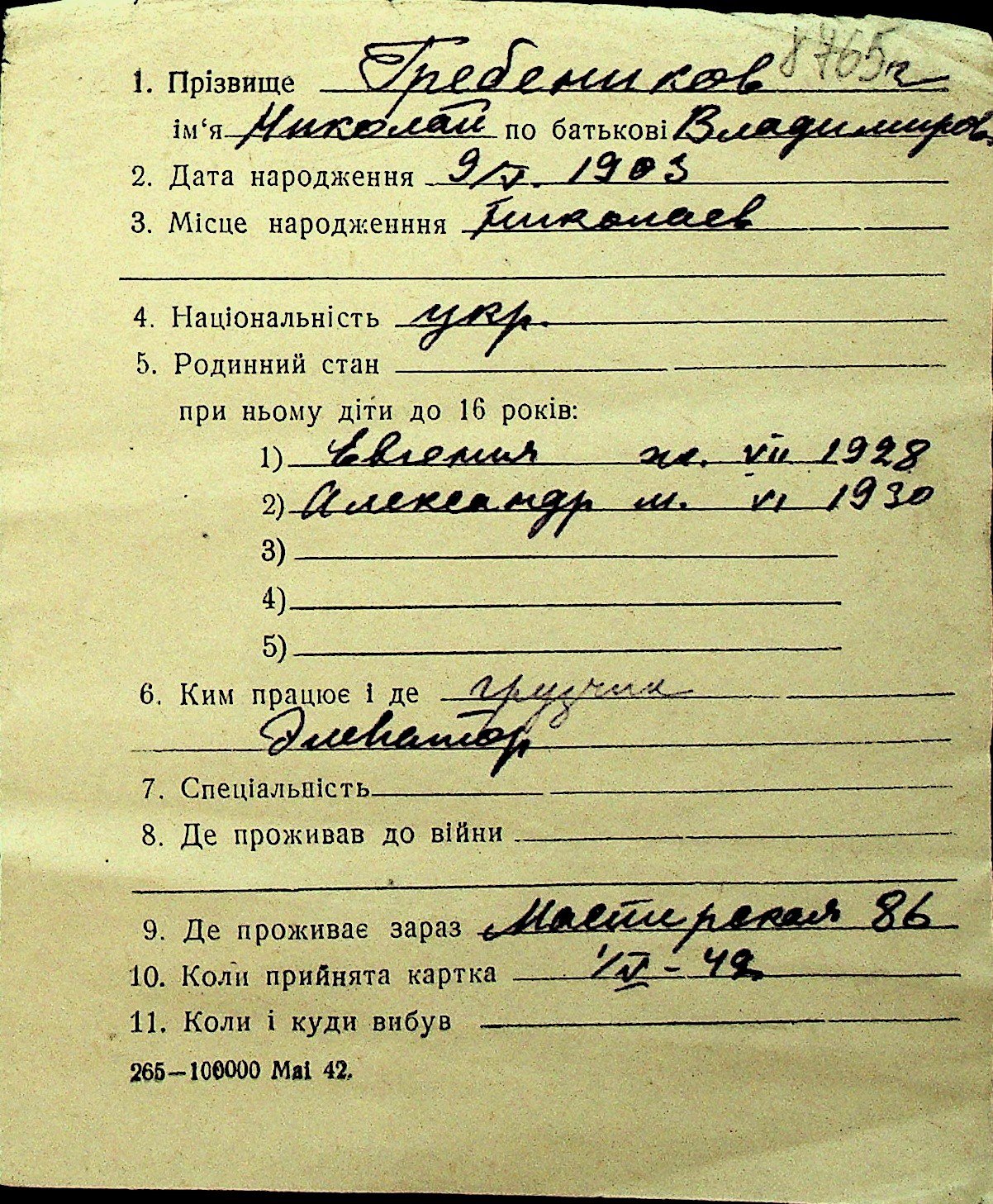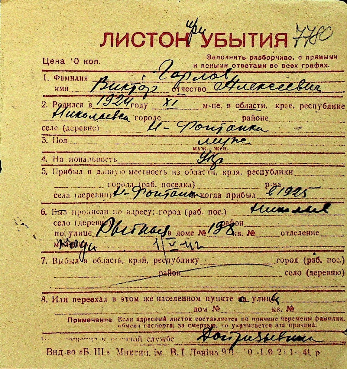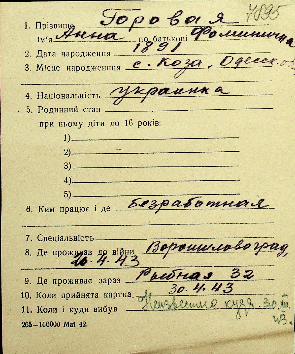 • • Перелік карток до фонду № Н-1016