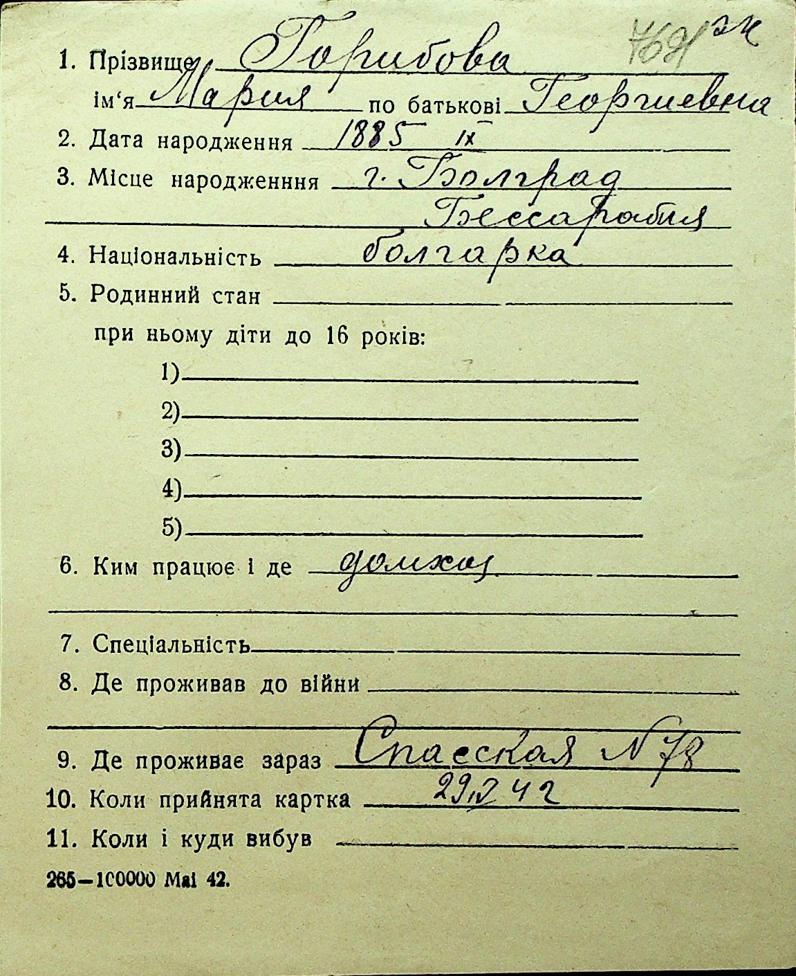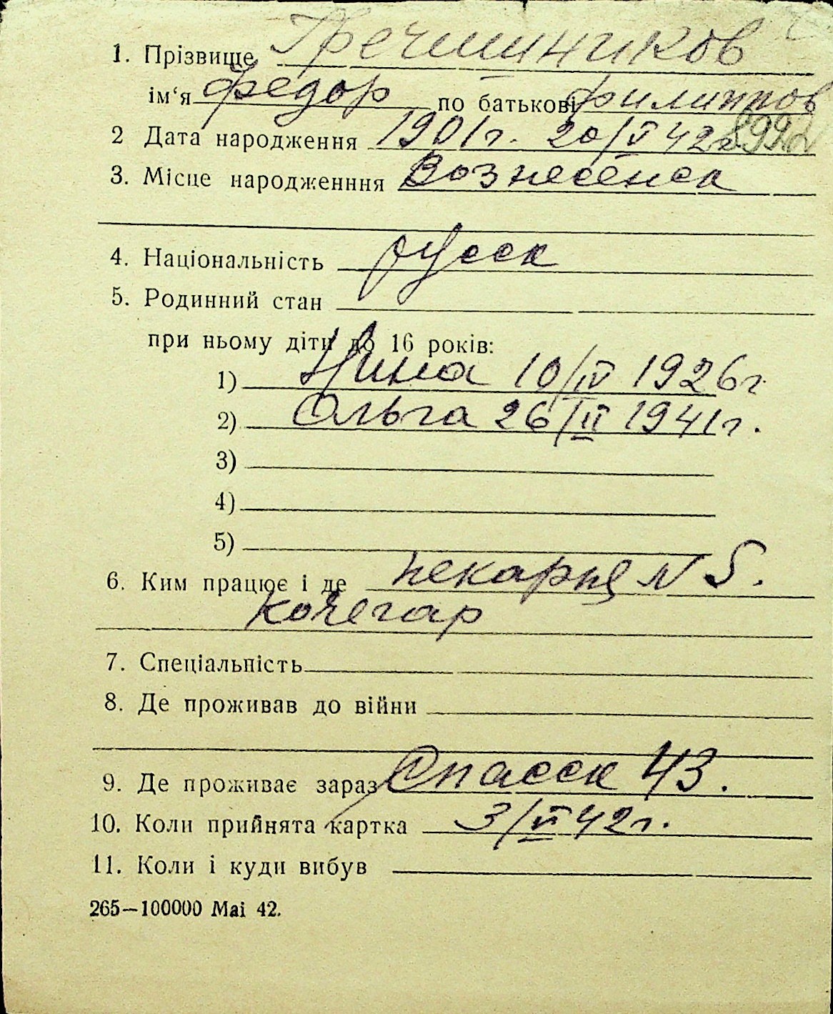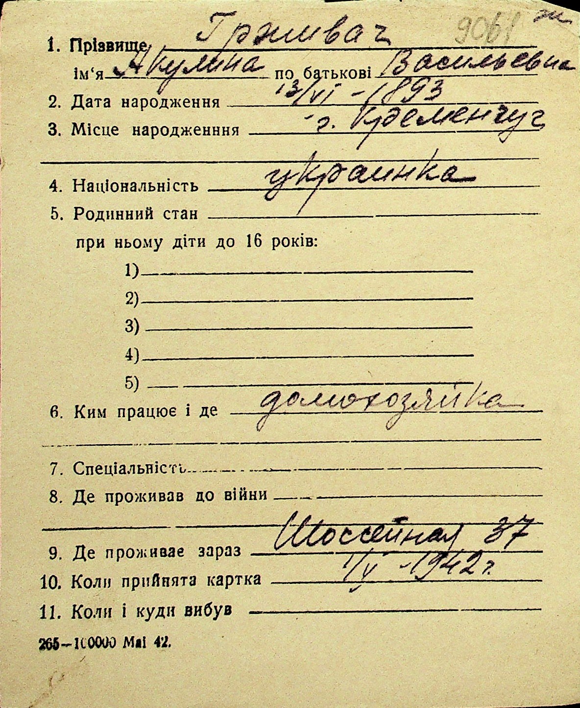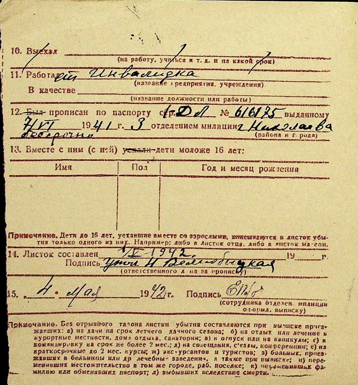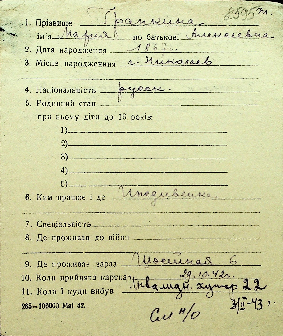 • • Перелік карток до фонду № Н-1016