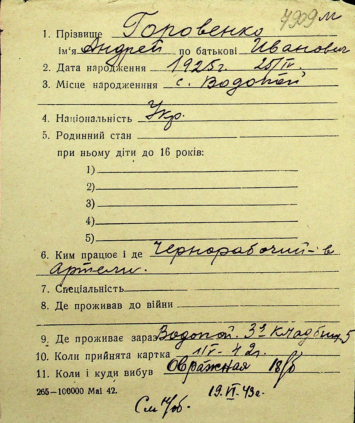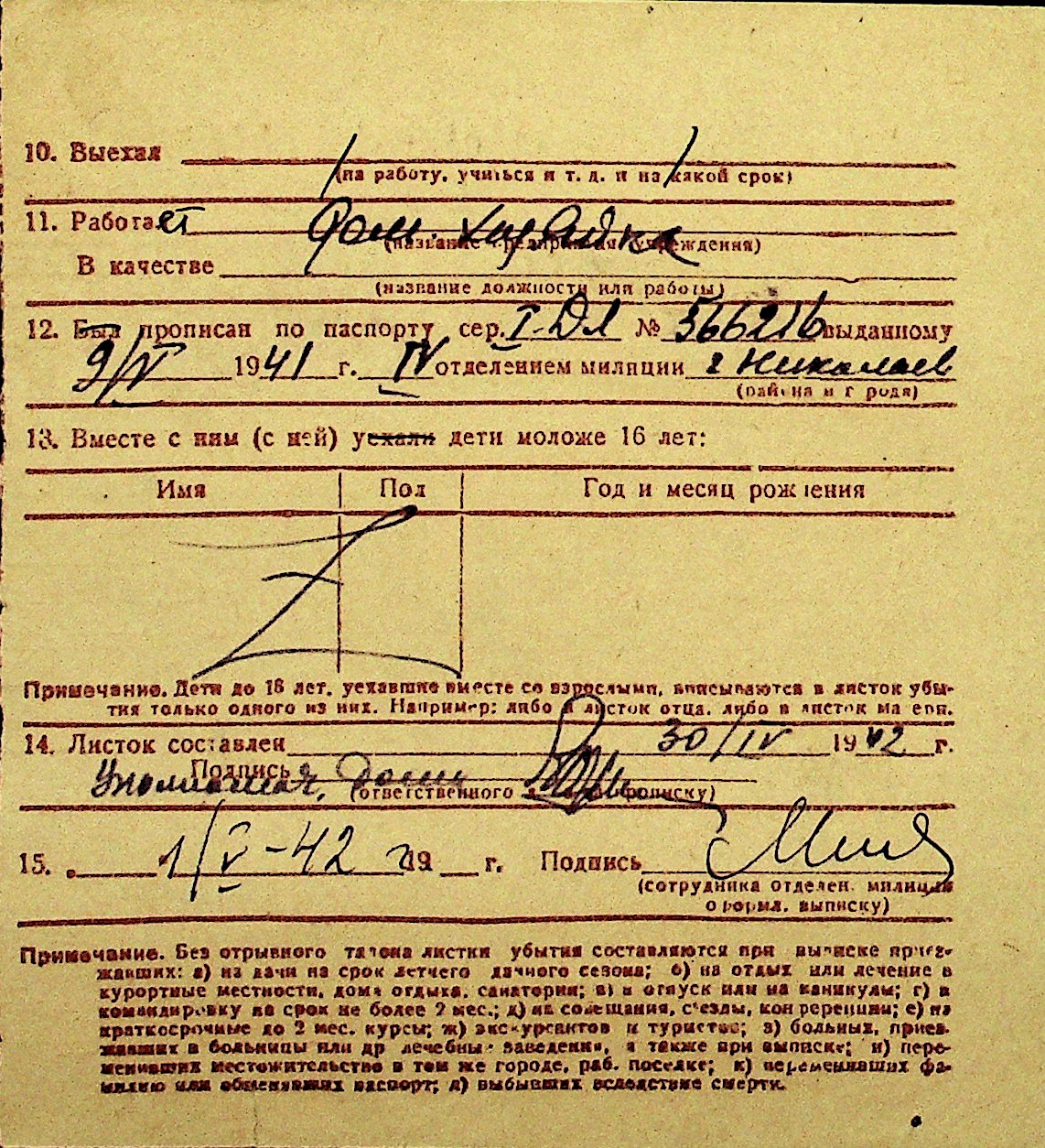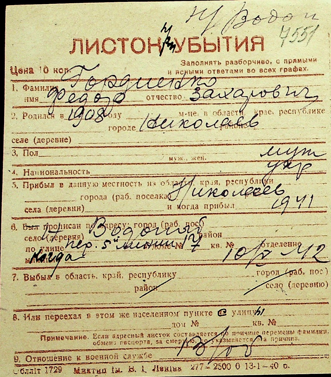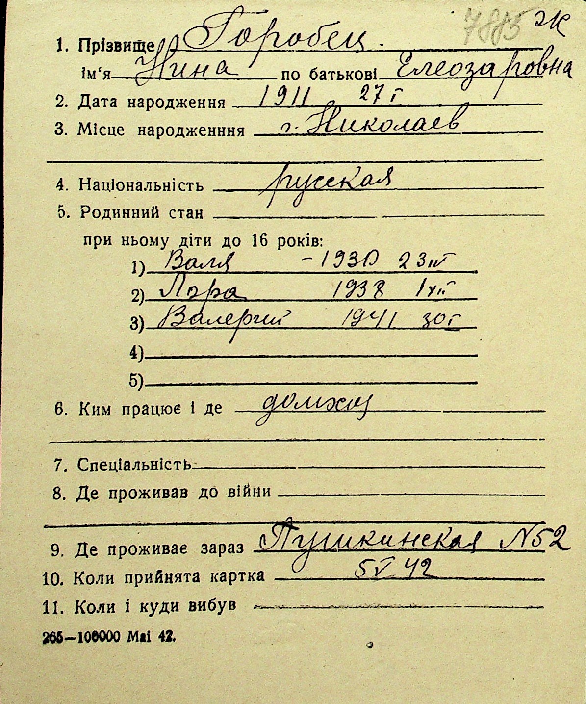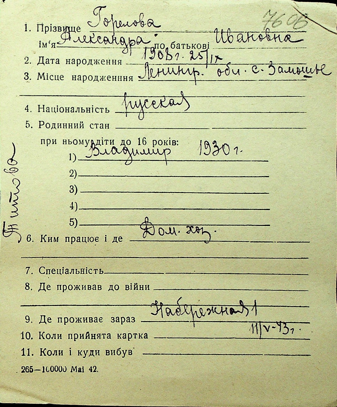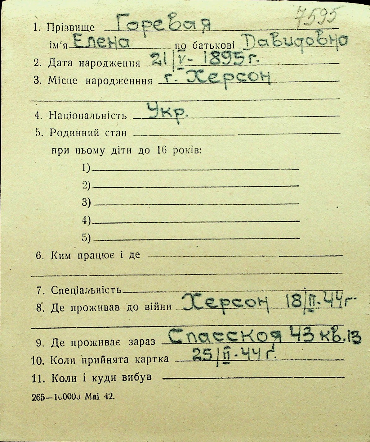 • • Перелік карток до фонду № Н-1016