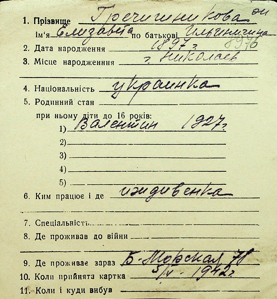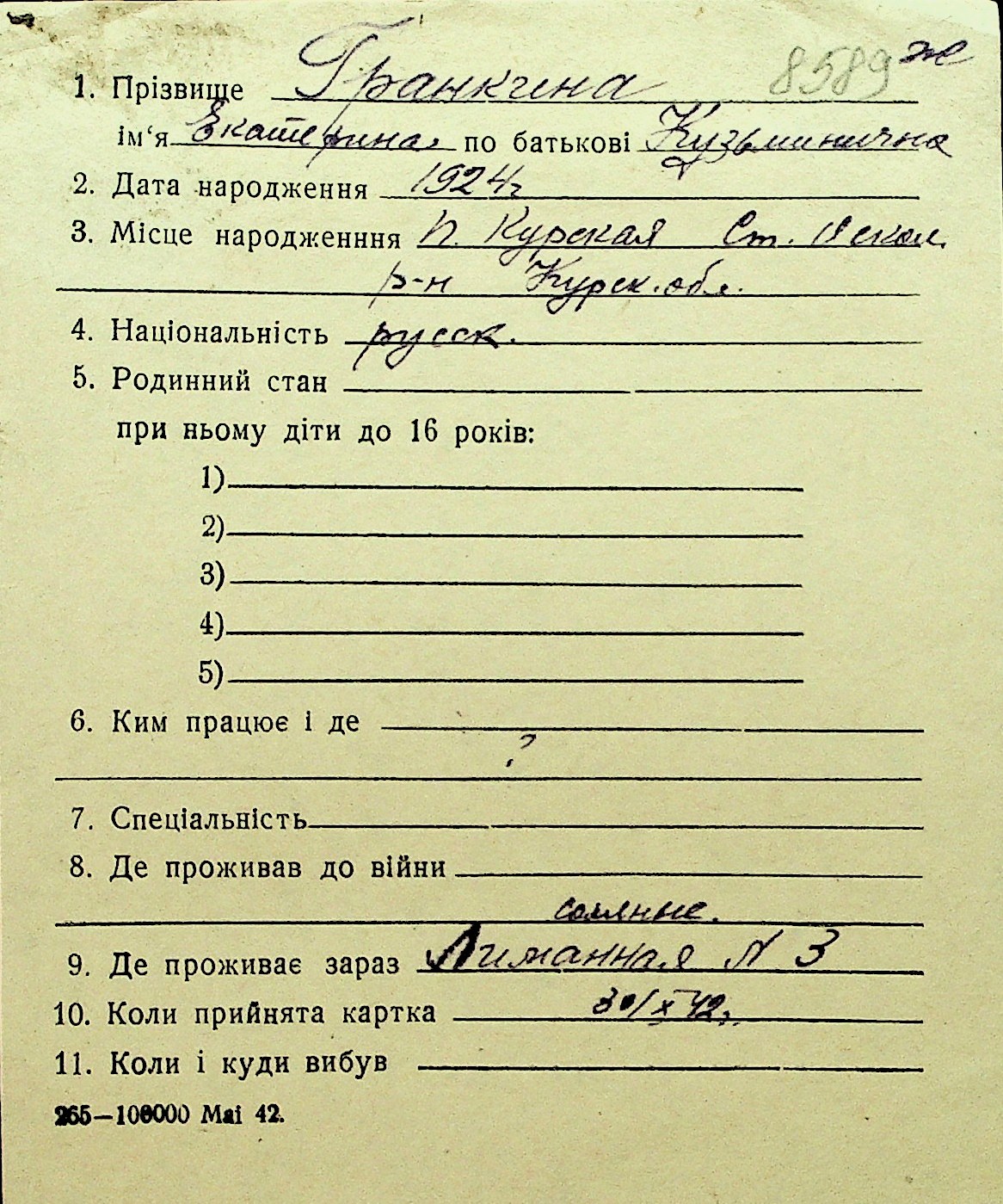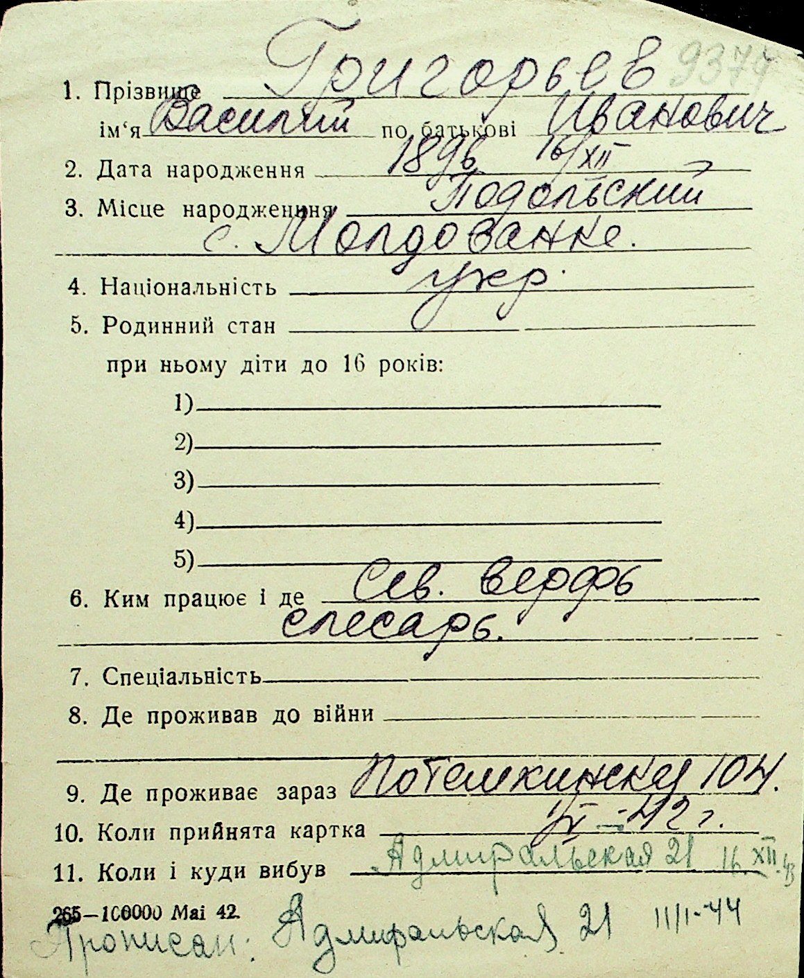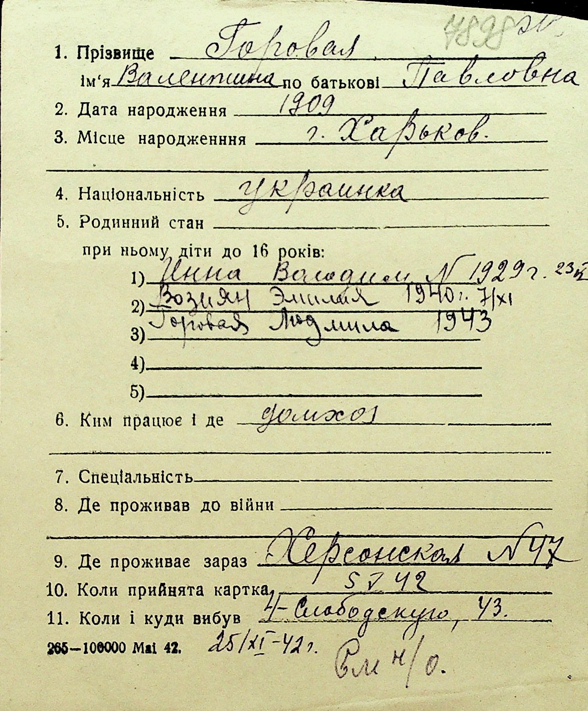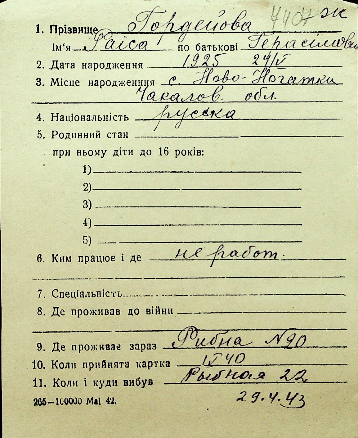 • • Перелік карток до фонду № Н-1016