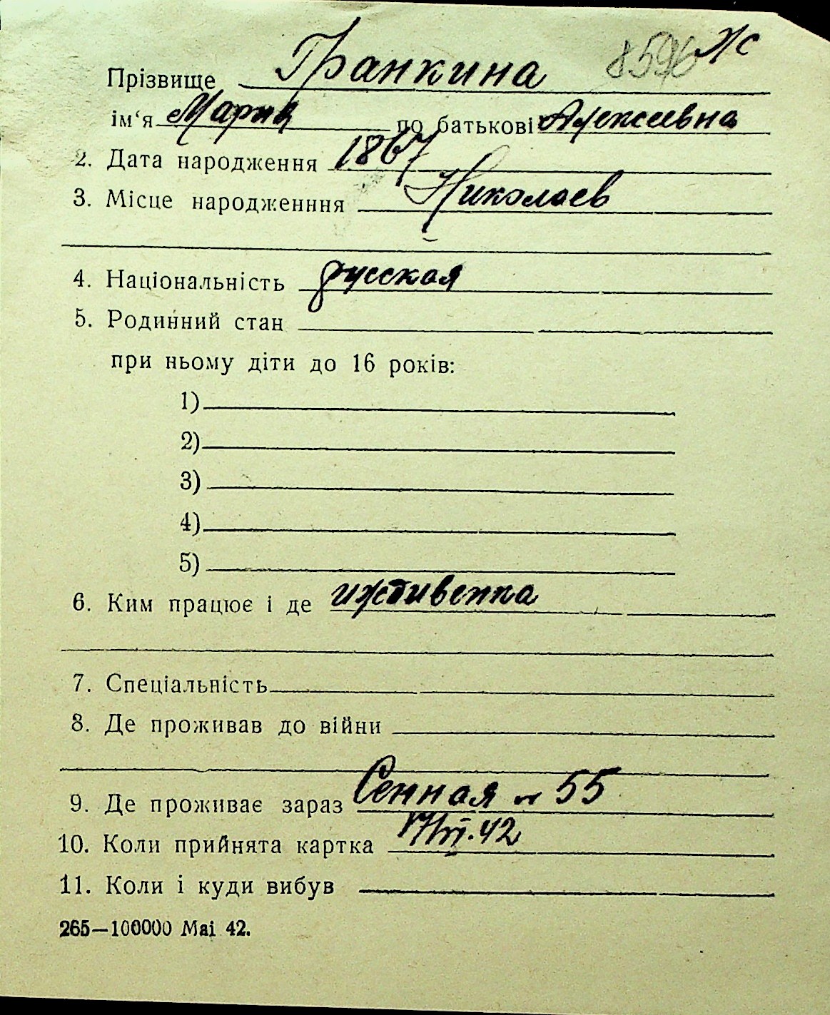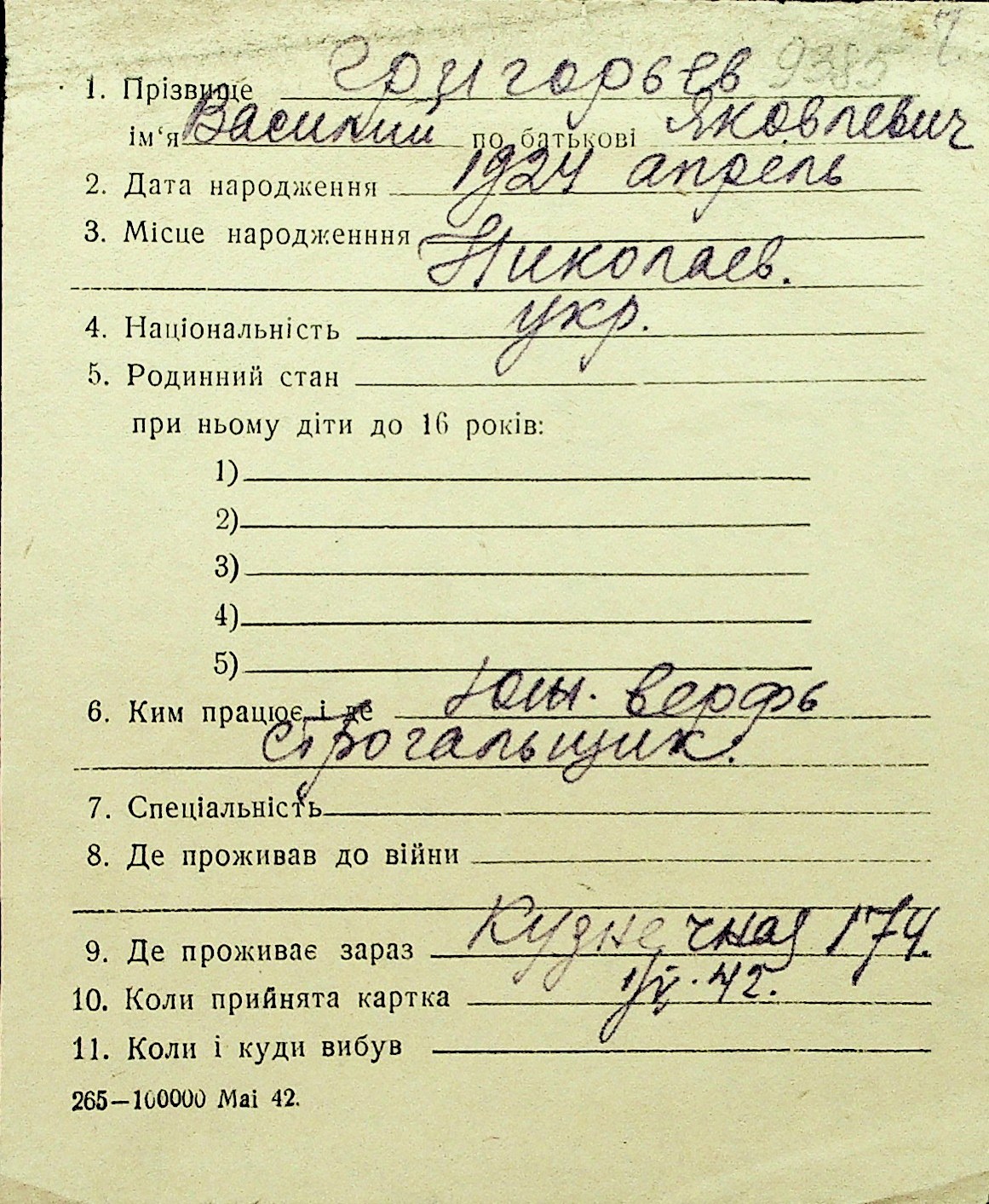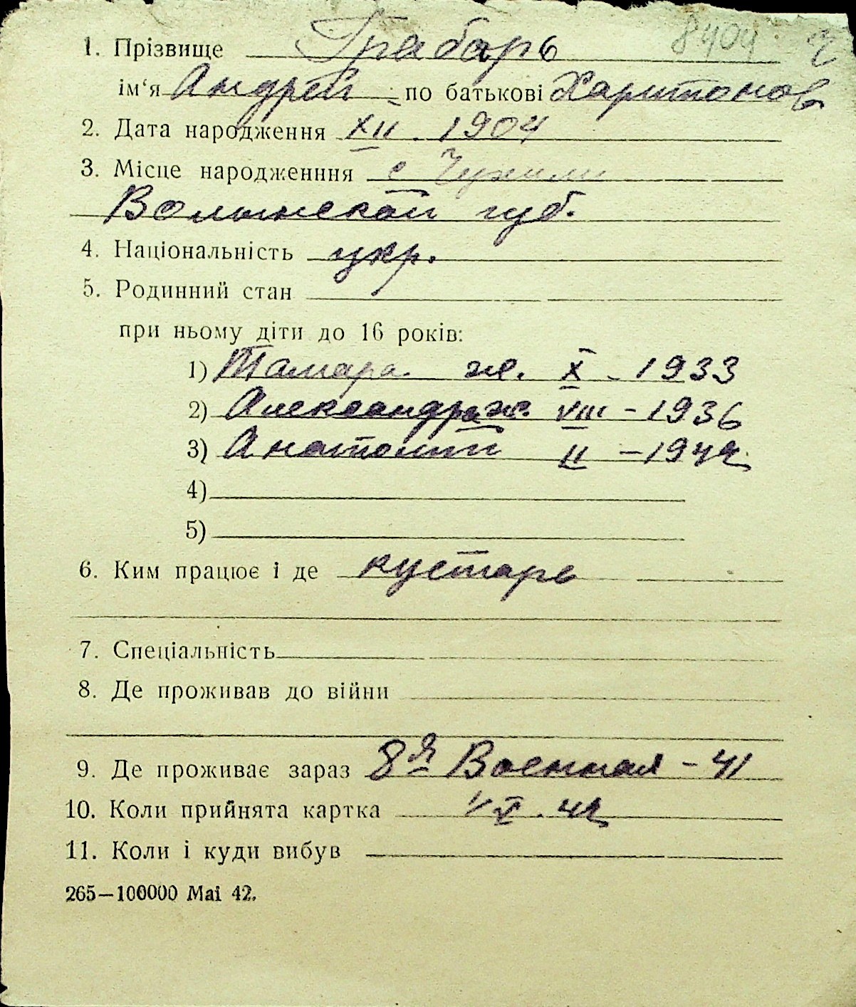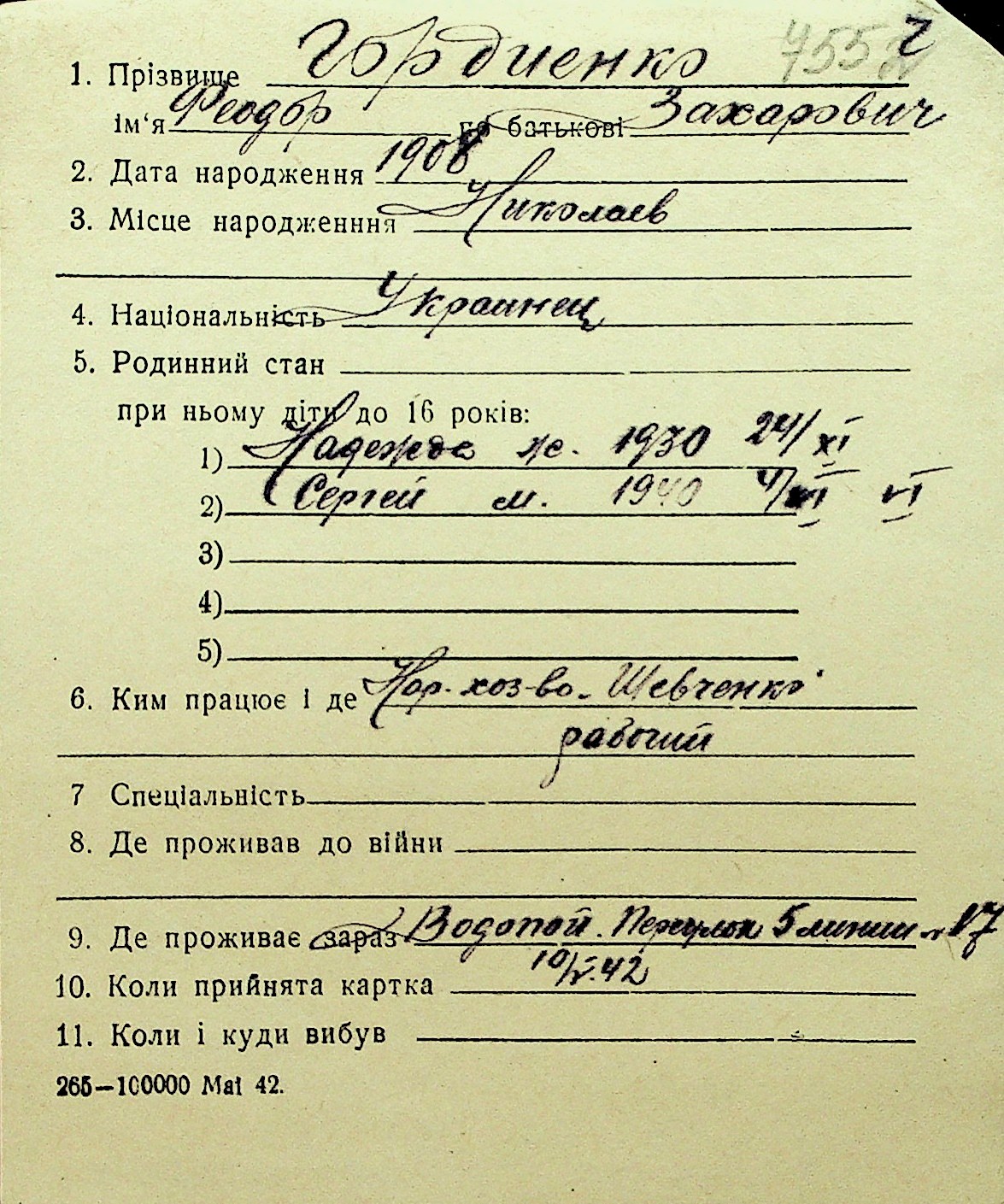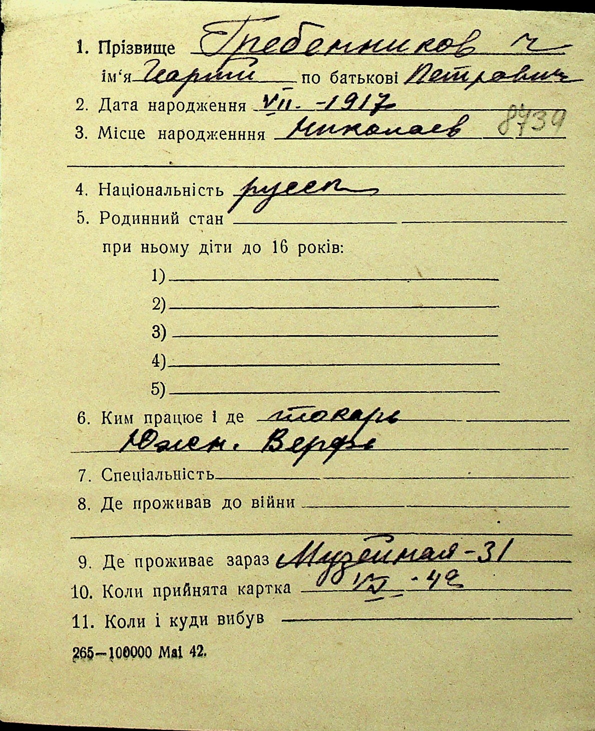 • • Перелік карток до фонду № Н-1016
