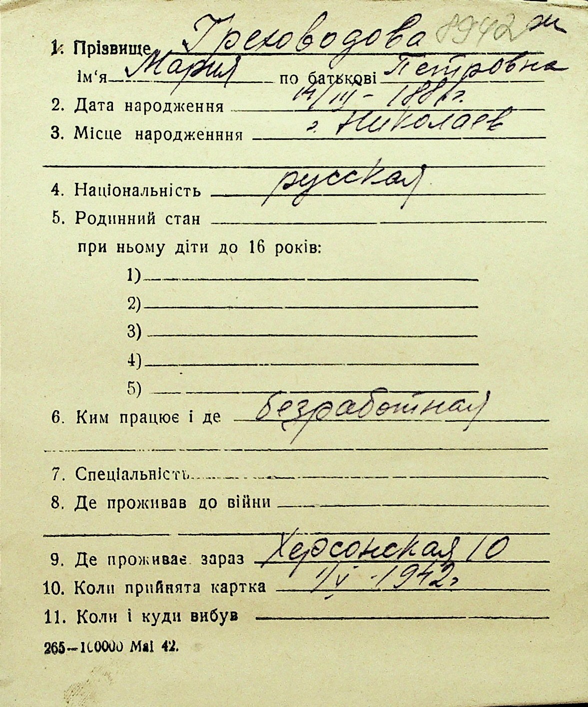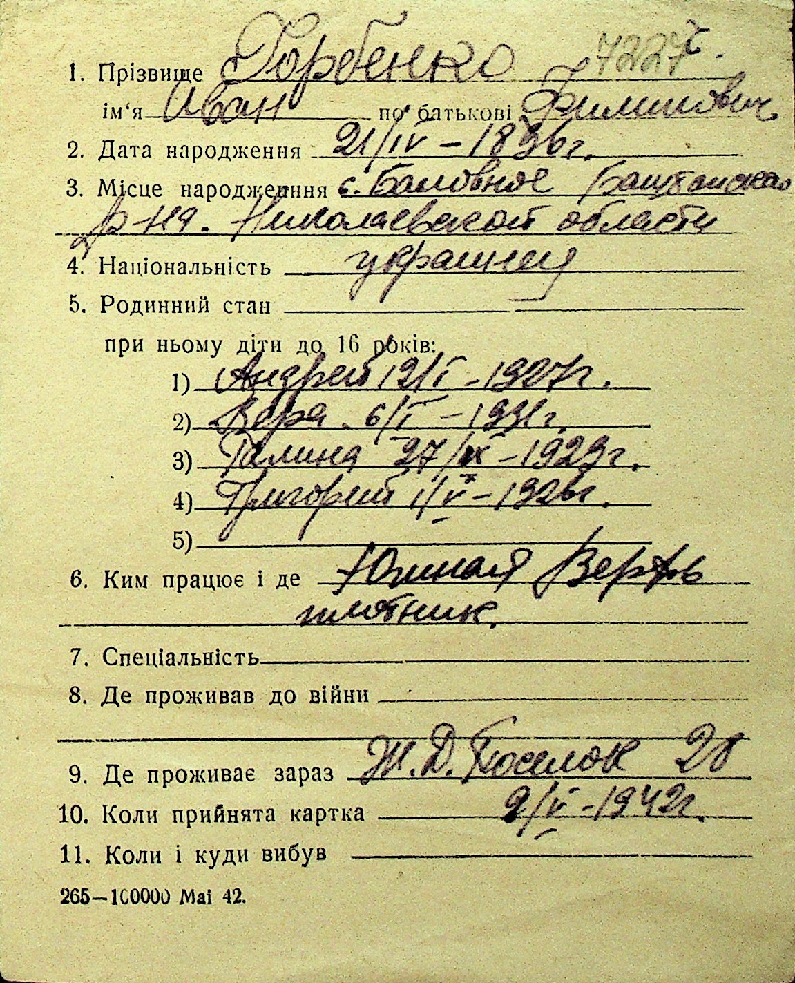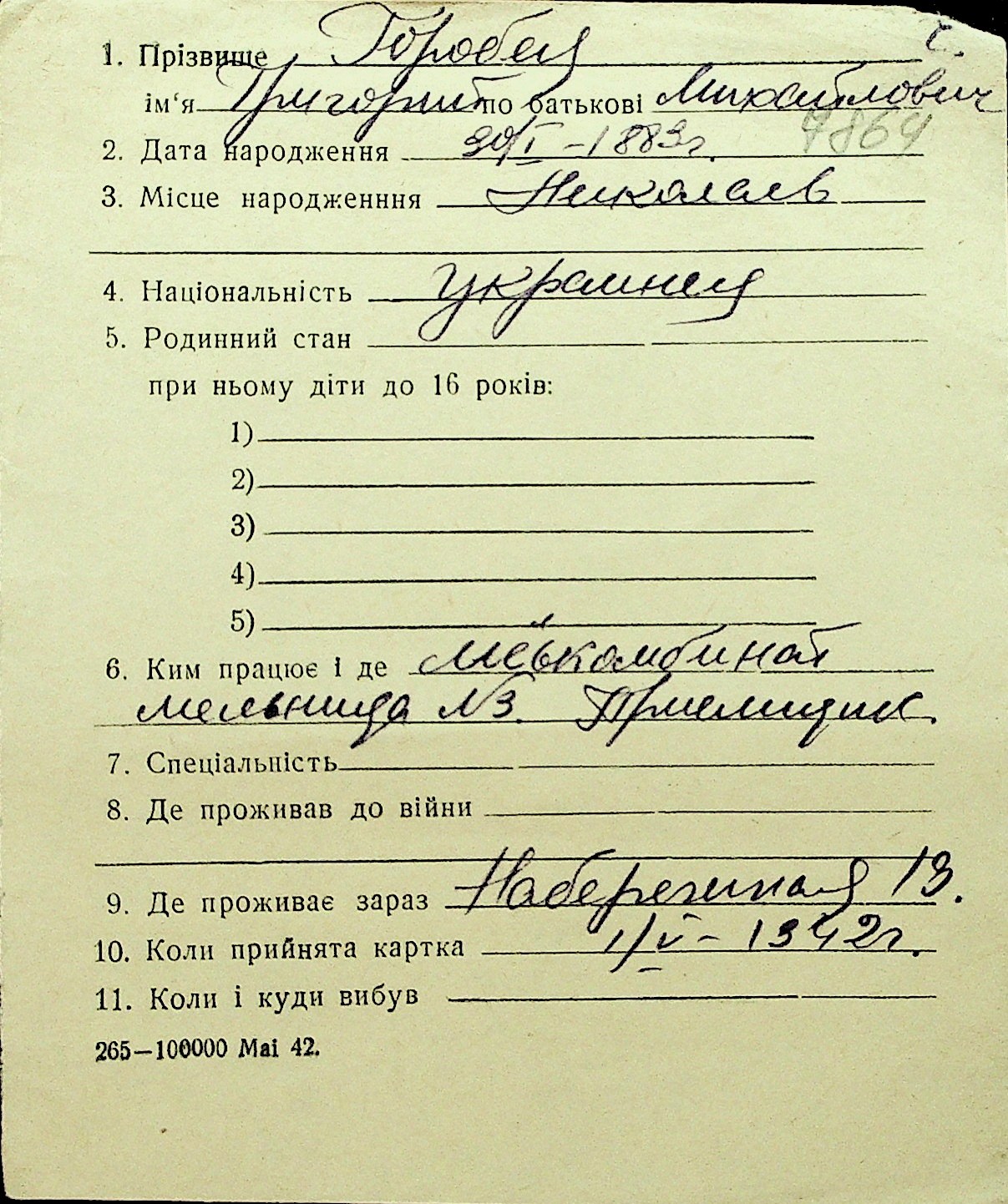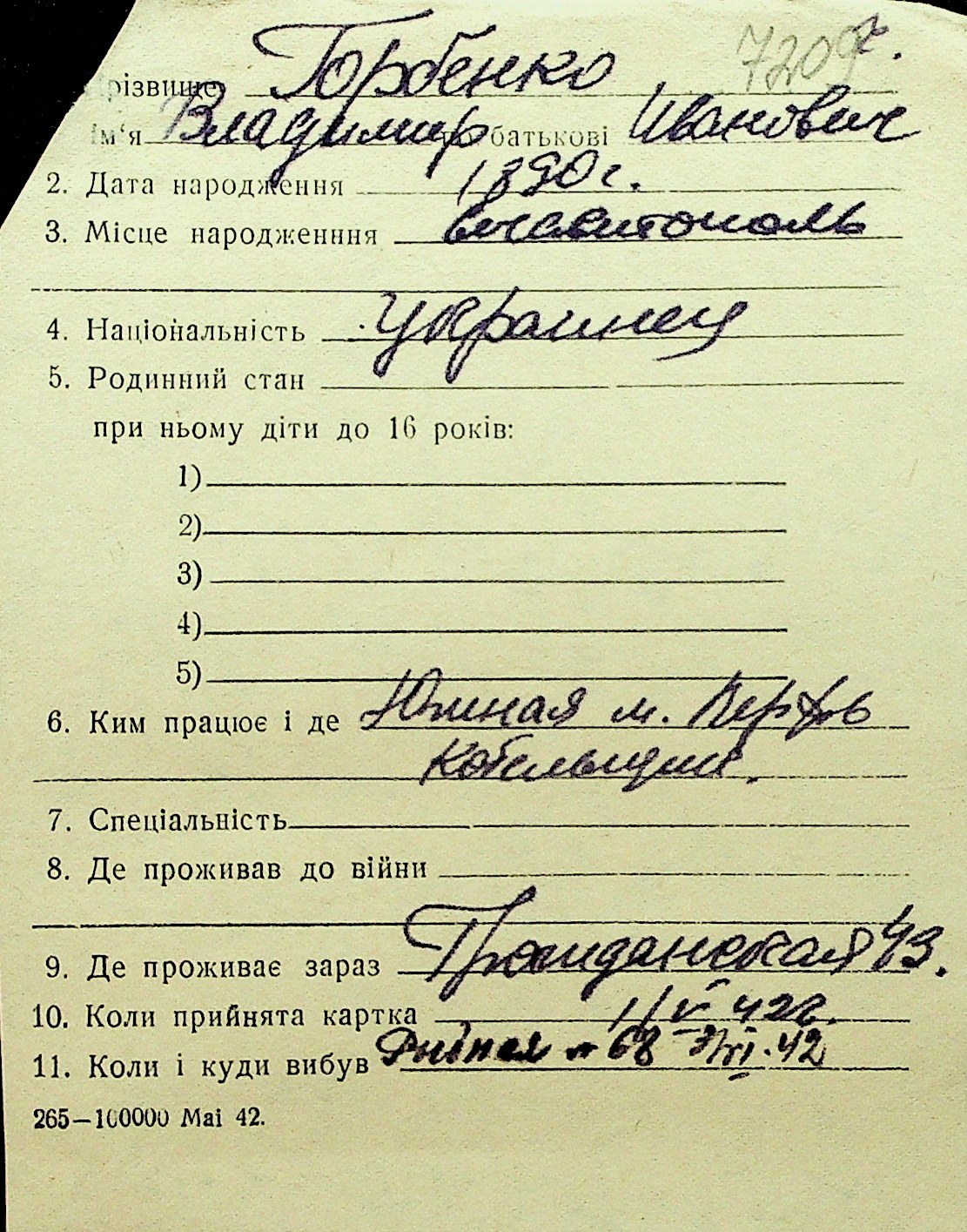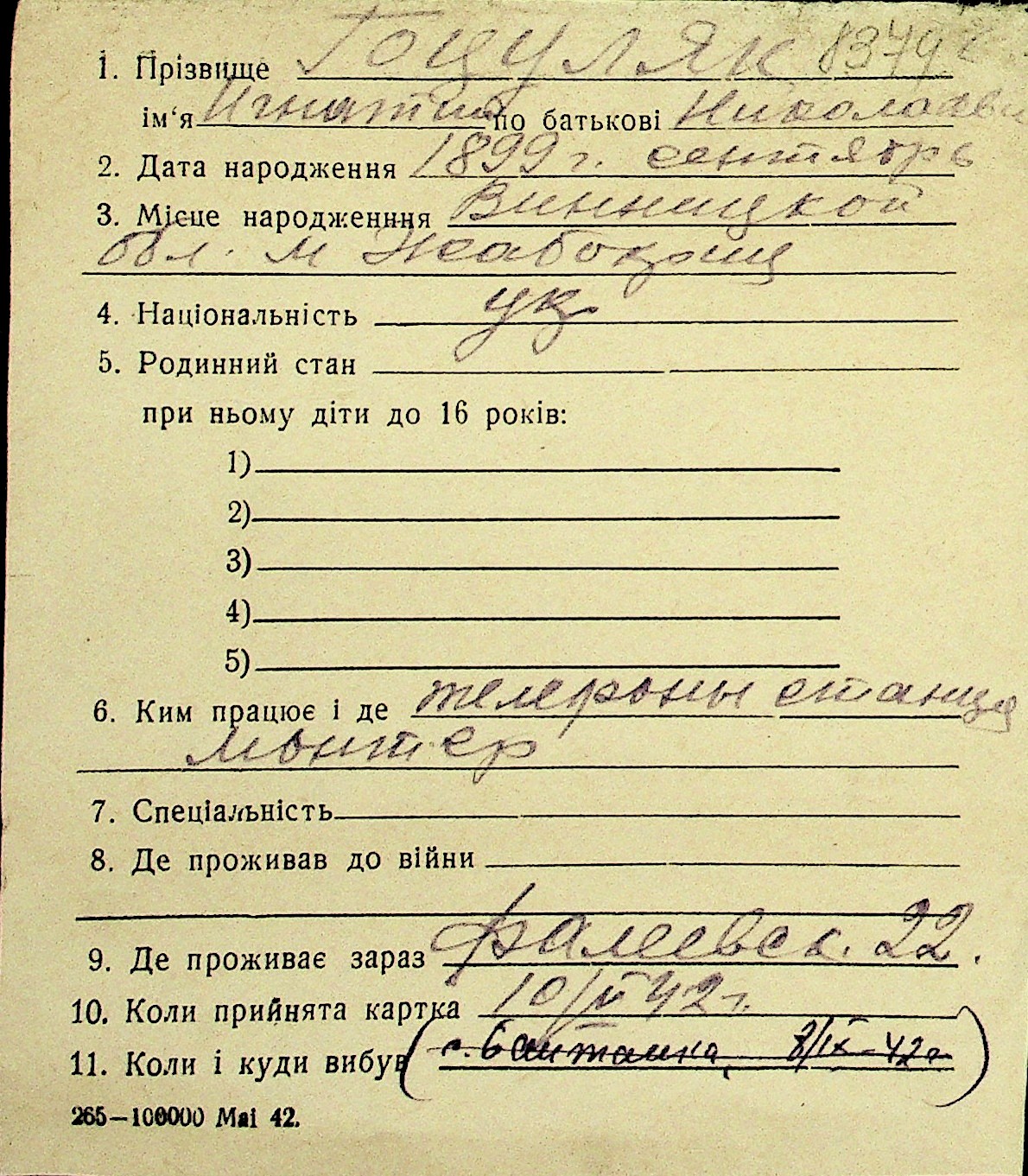• • Перелік карток до фонду № Н-1016