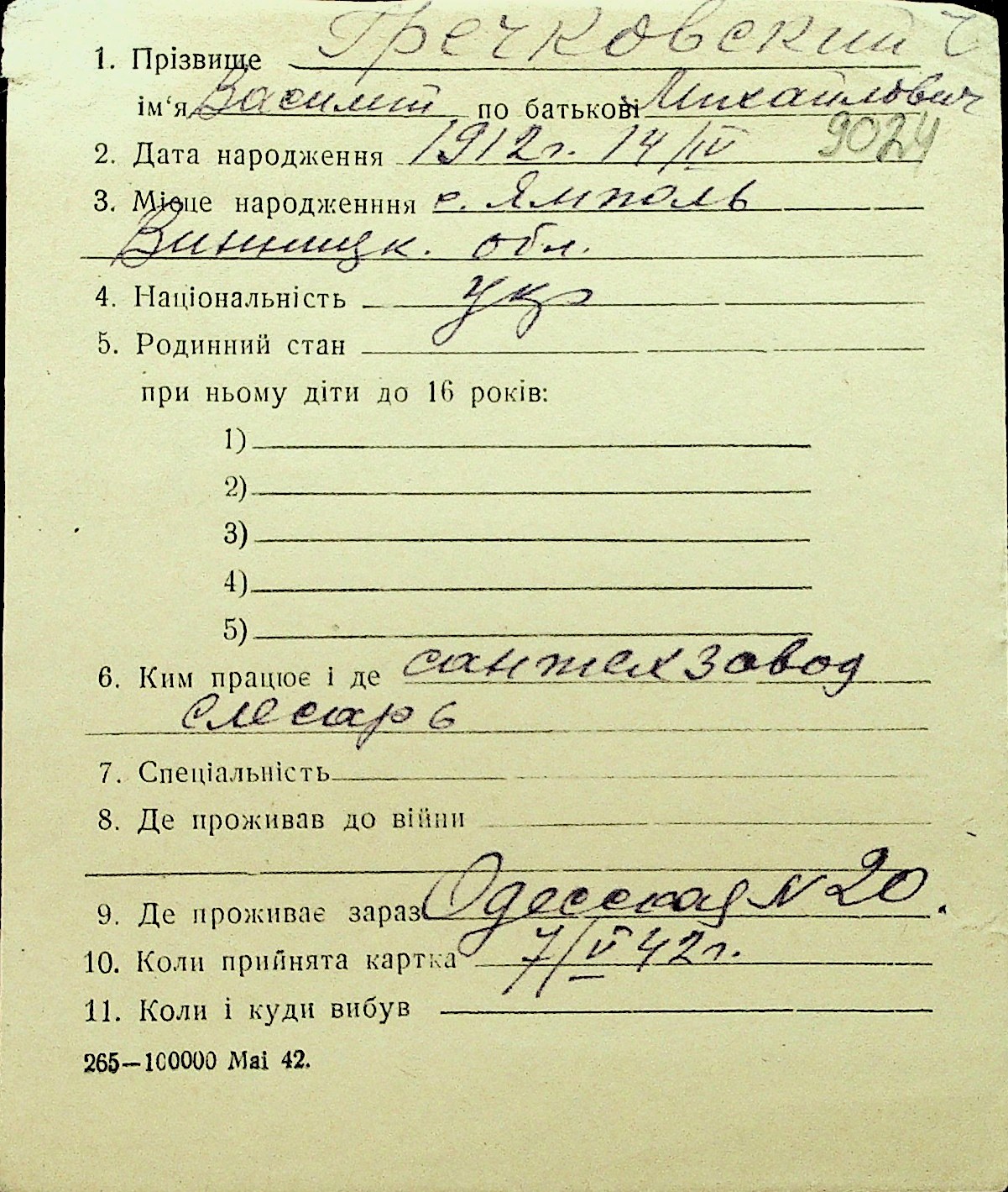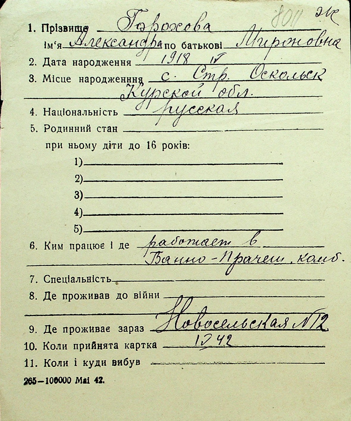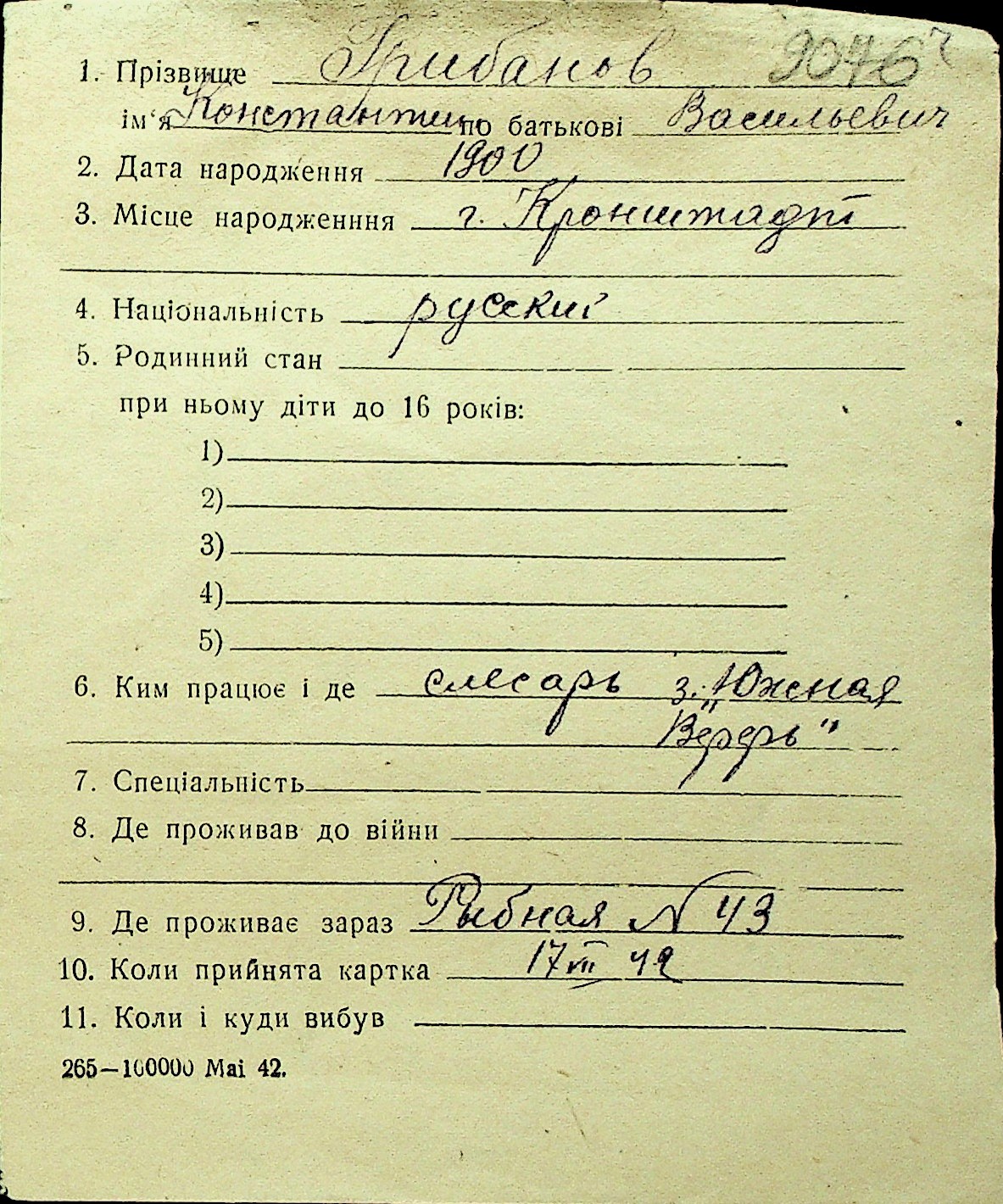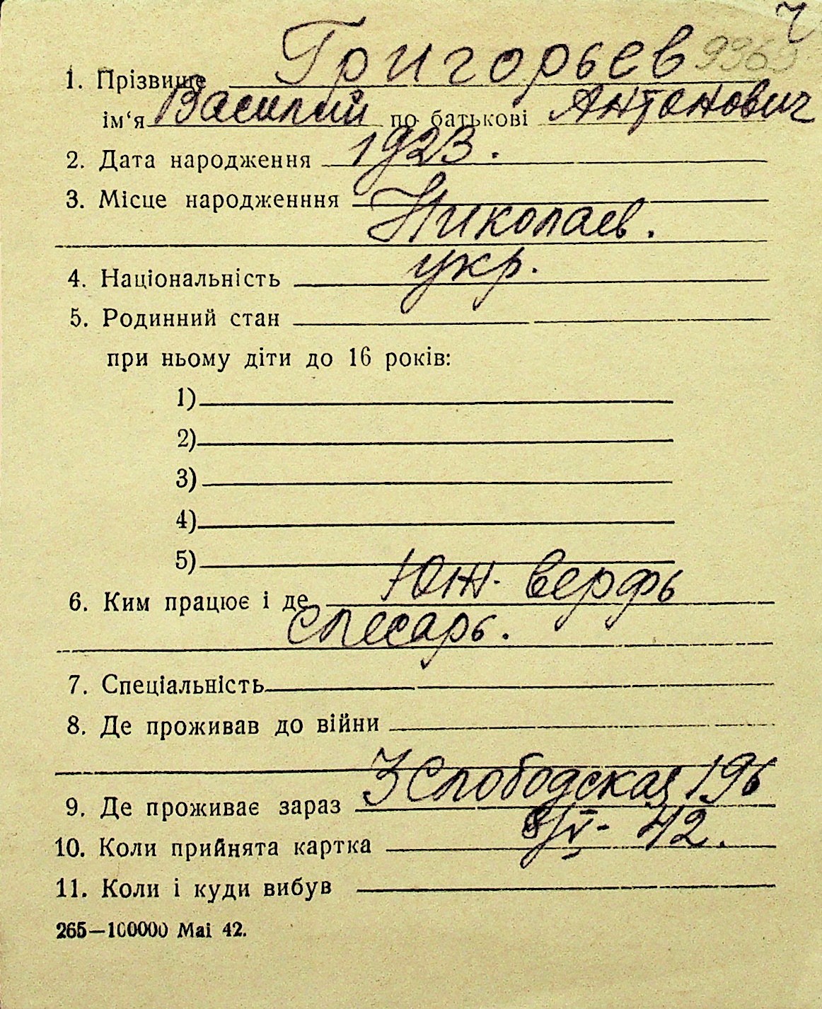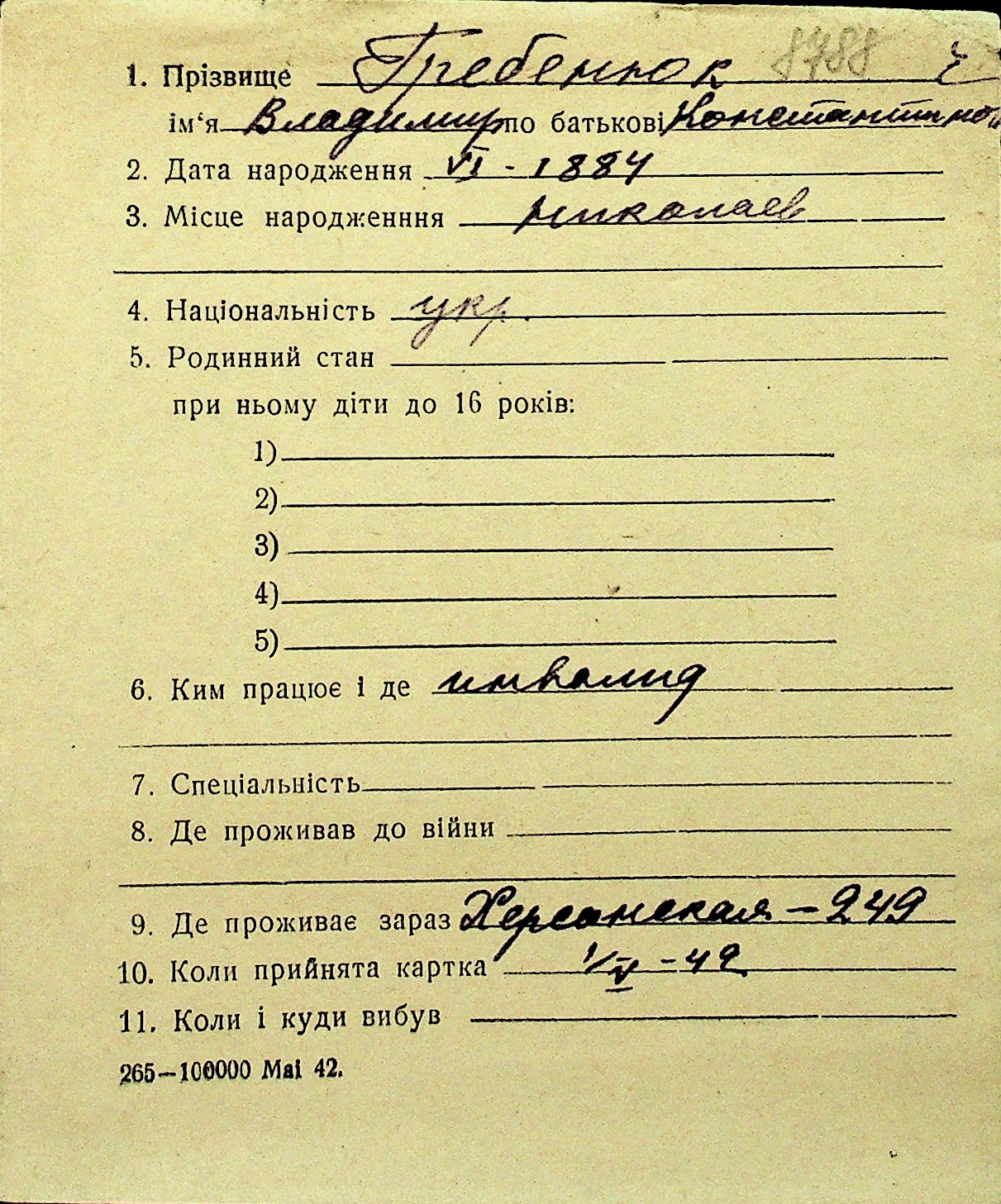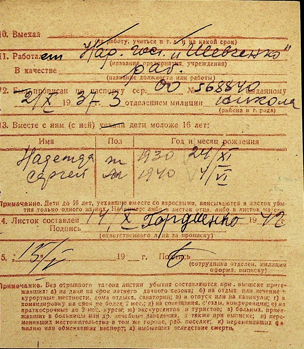 • • Перелік карток до фонду № Н-1016