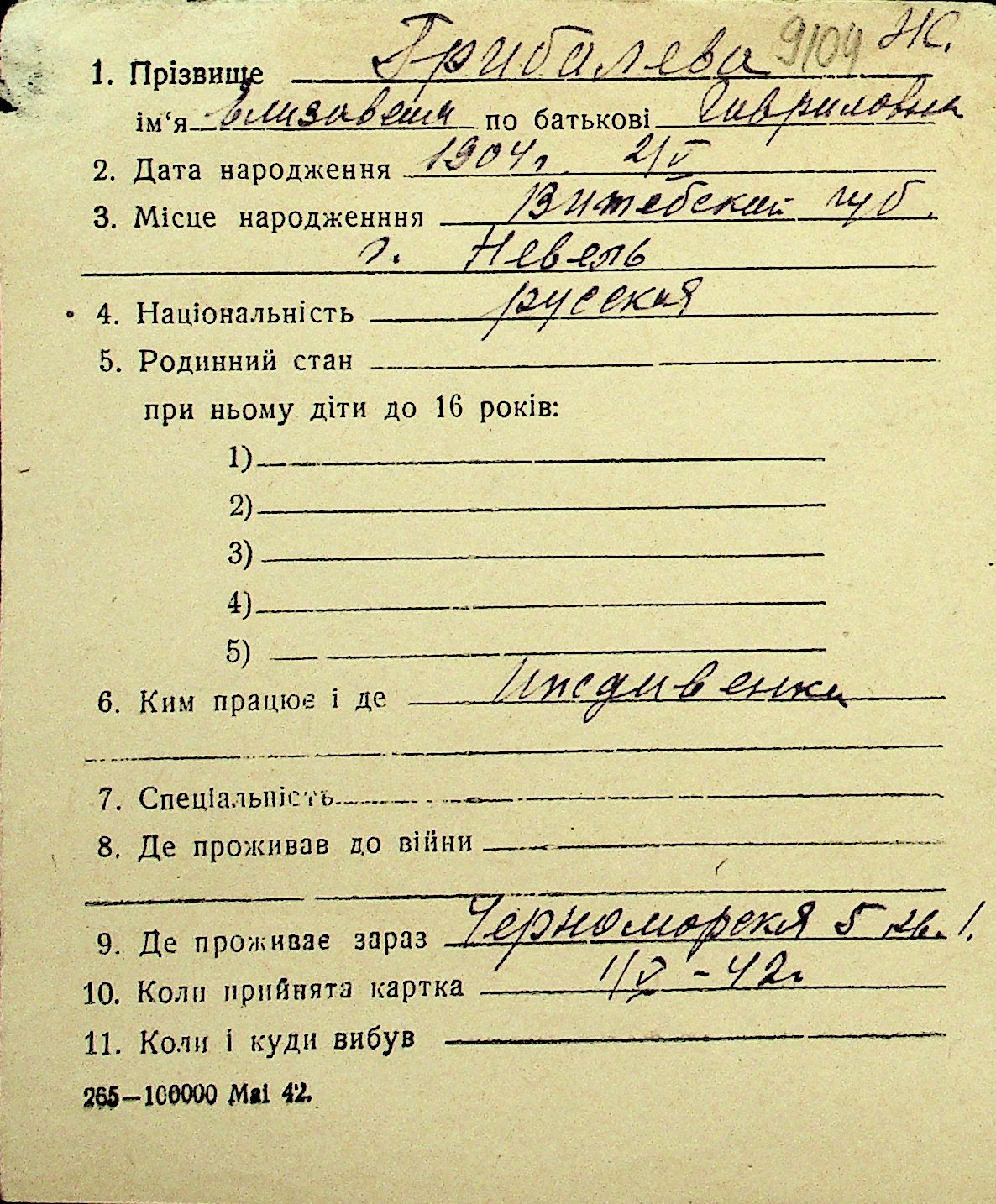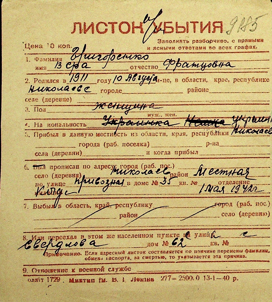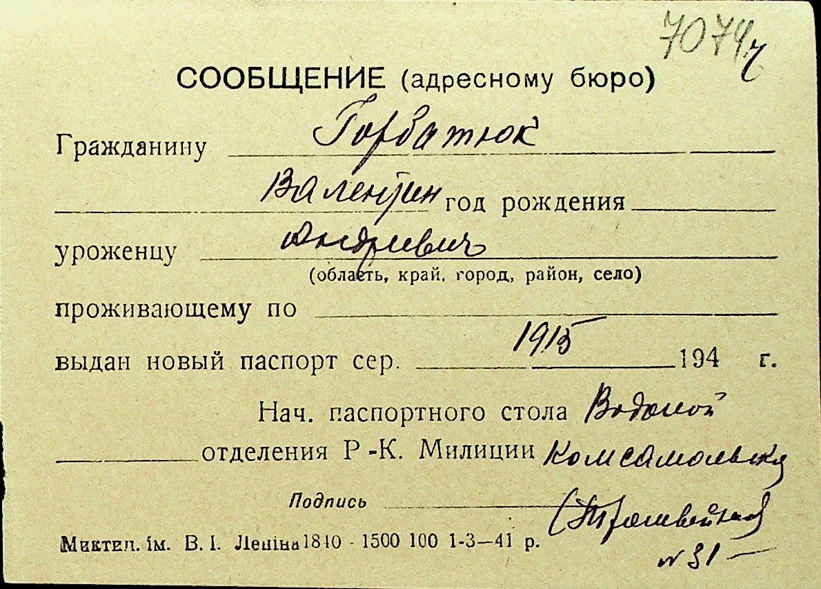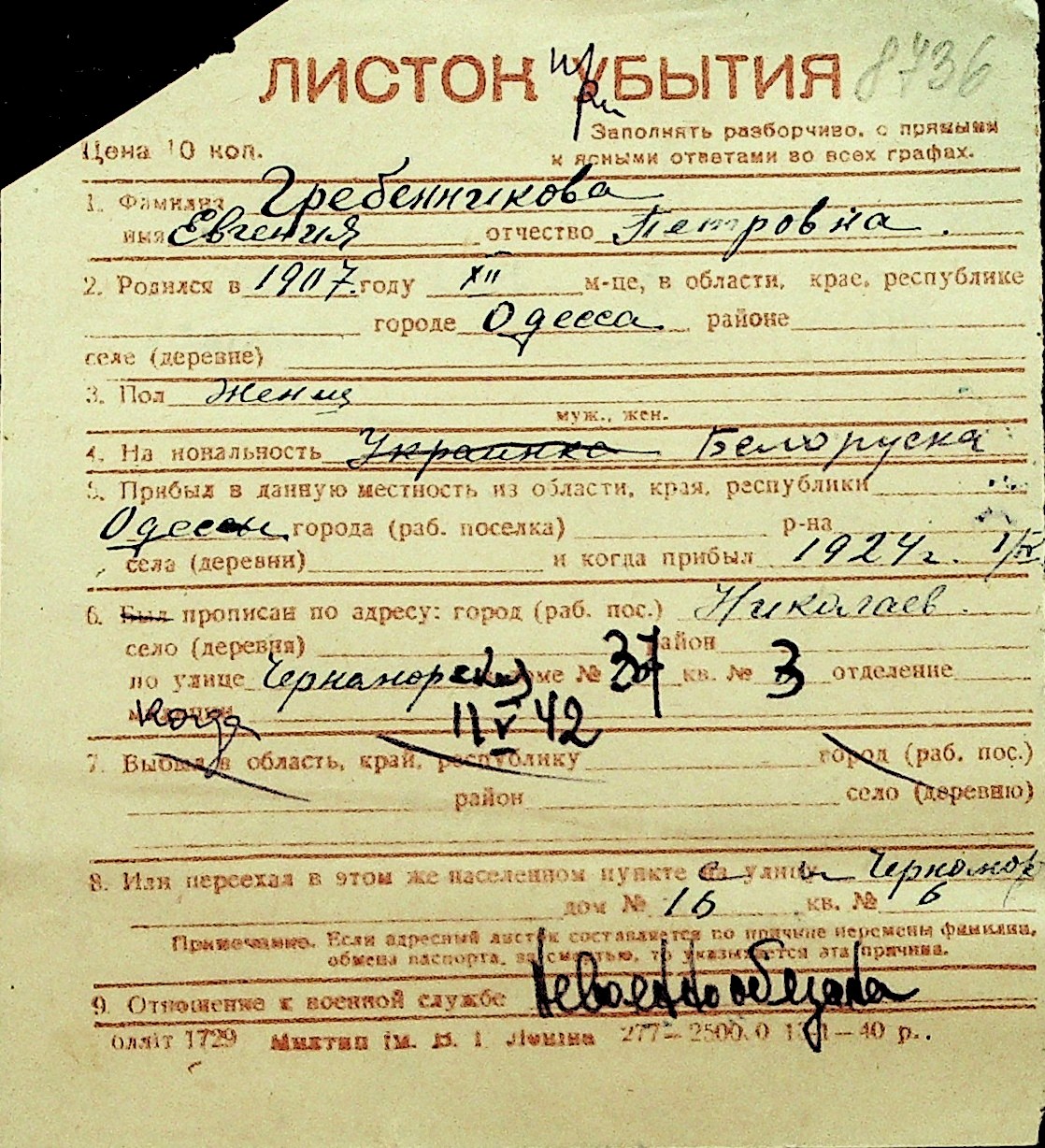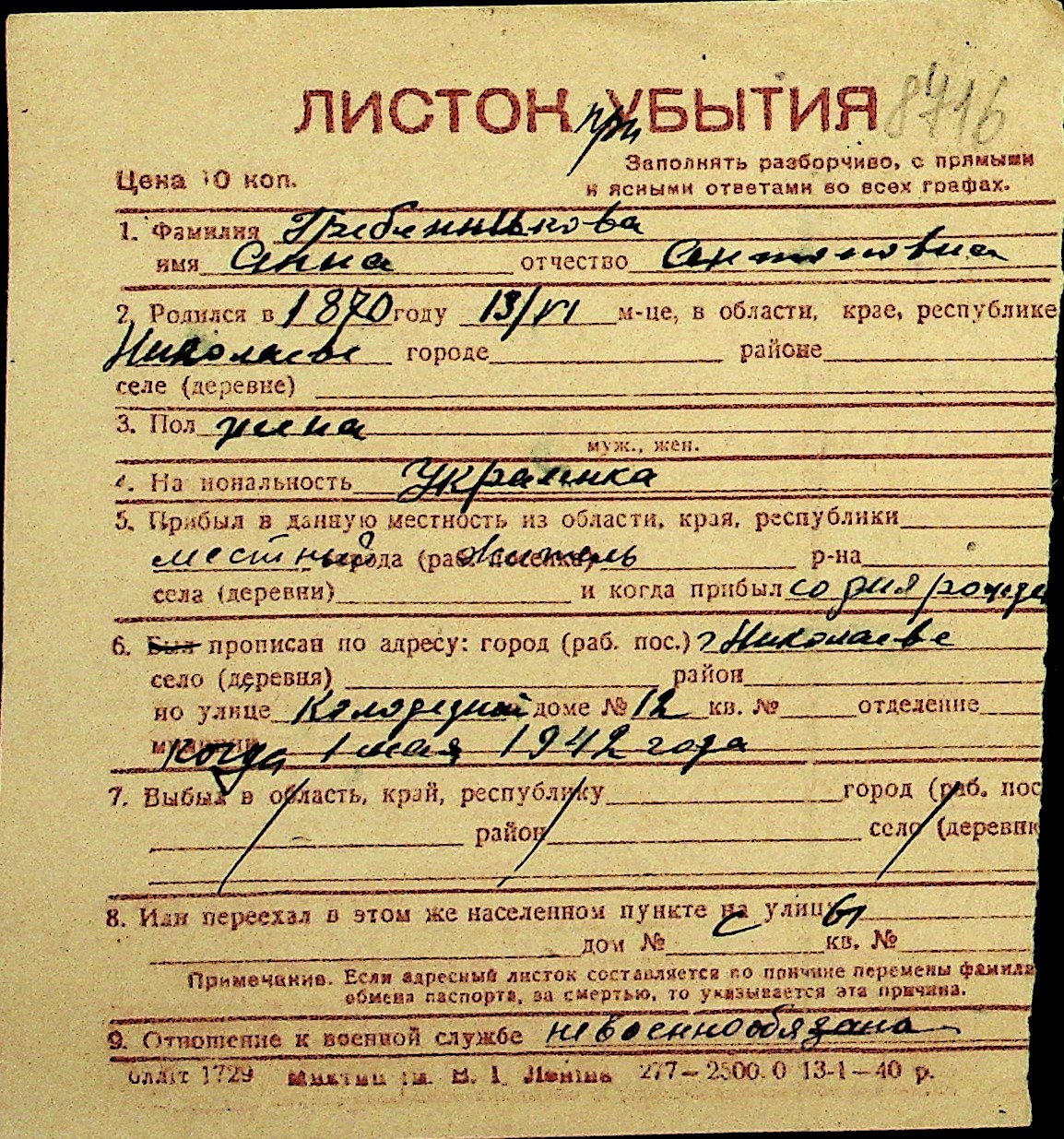 • • Перелік карток до фонду № Н-1016