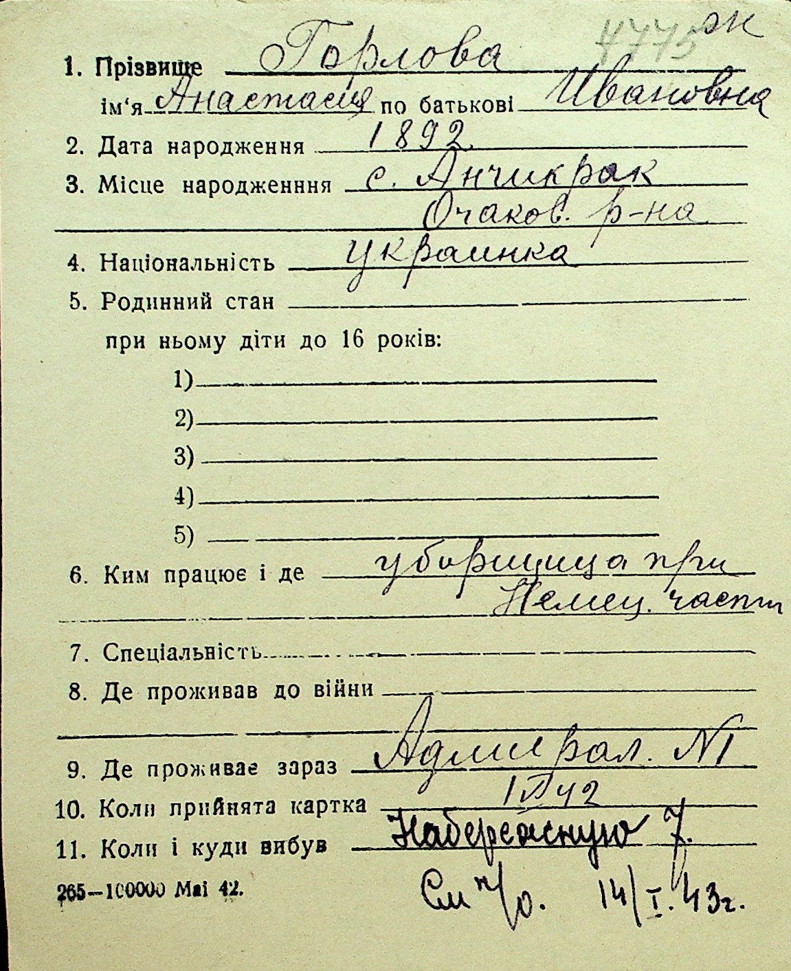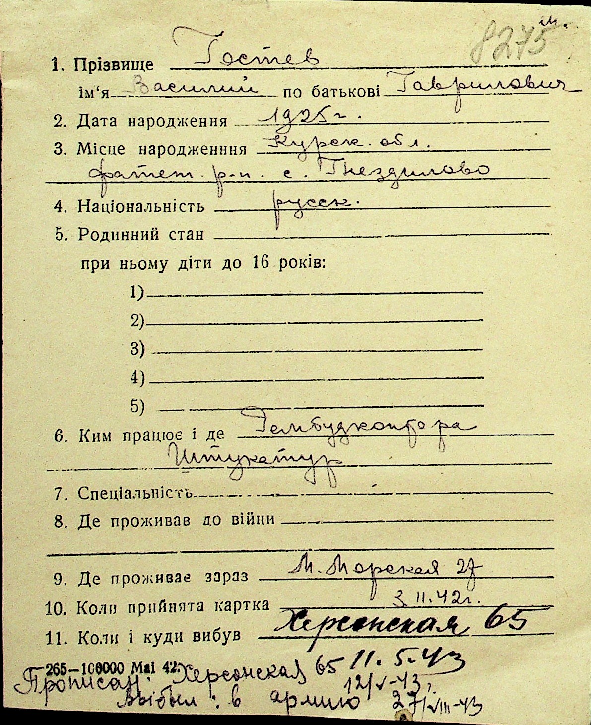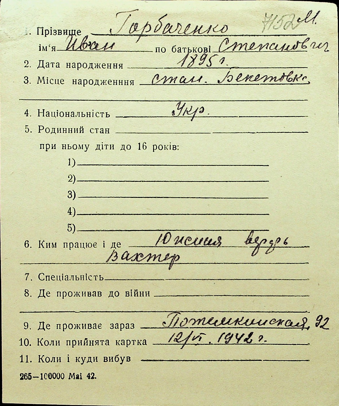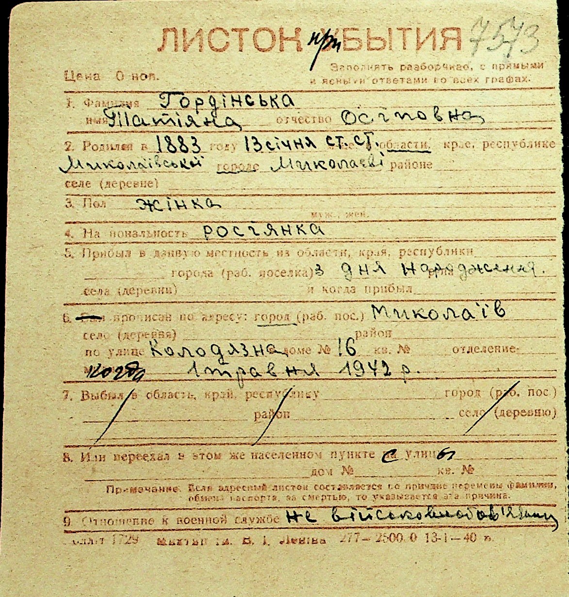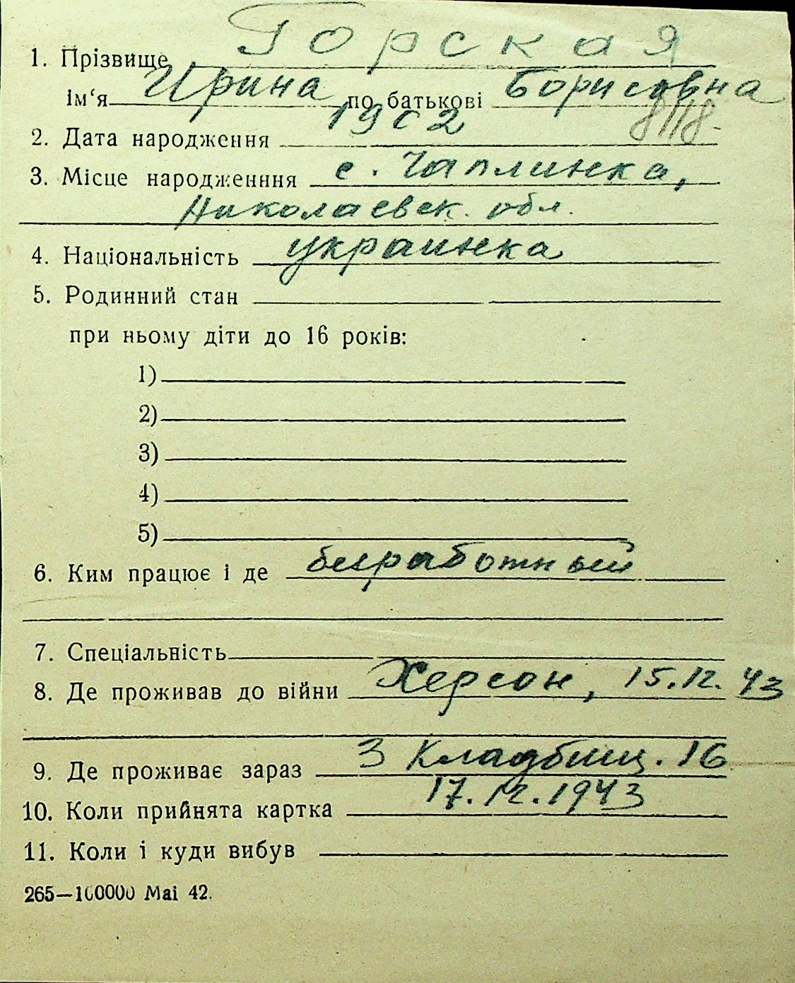 • • Перелік карток до фонду № Н-1016