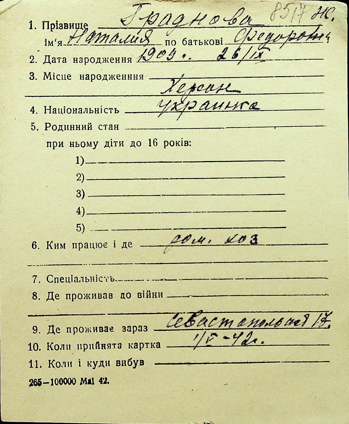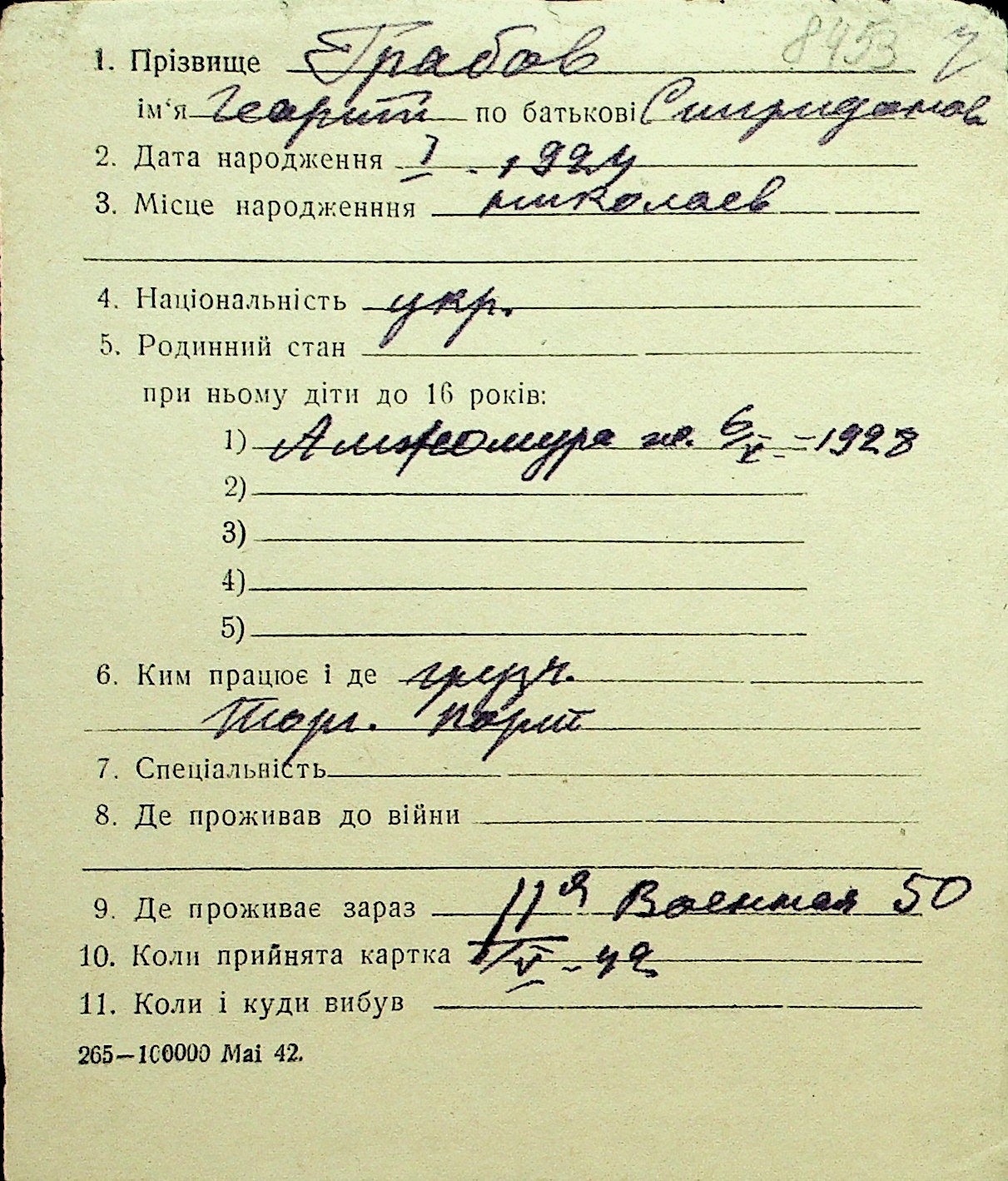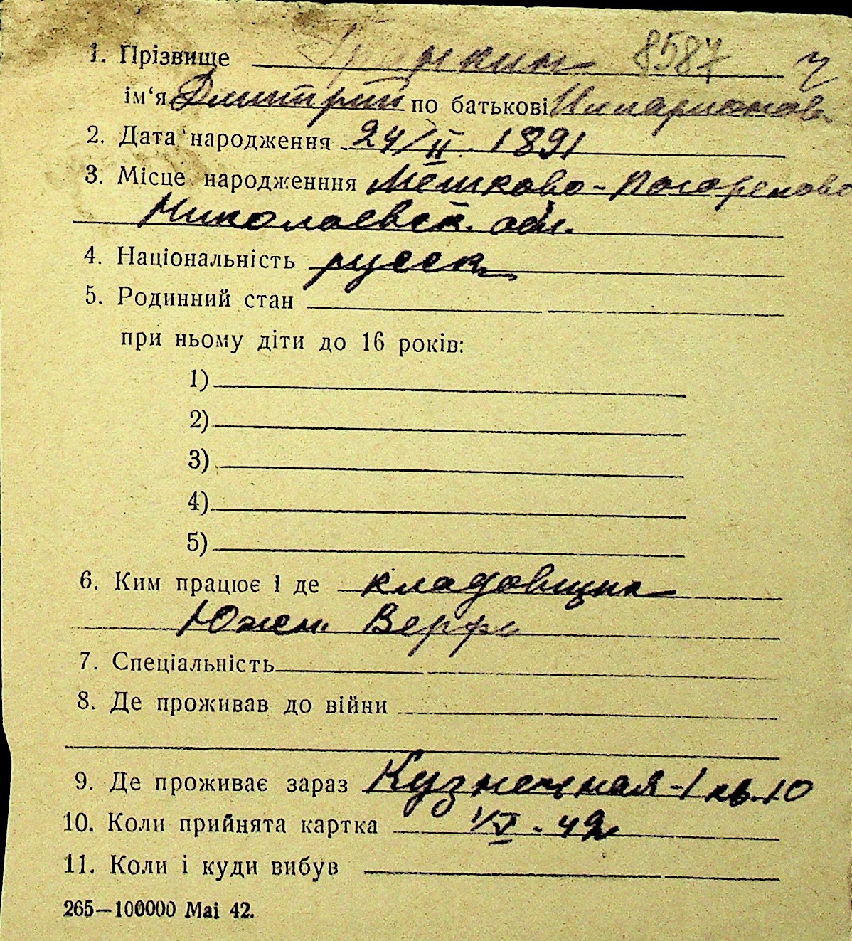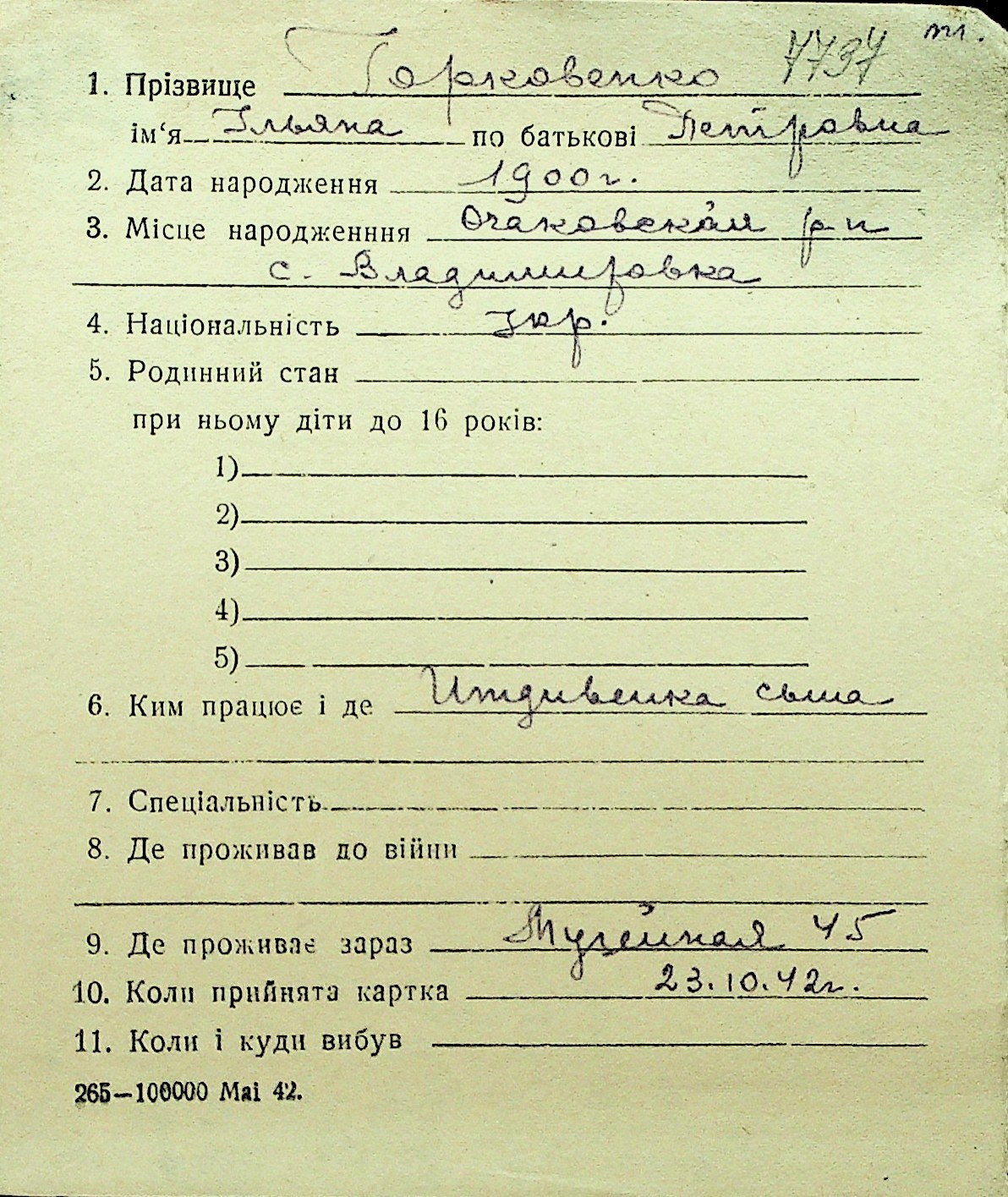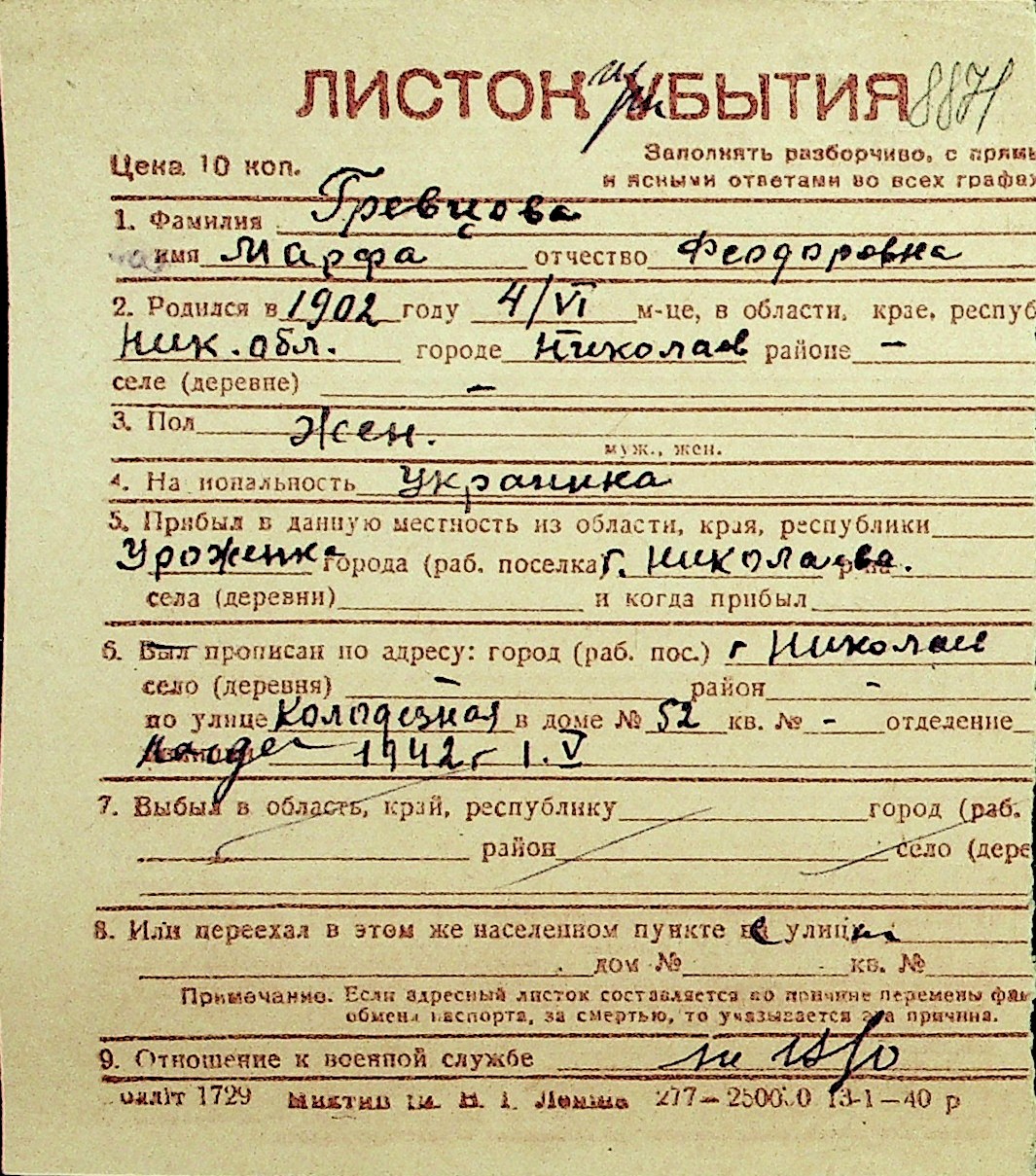 • • Перелік карток до фонду № Н-1016