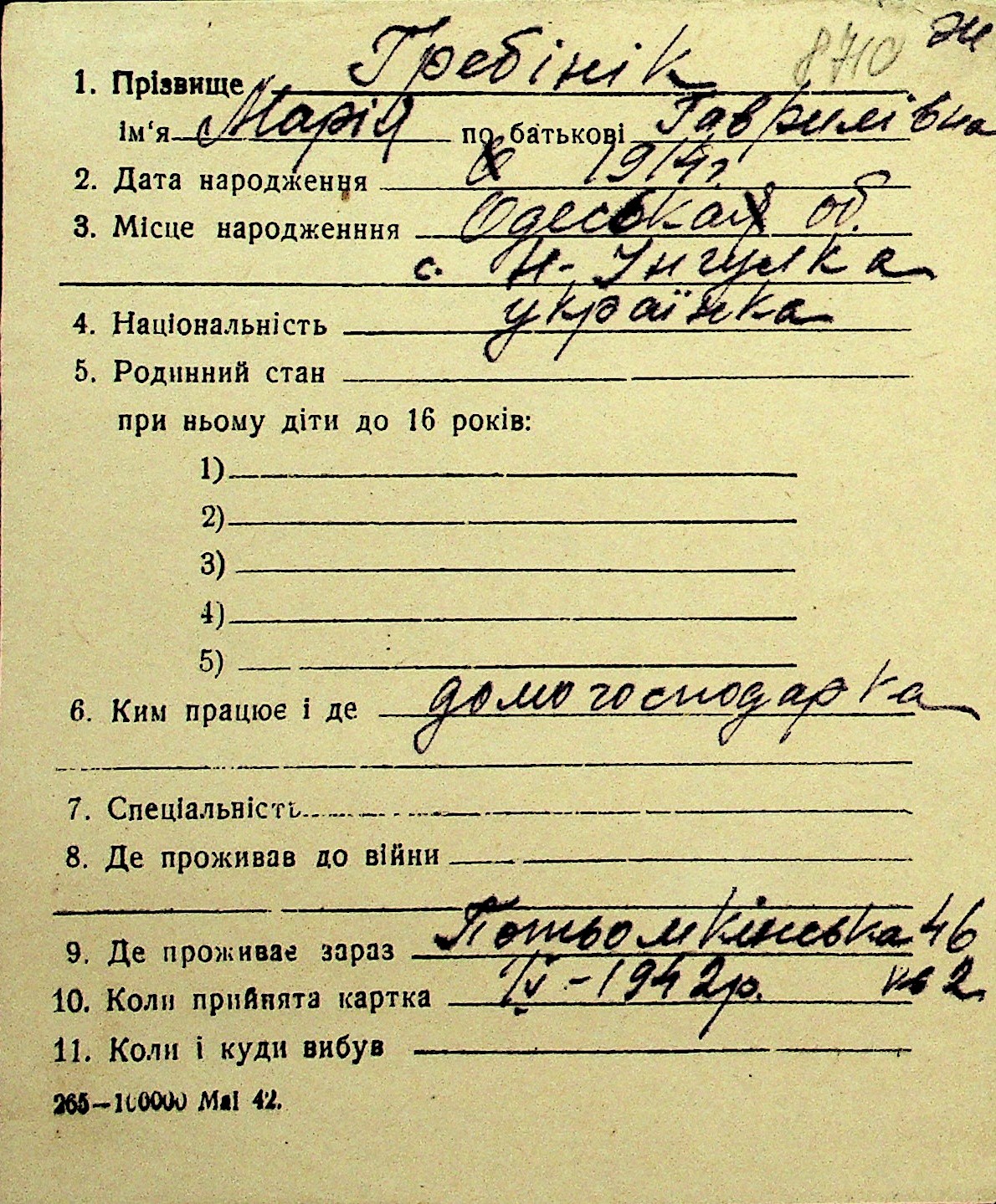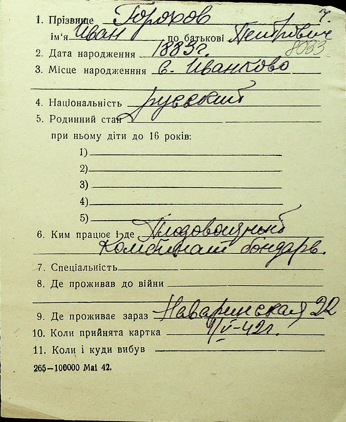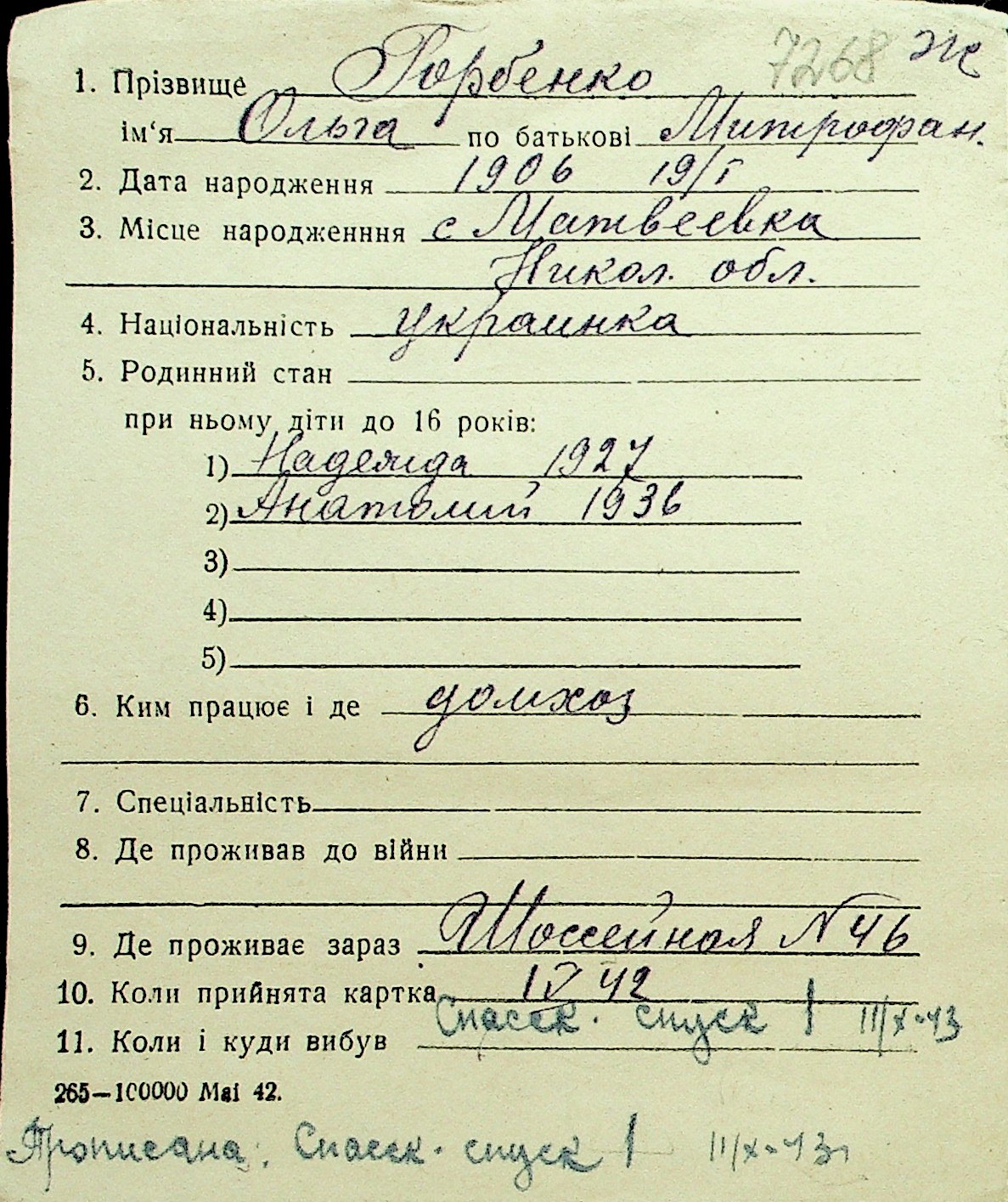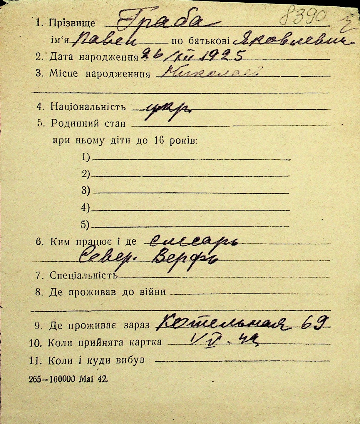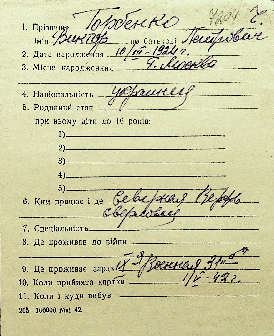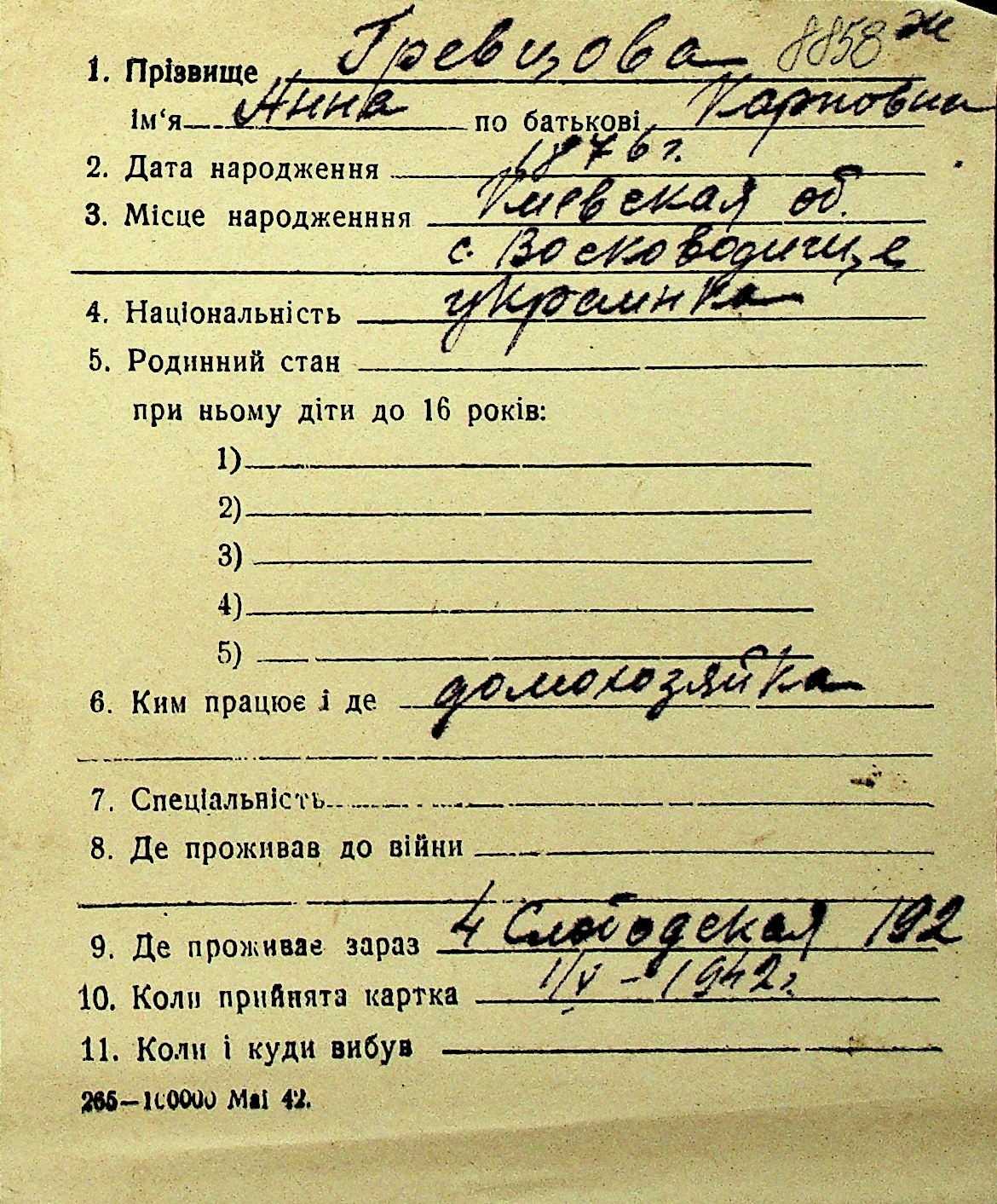 • • Перелік карток до фонду № Н-1016