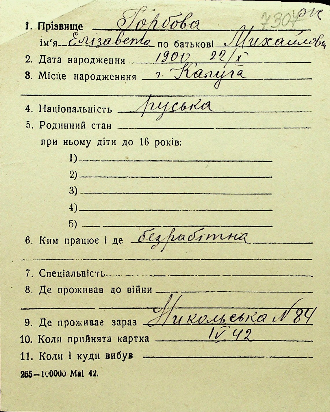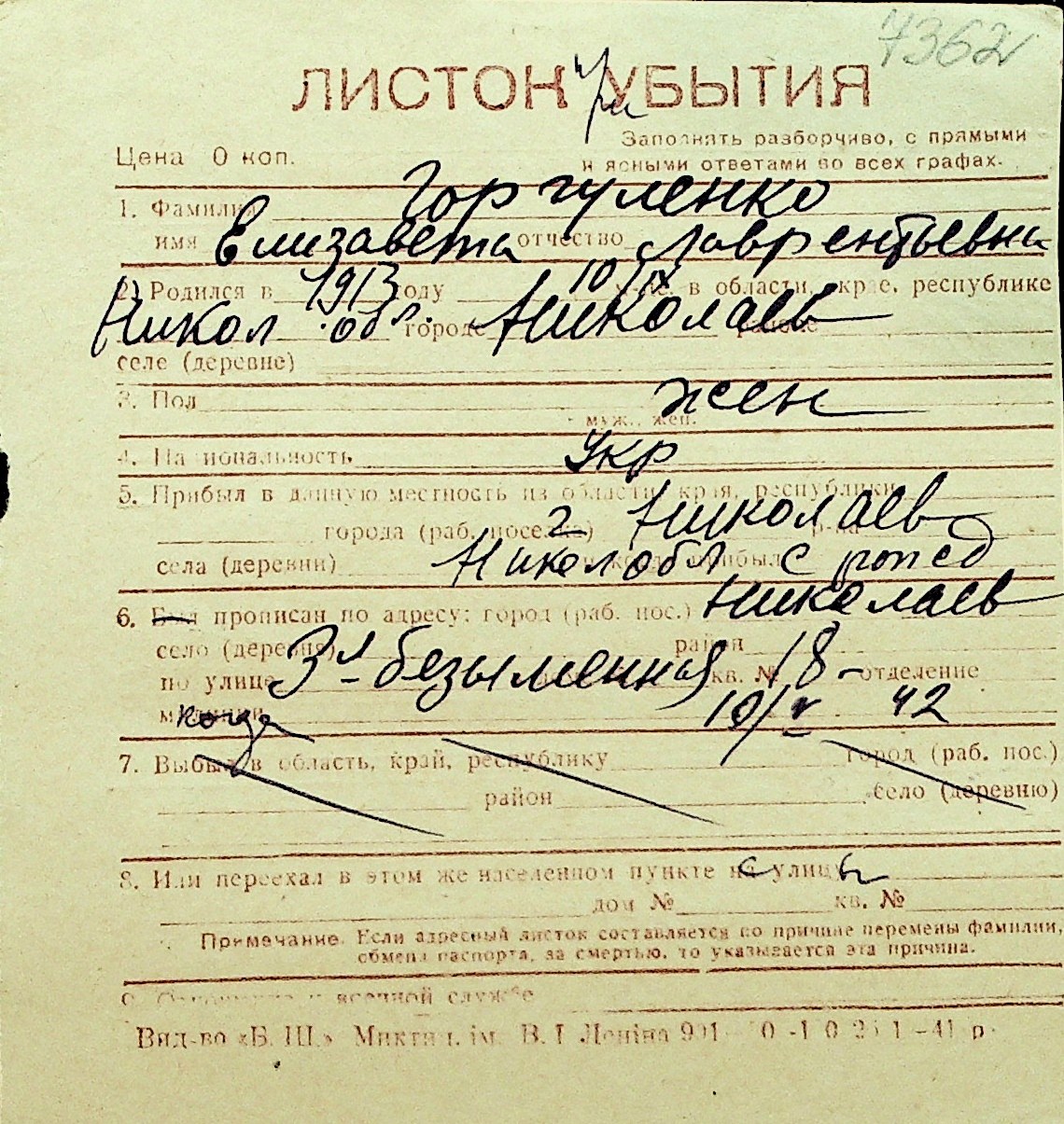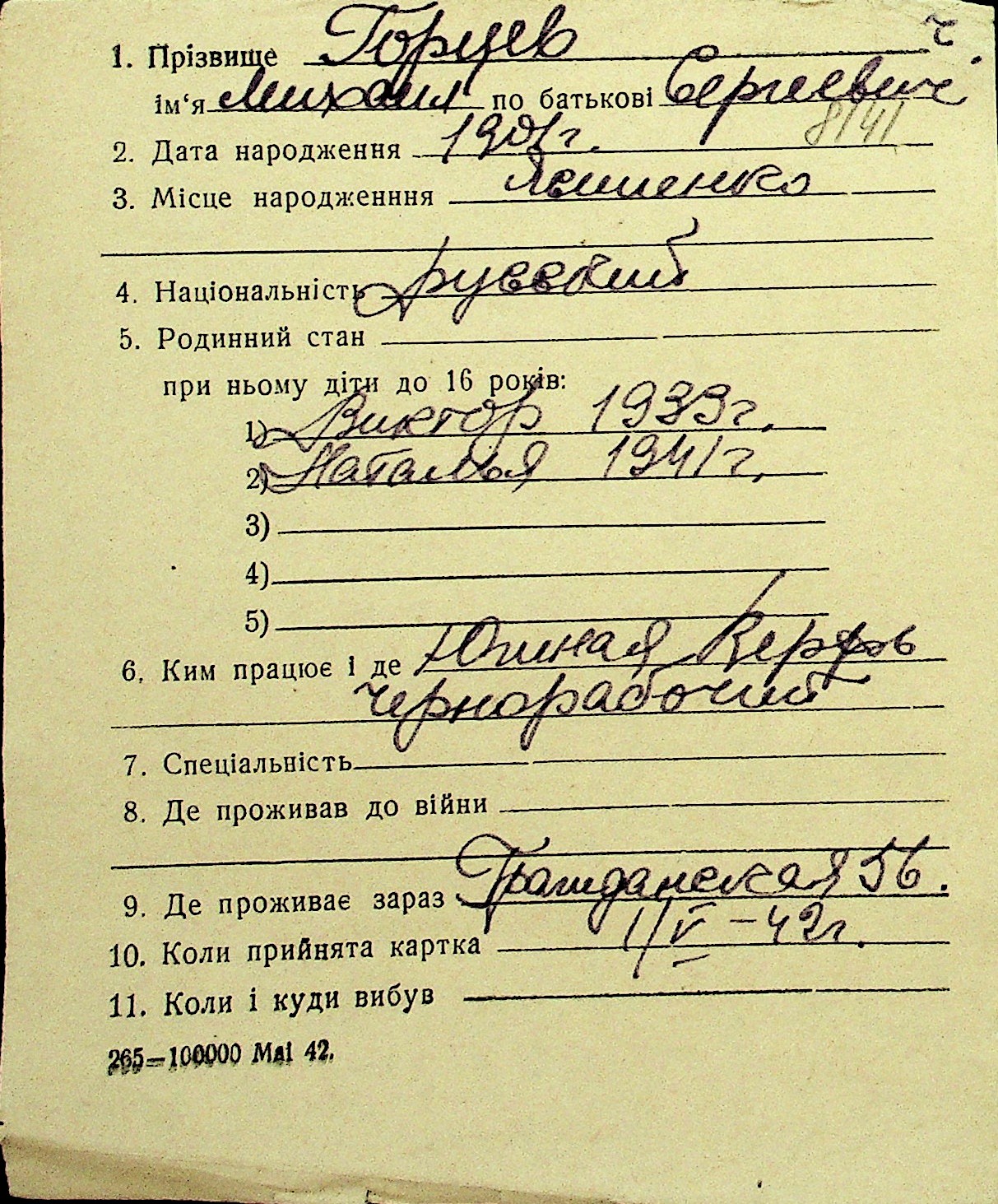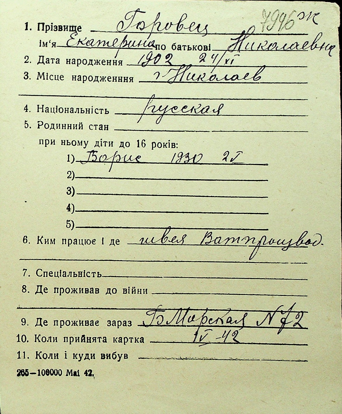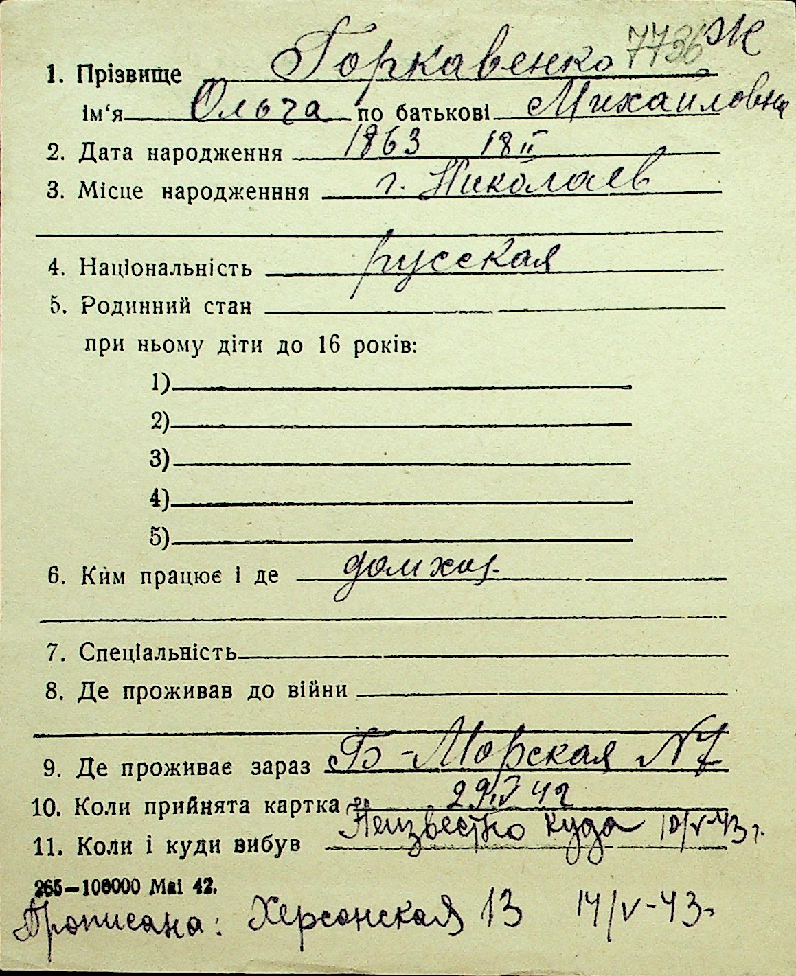 • • Перелік карток до фонду № Н-1016