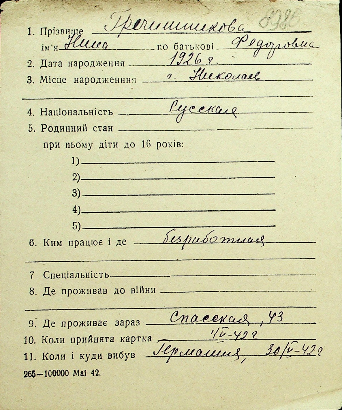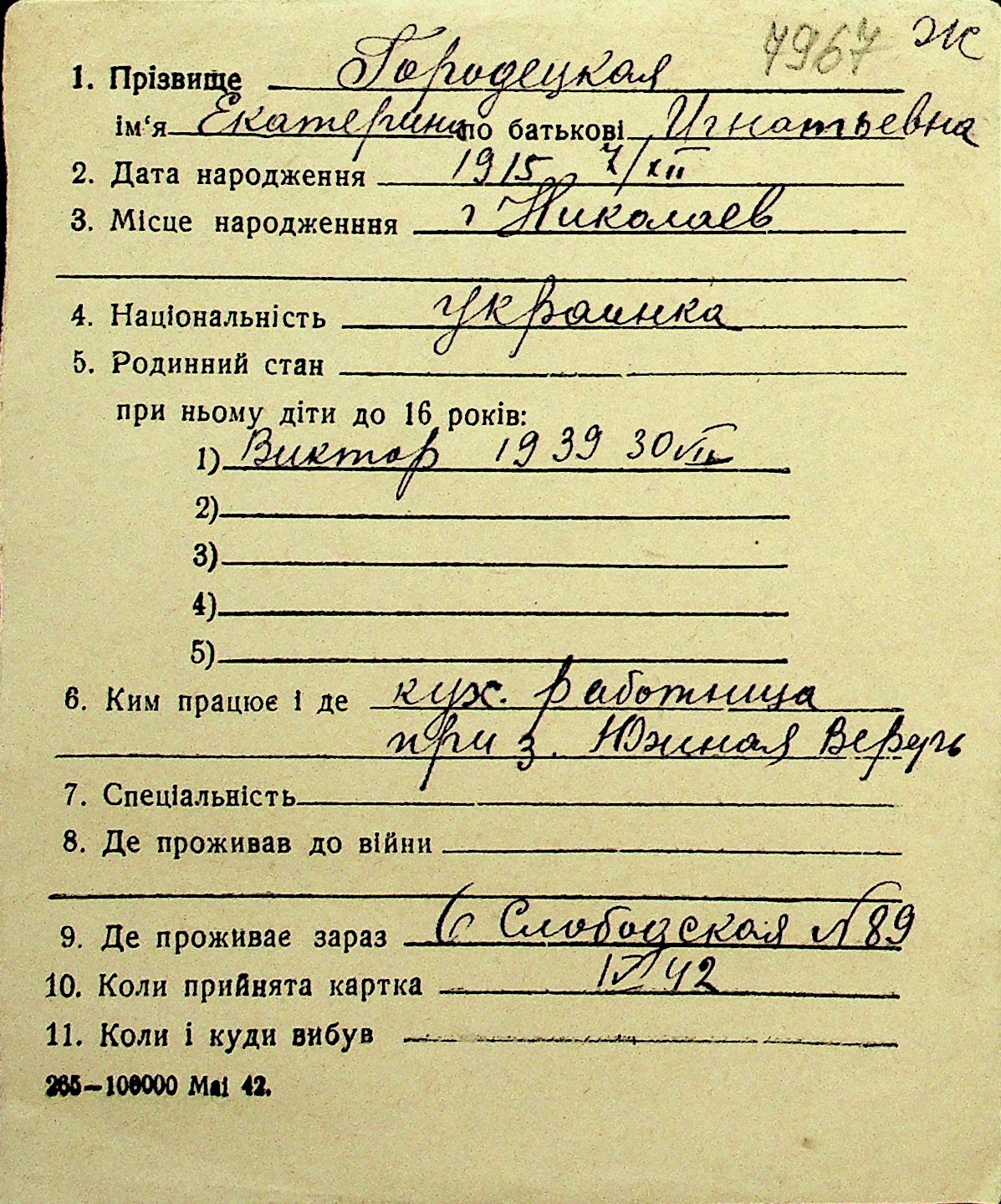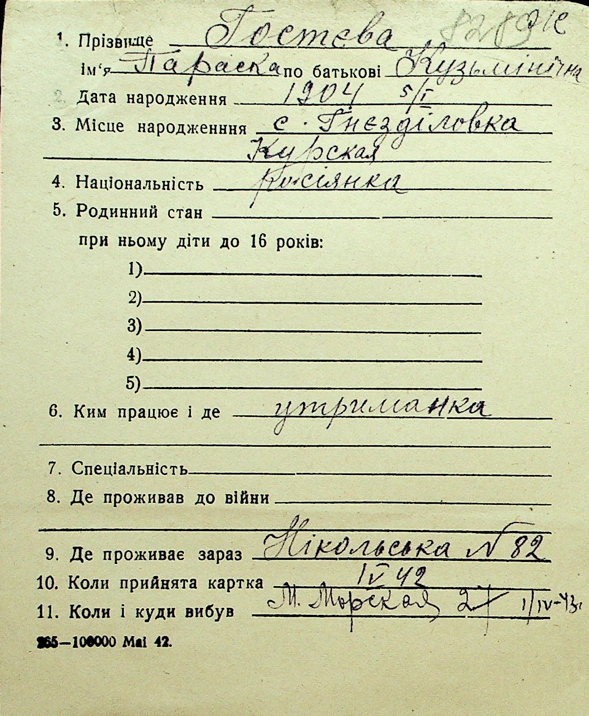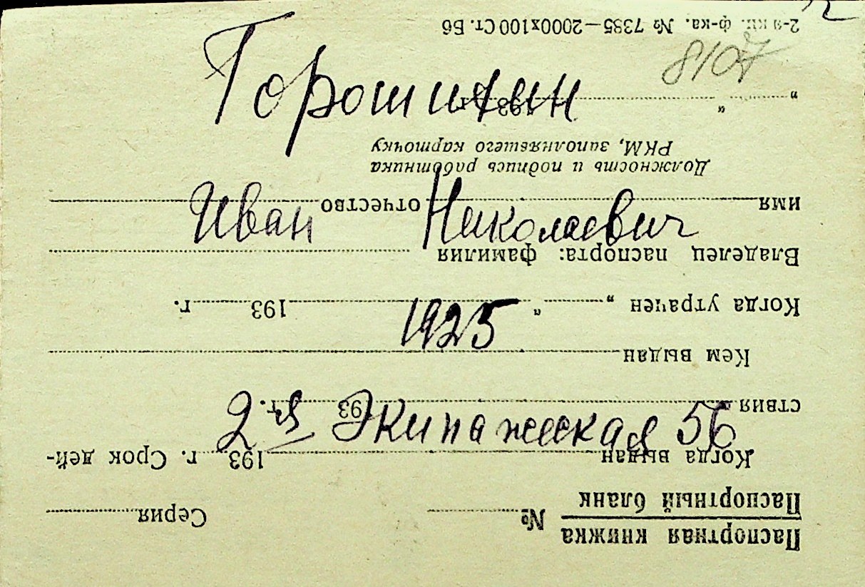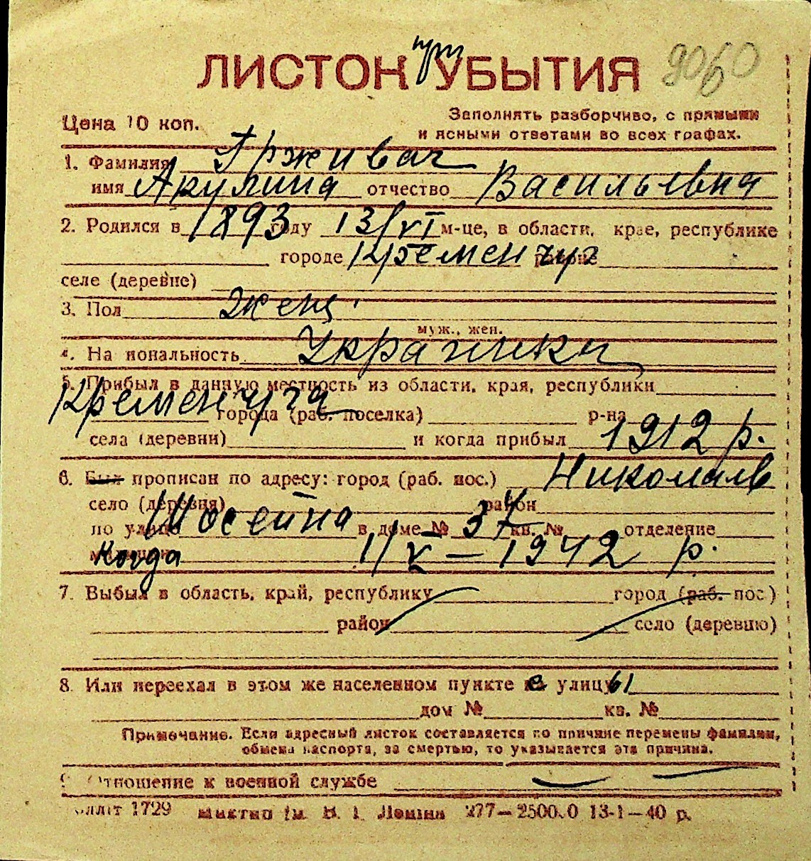 • • Перелік карток до фонду № Н-1016