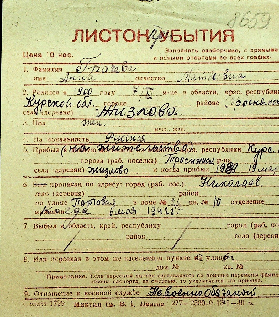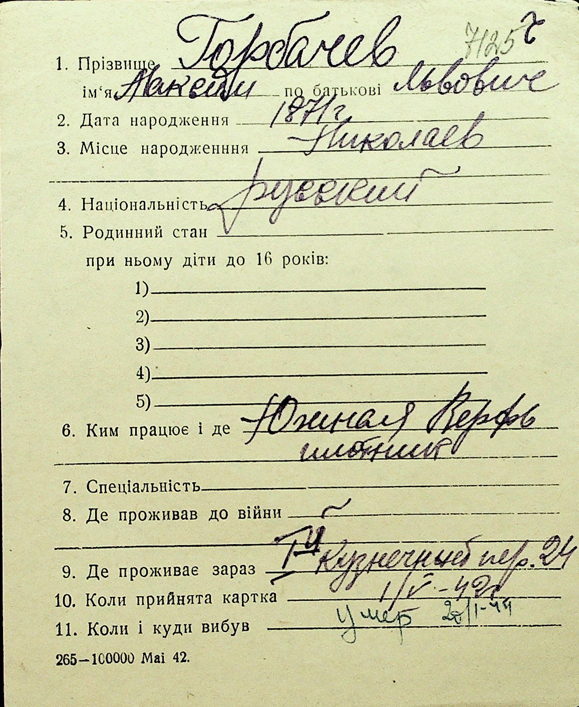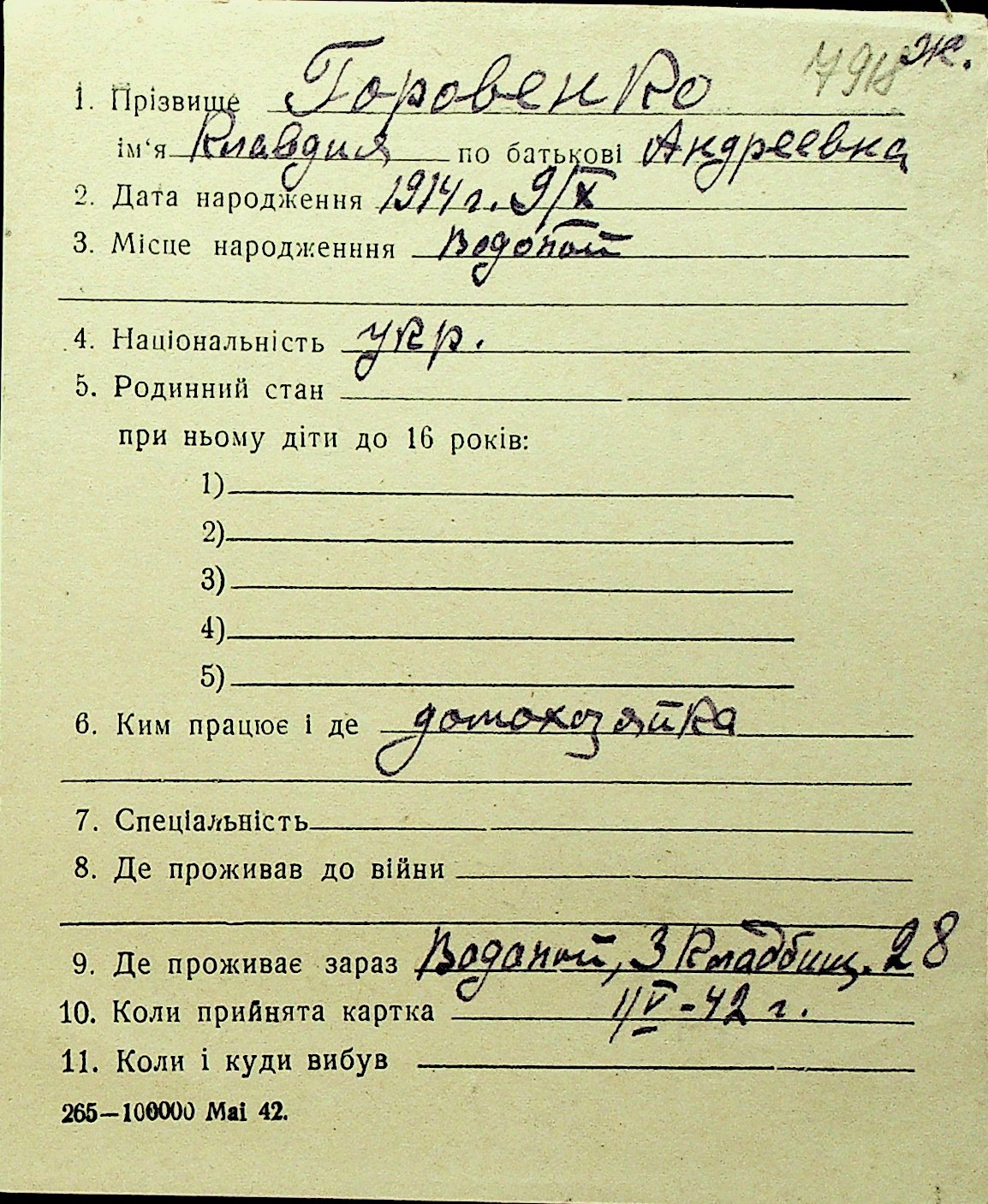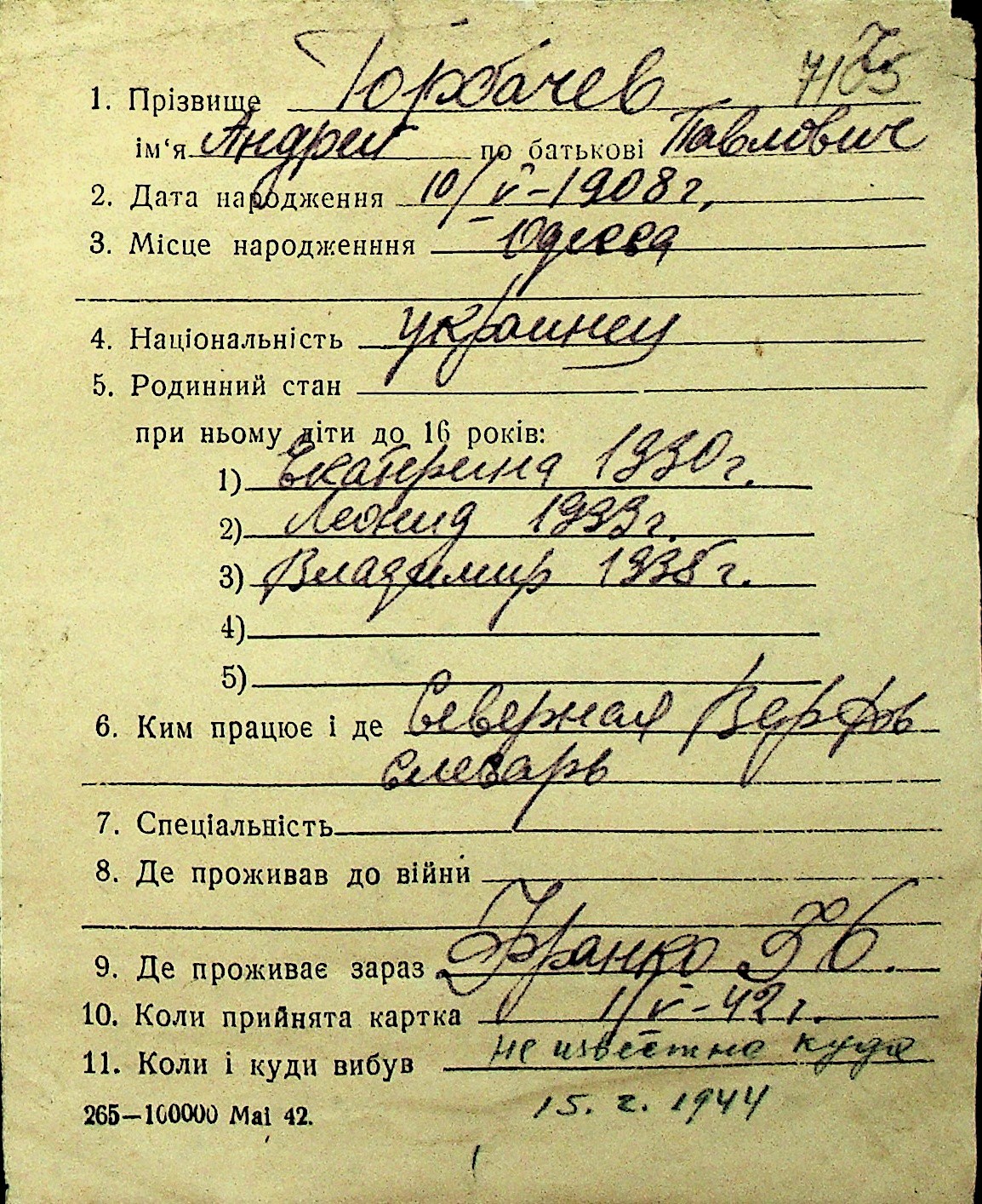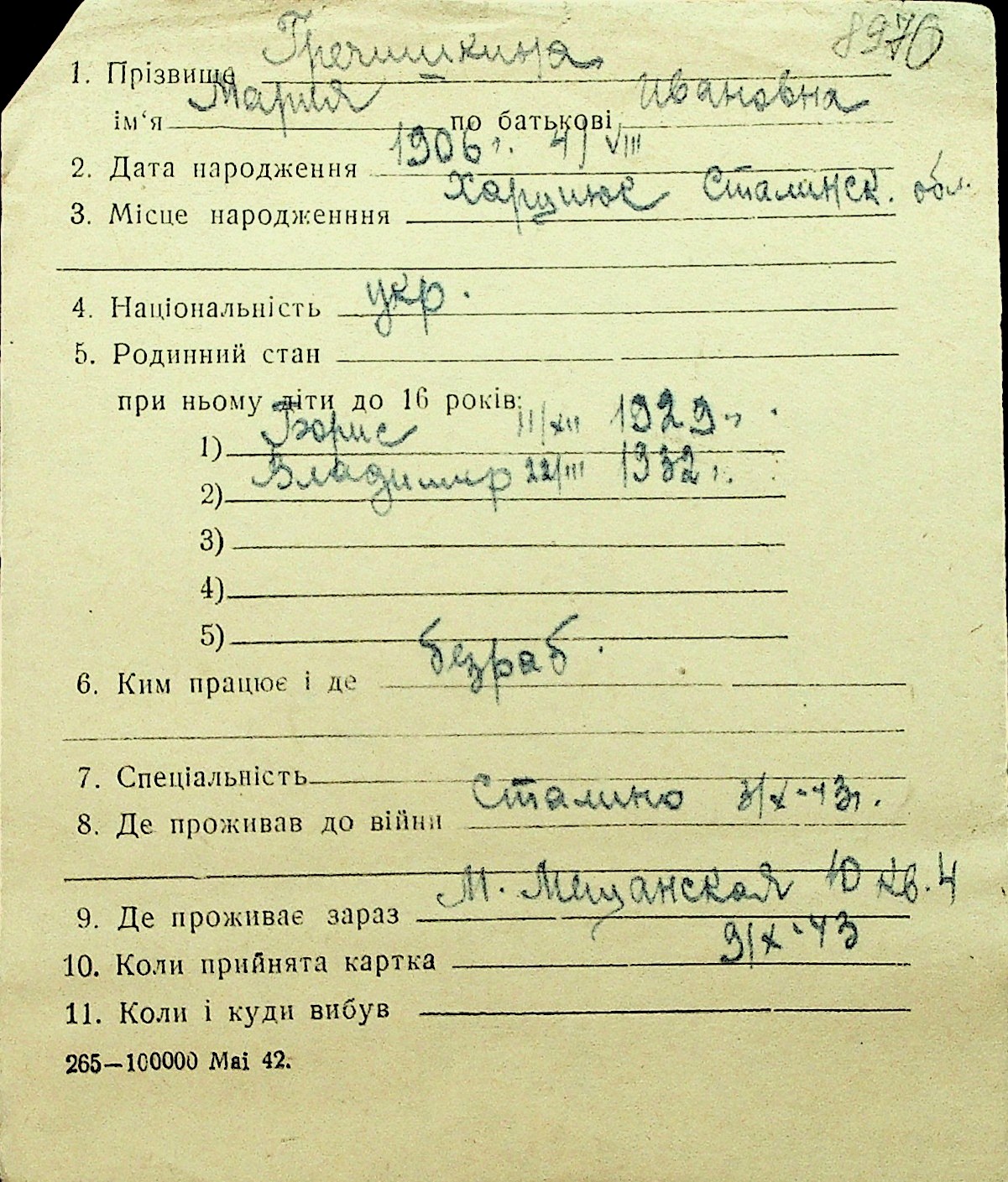 • • Перелік карток до фонду № Н-1016