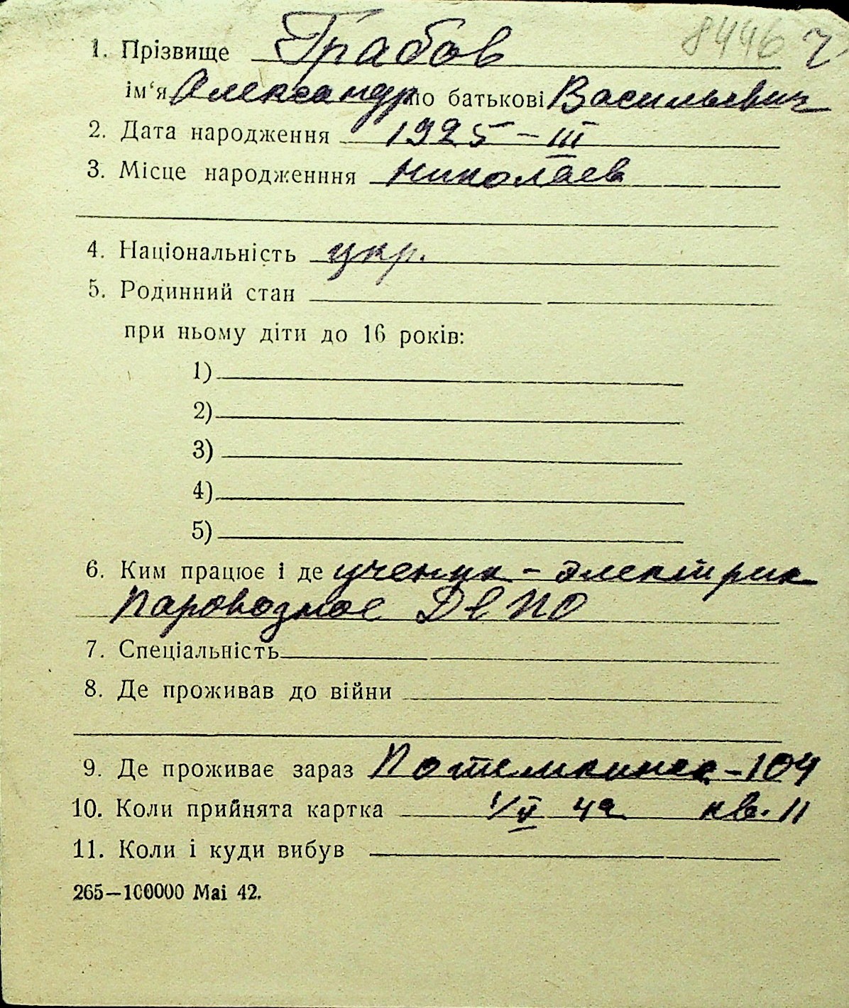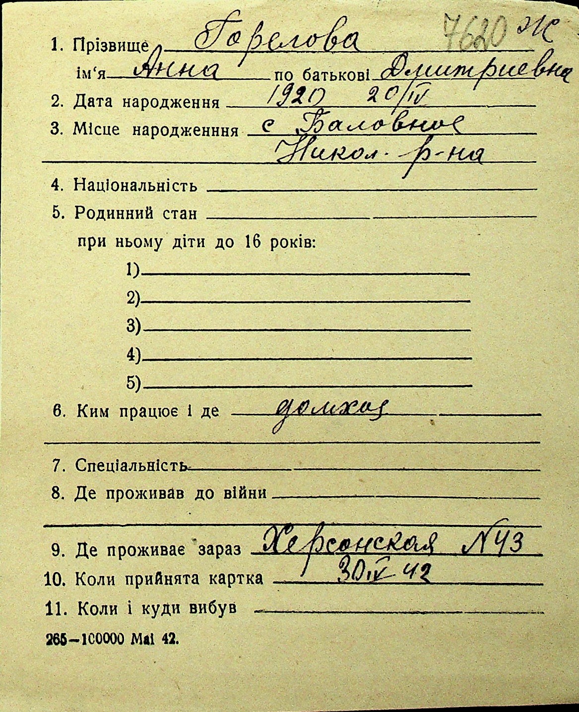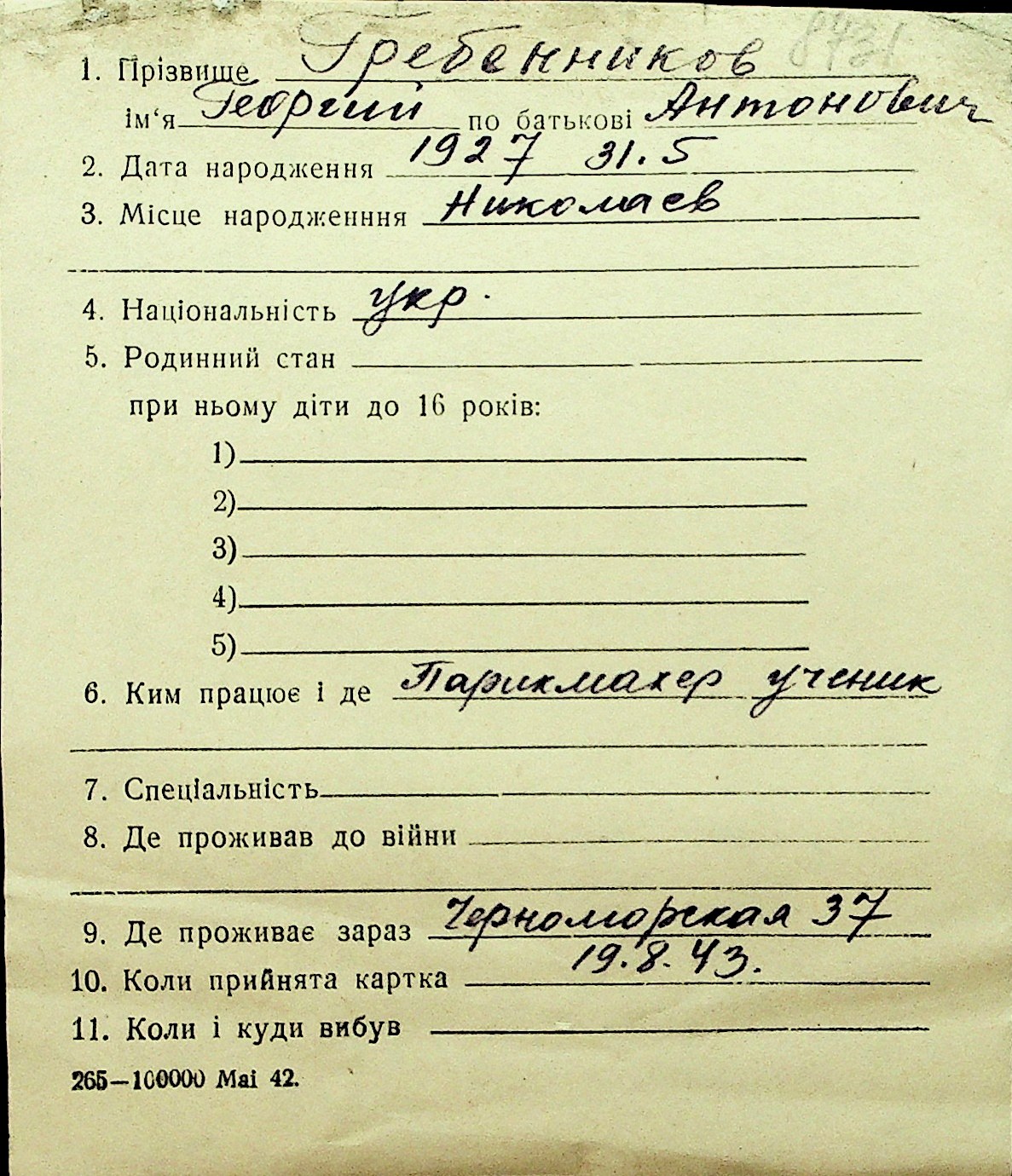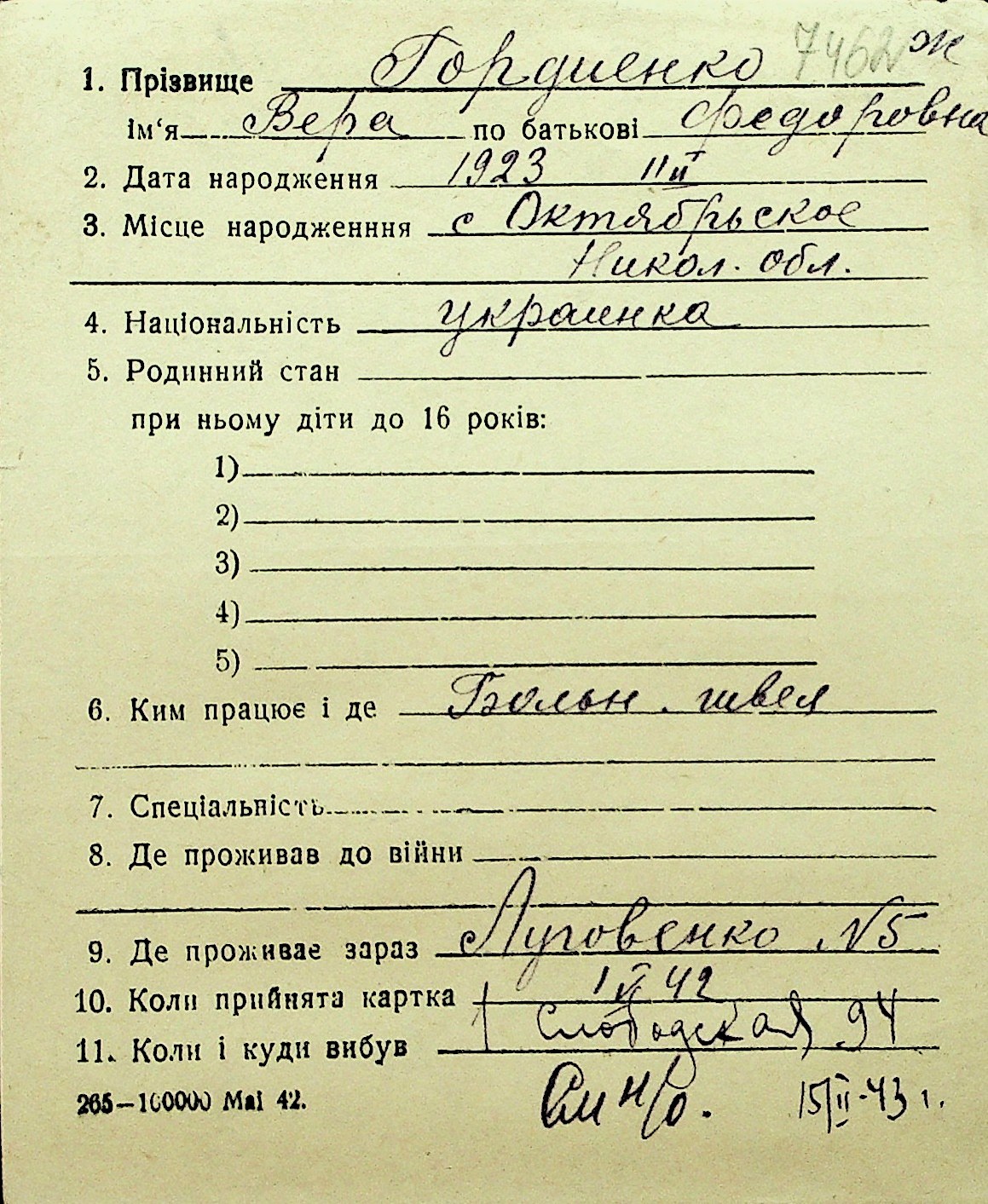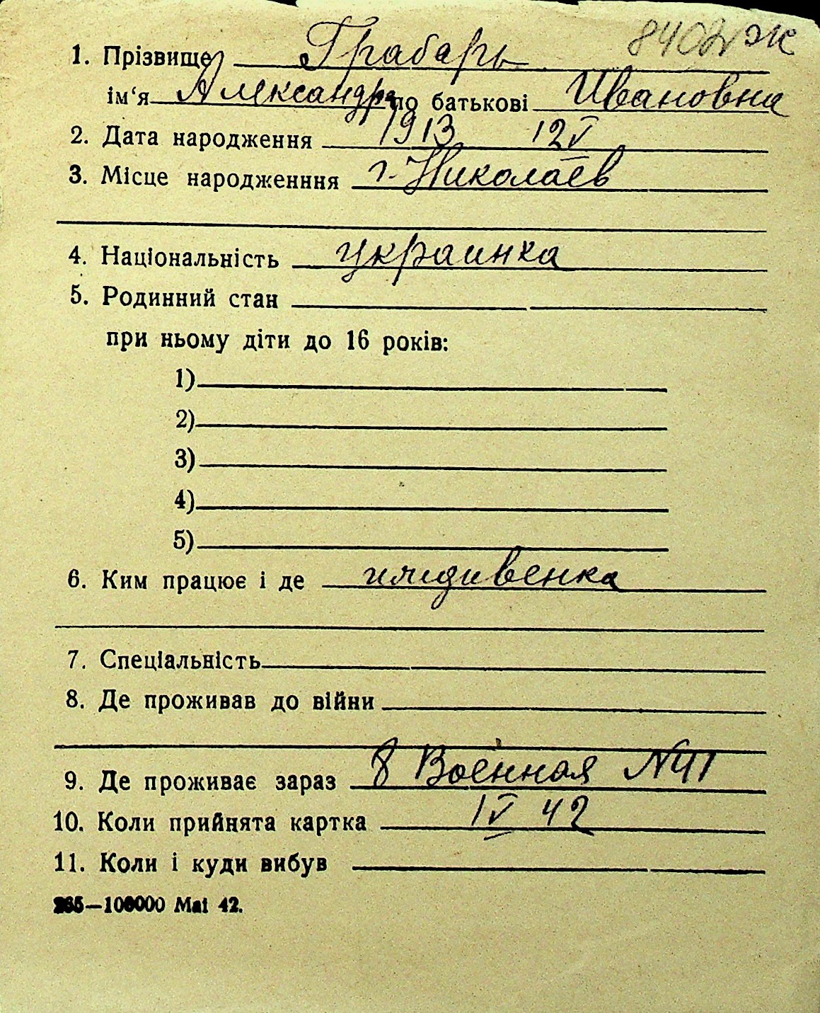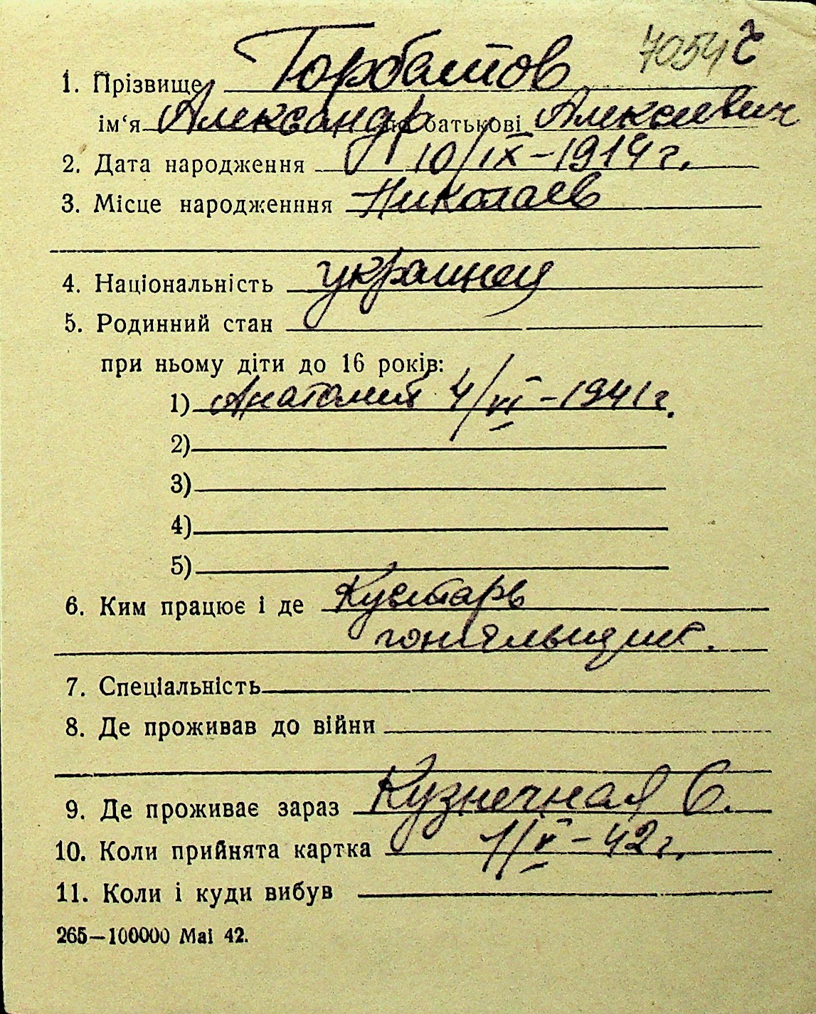 • • Перелік карток до фонду № Н-1016
