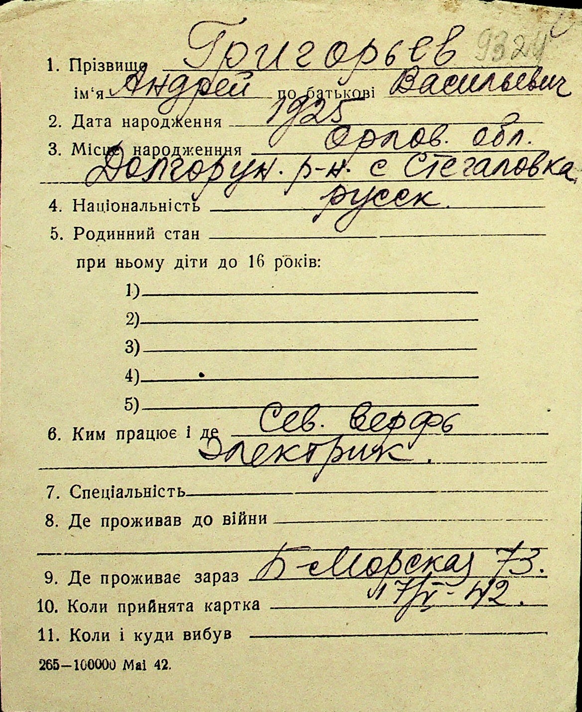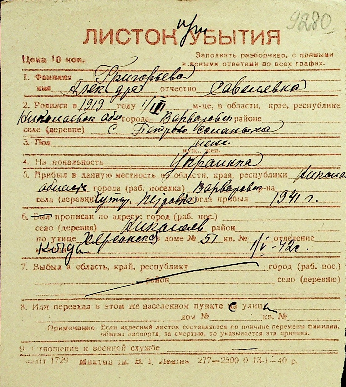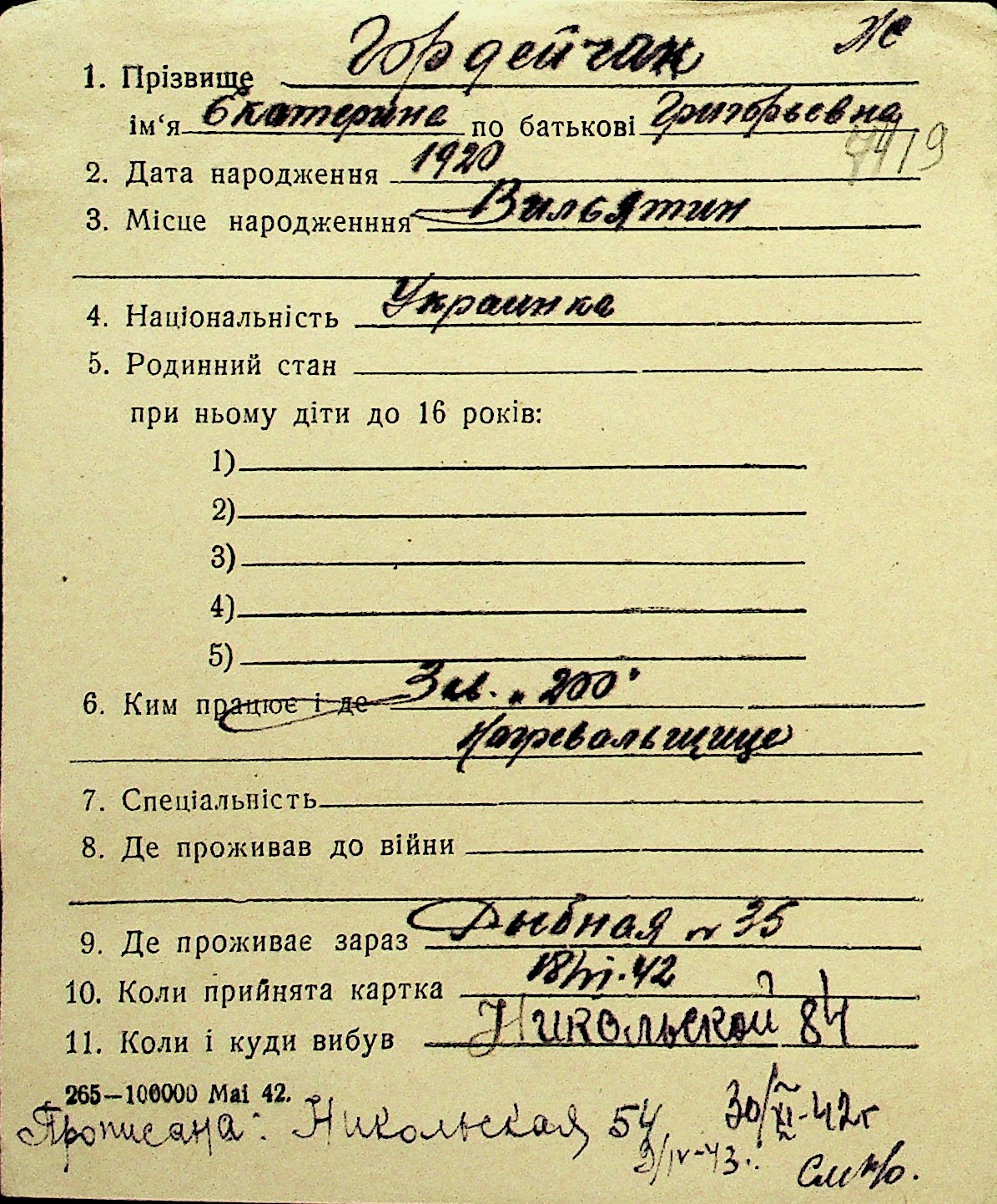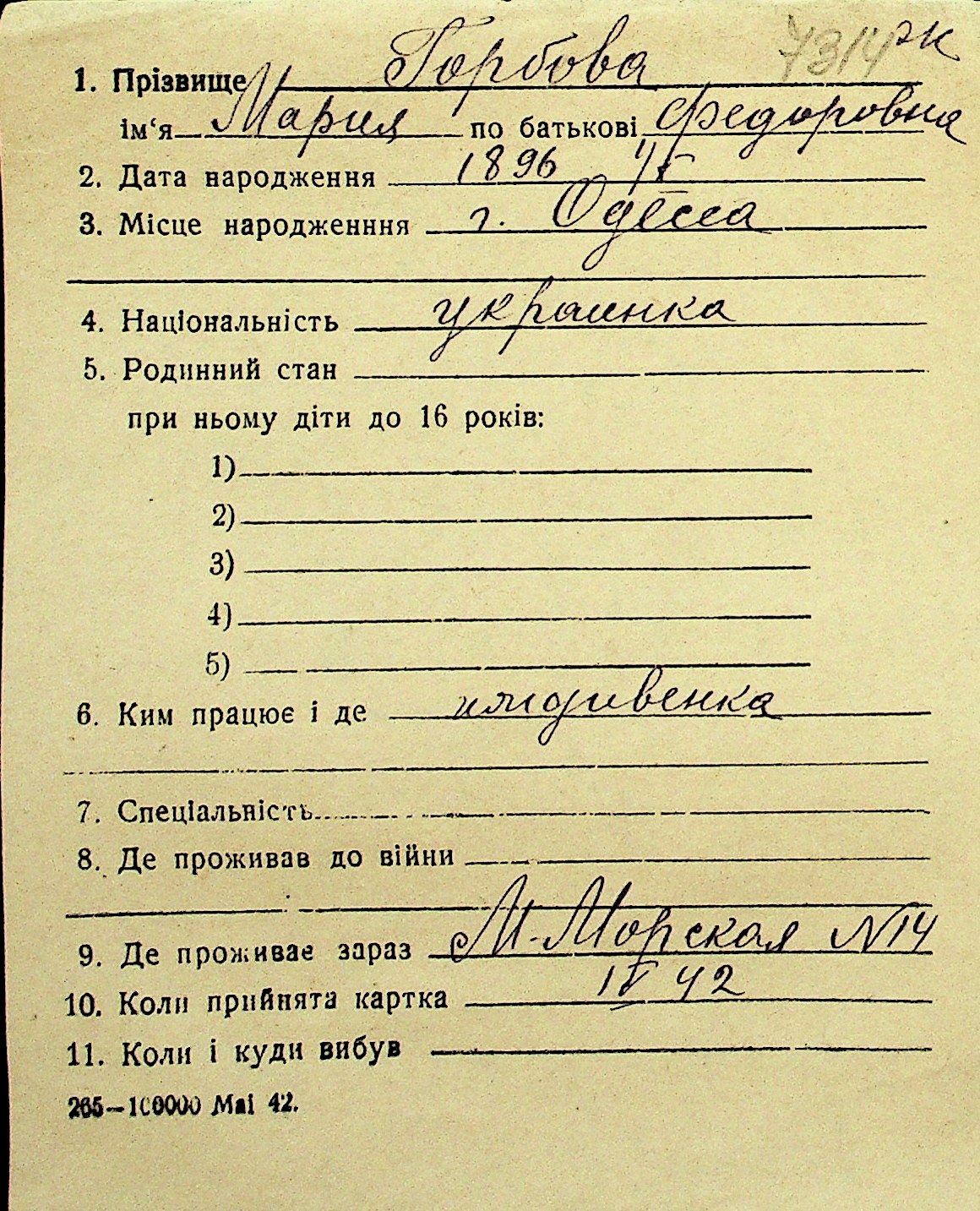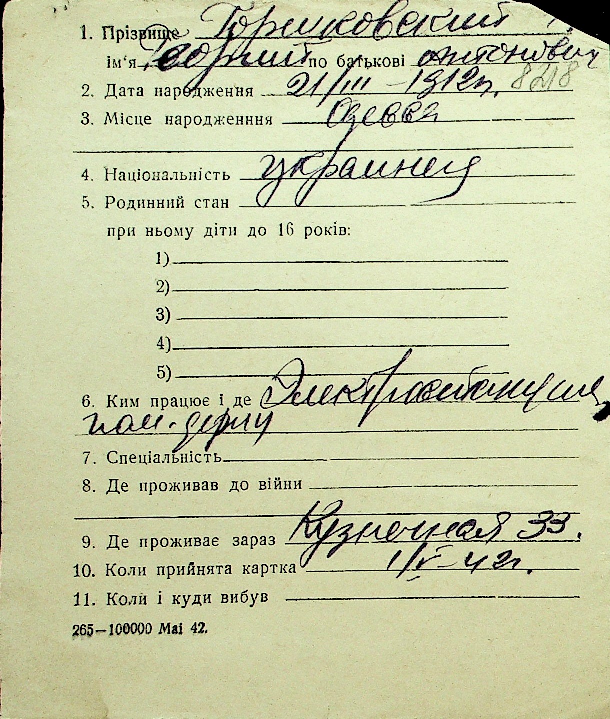 • • Перелік карток до фонду № Н-1016