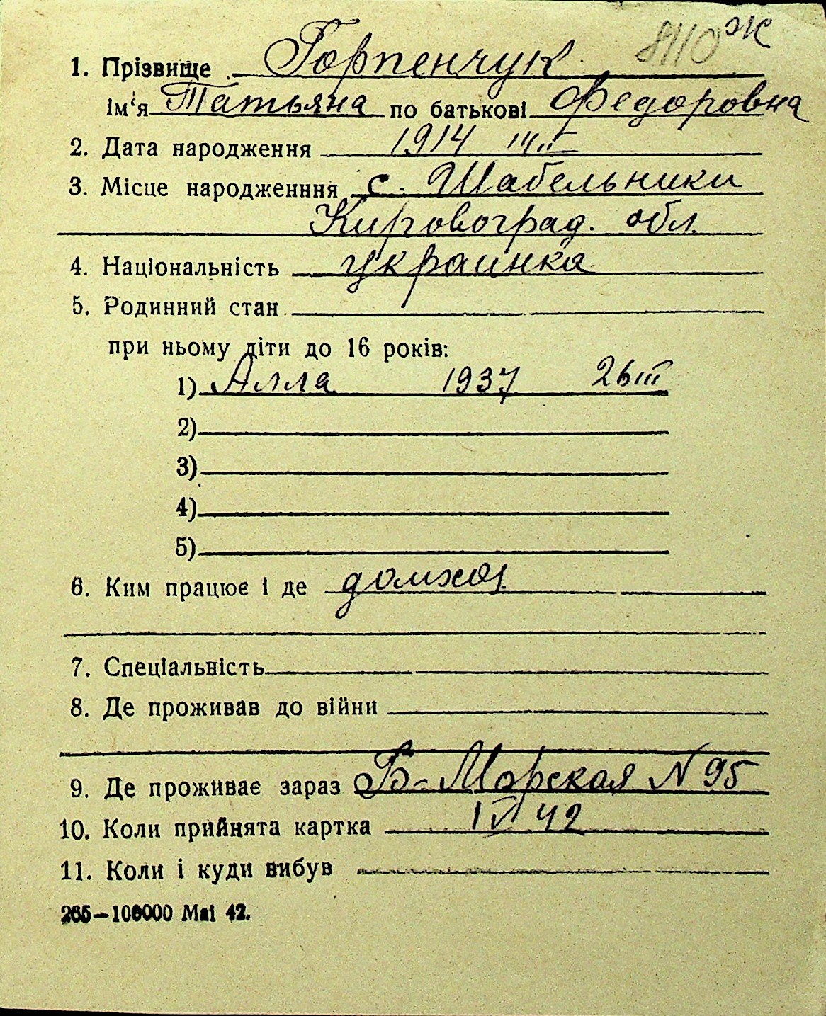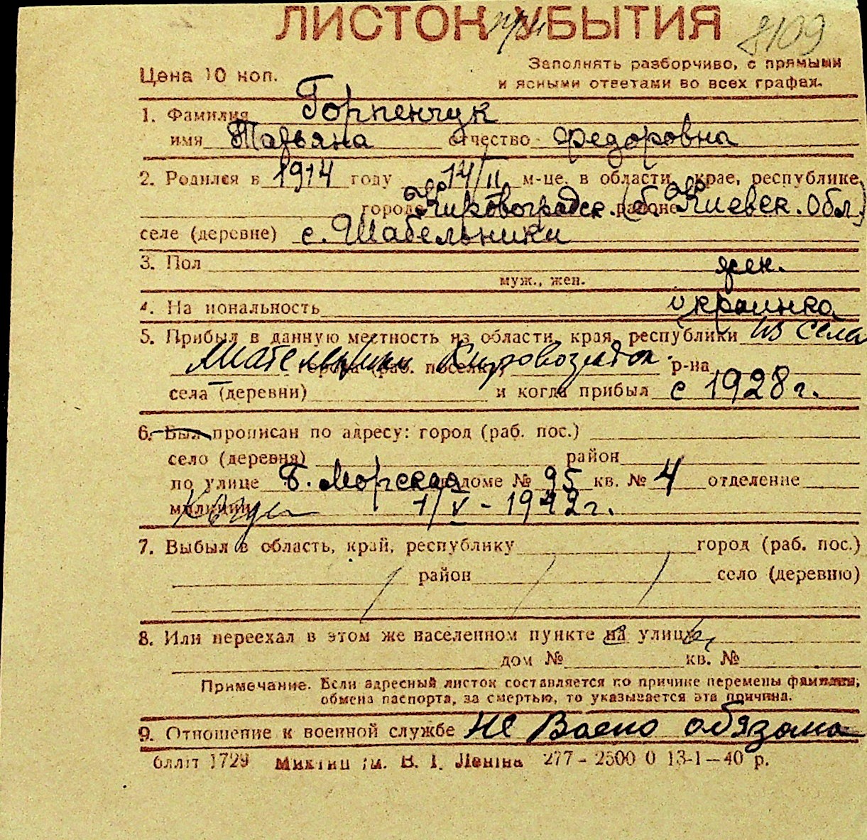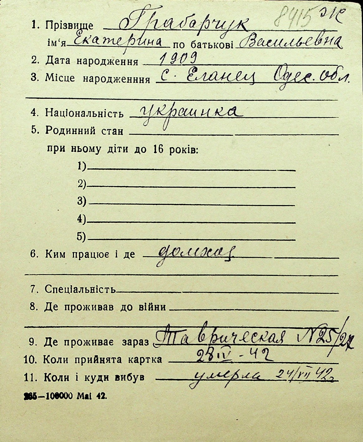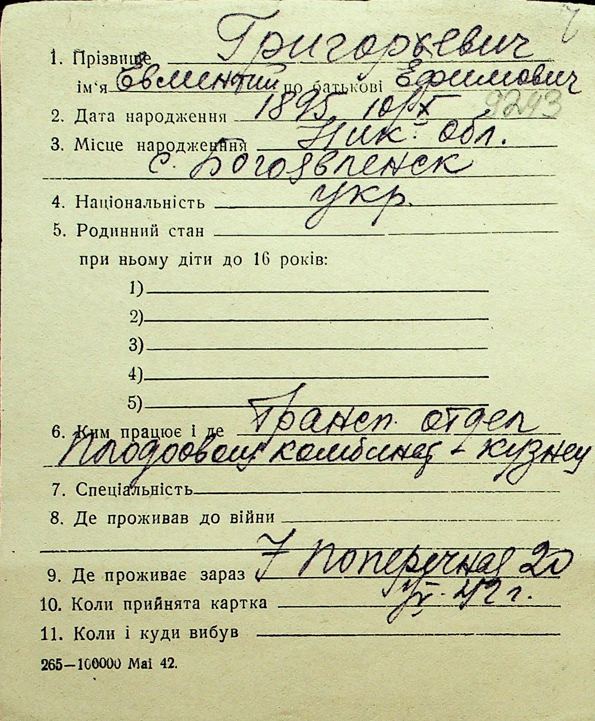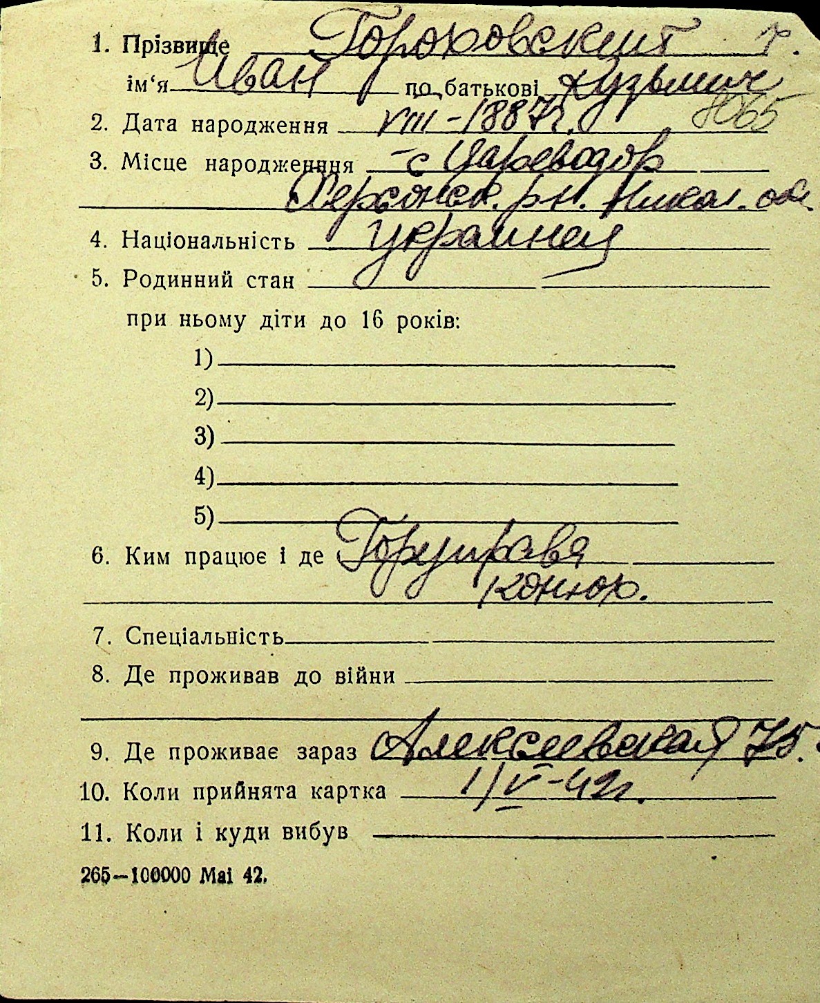 • • Перелік карток до фонду № Н-1016