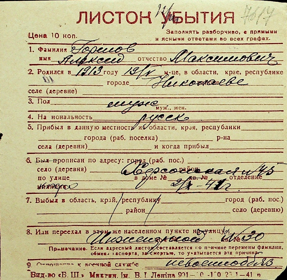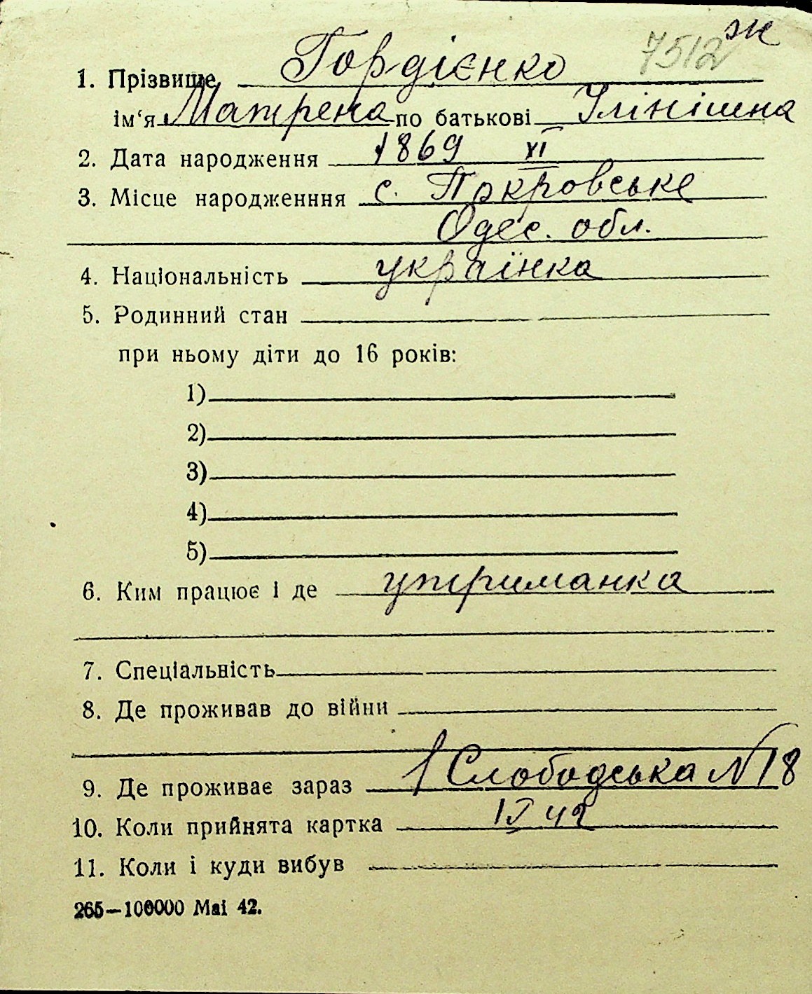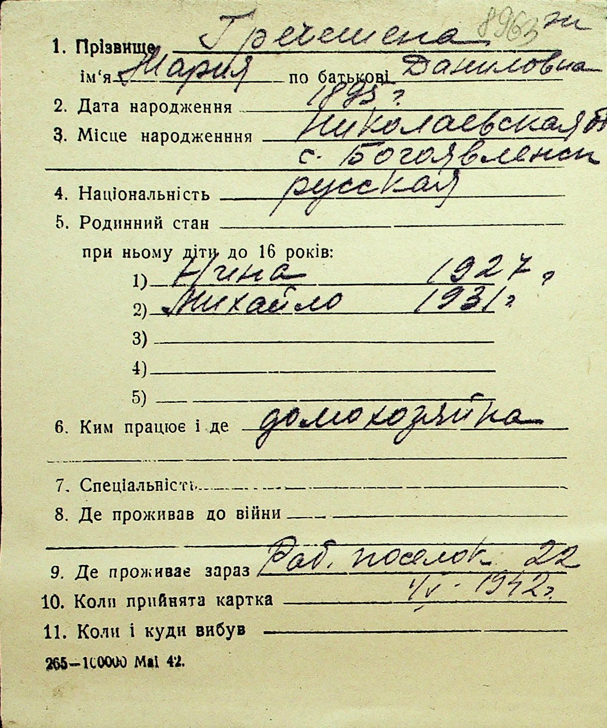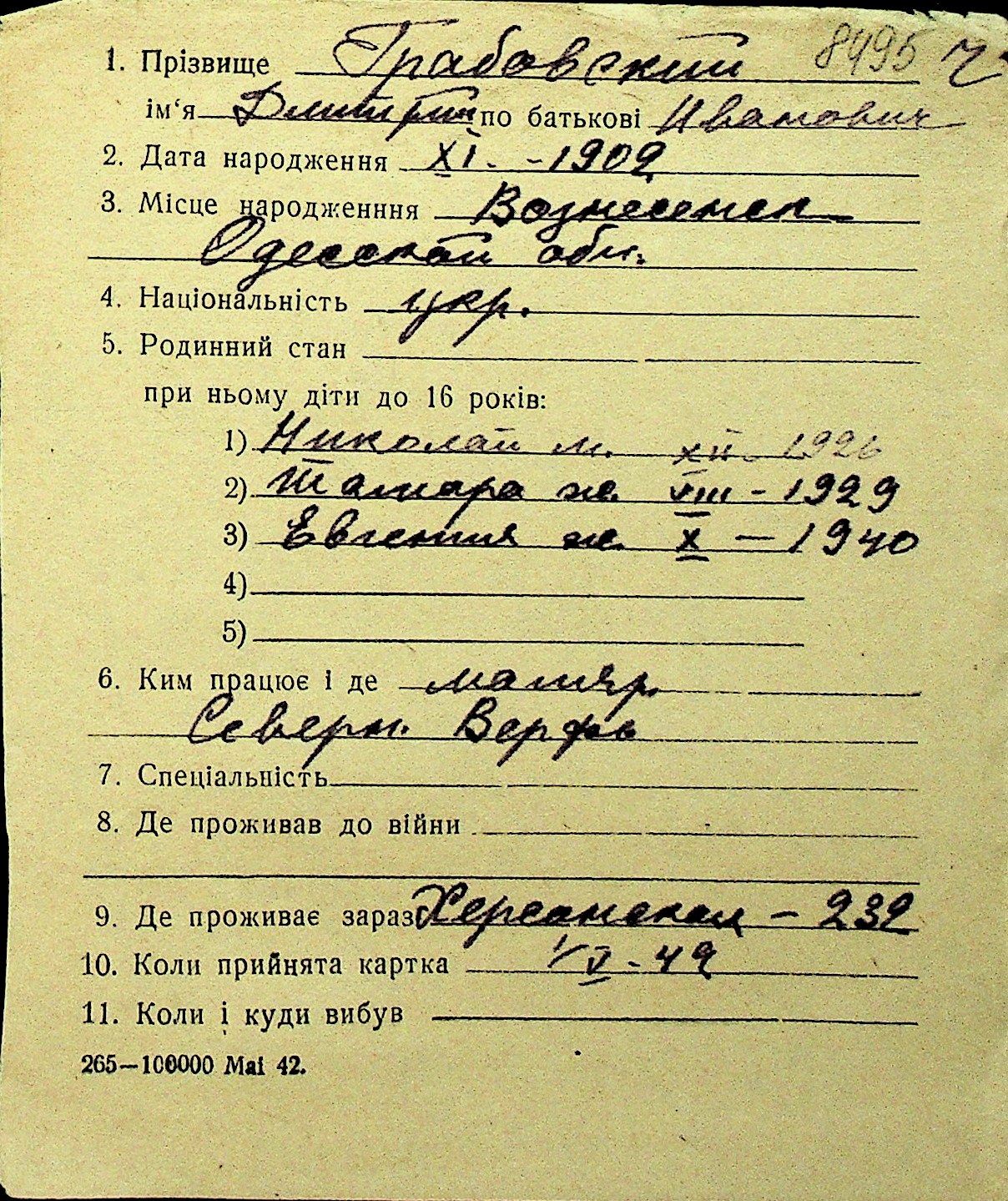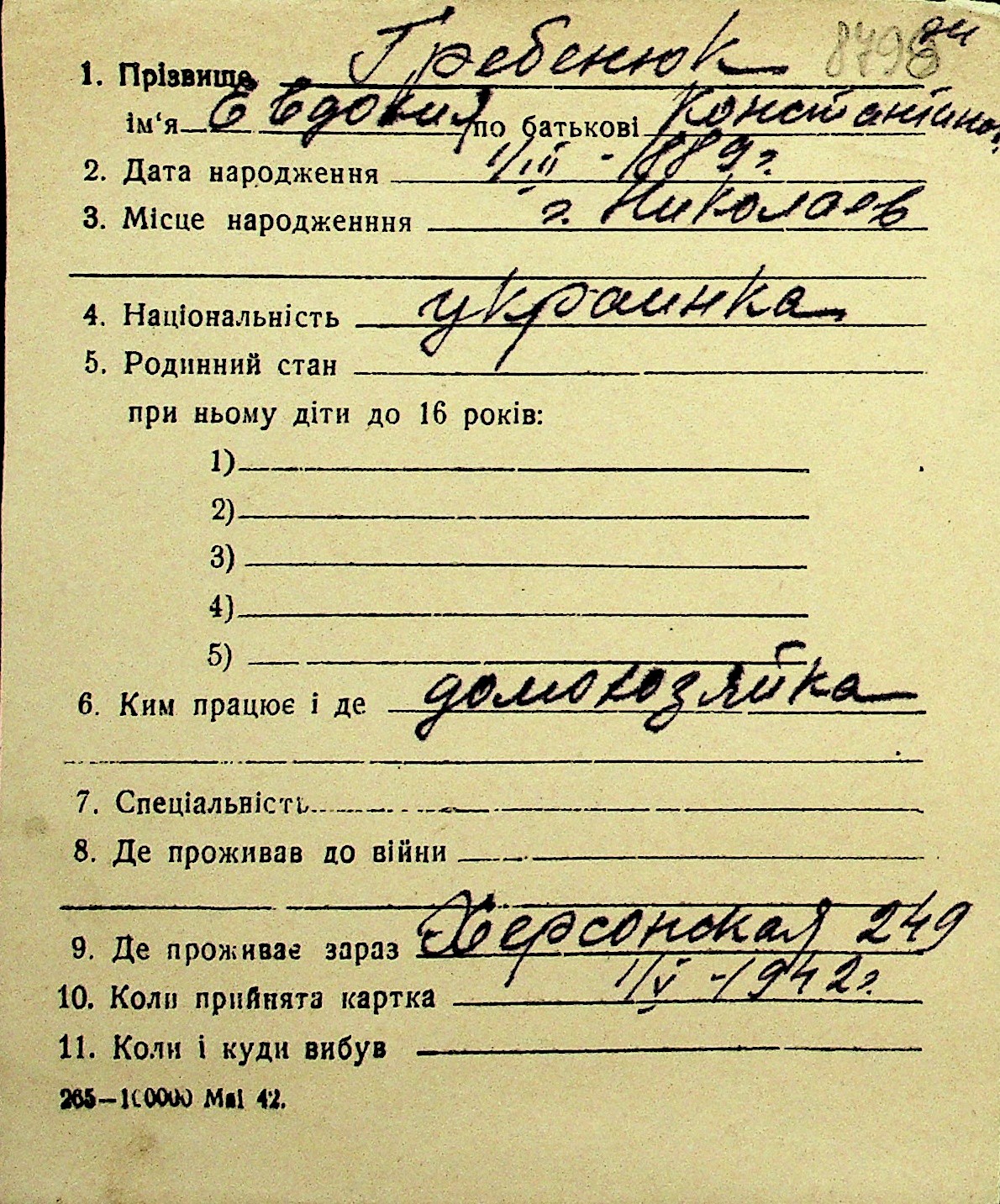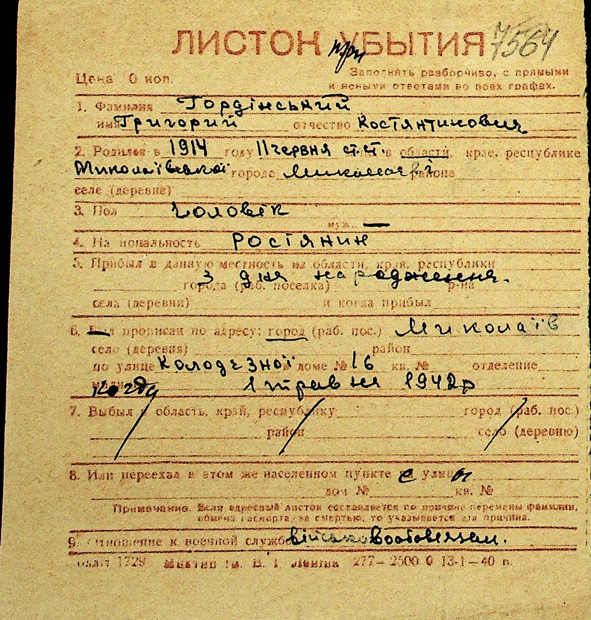 • • Перелік карток до фонду № Н-1016