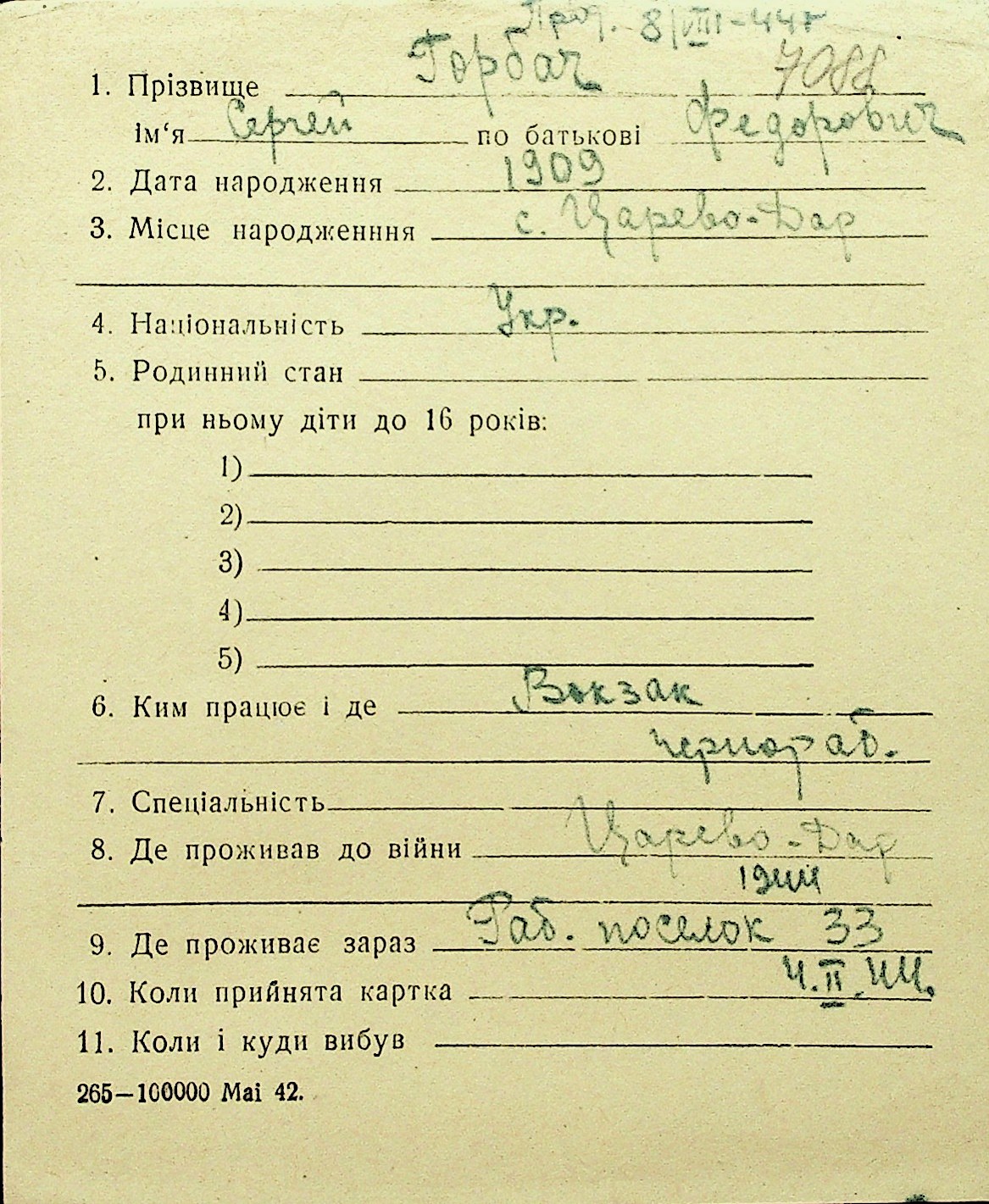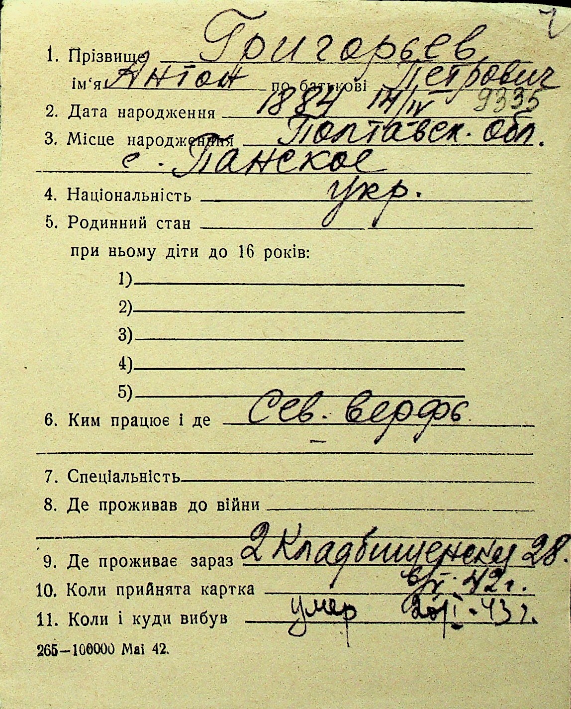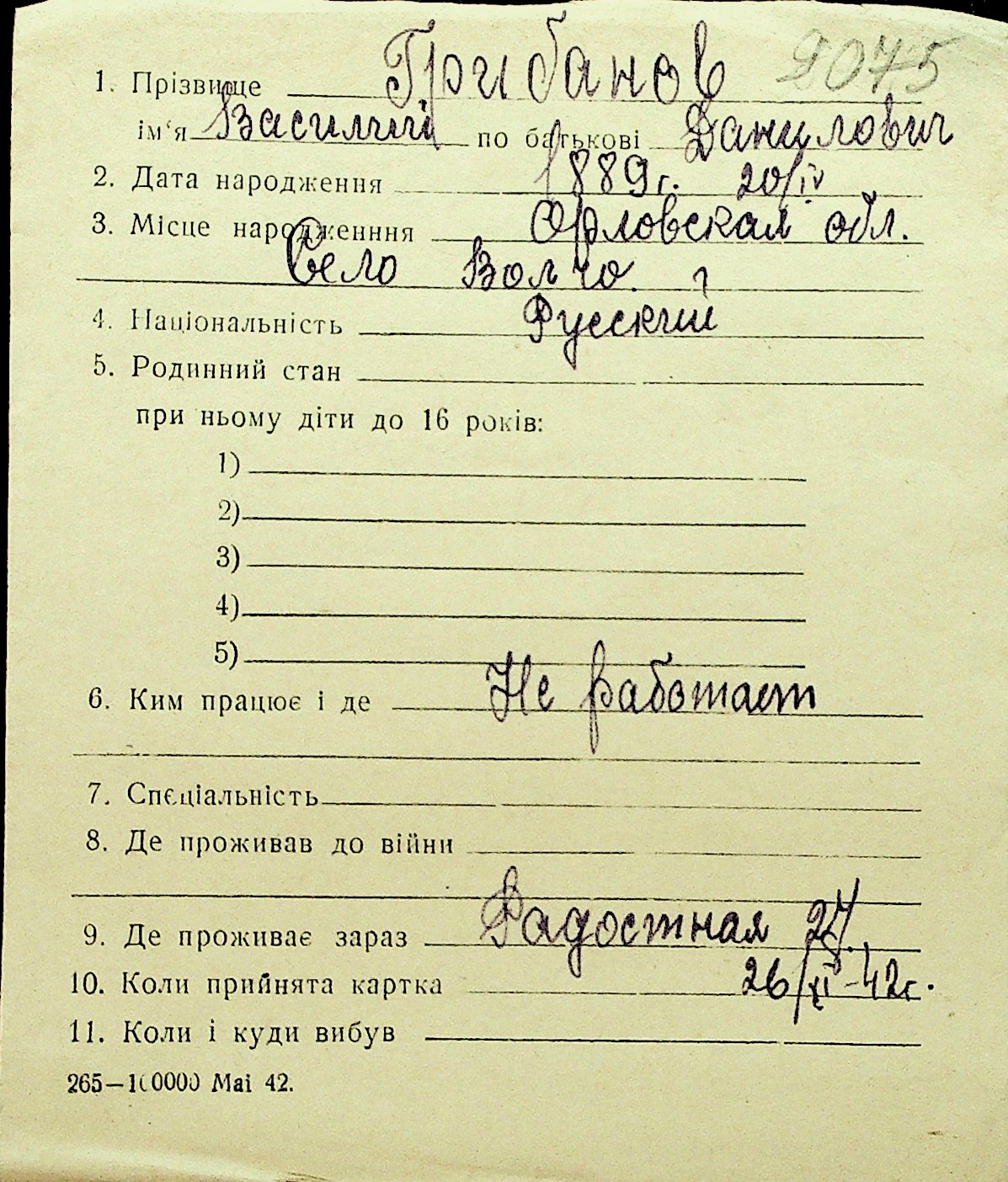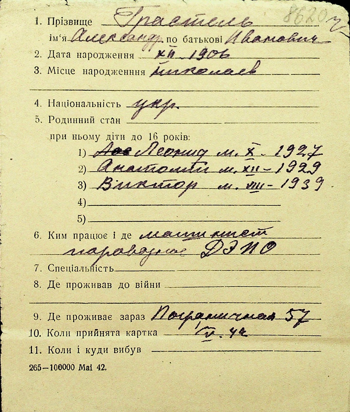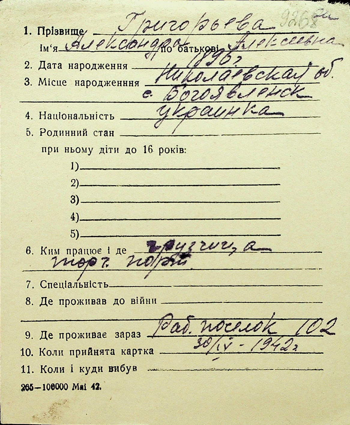 • • Перелік карток до фонду № Н-1016