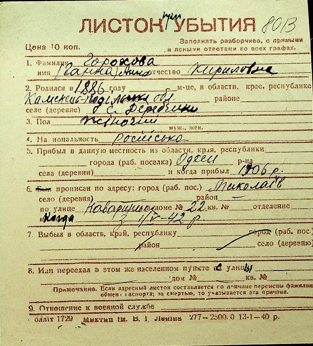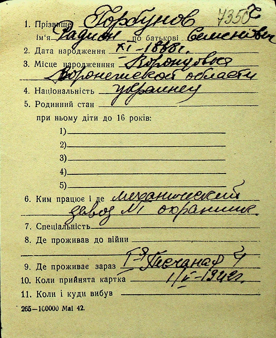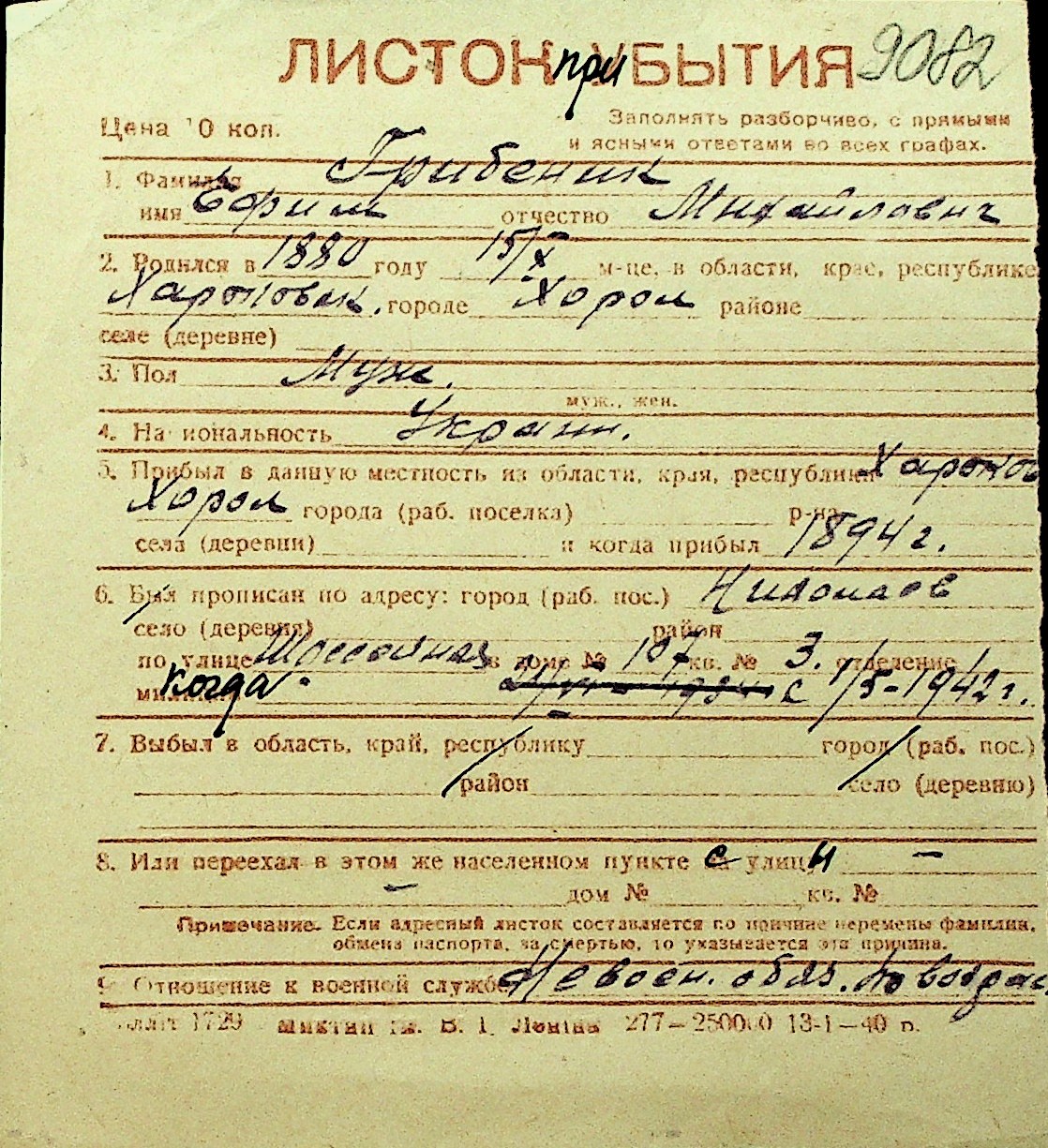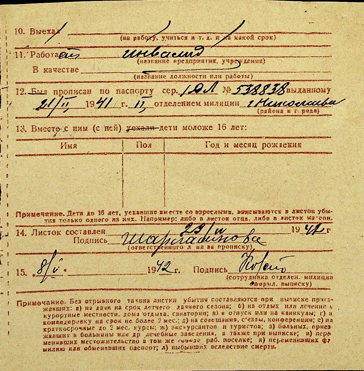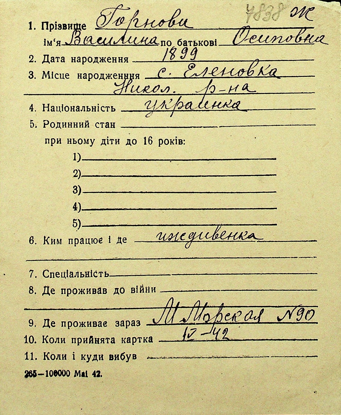 • • Перелік карток до фонду № Н-1016