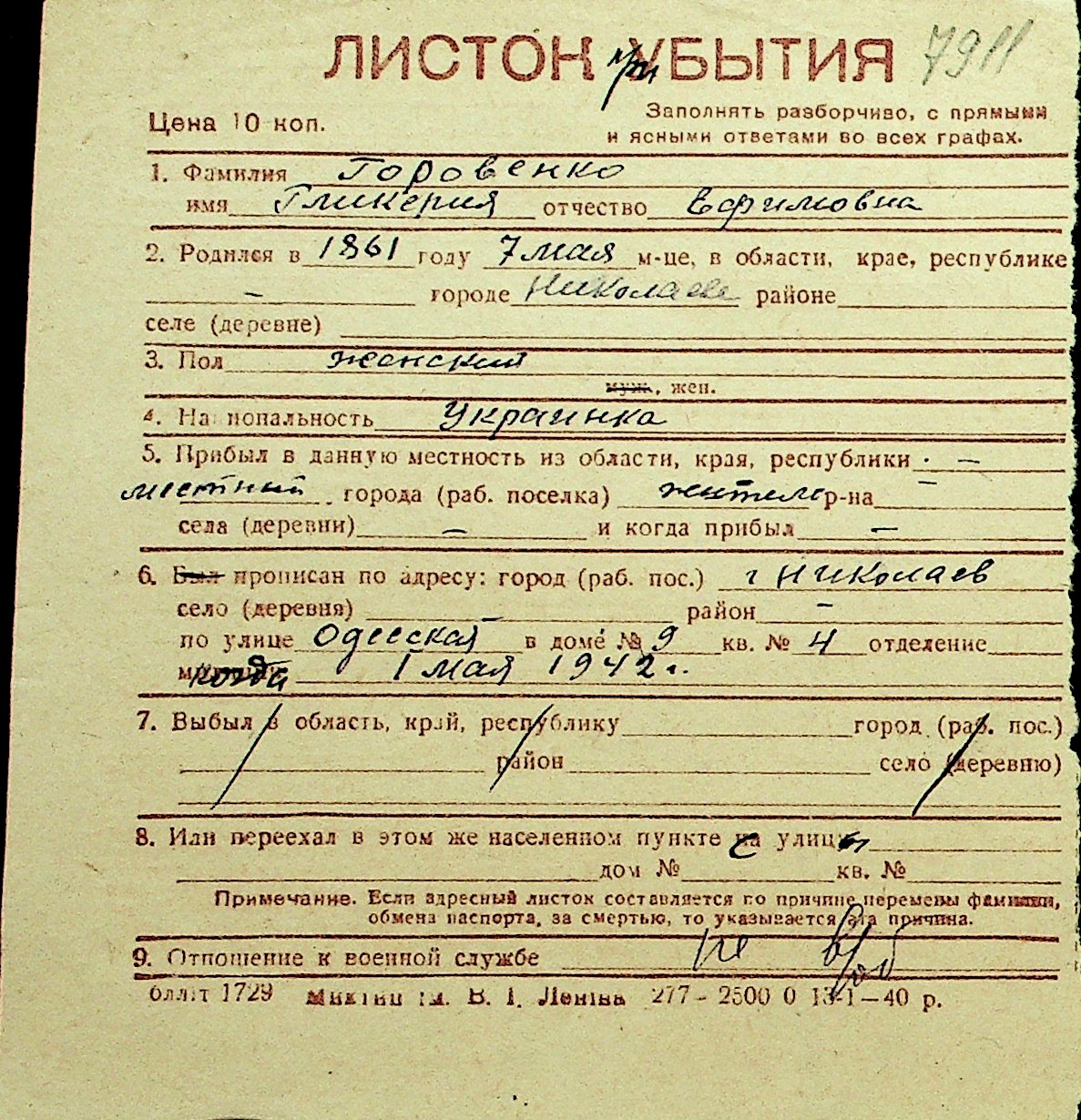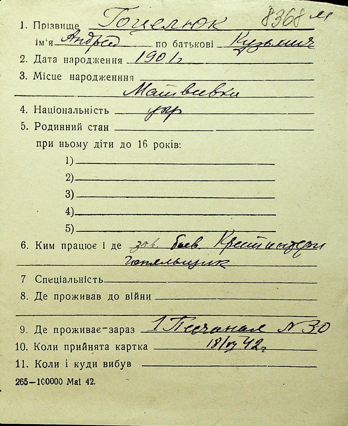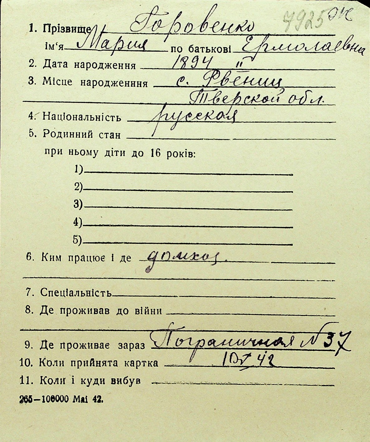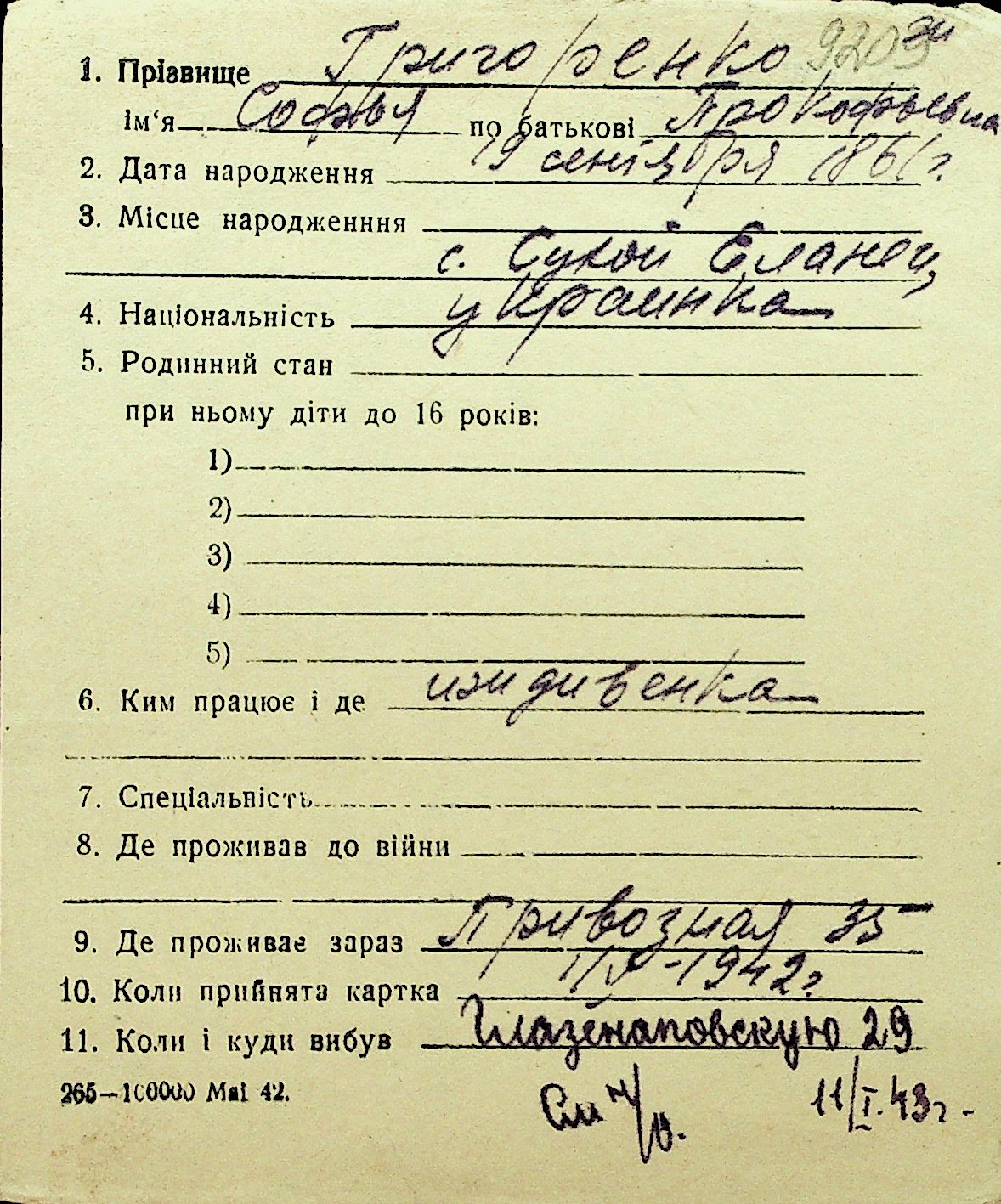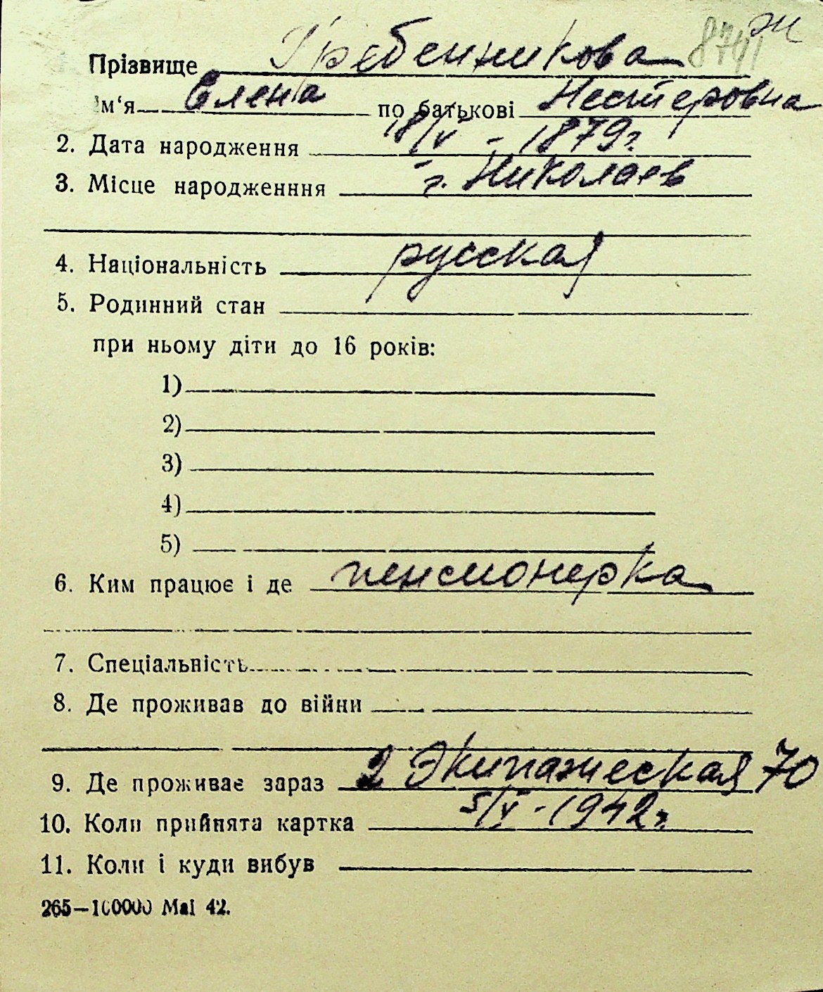 • • Перелік карток до фонду № Н-1016