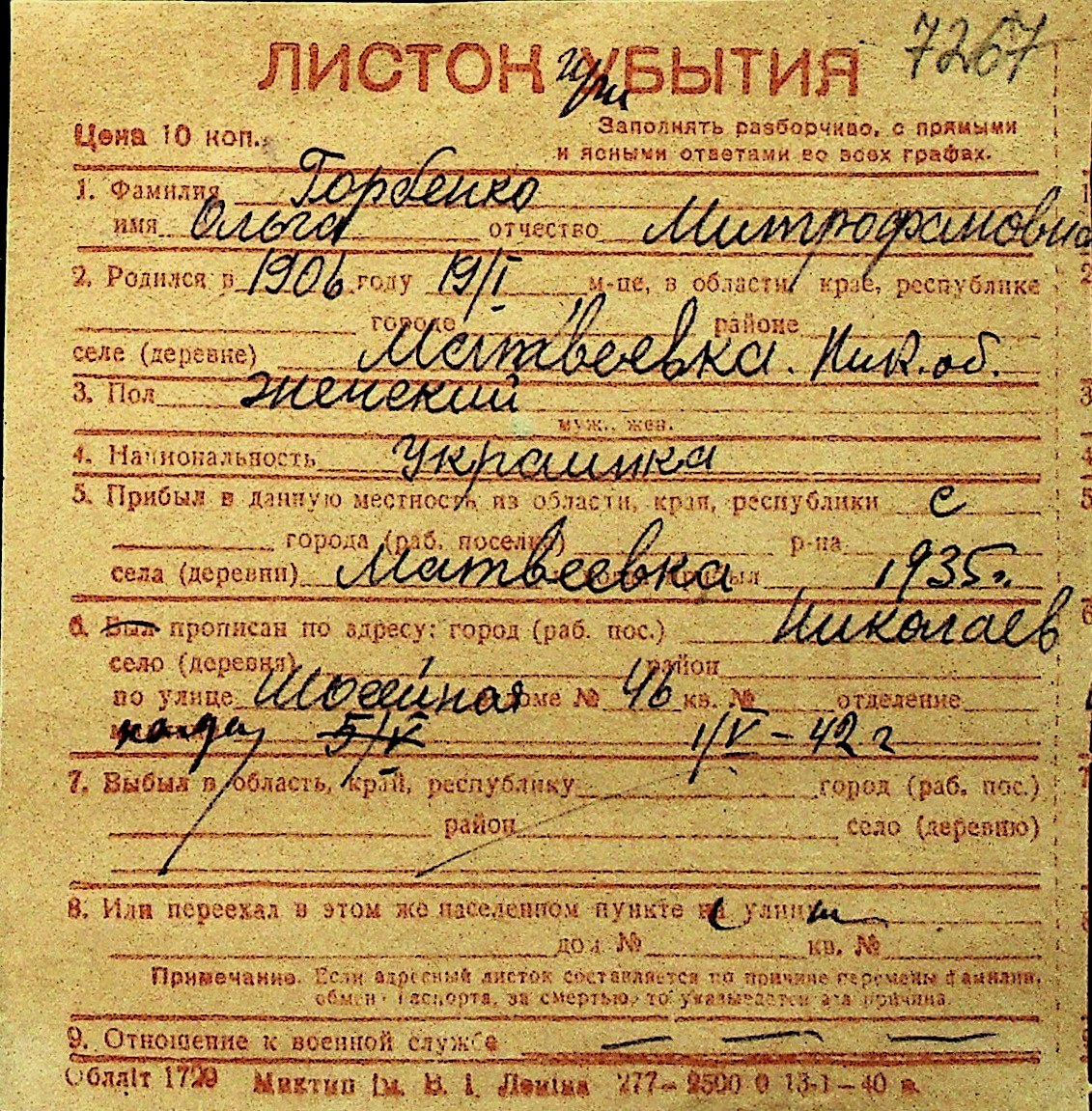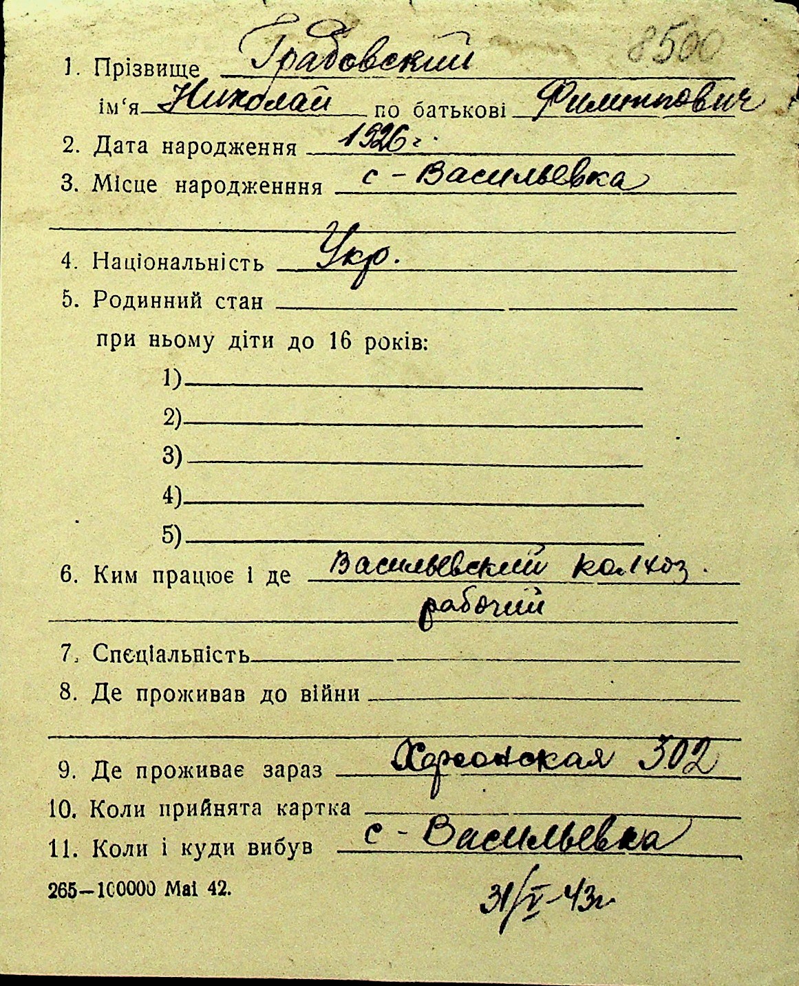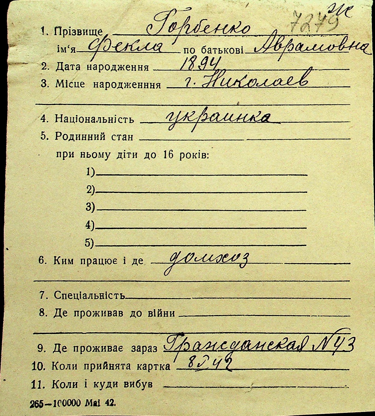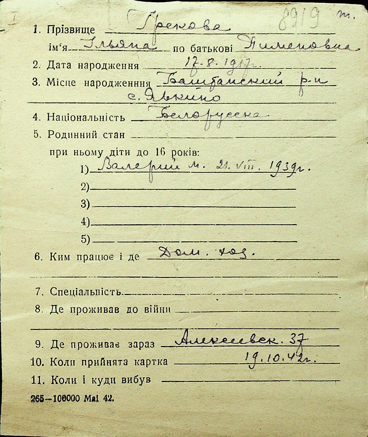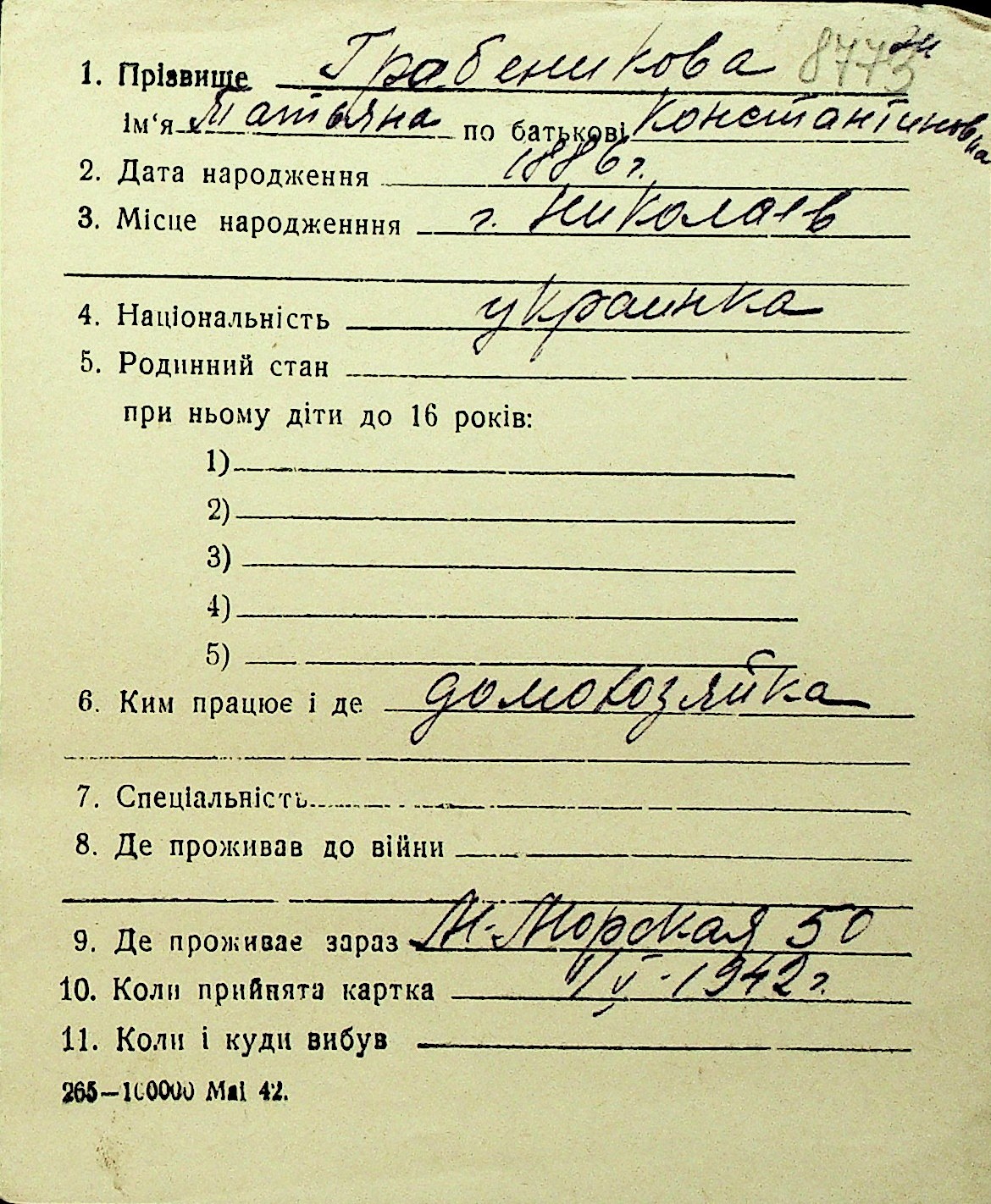 • • Перелік карток до фонду № Н-1016