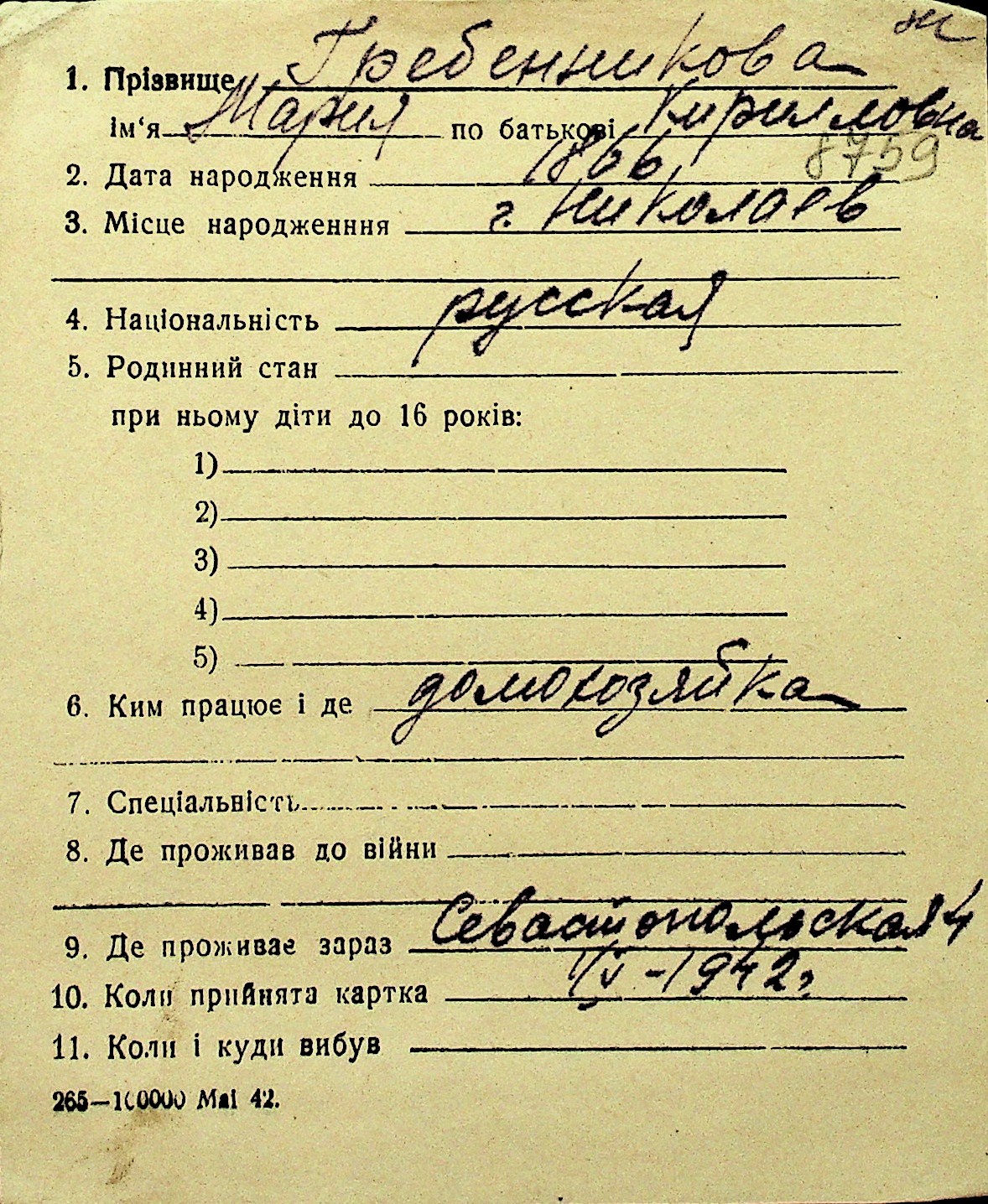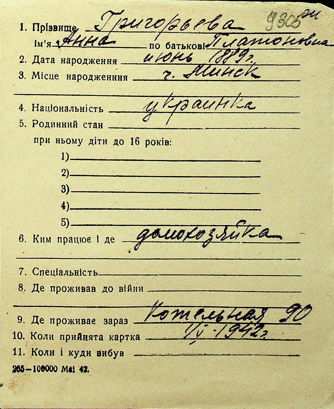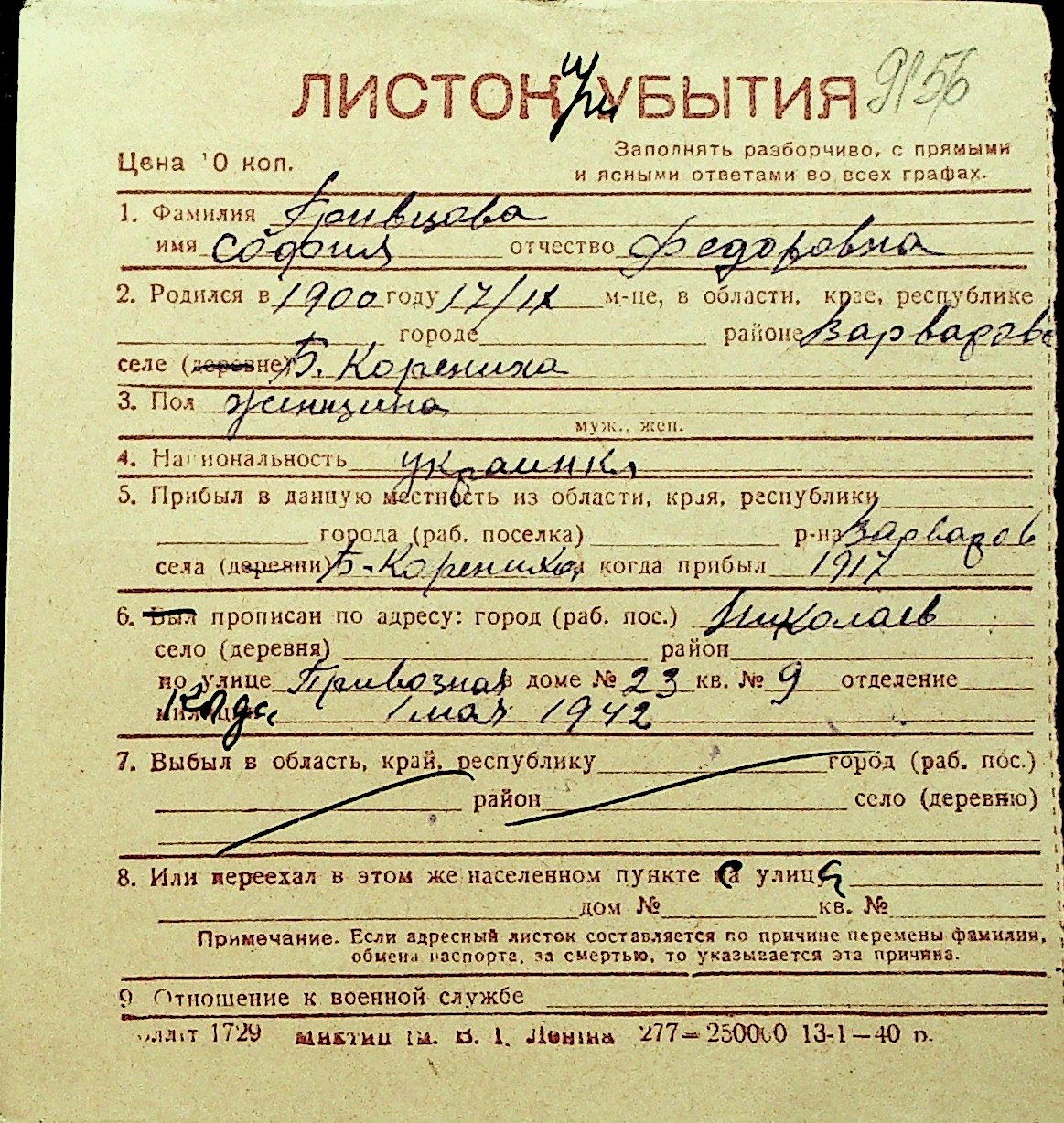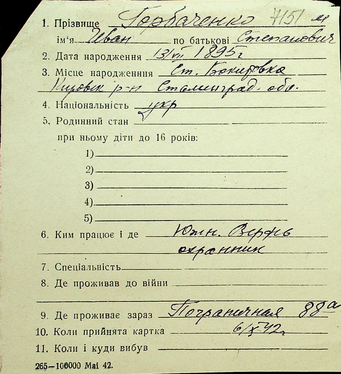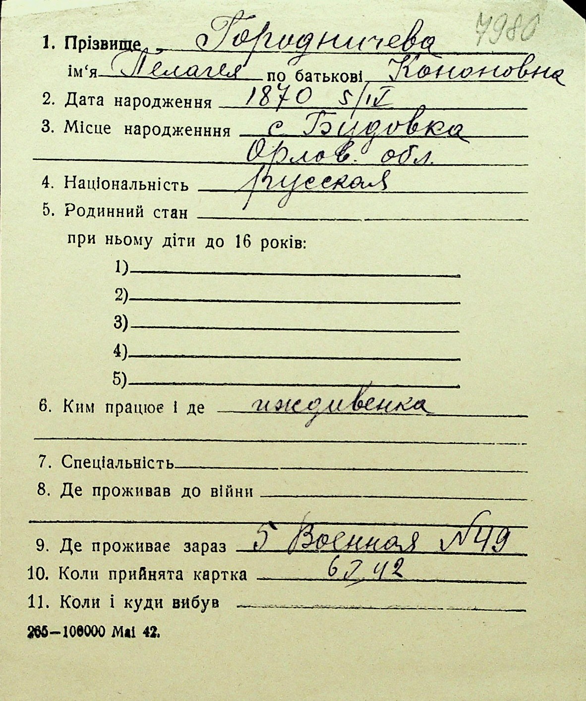 • • Перелік карток до фонду № Н-1016
