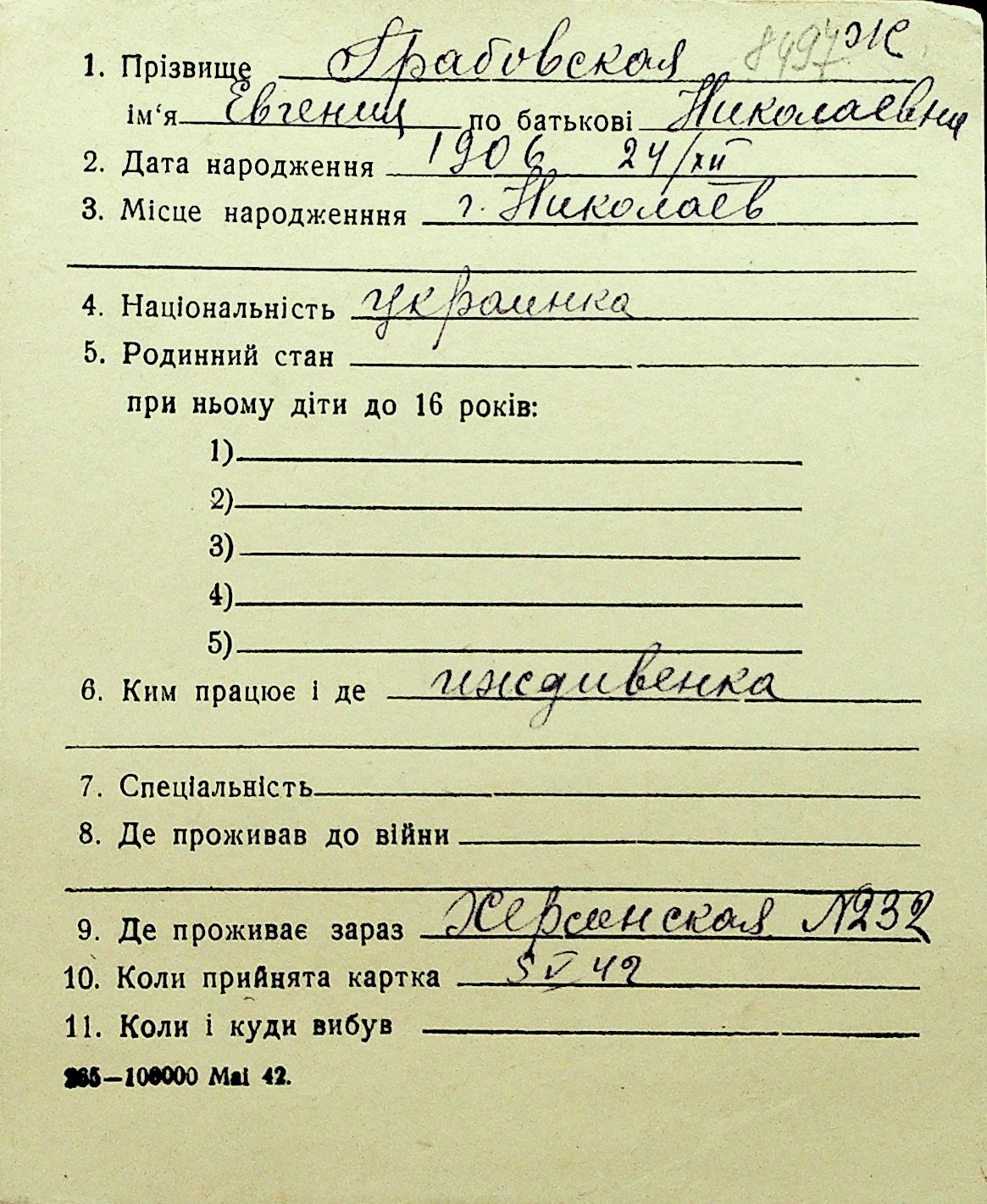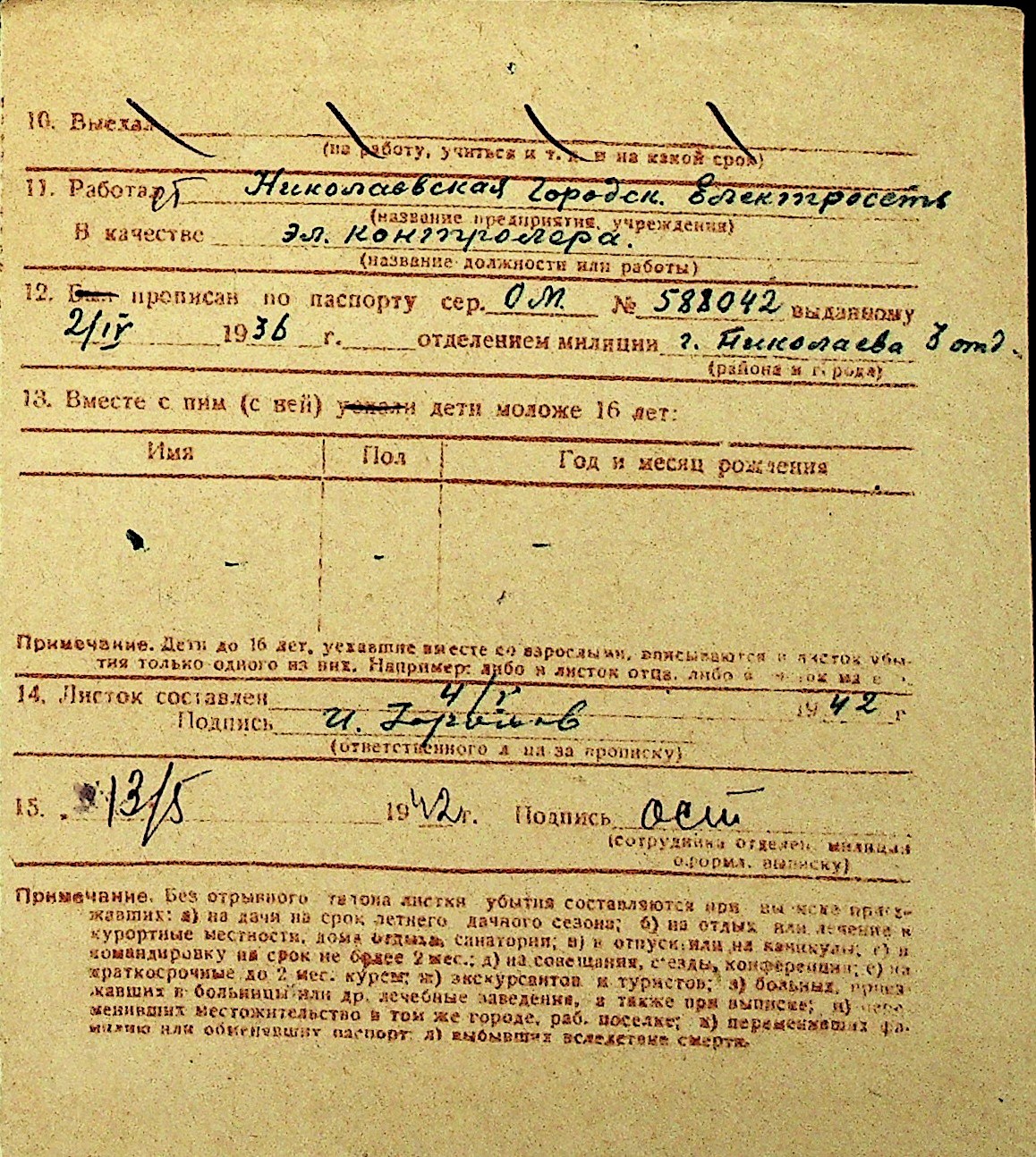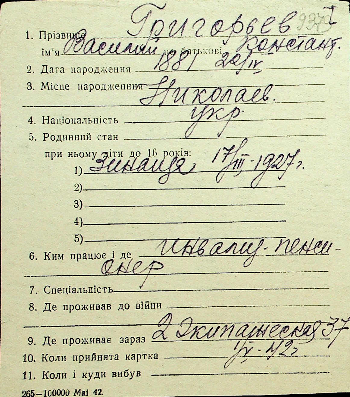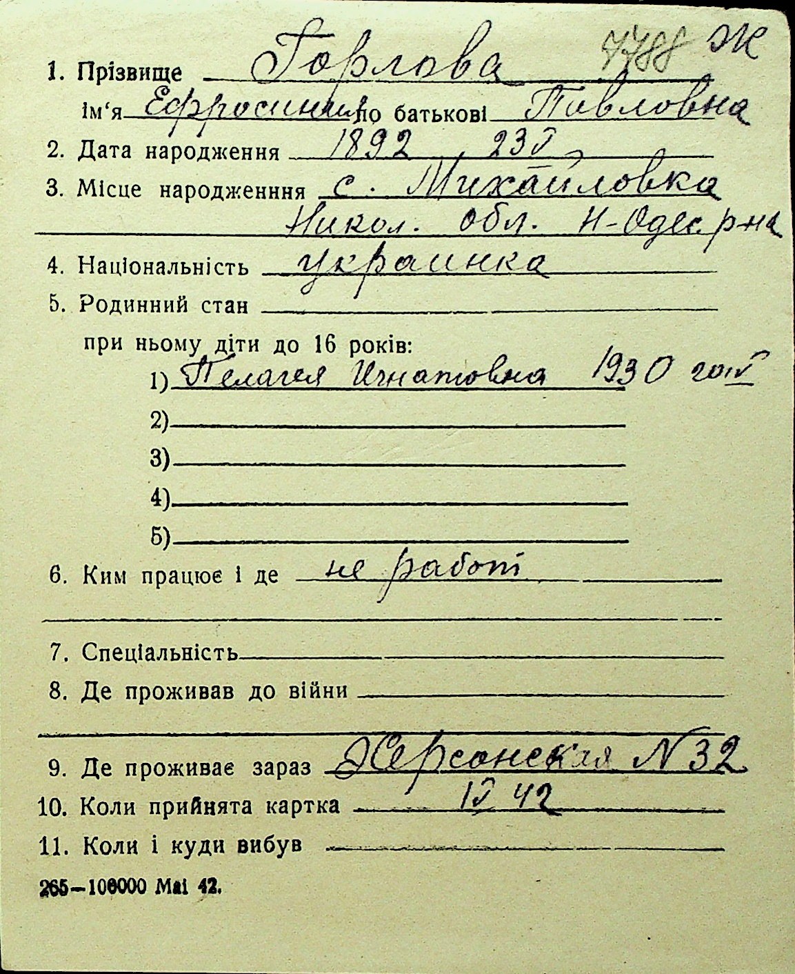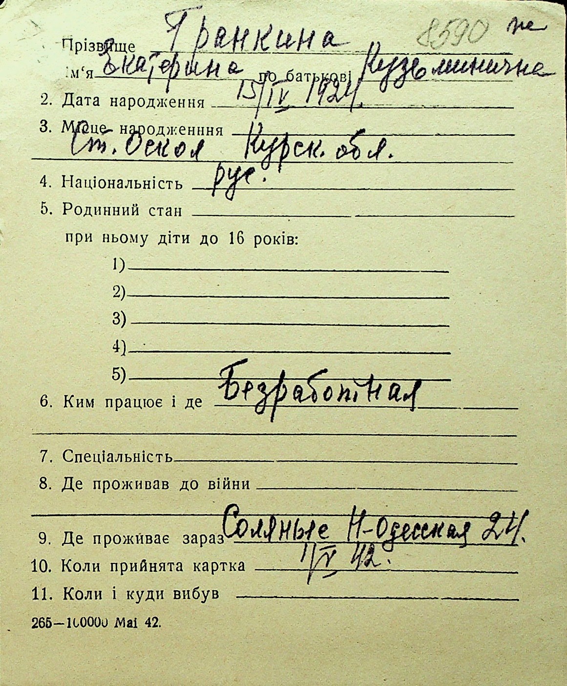 • • Перелік карток до фонду № Н-1016