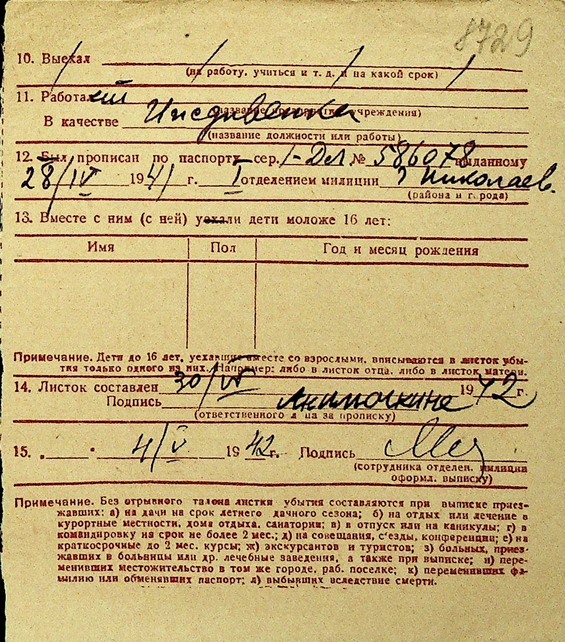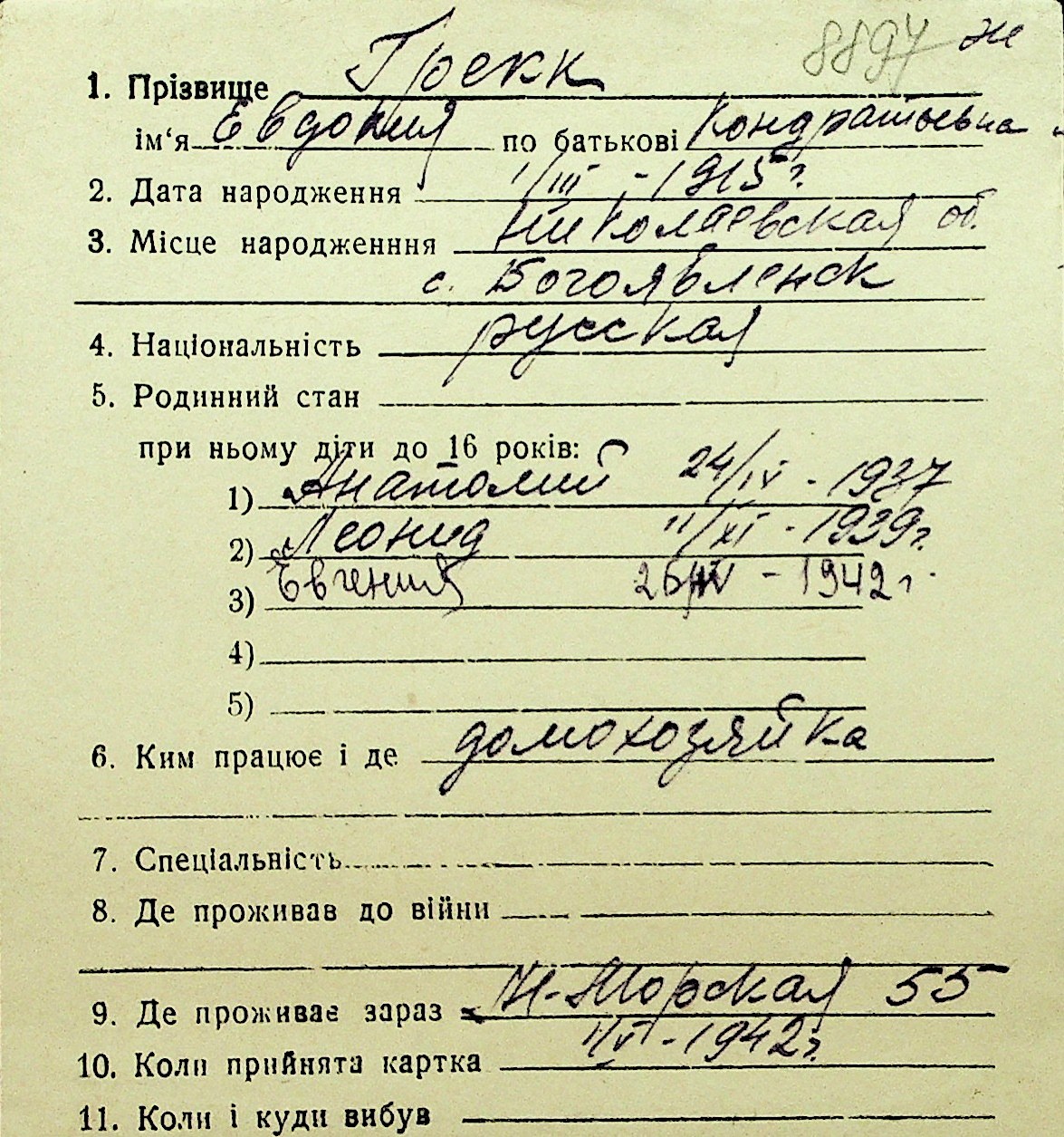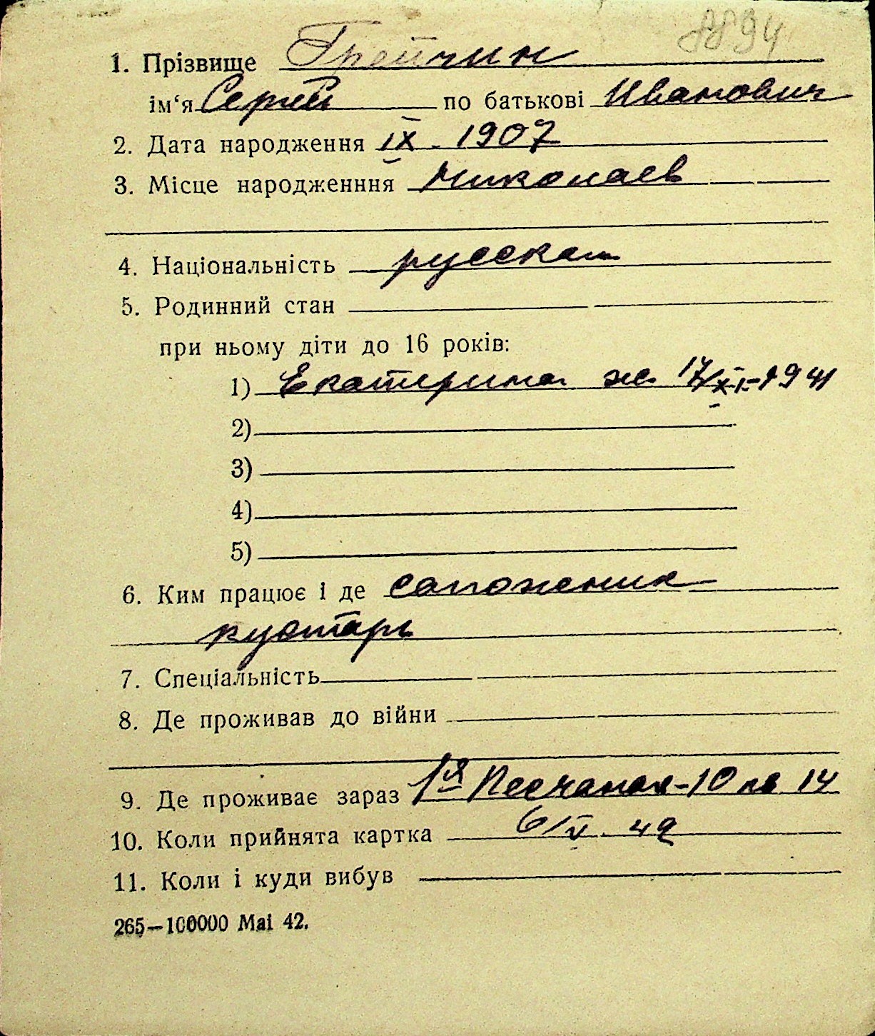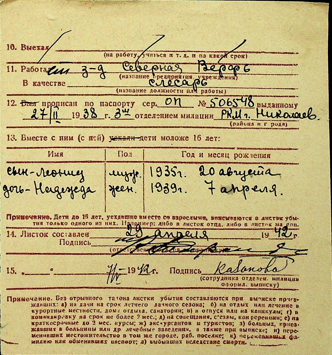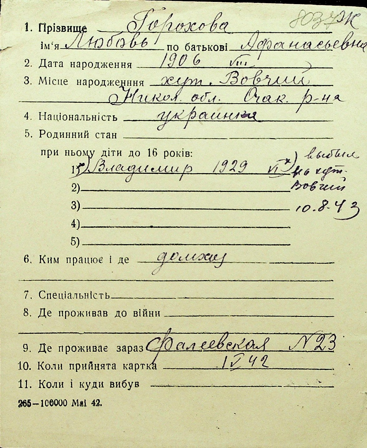 • • Перелік карток до фонду № Н-1016
