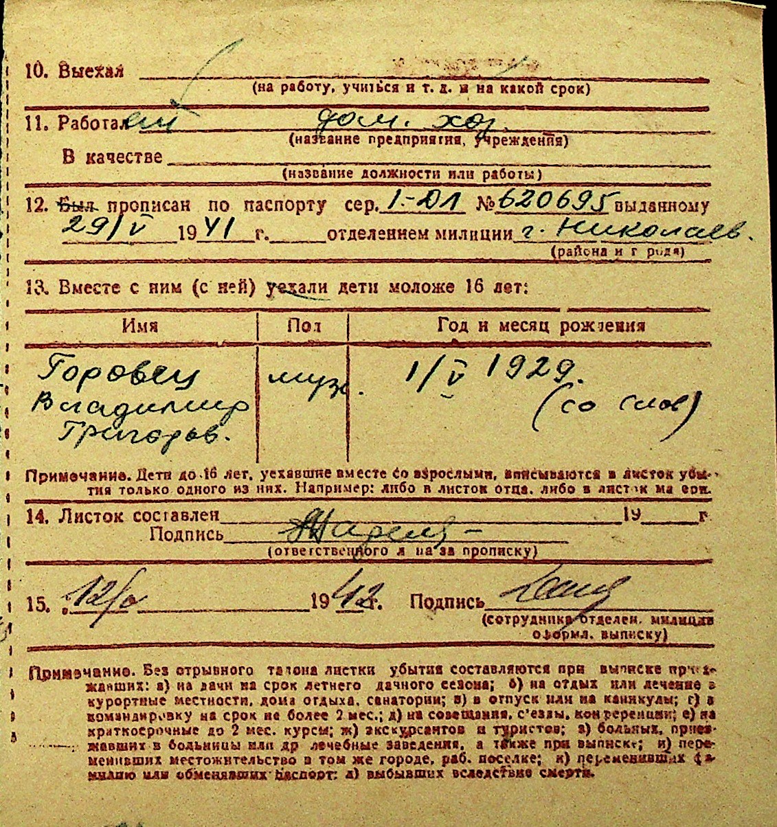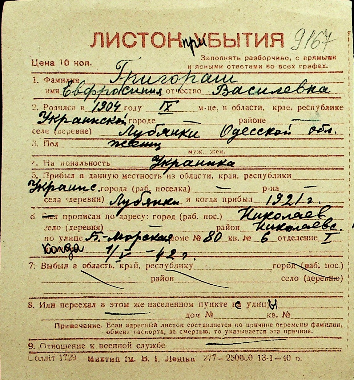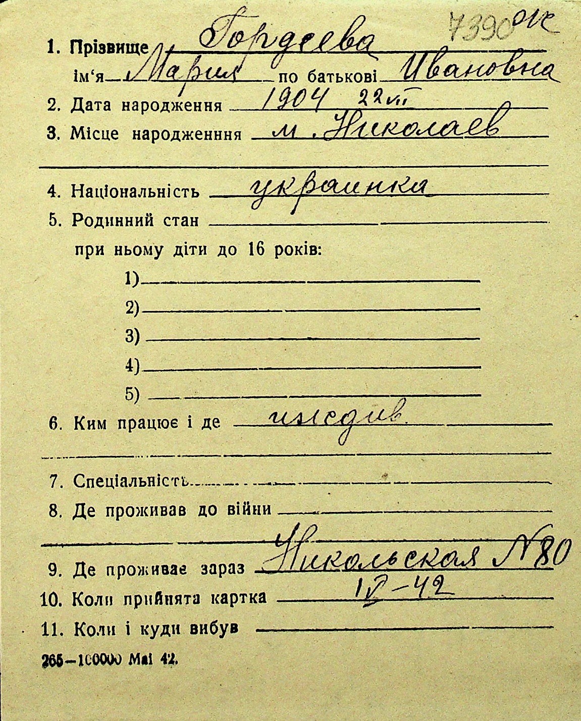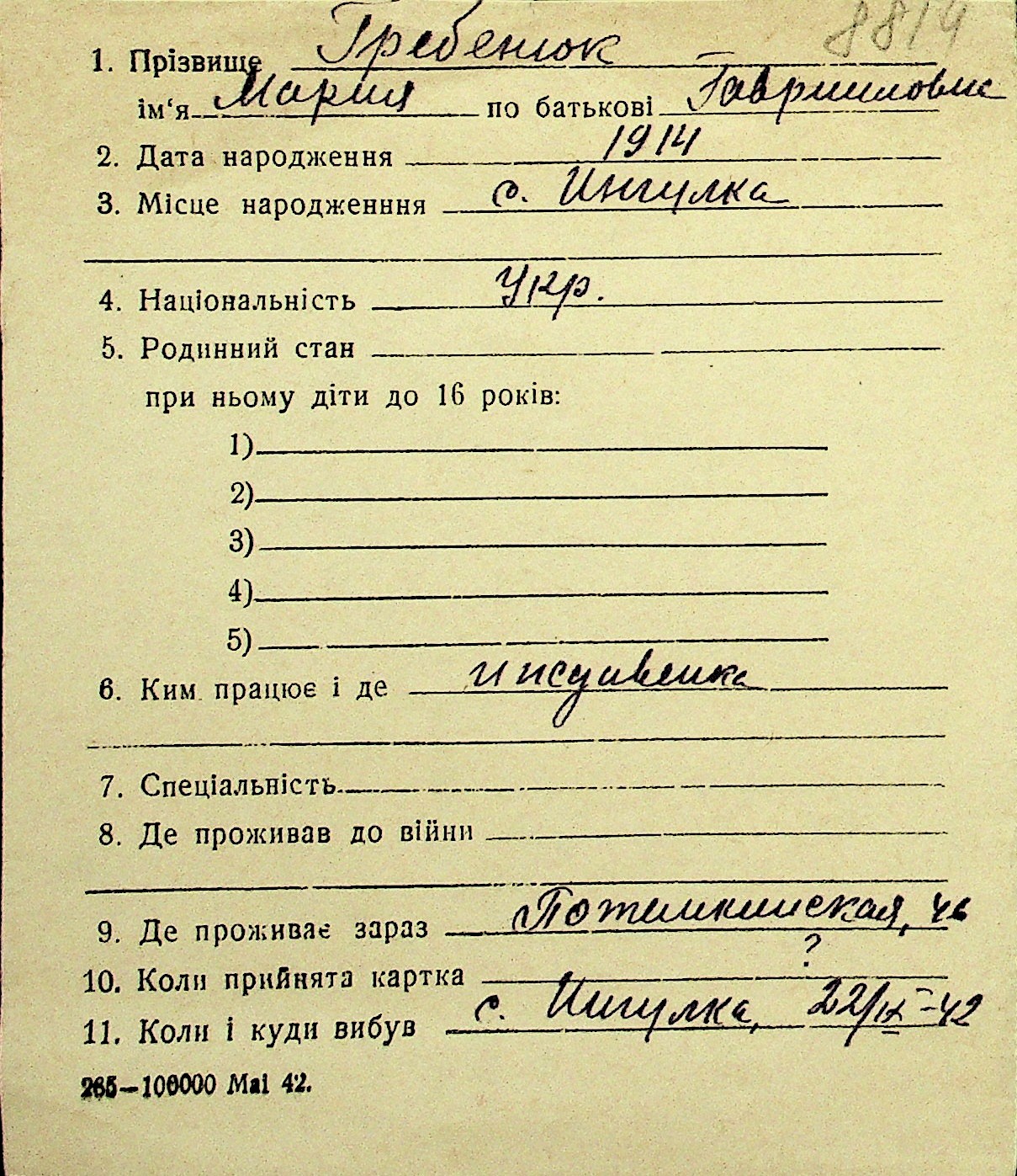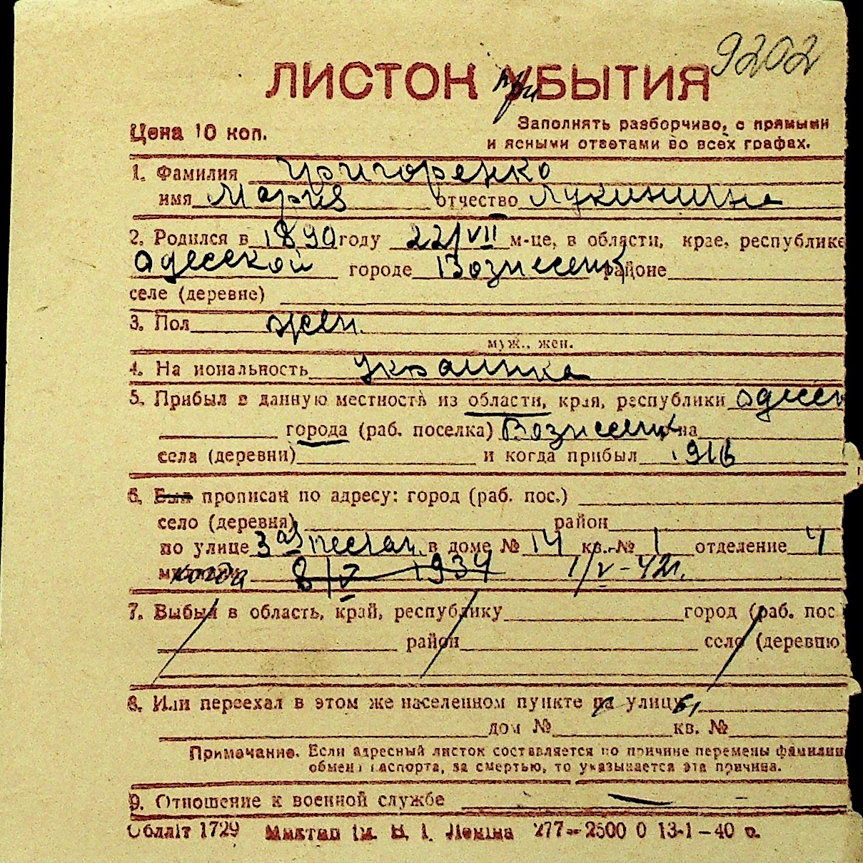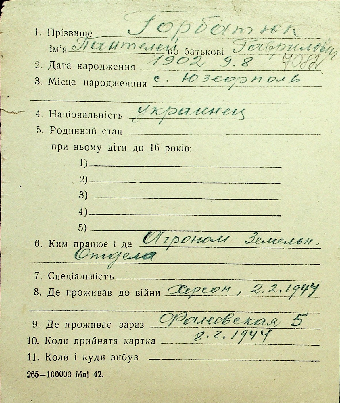 • • Перелік карток до фонду № Н-1016