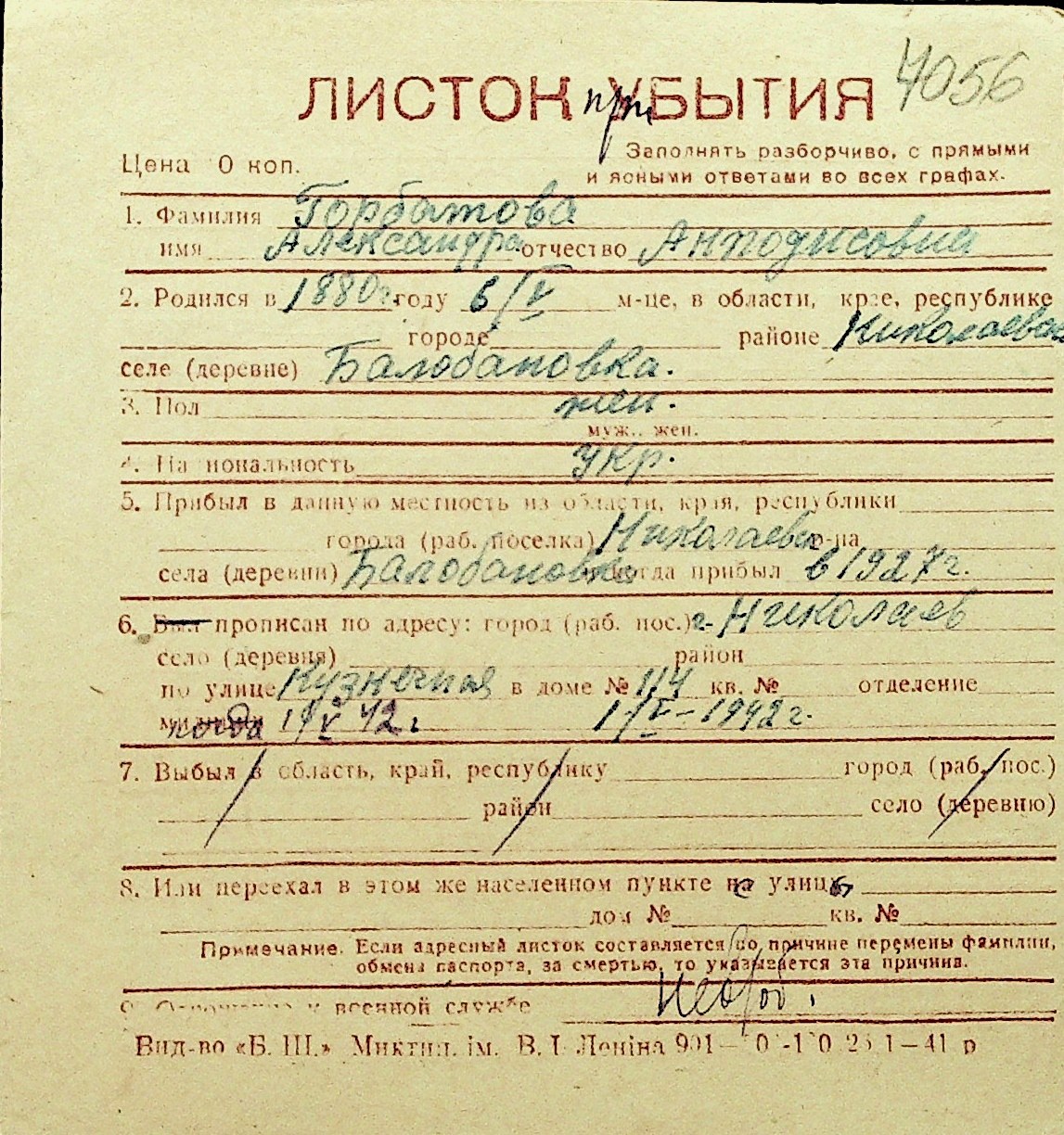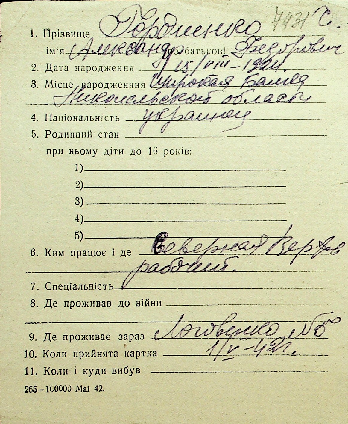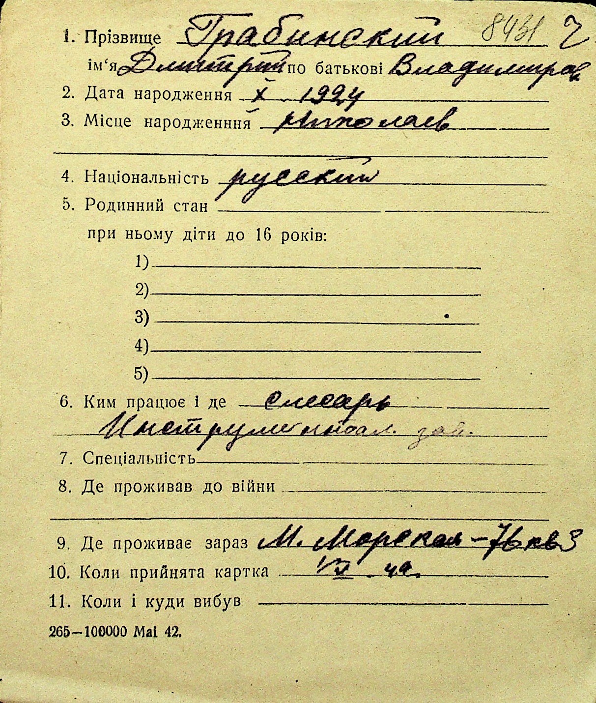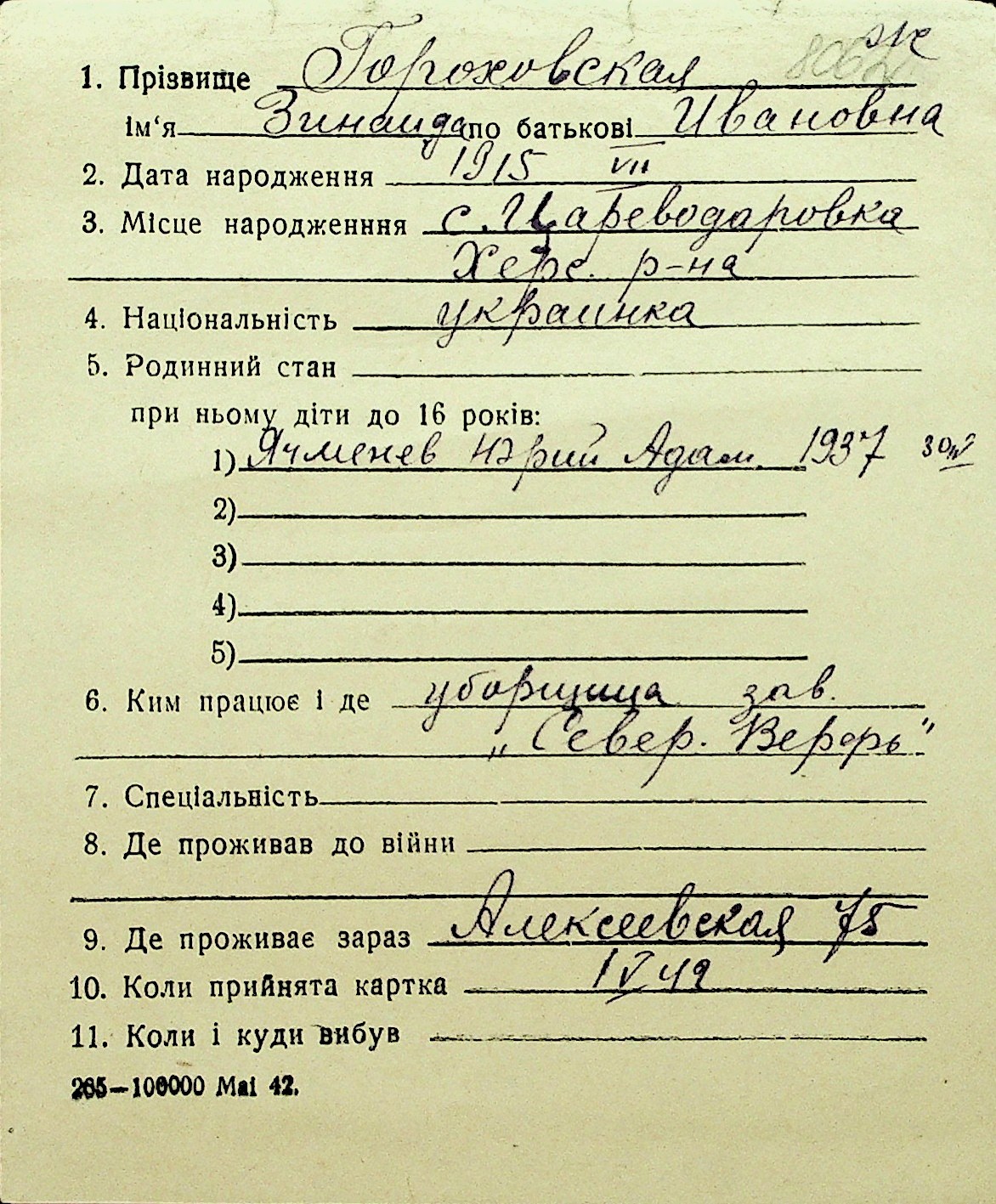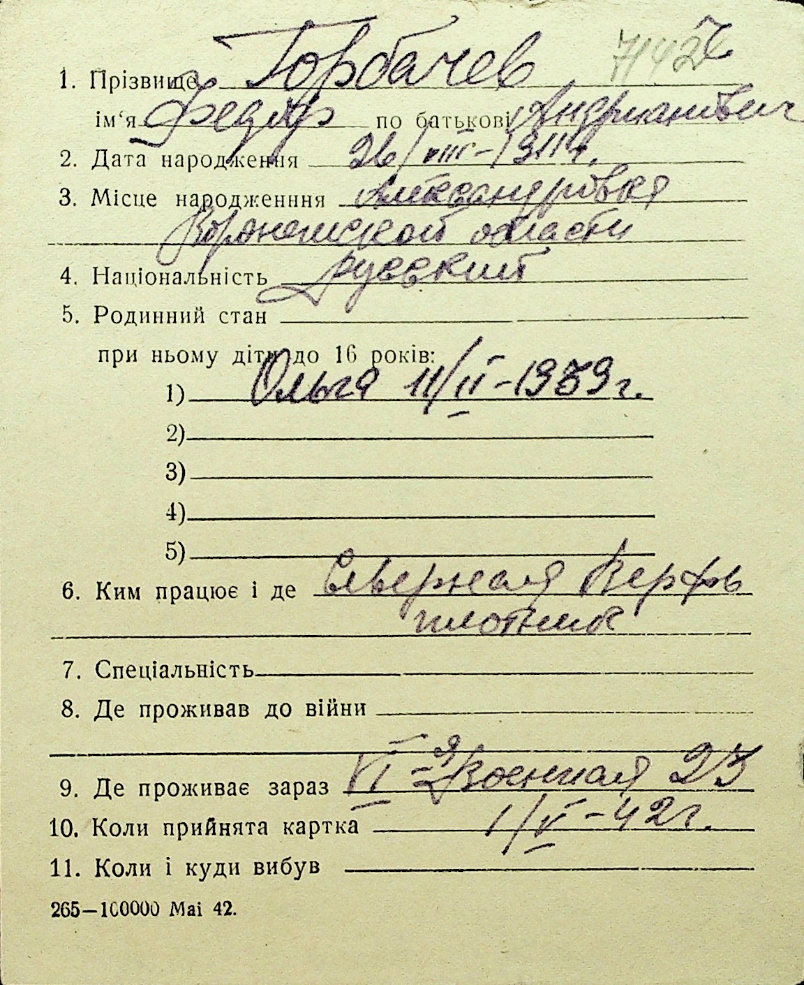 • • Перелік карток до фонду № Н-1016