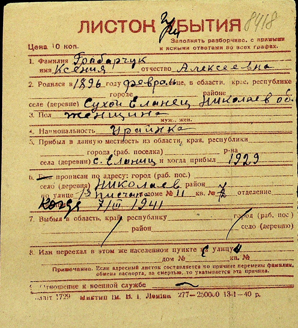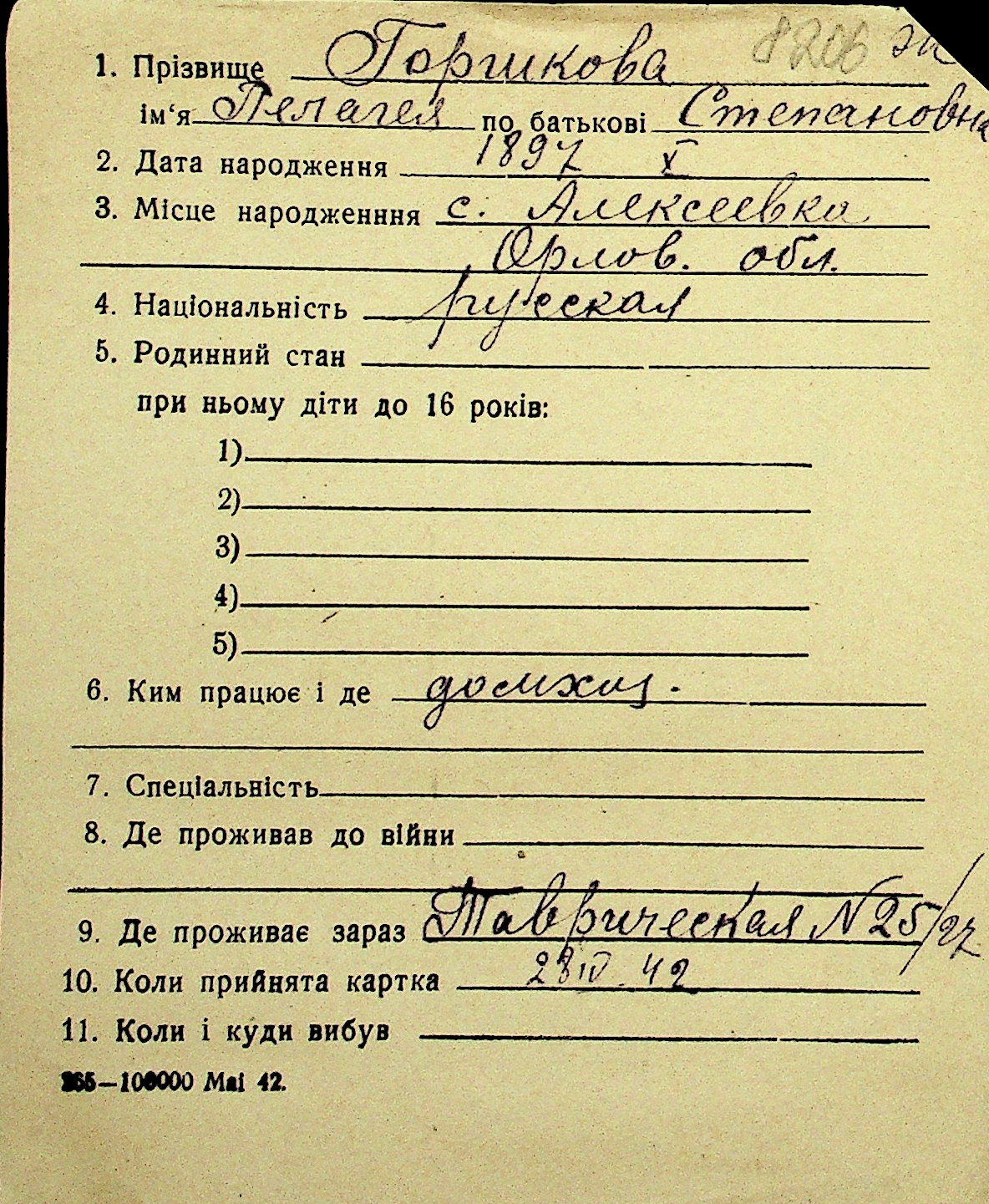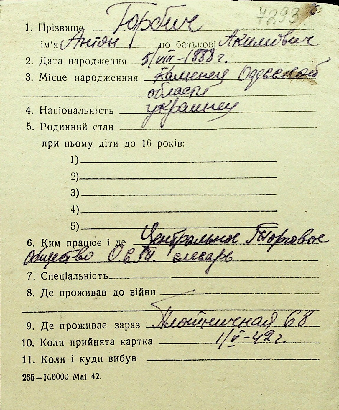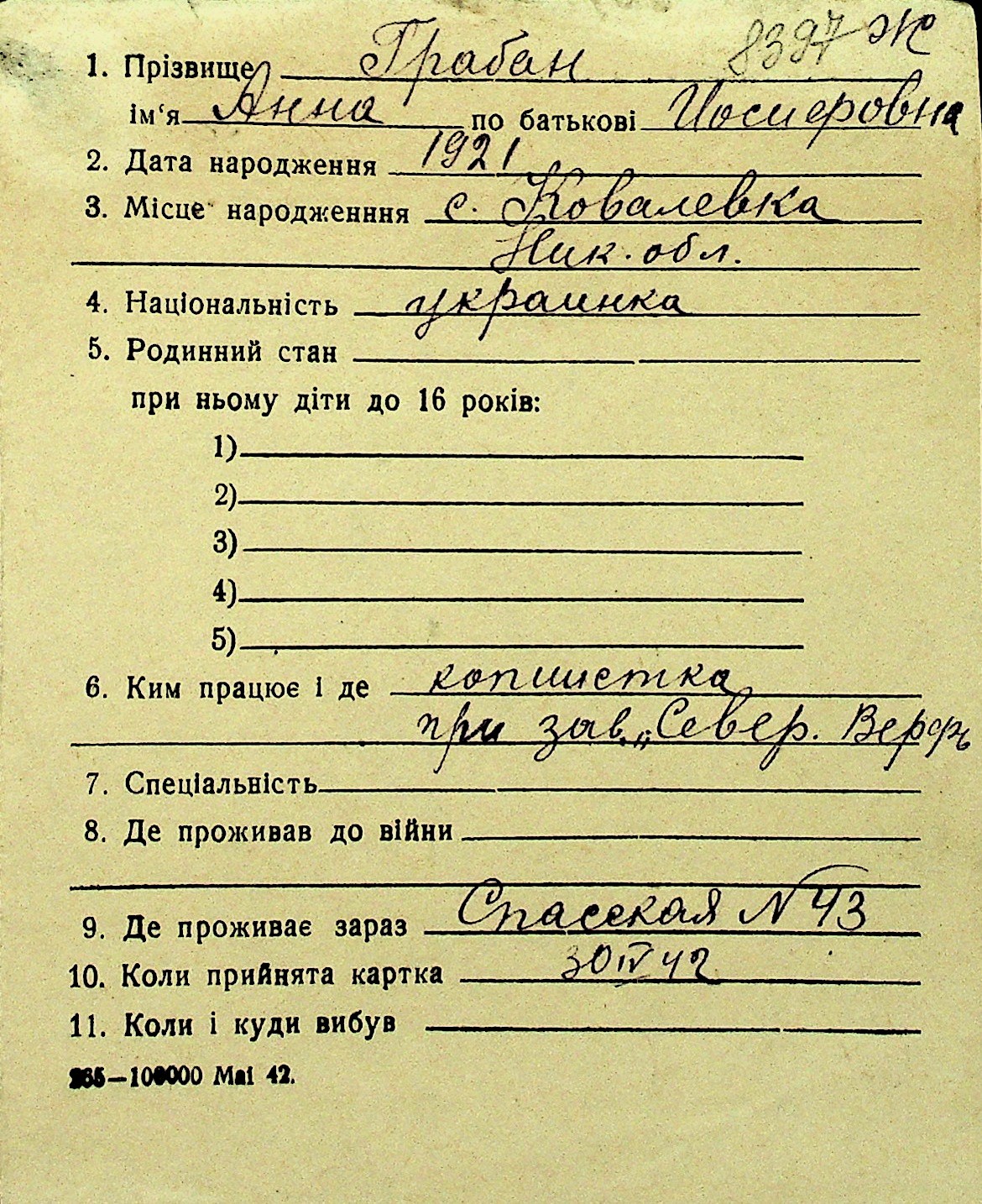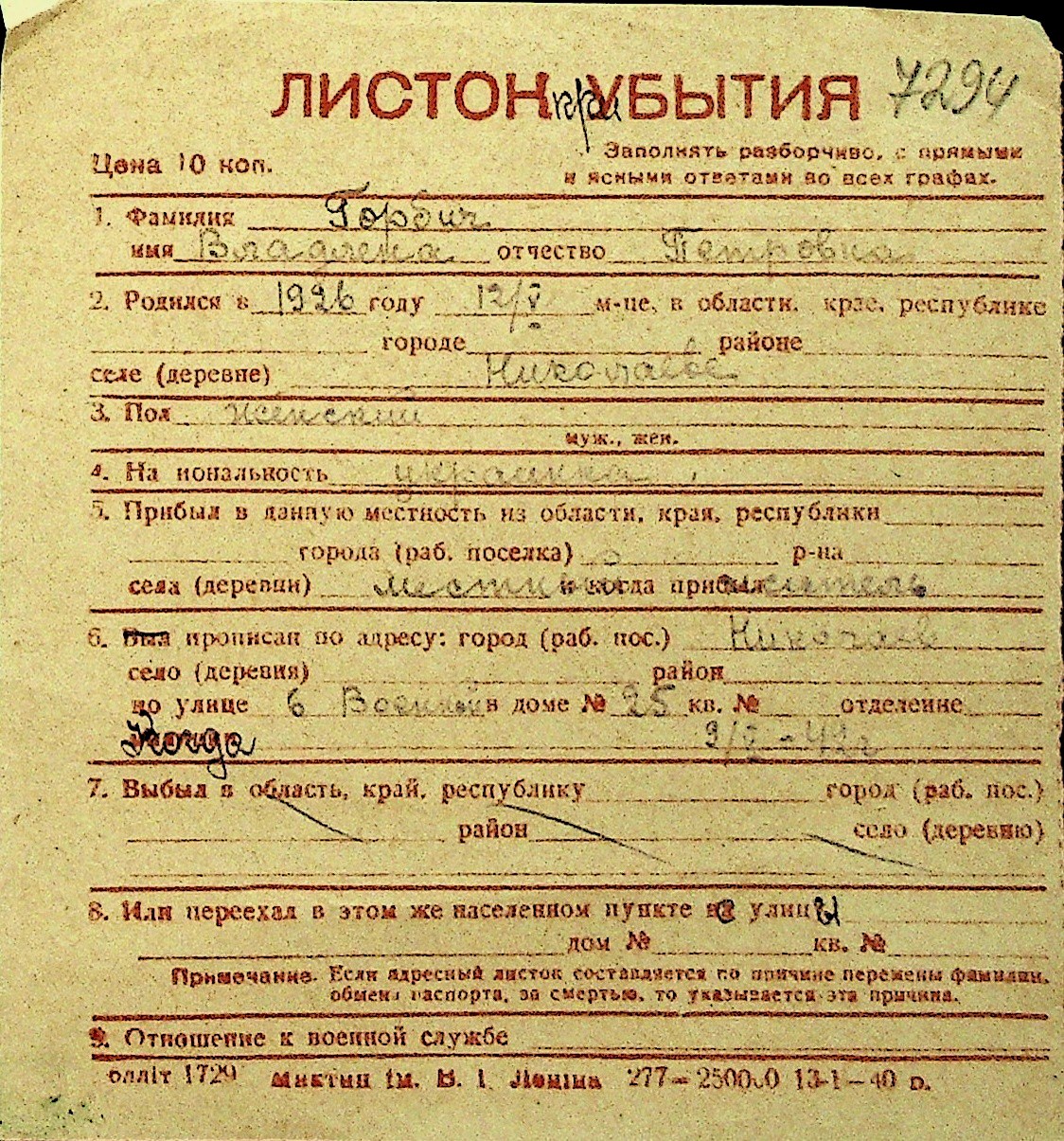 • • Перелік карток до фонду № Н-1016