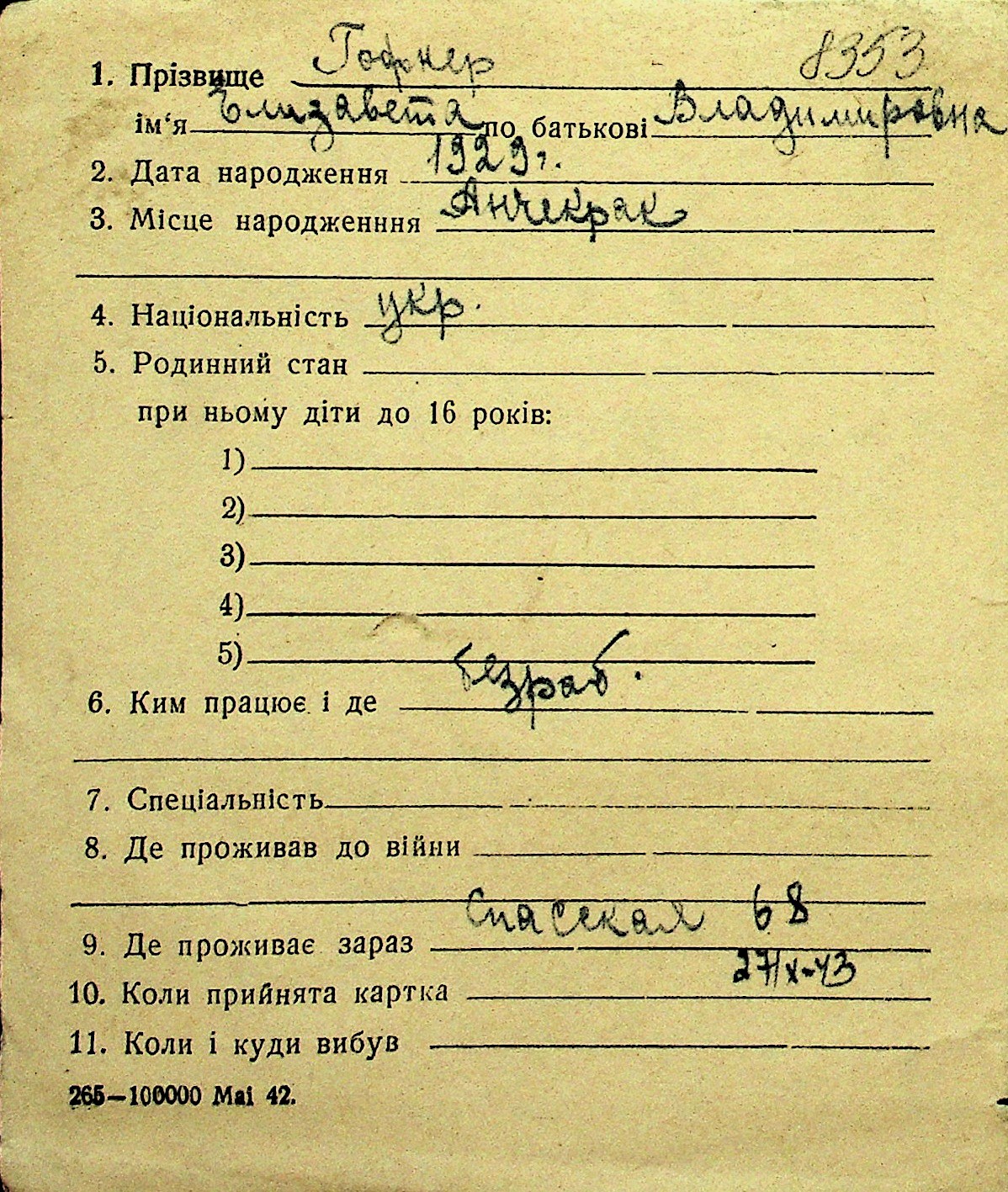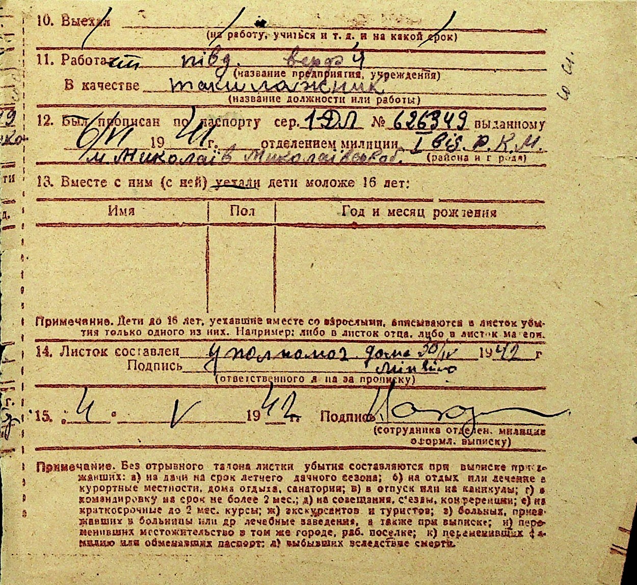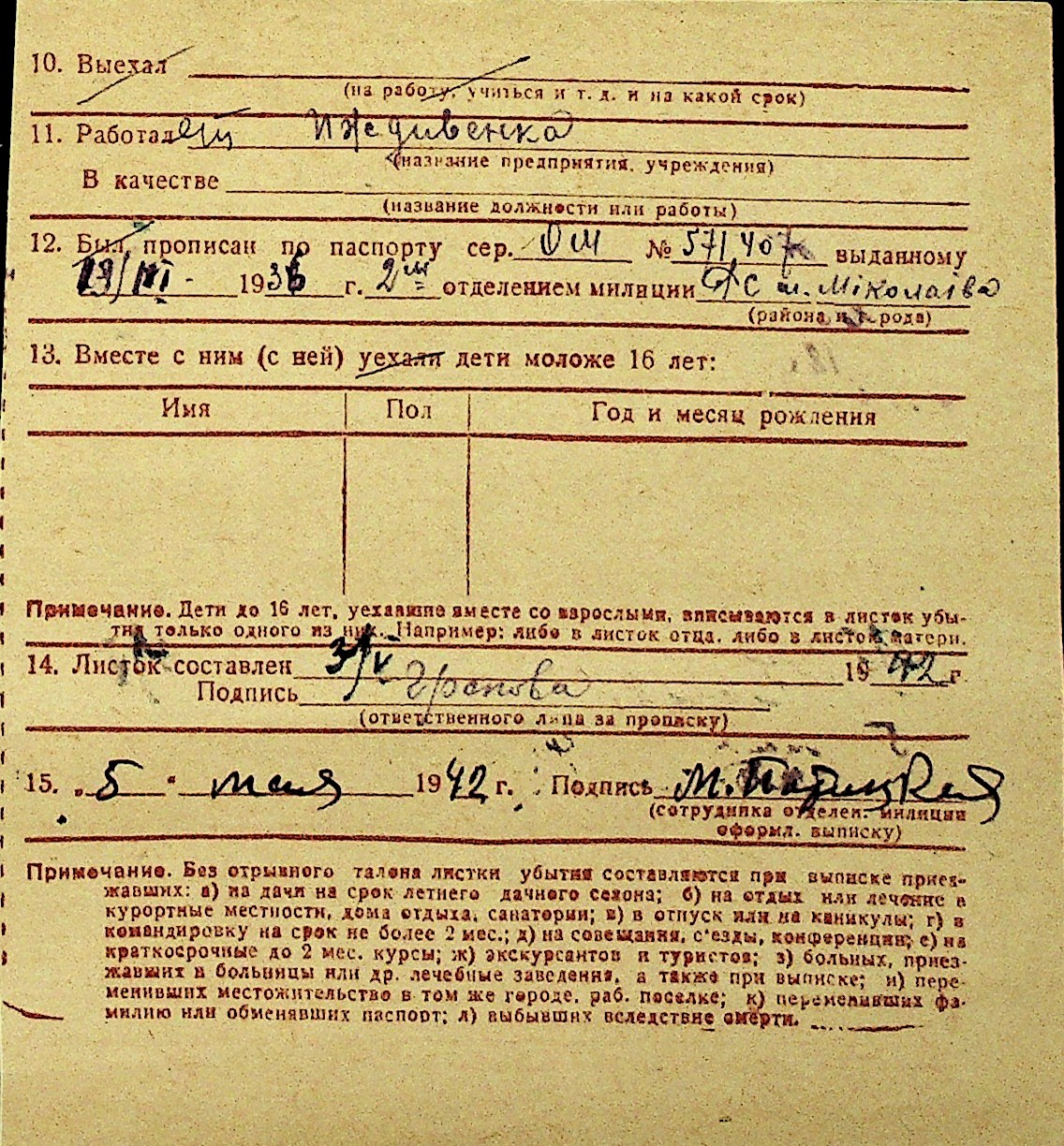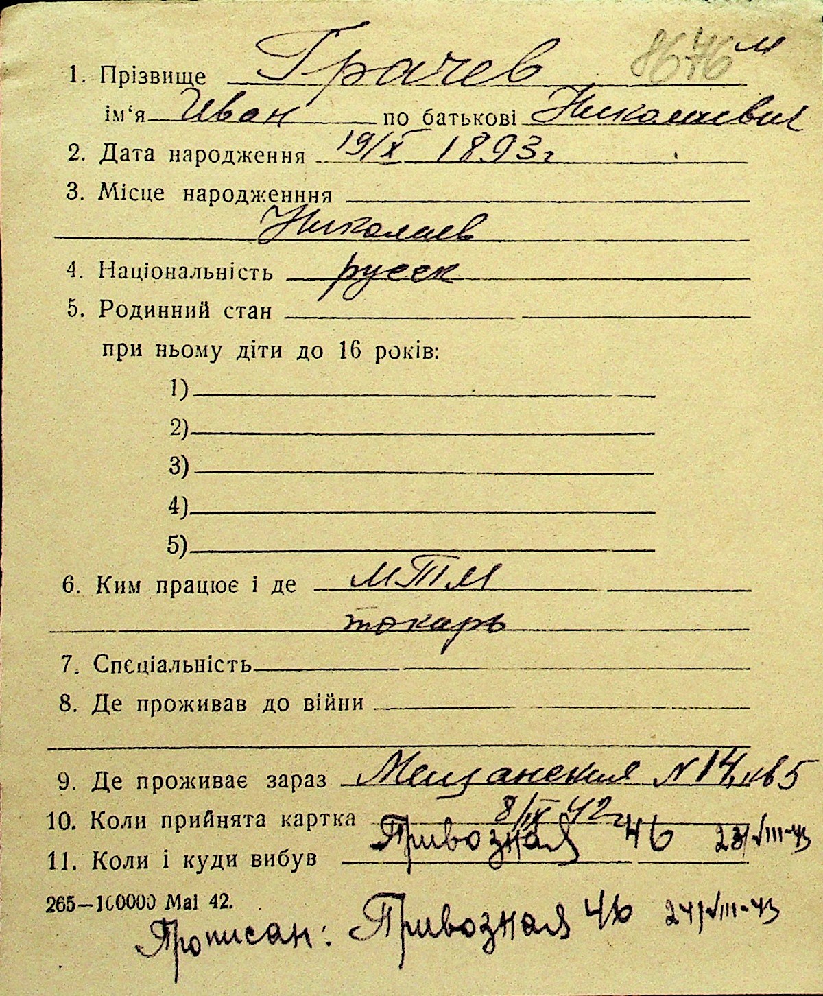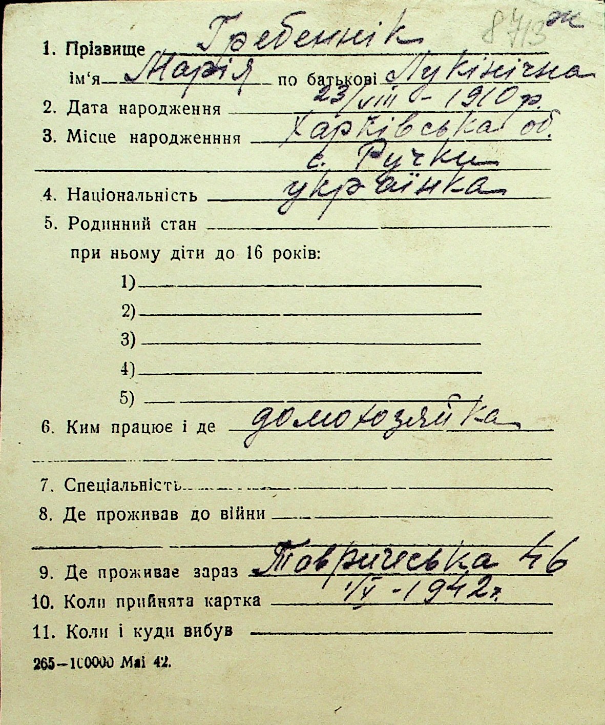 • • Перелік карток до фонду № Н-1016