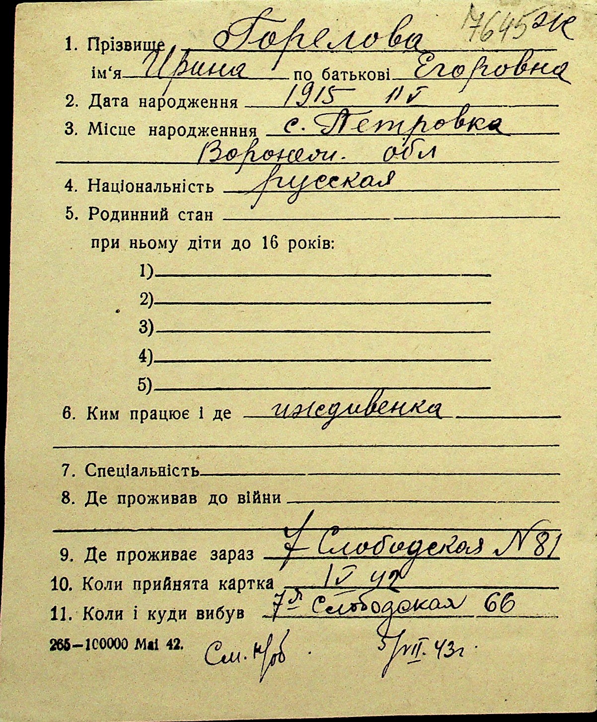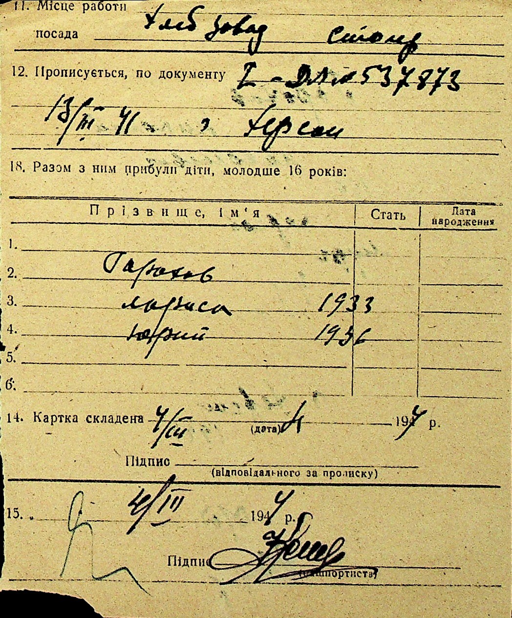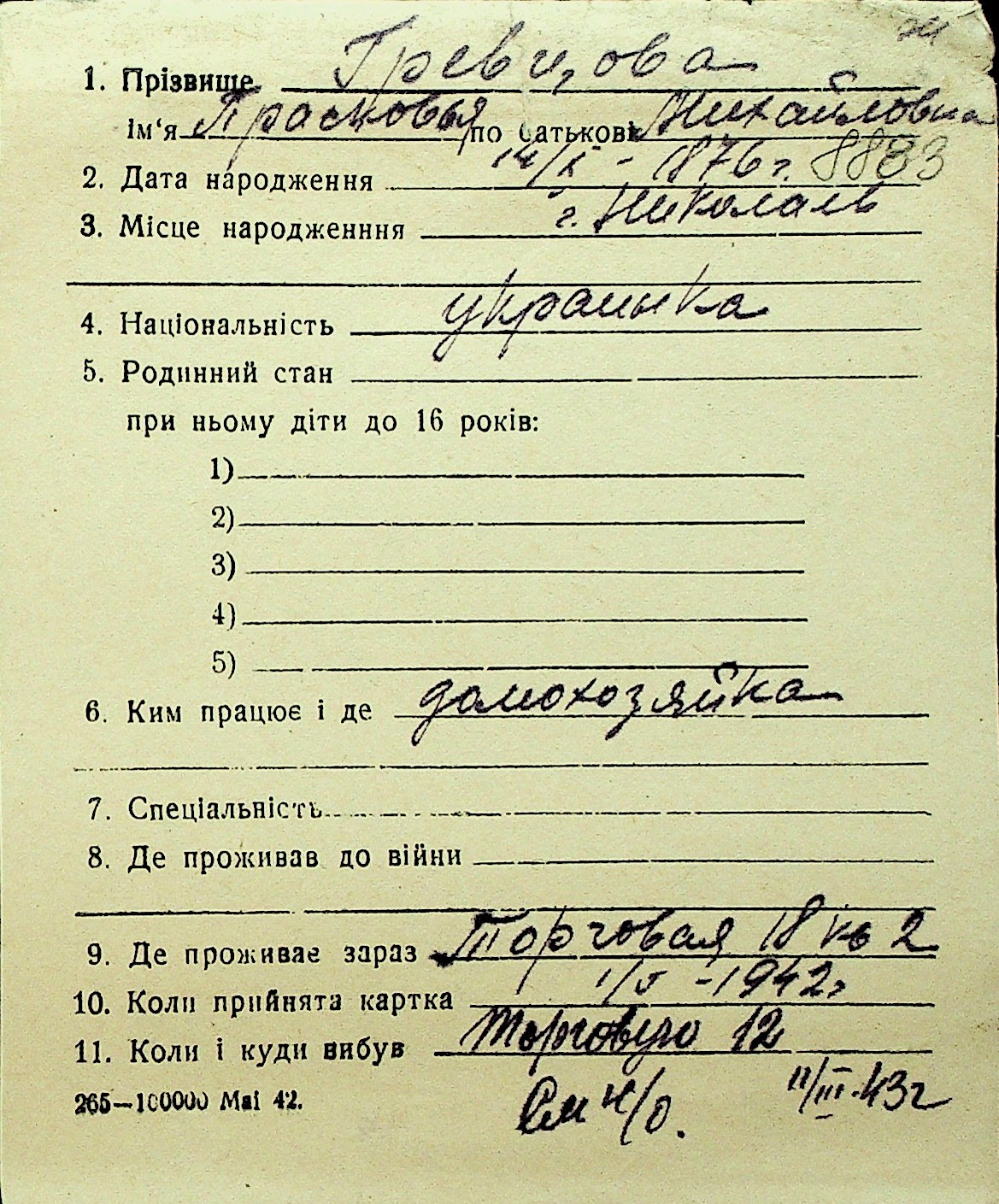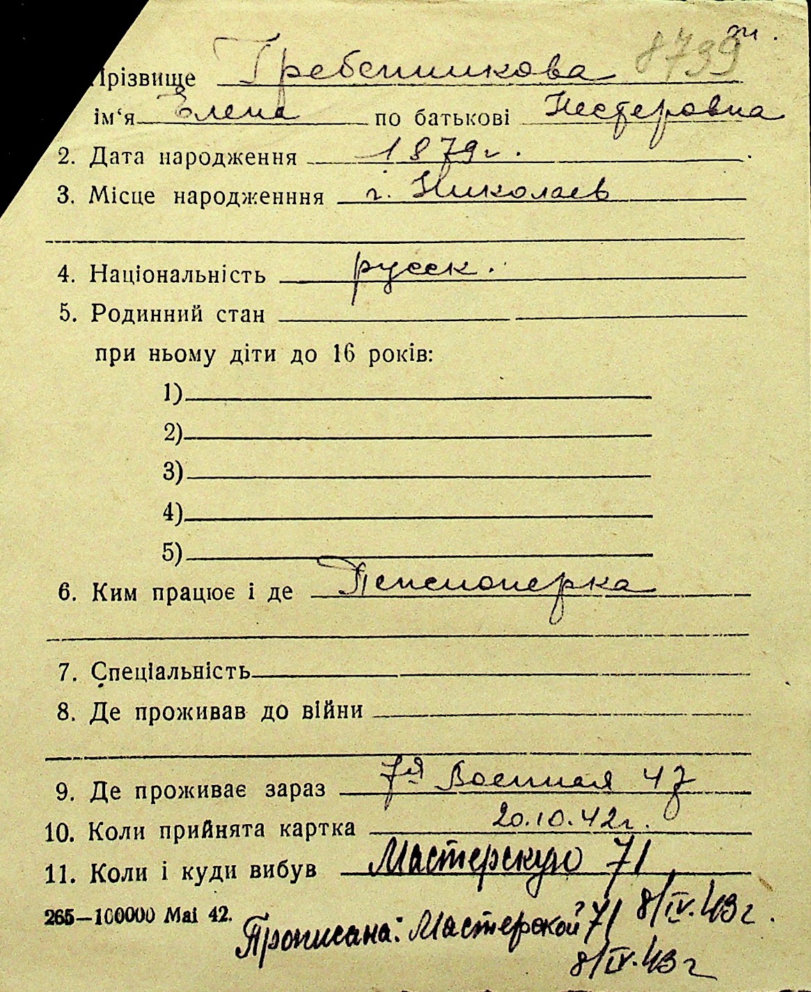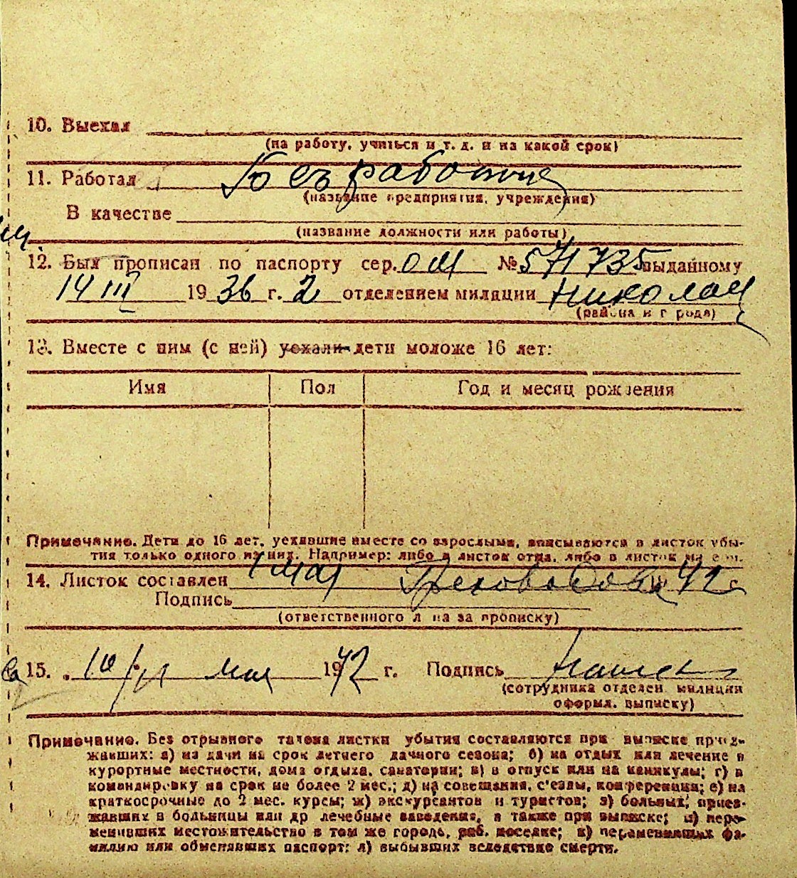 • • Перелік карток до фонду № Н-1016