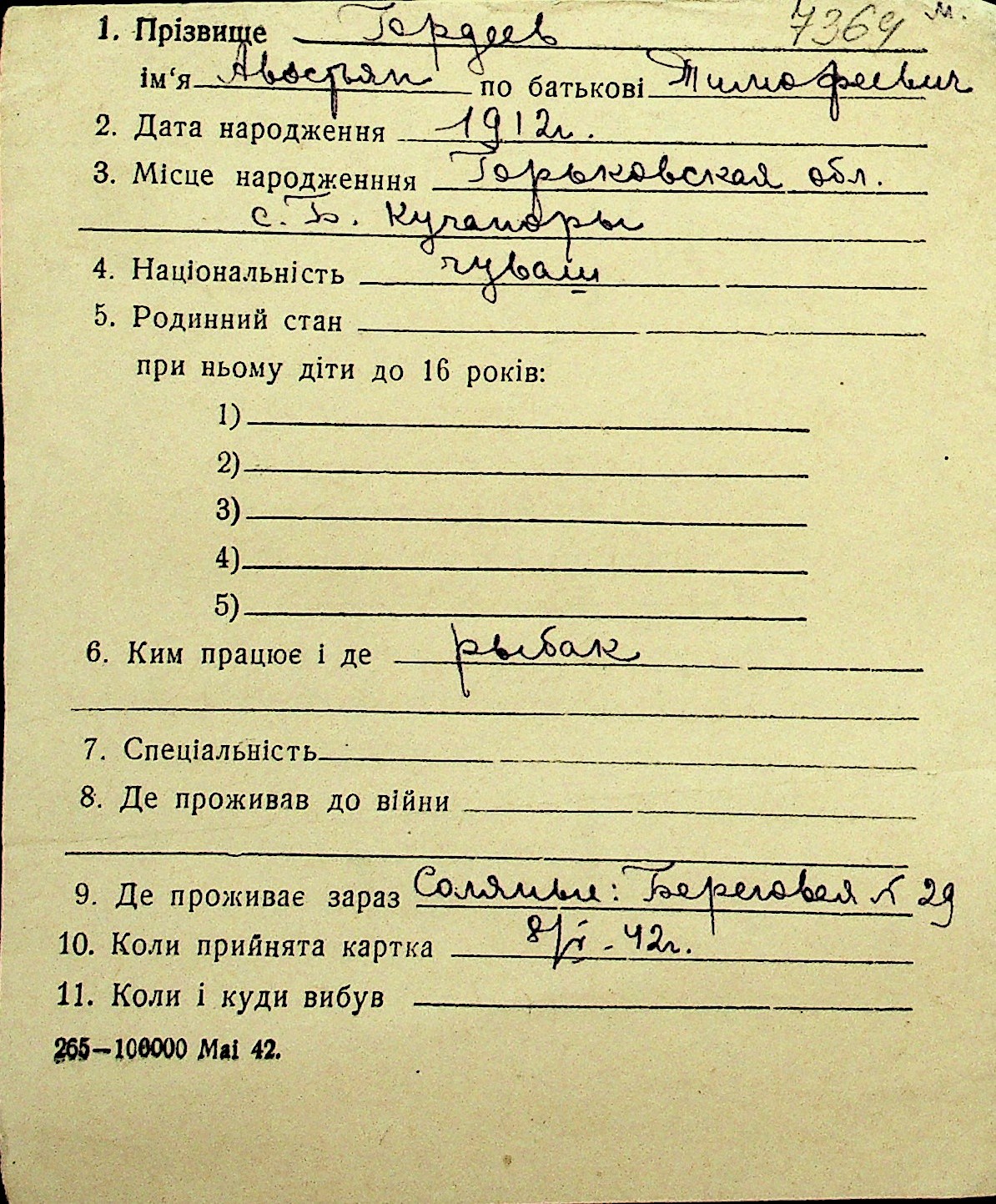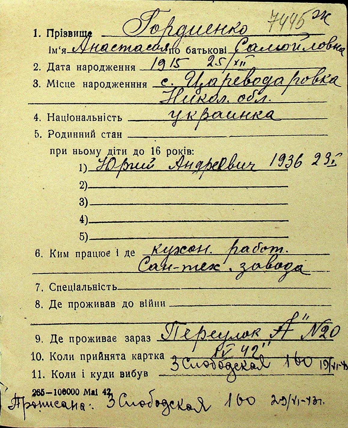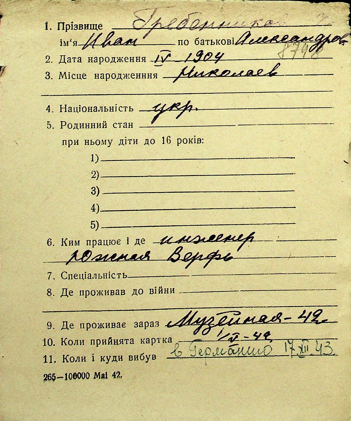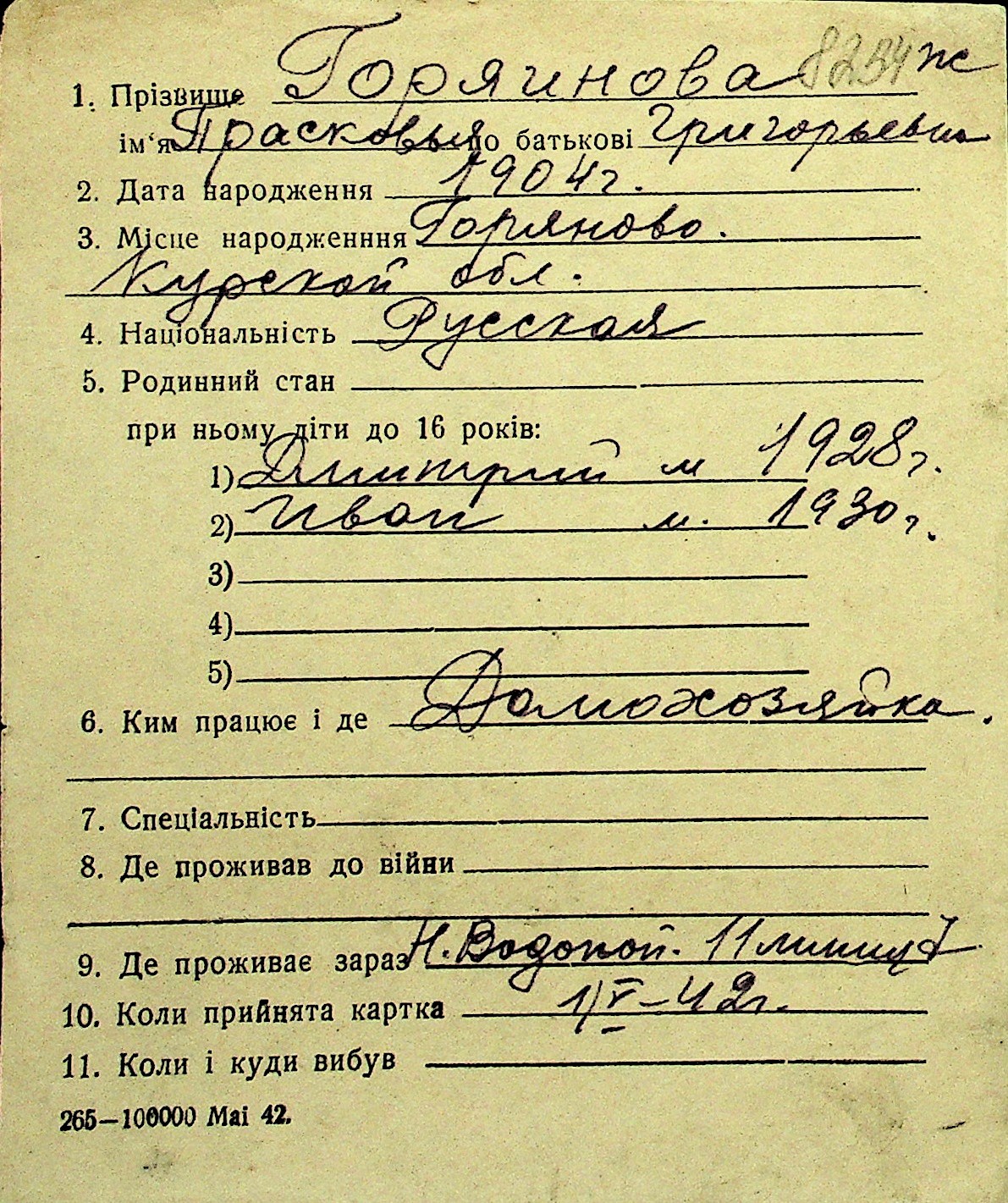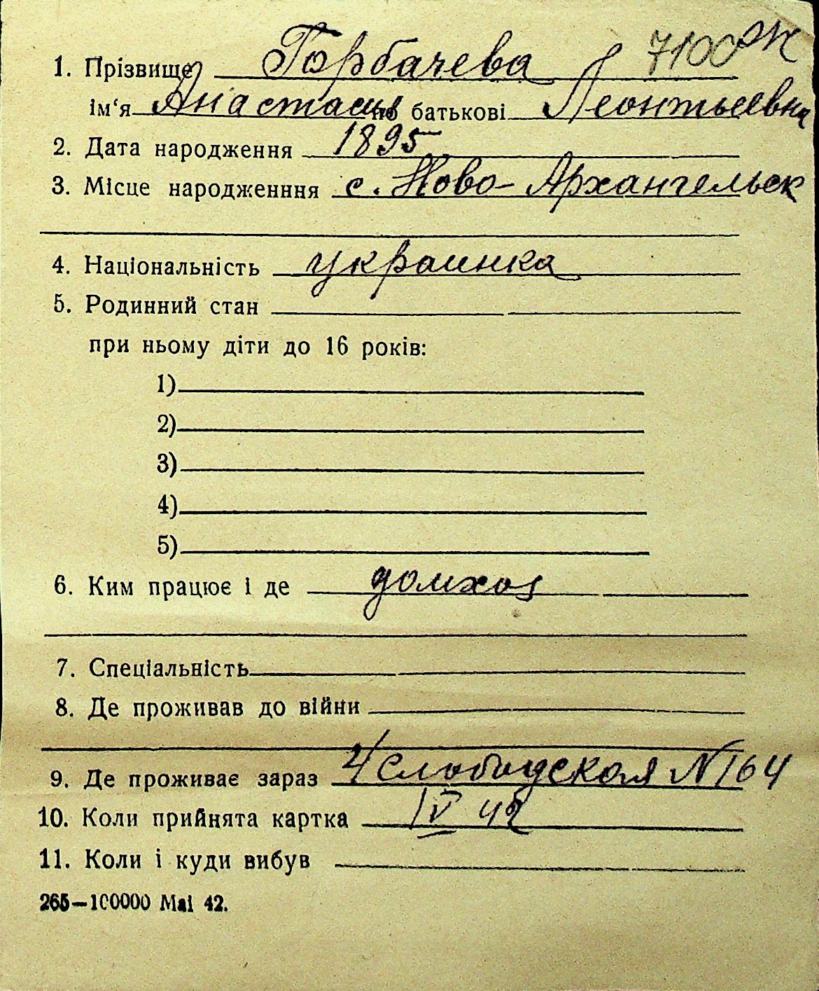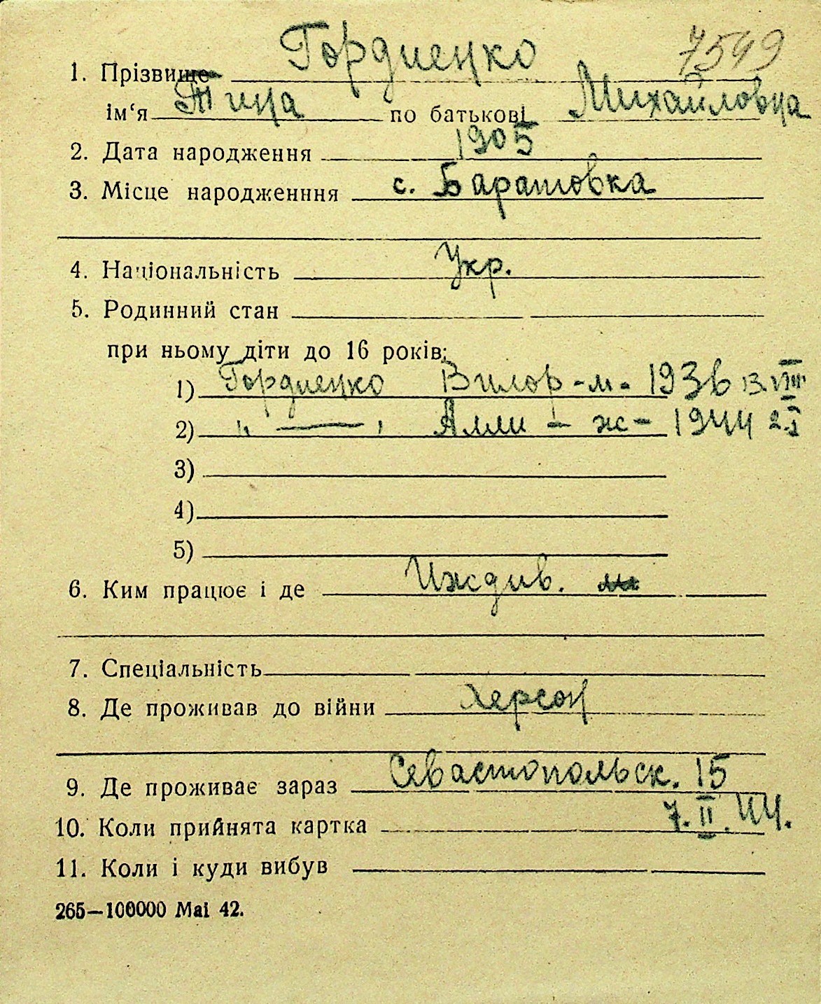 • • Перелік карток до фонду № Н-1016