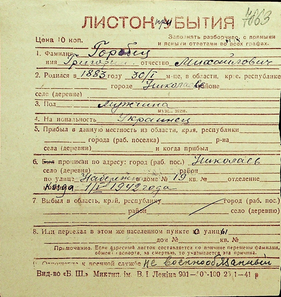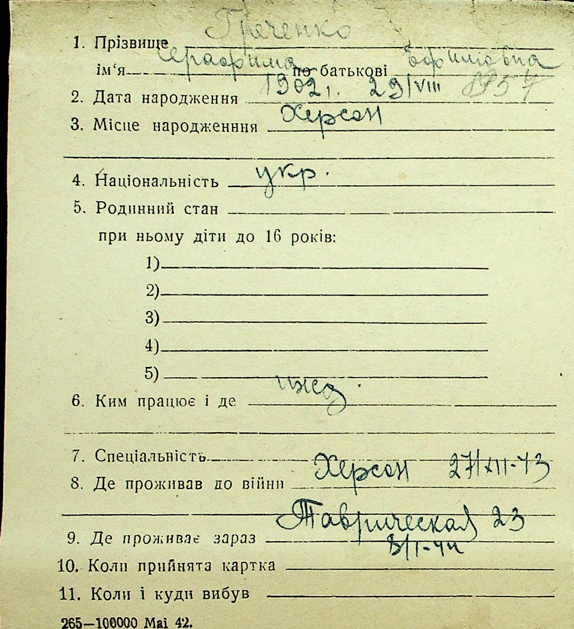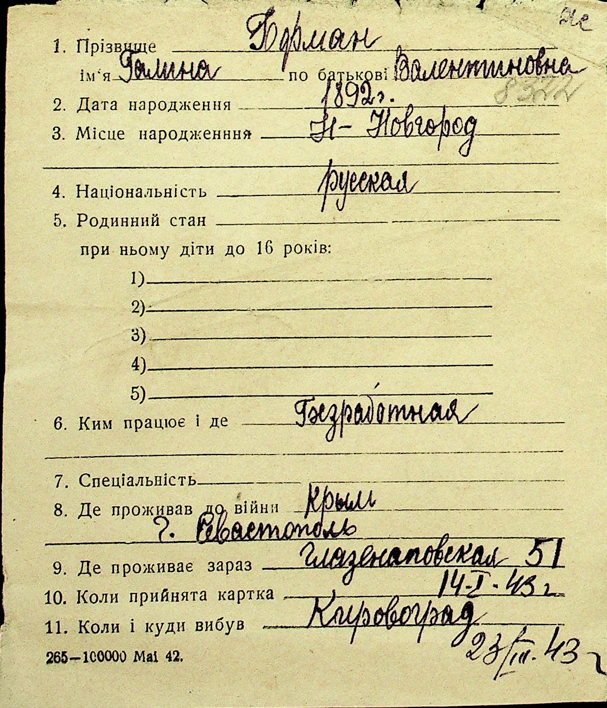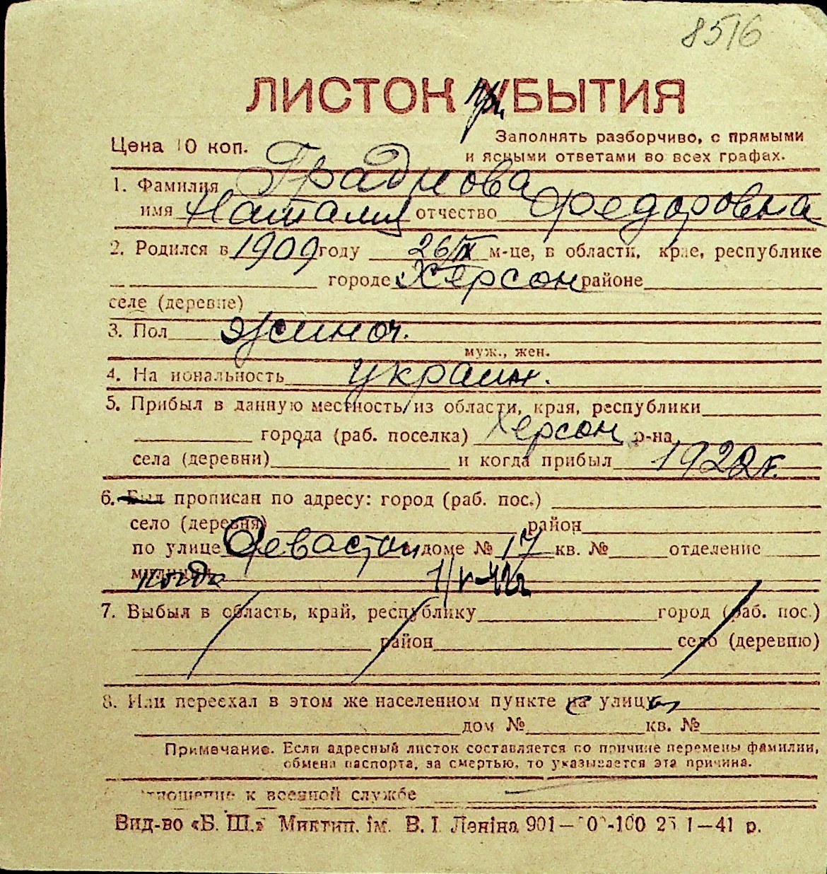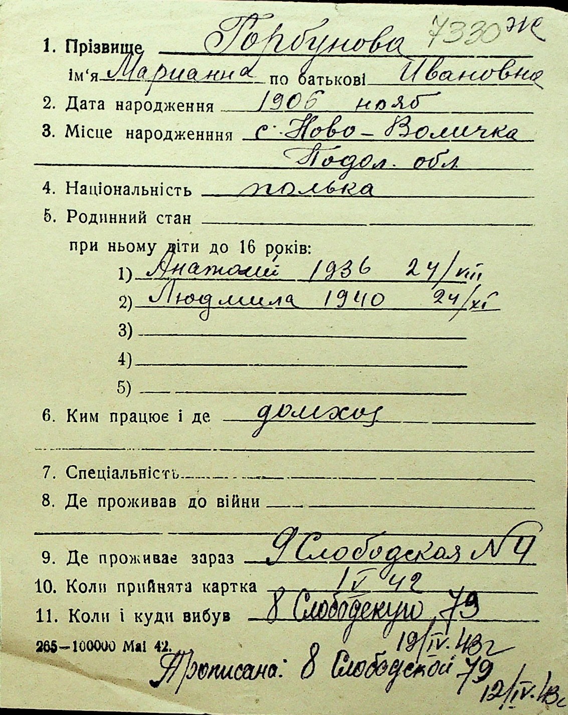 • • Перелік карток до фонду № Н-1016