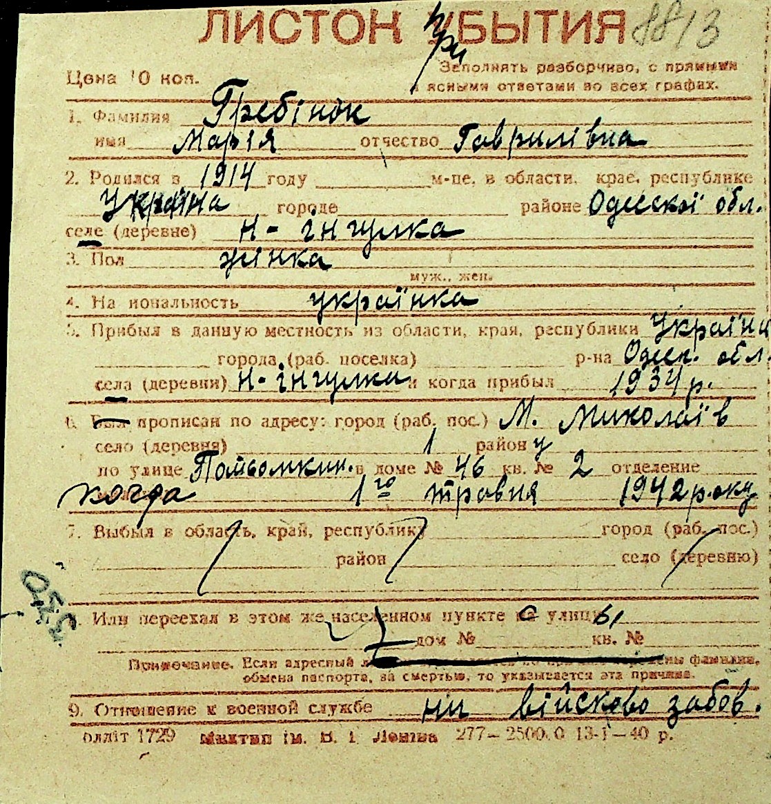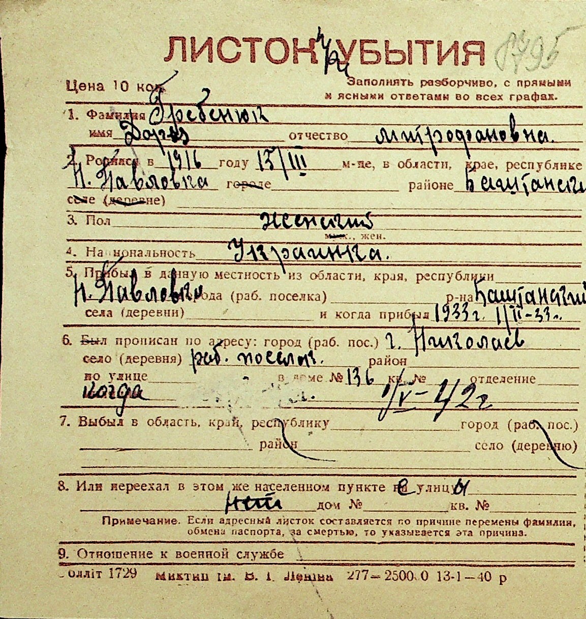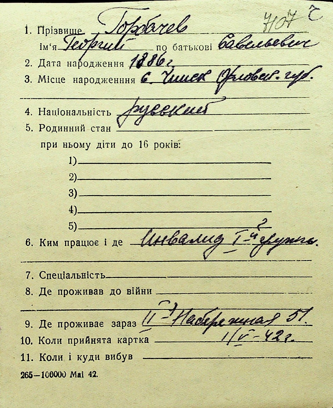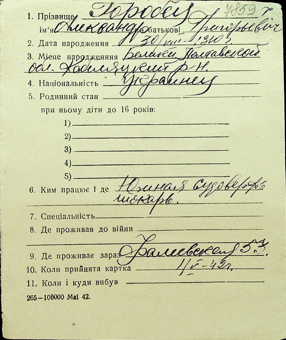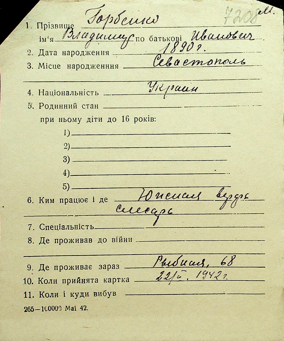• • Перелік карток до фонду № Н-1016