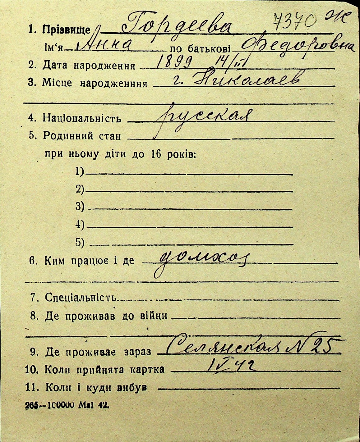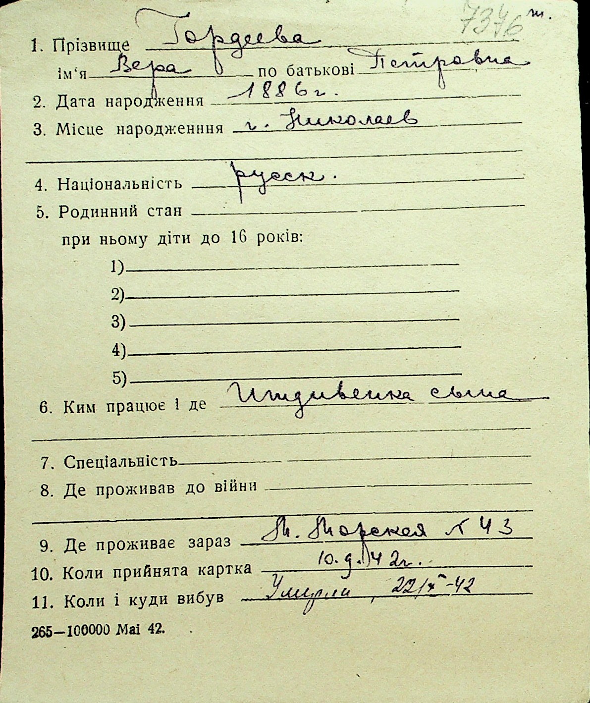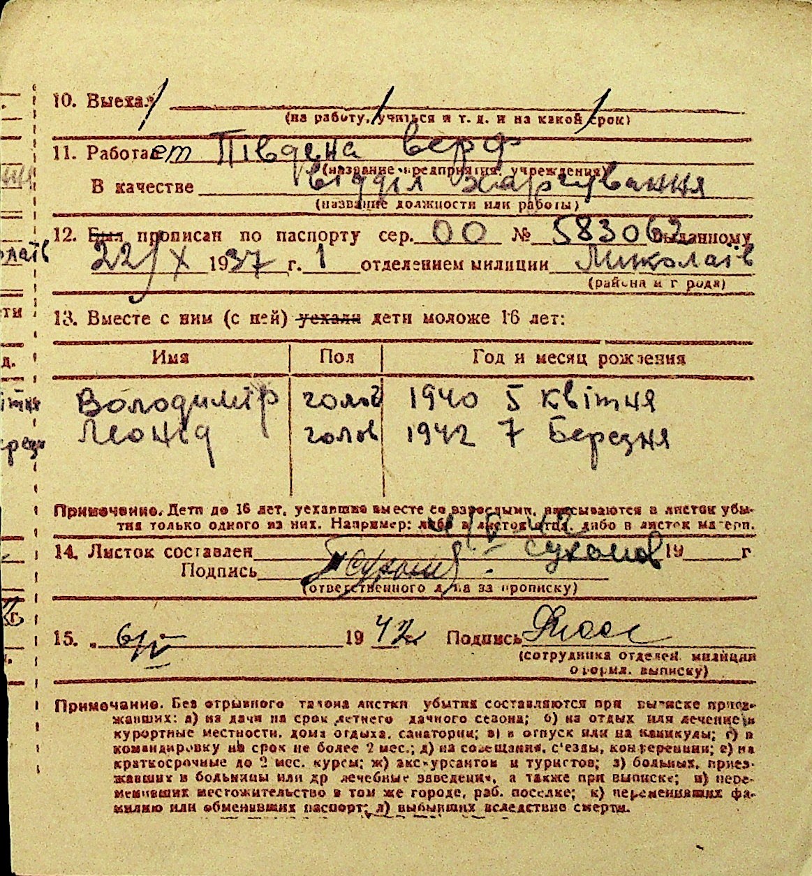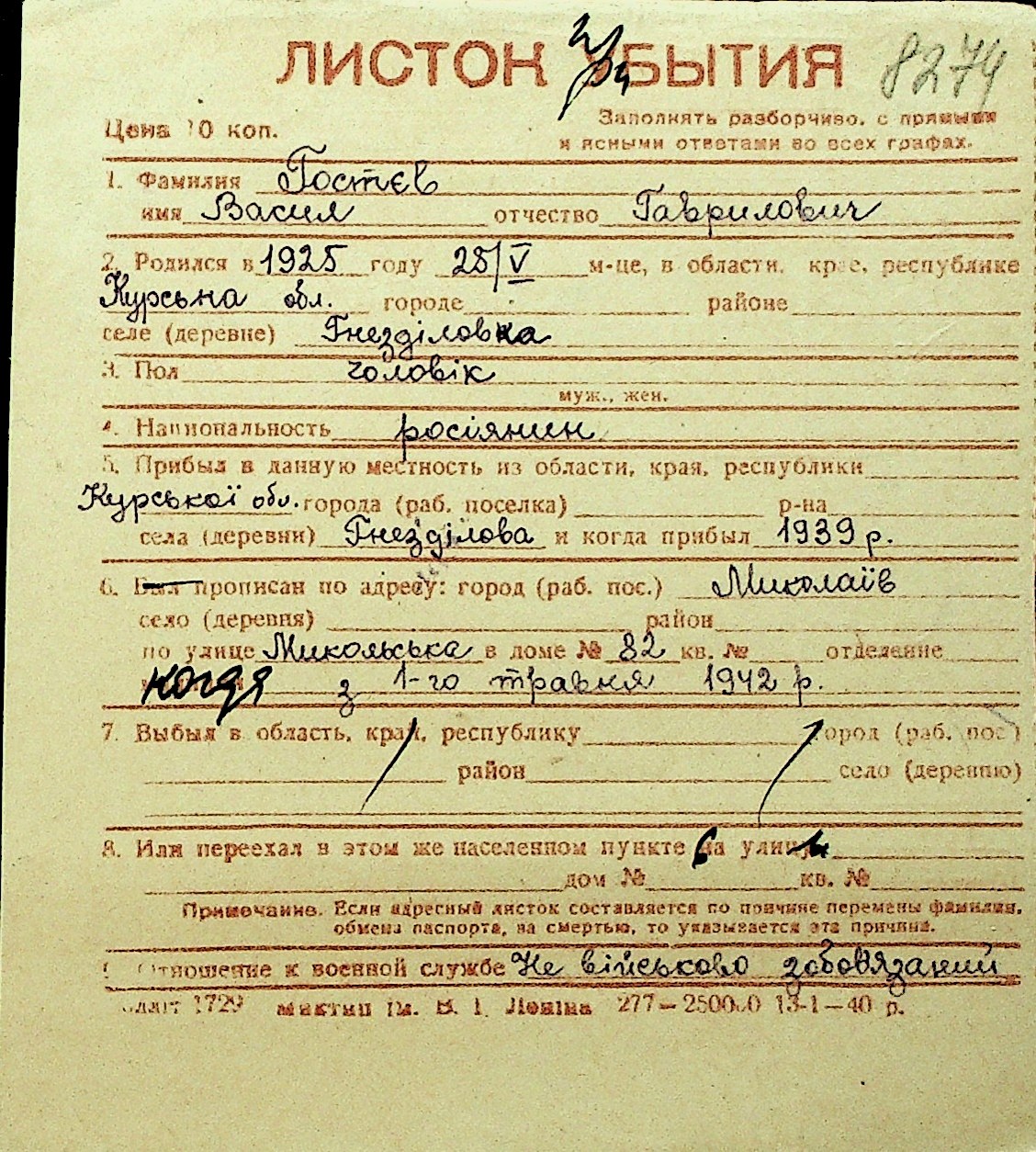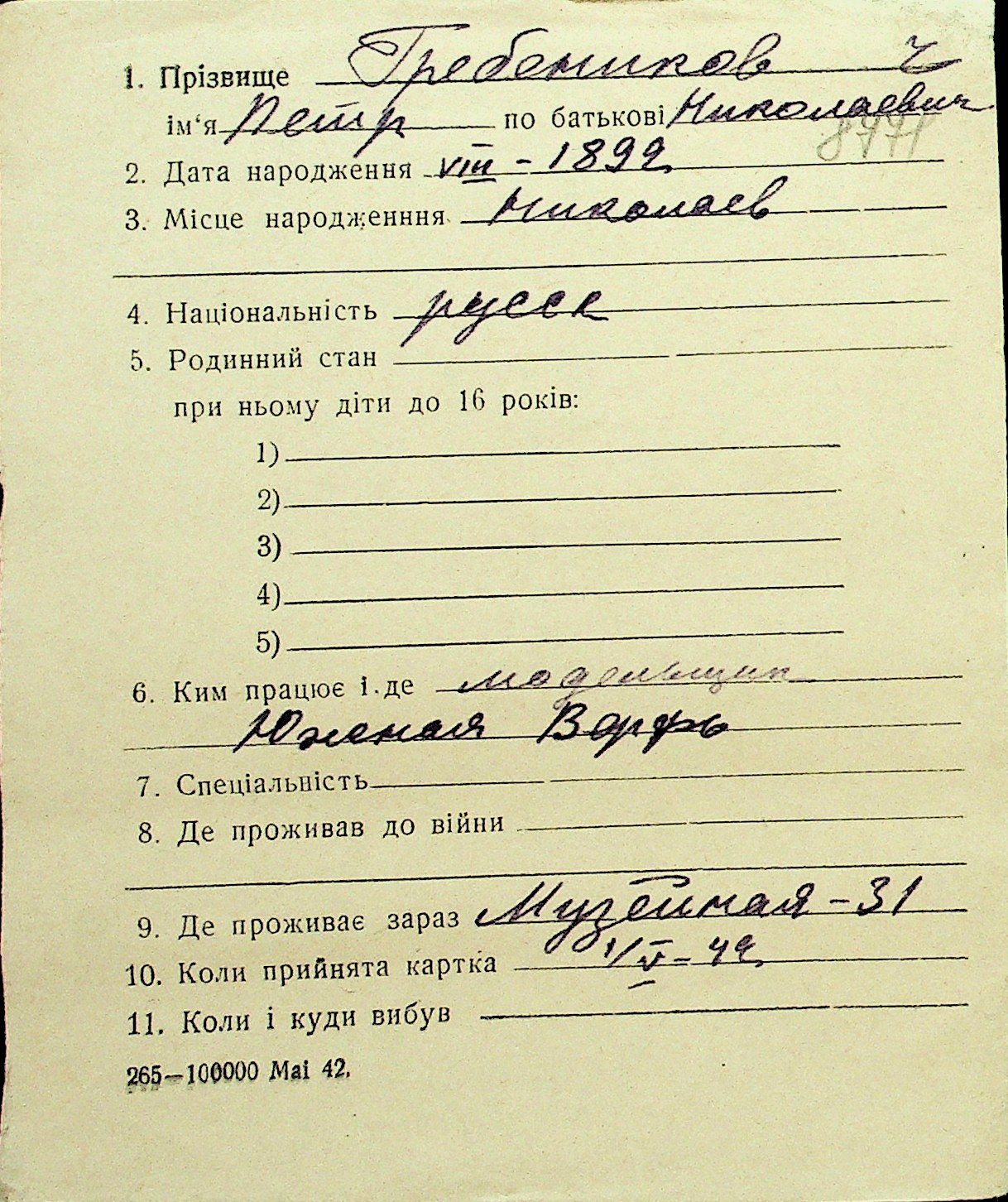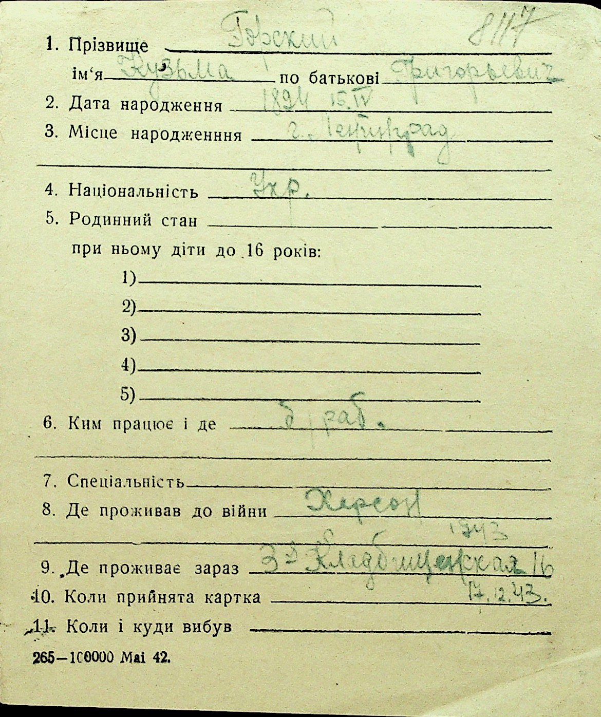 • • Перелік карток до фонду № Н-1016