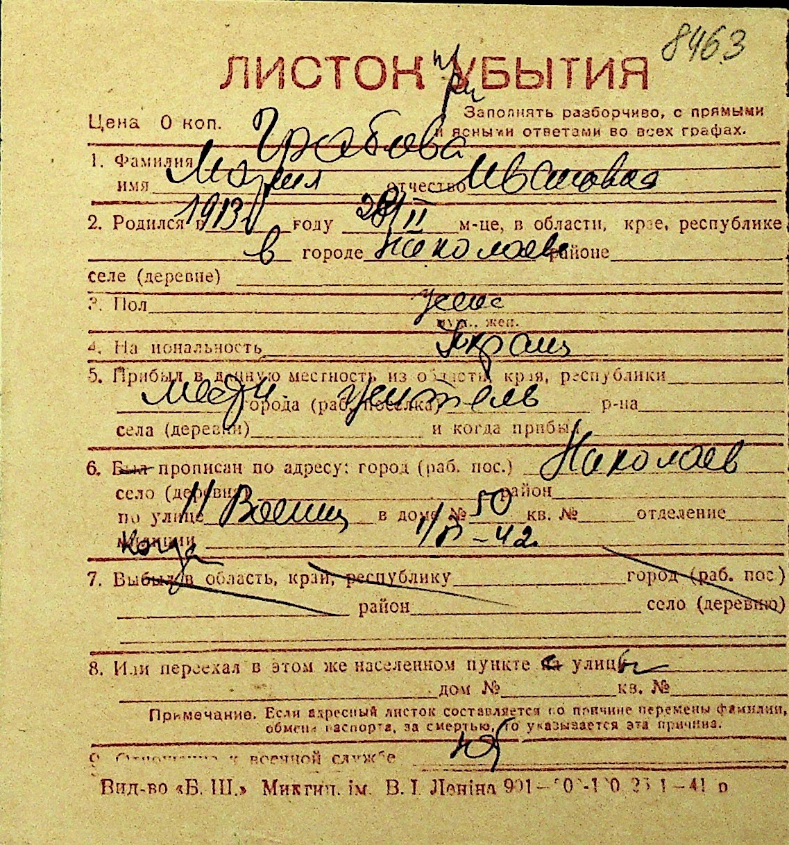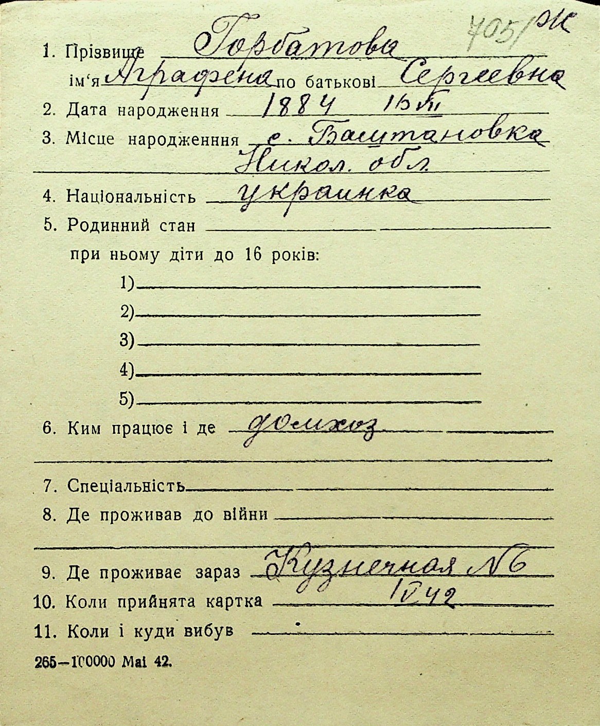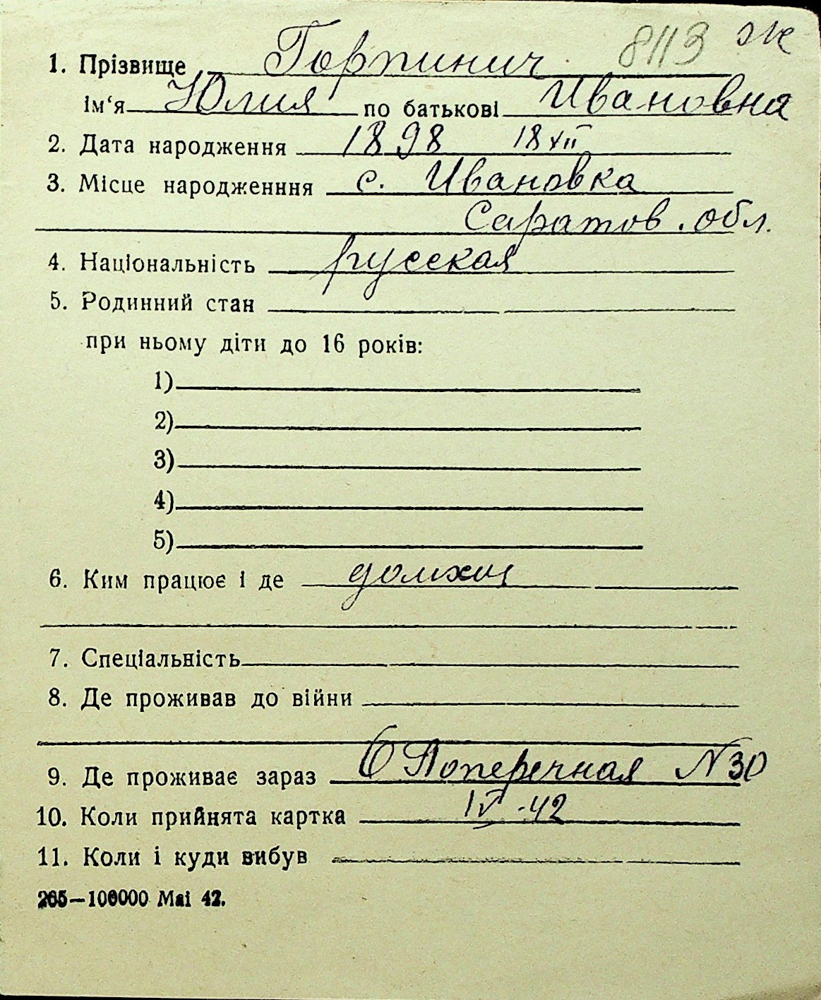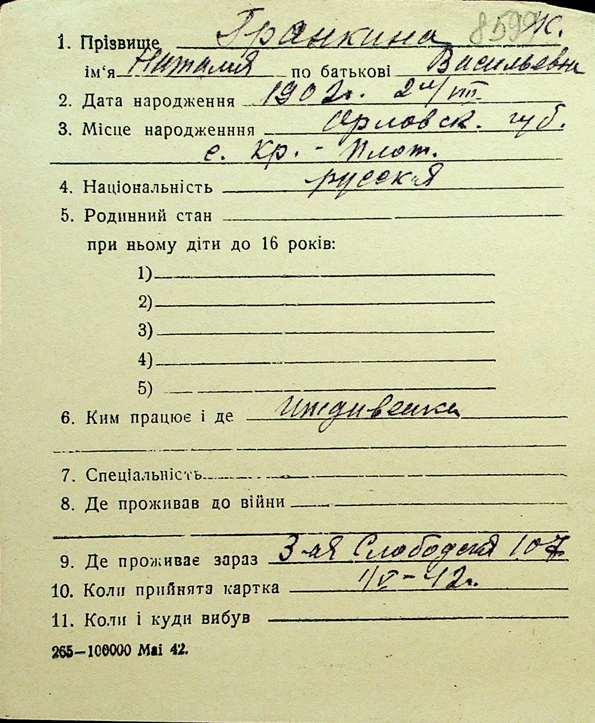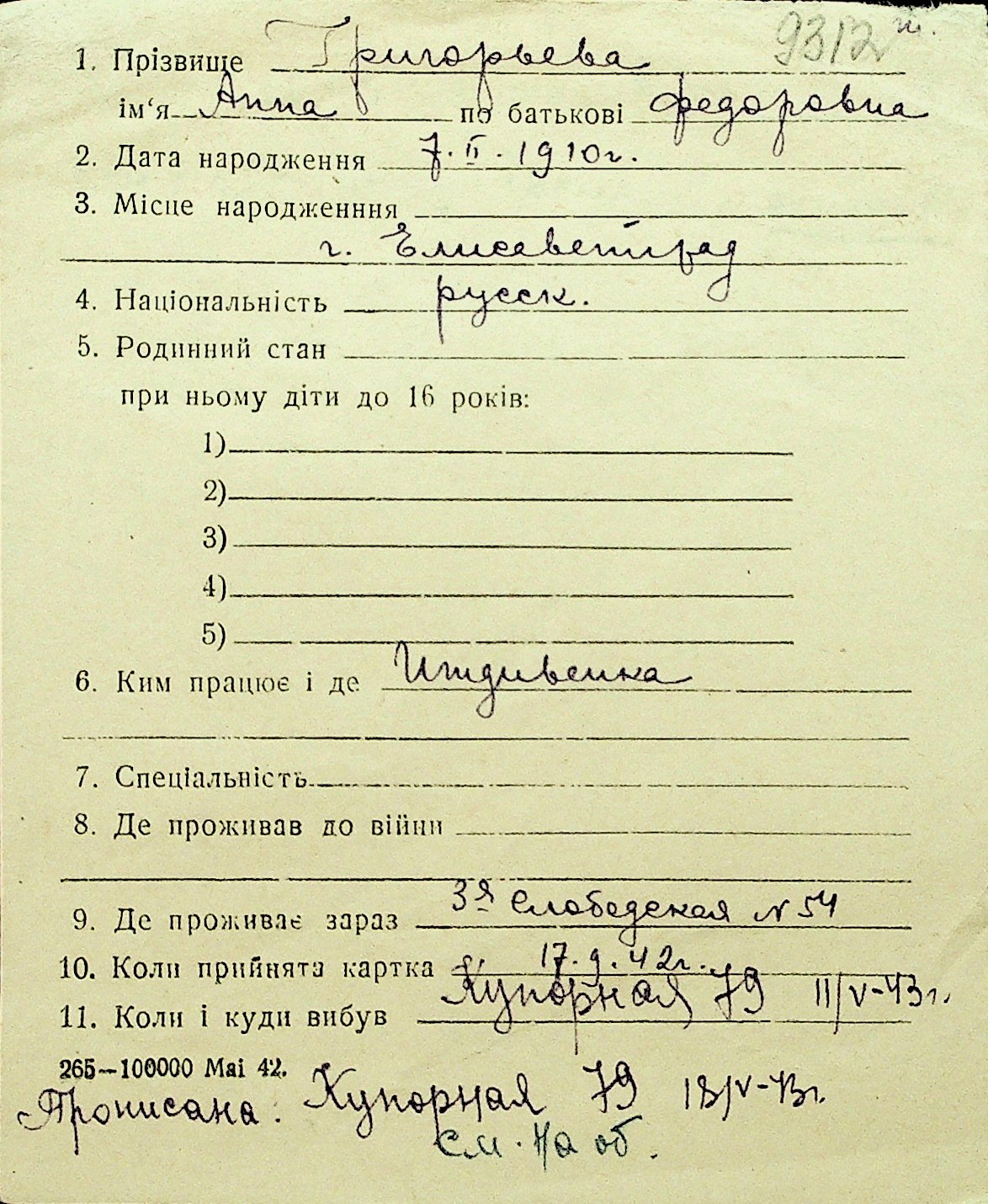 • • Перелік карток до фонду № Н-1016