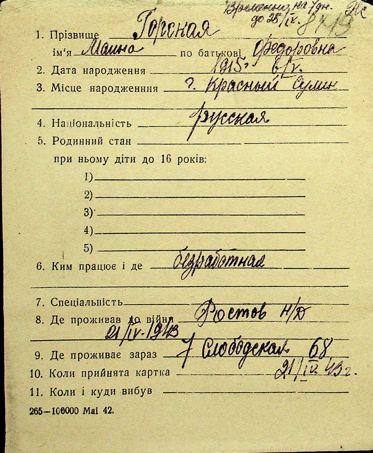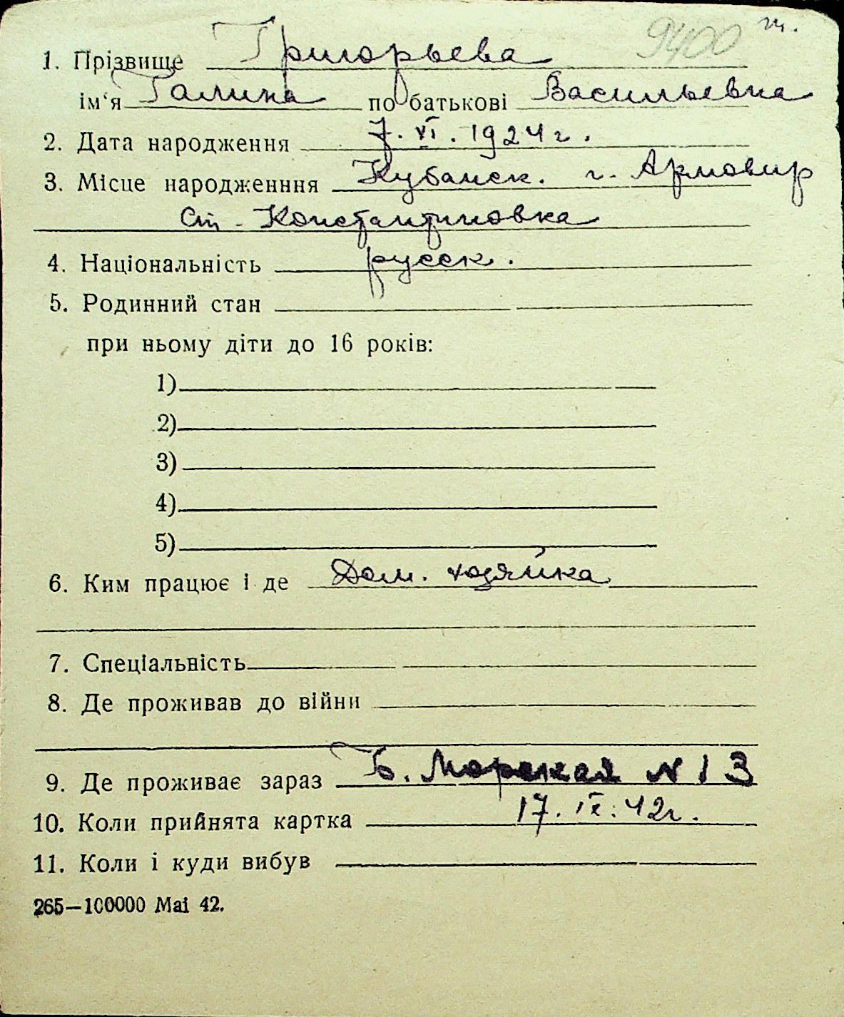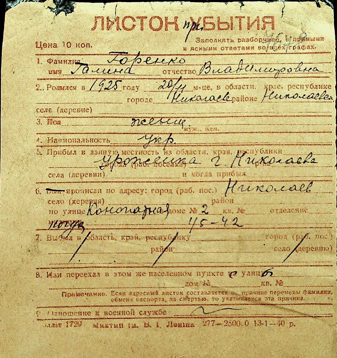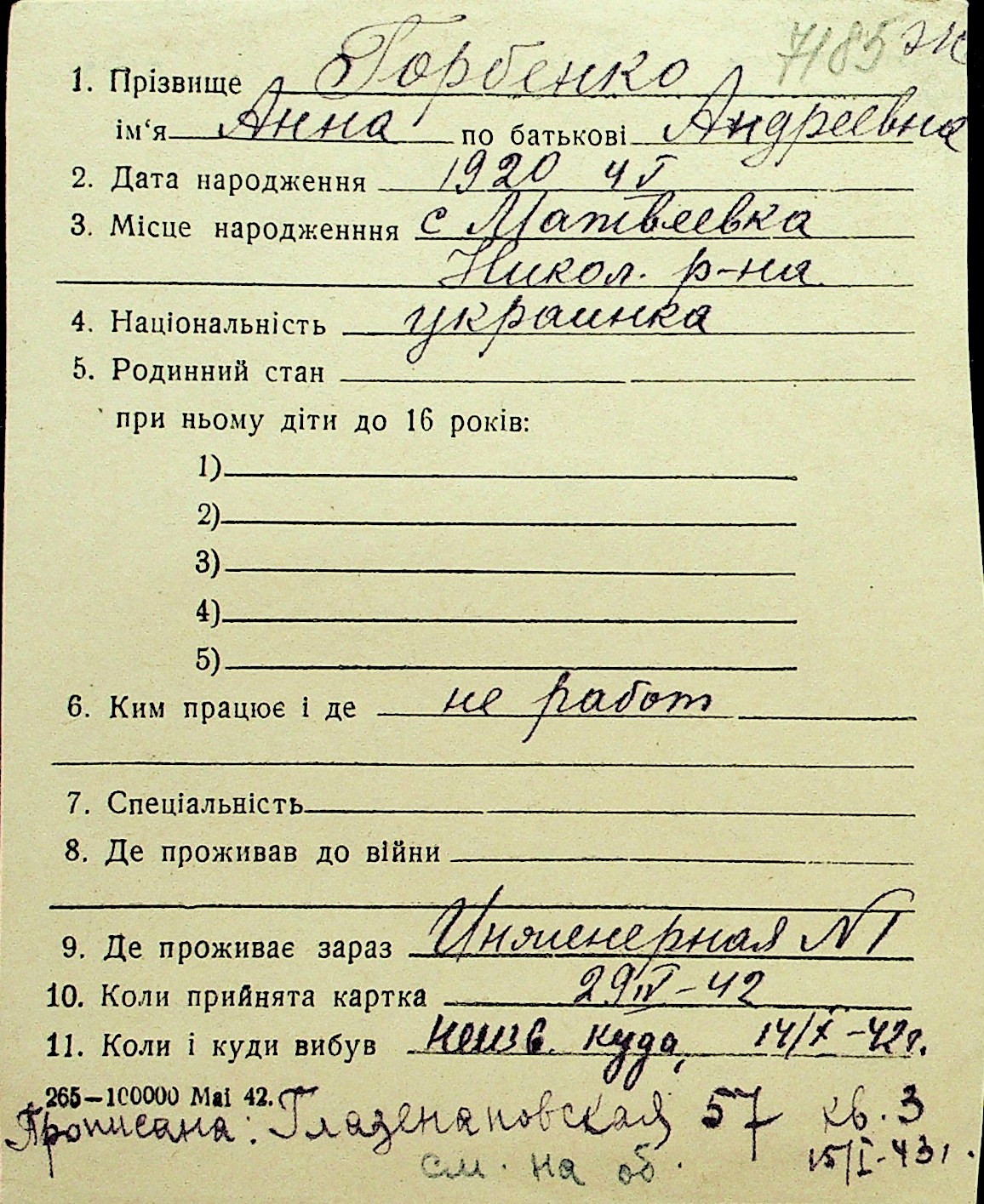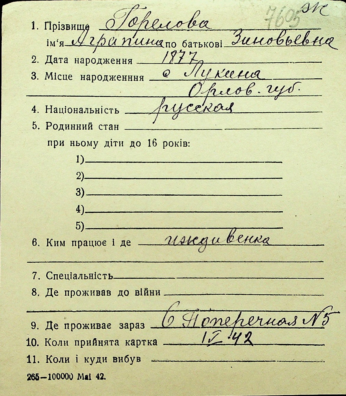• • Перелік карток до фонду № Н-1016