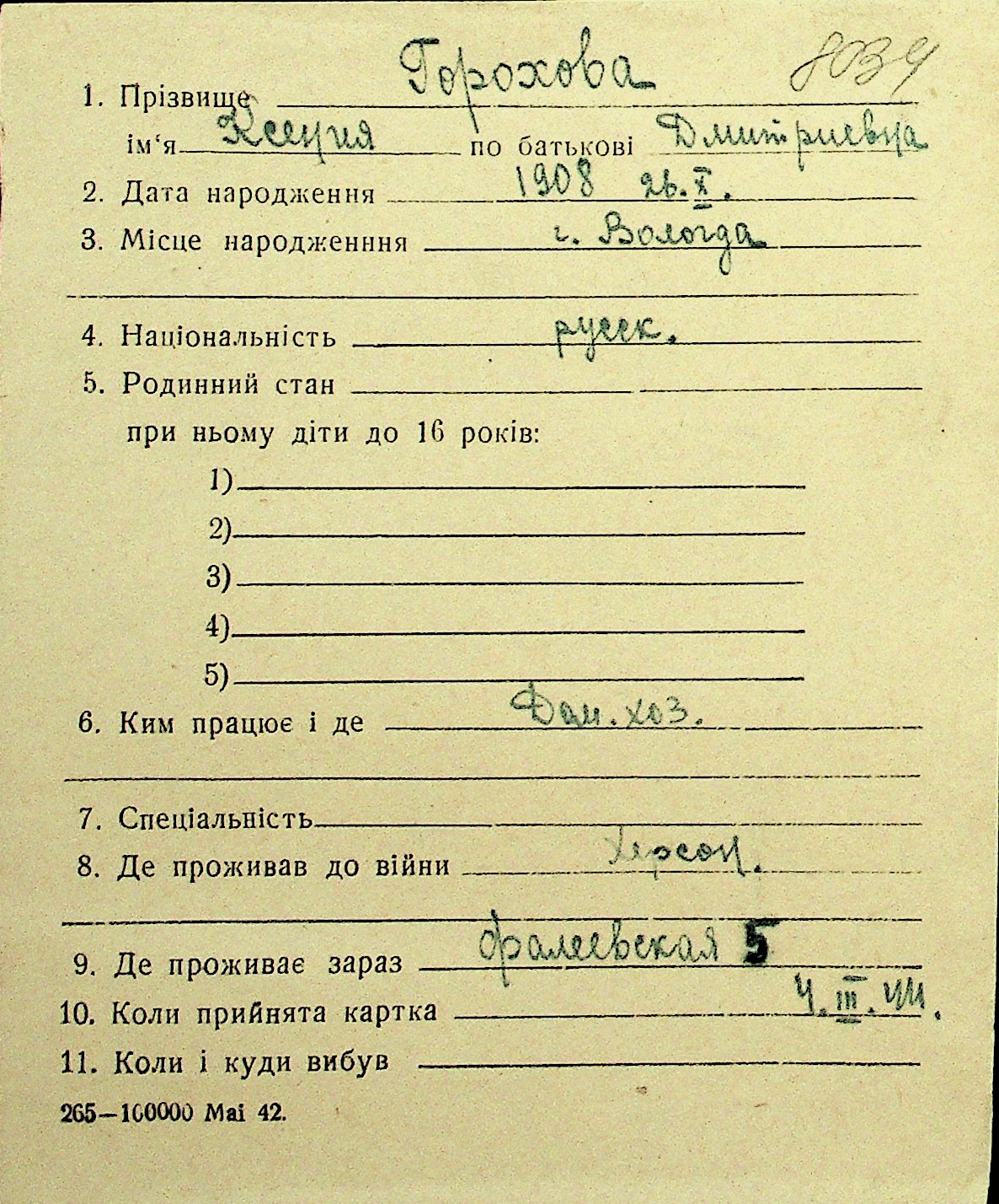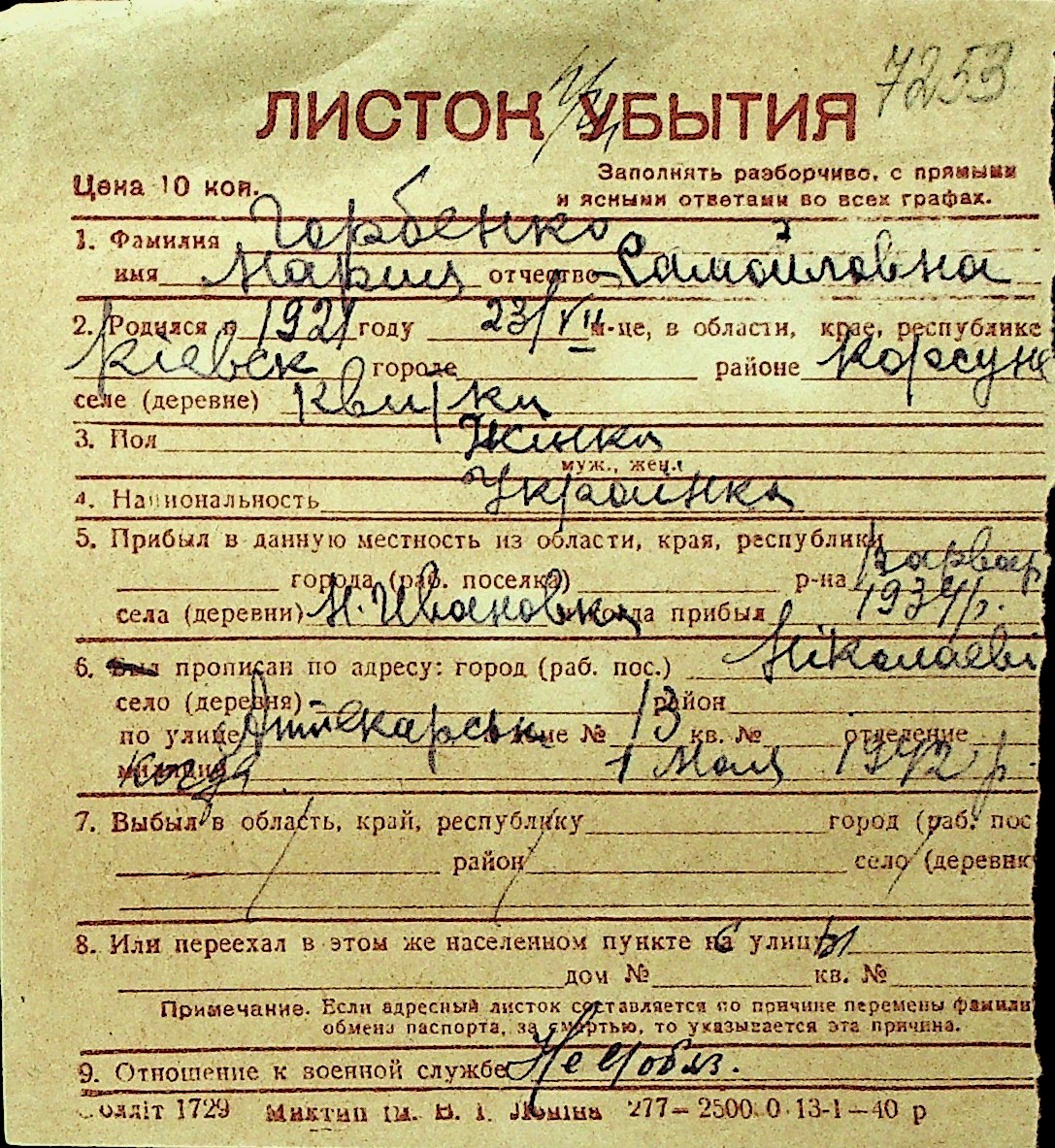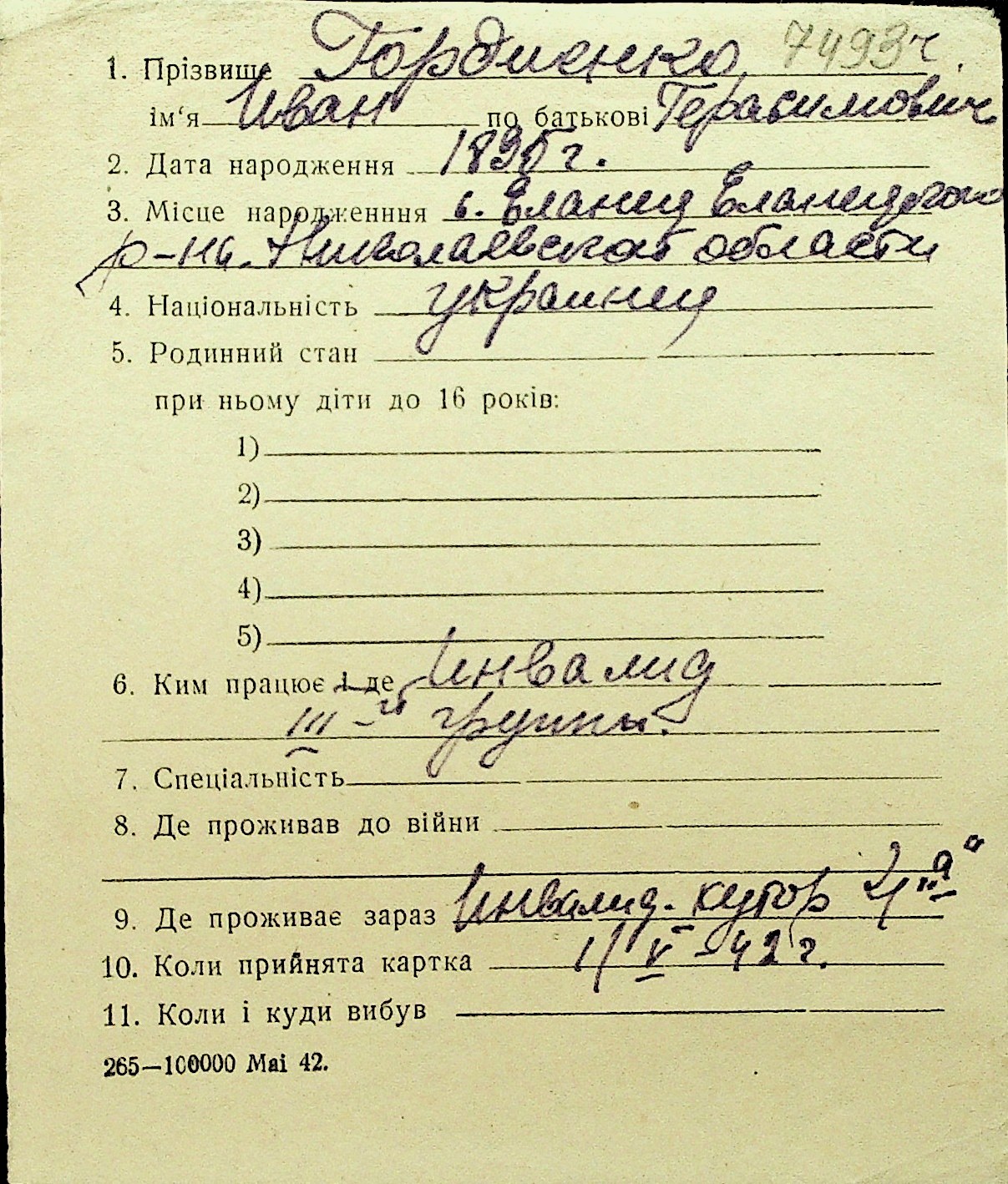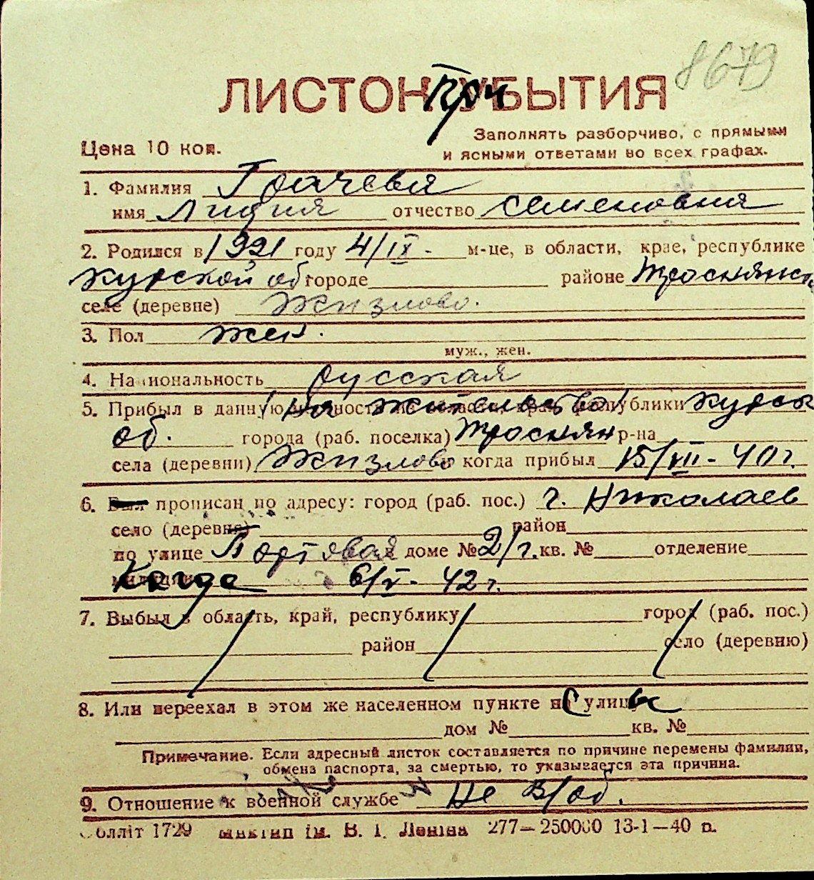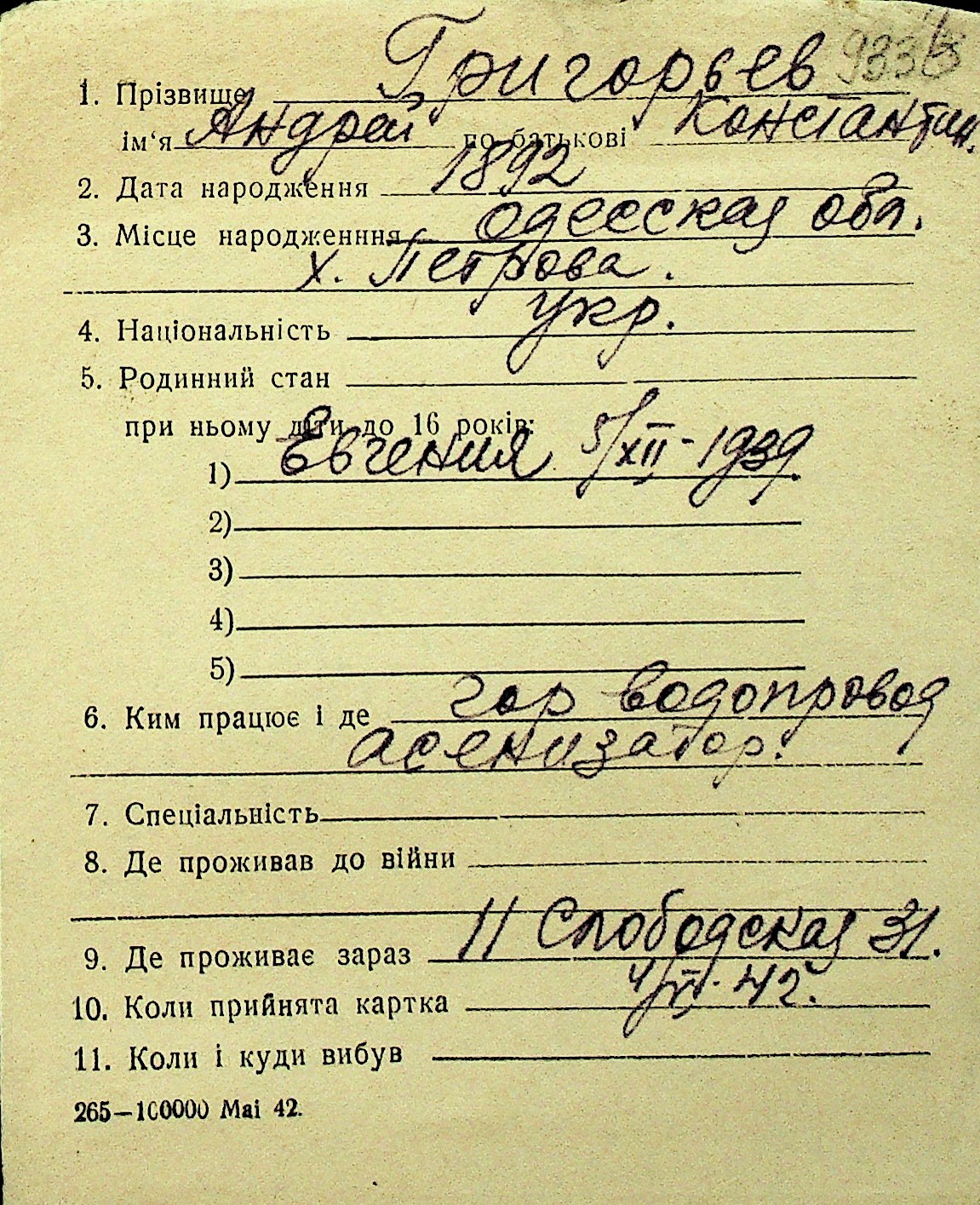 • • Перелік карток до фонду № Н-1016