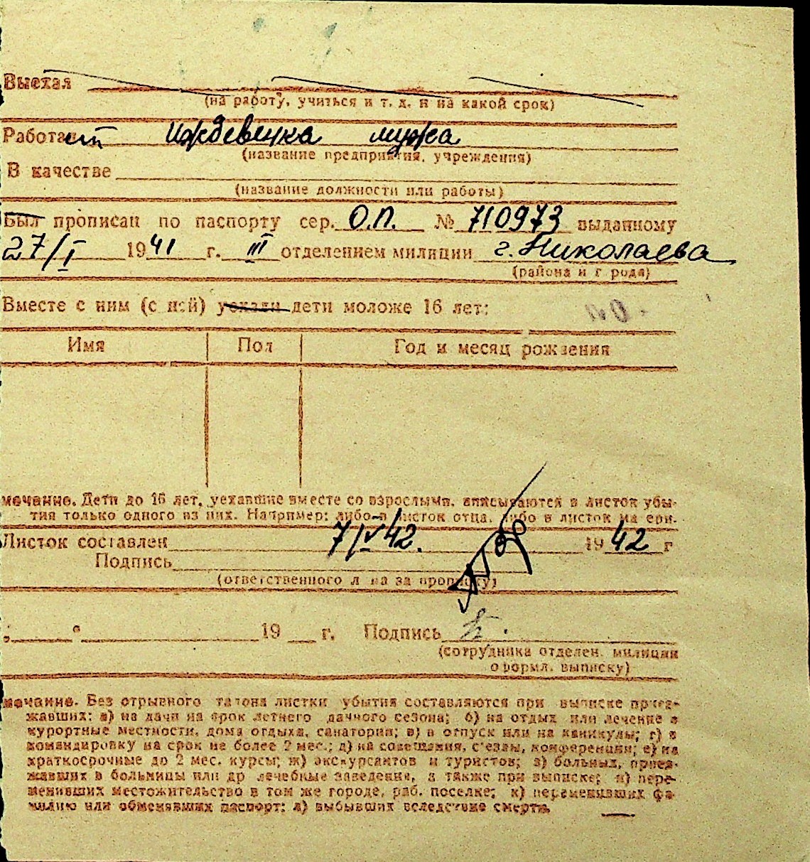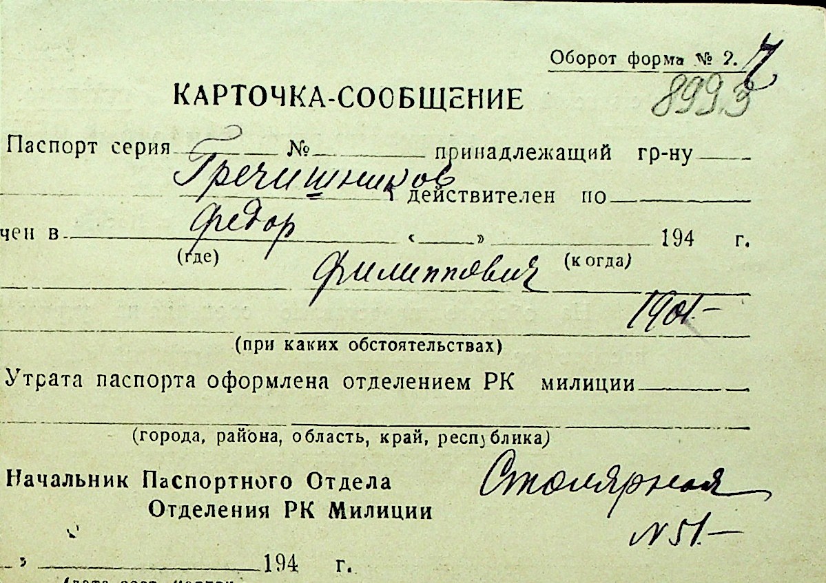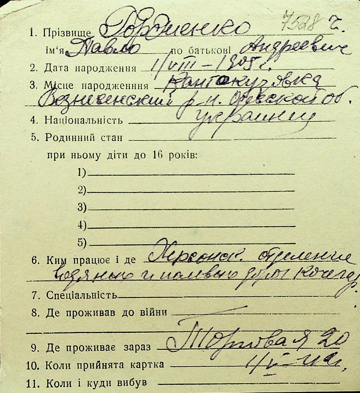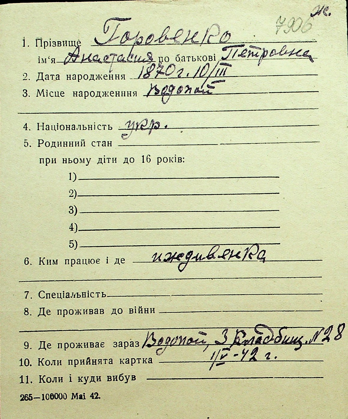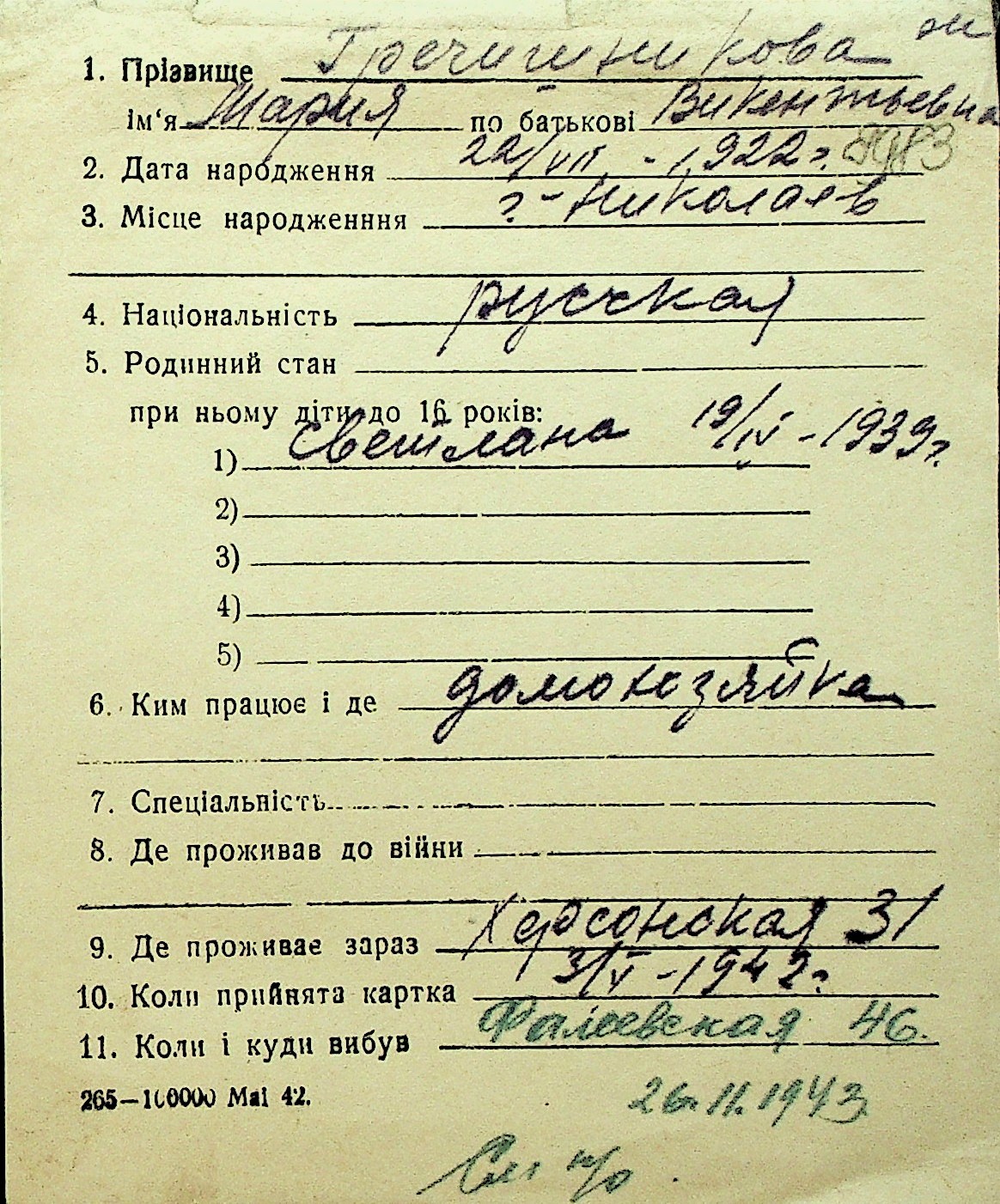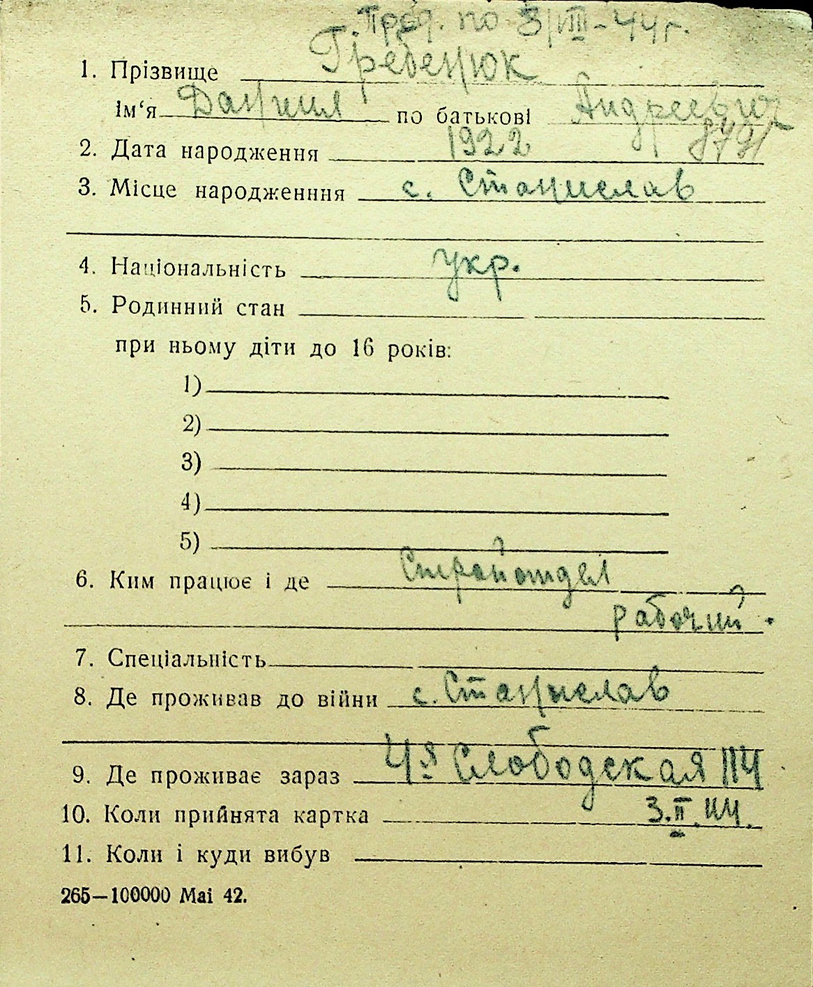 • • Перелік карток до фонду № Н-1016