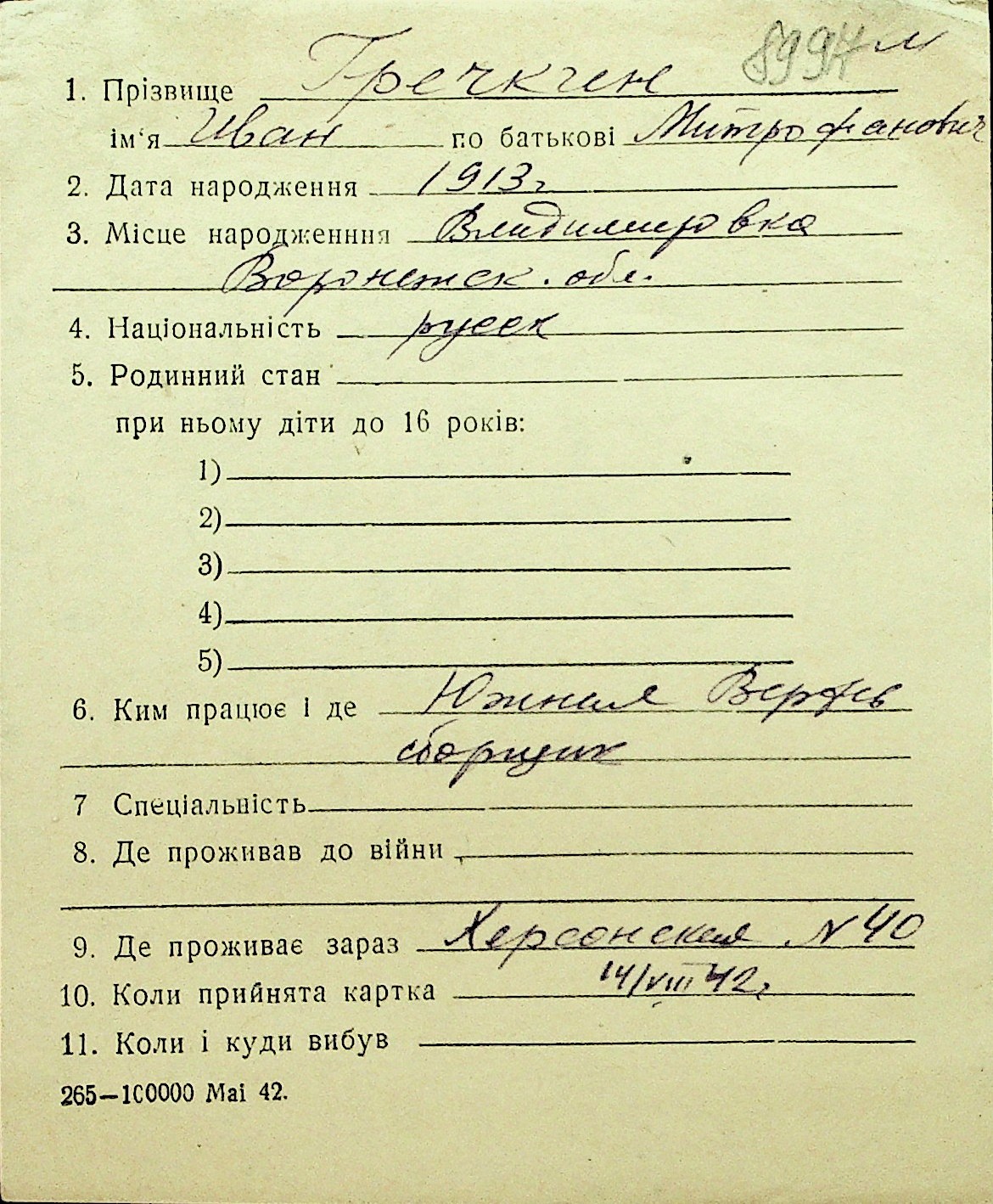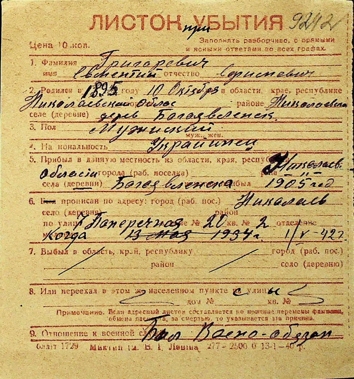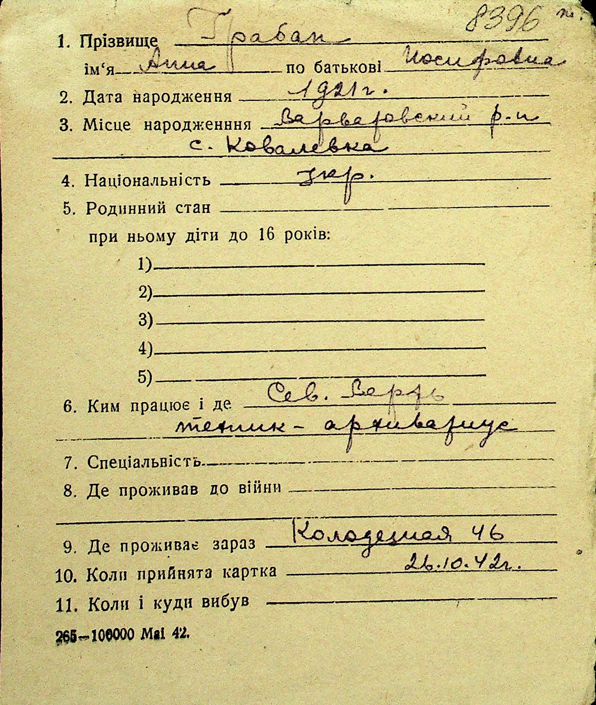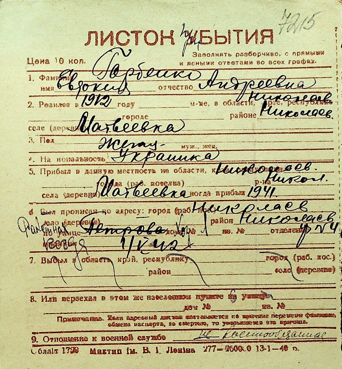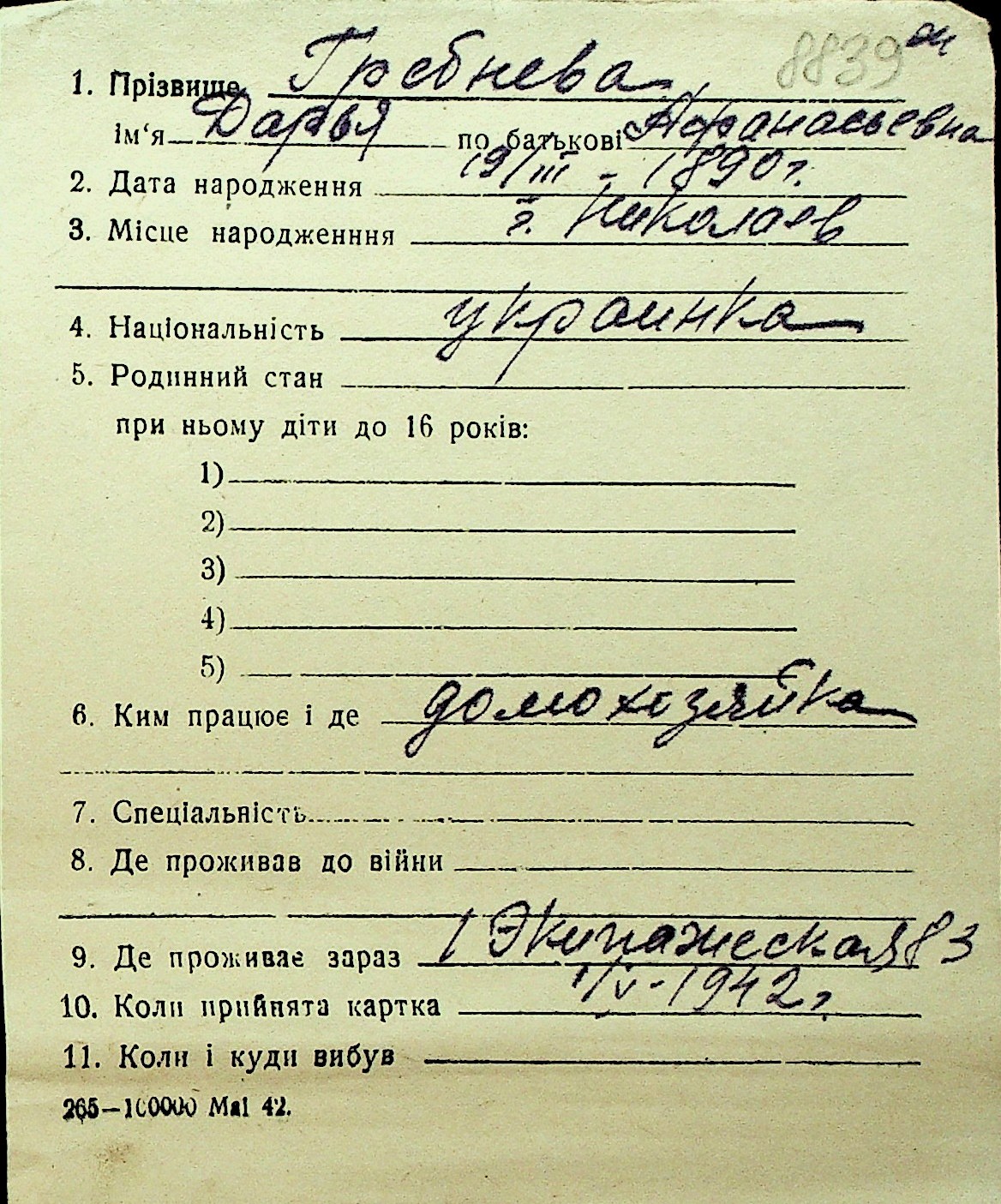 • • Перелік карток до фонду № Н-1016