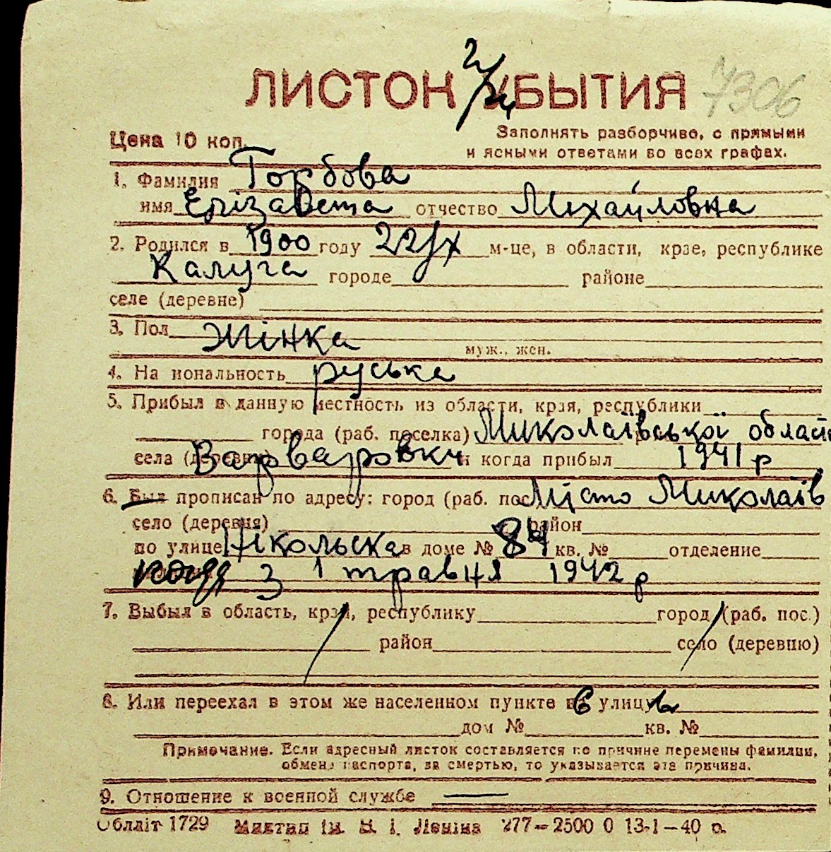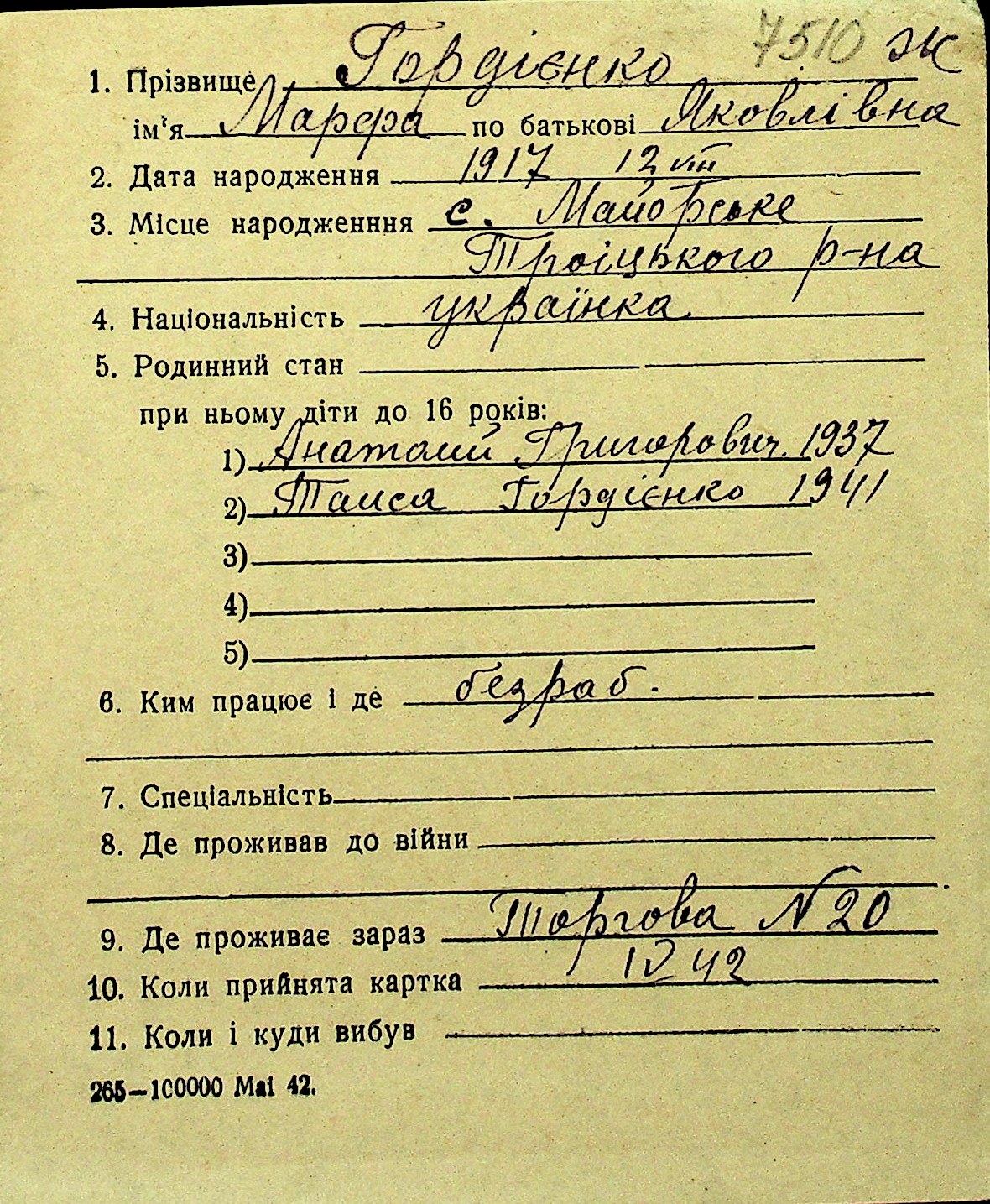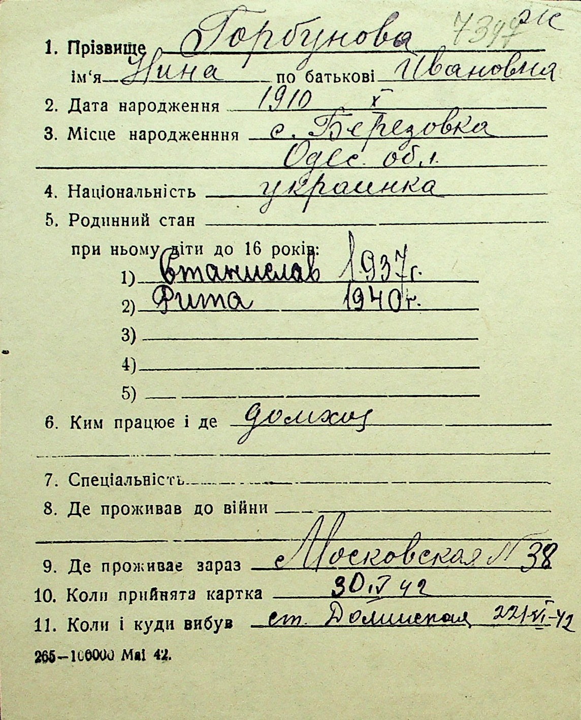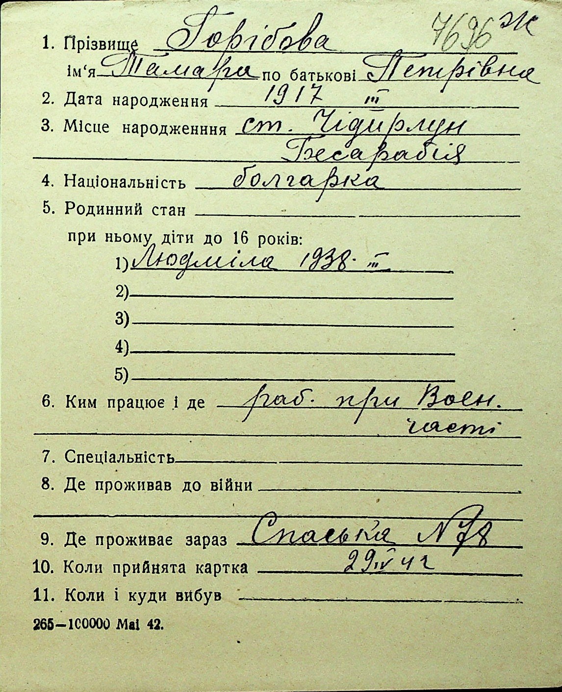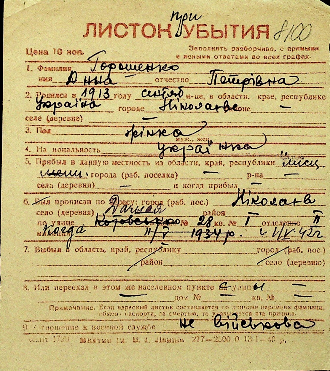 • • Перелік карток до фонду № Н-1016