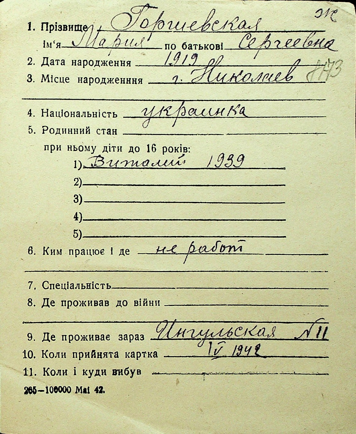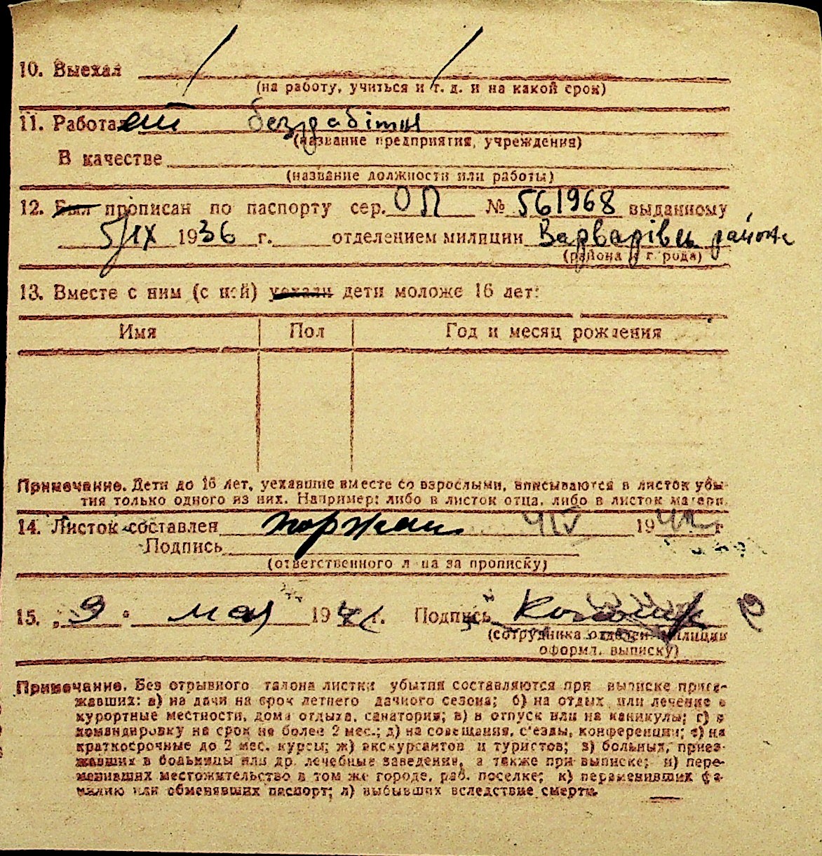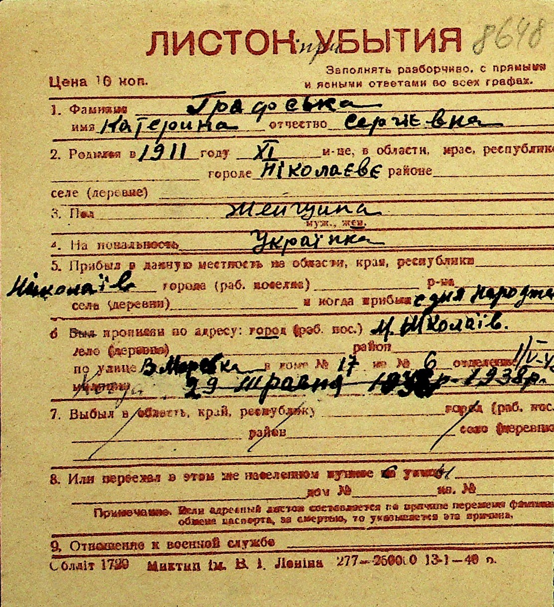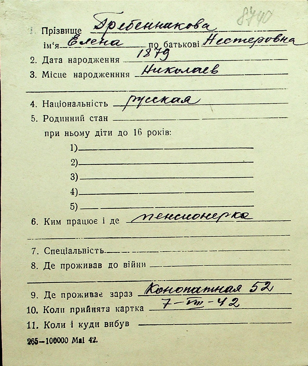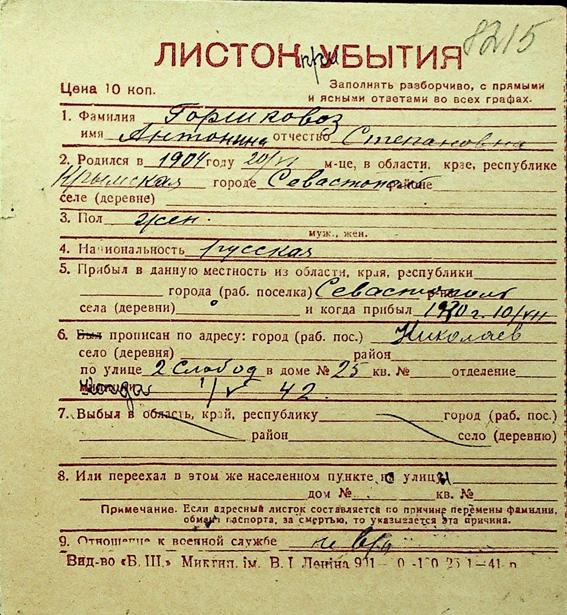 • • Перелік карток до фонду № Н-1016