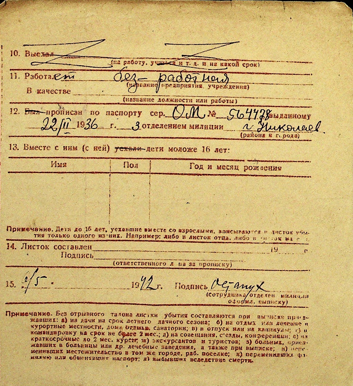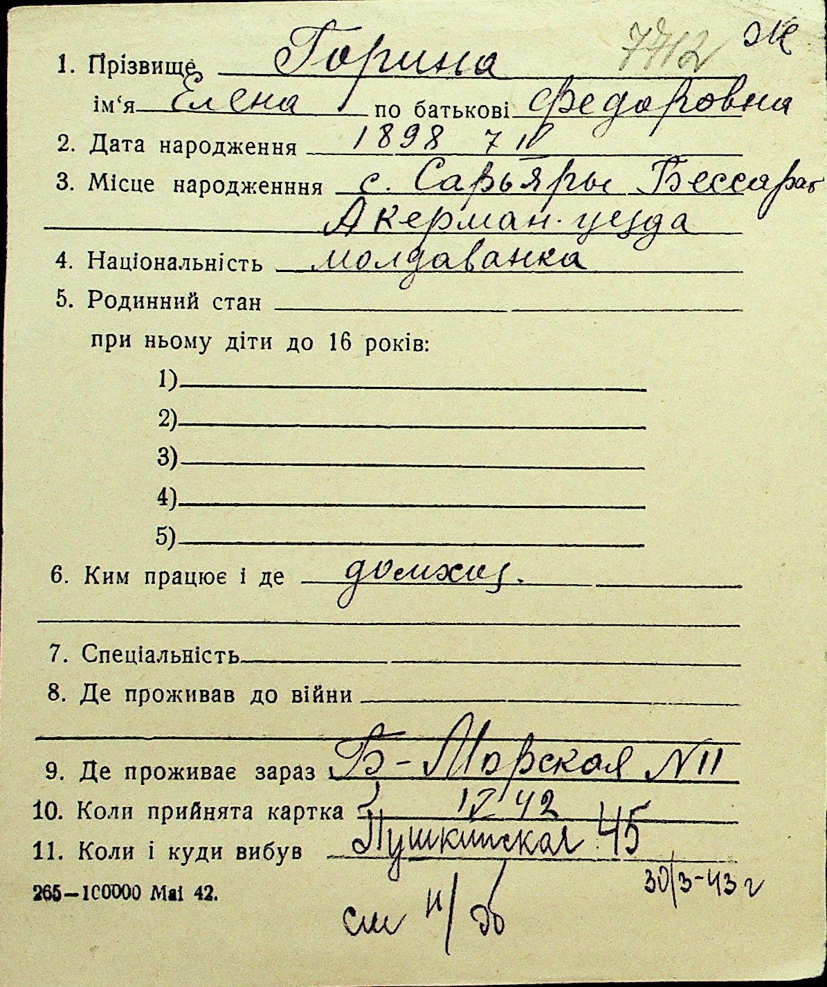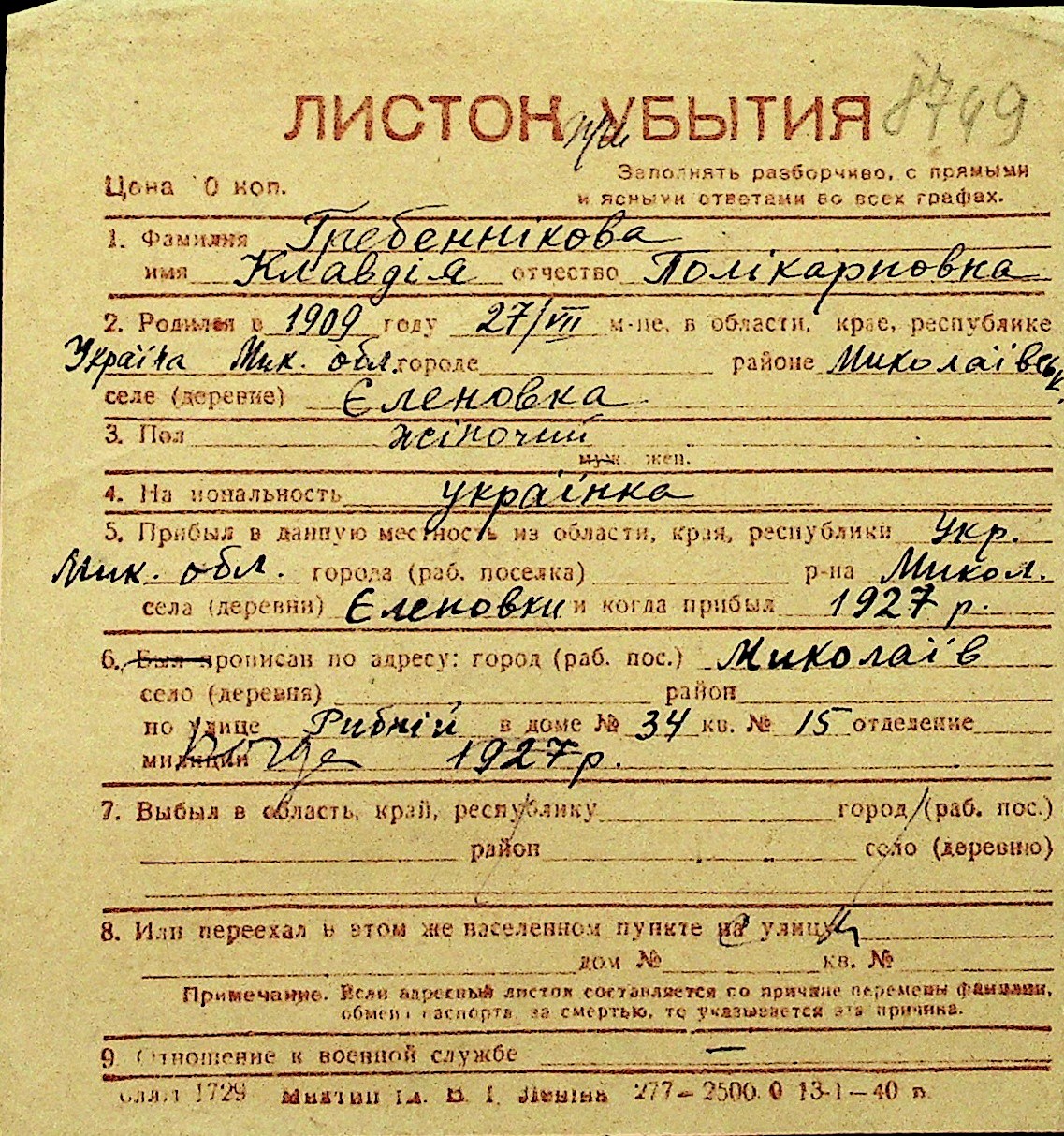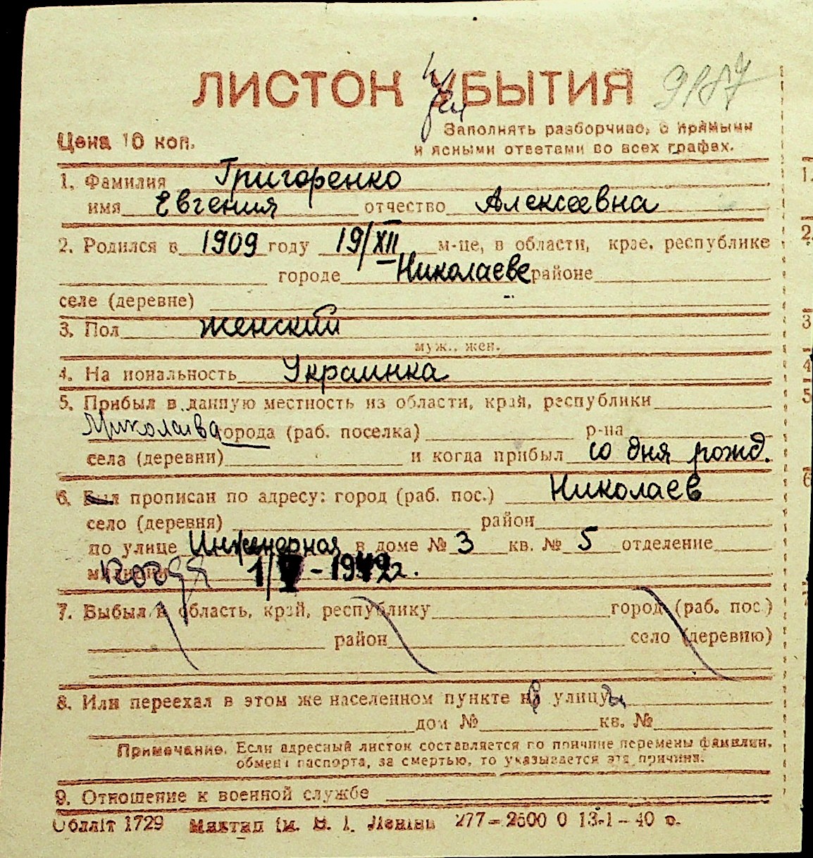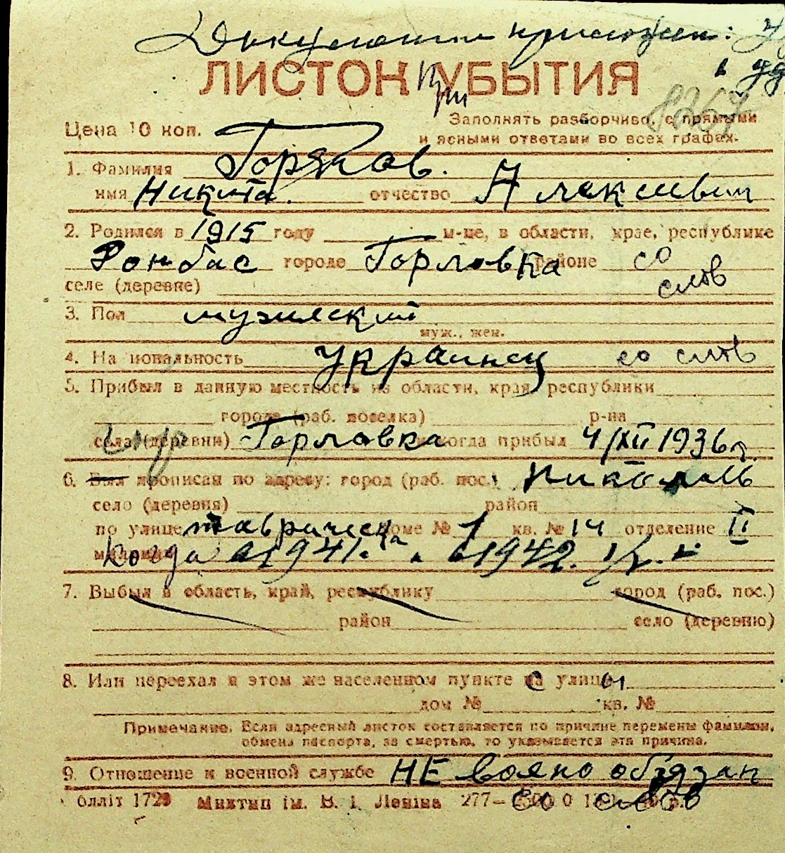 • • Перелік карток до фонду № Н-1016